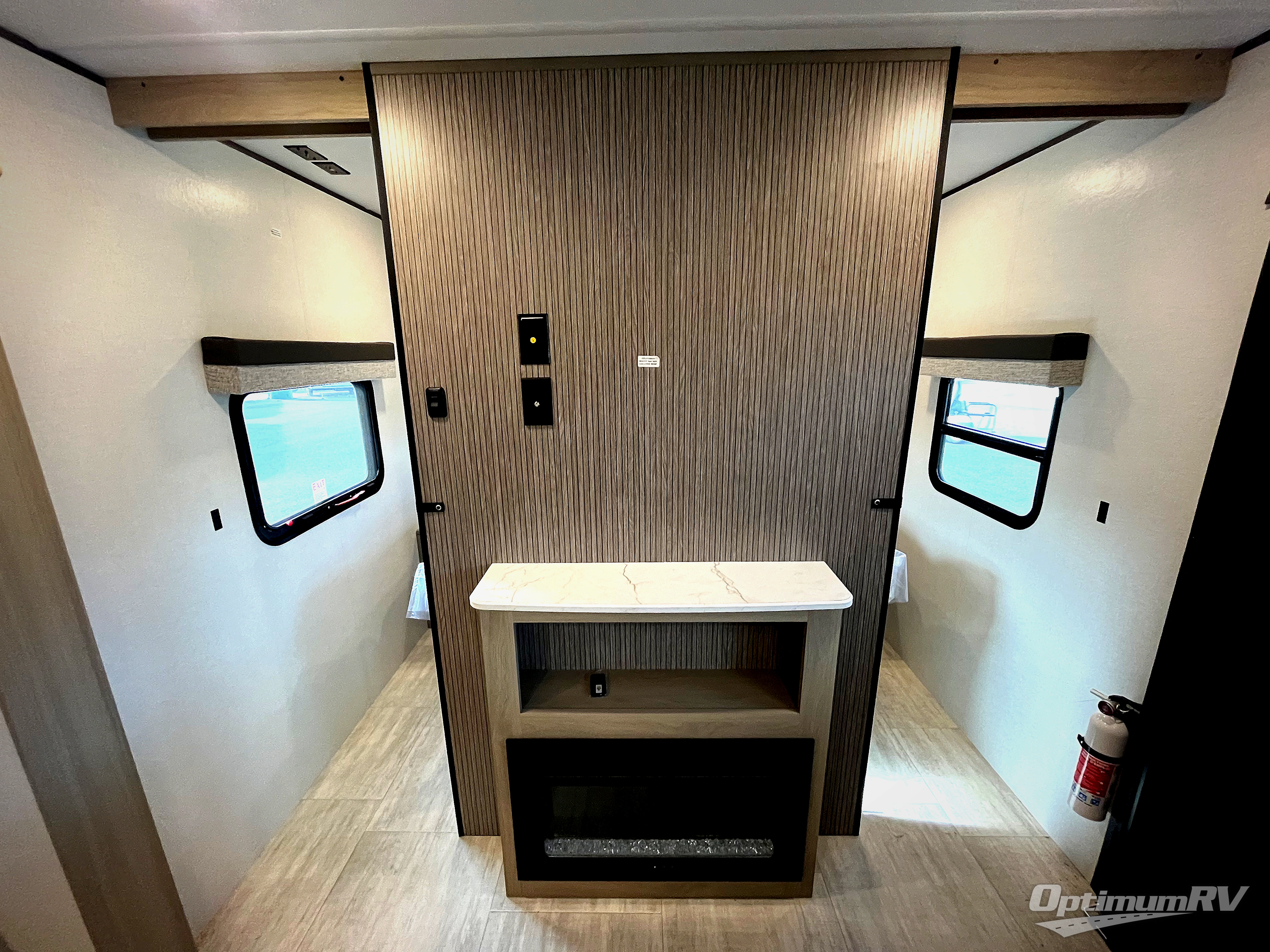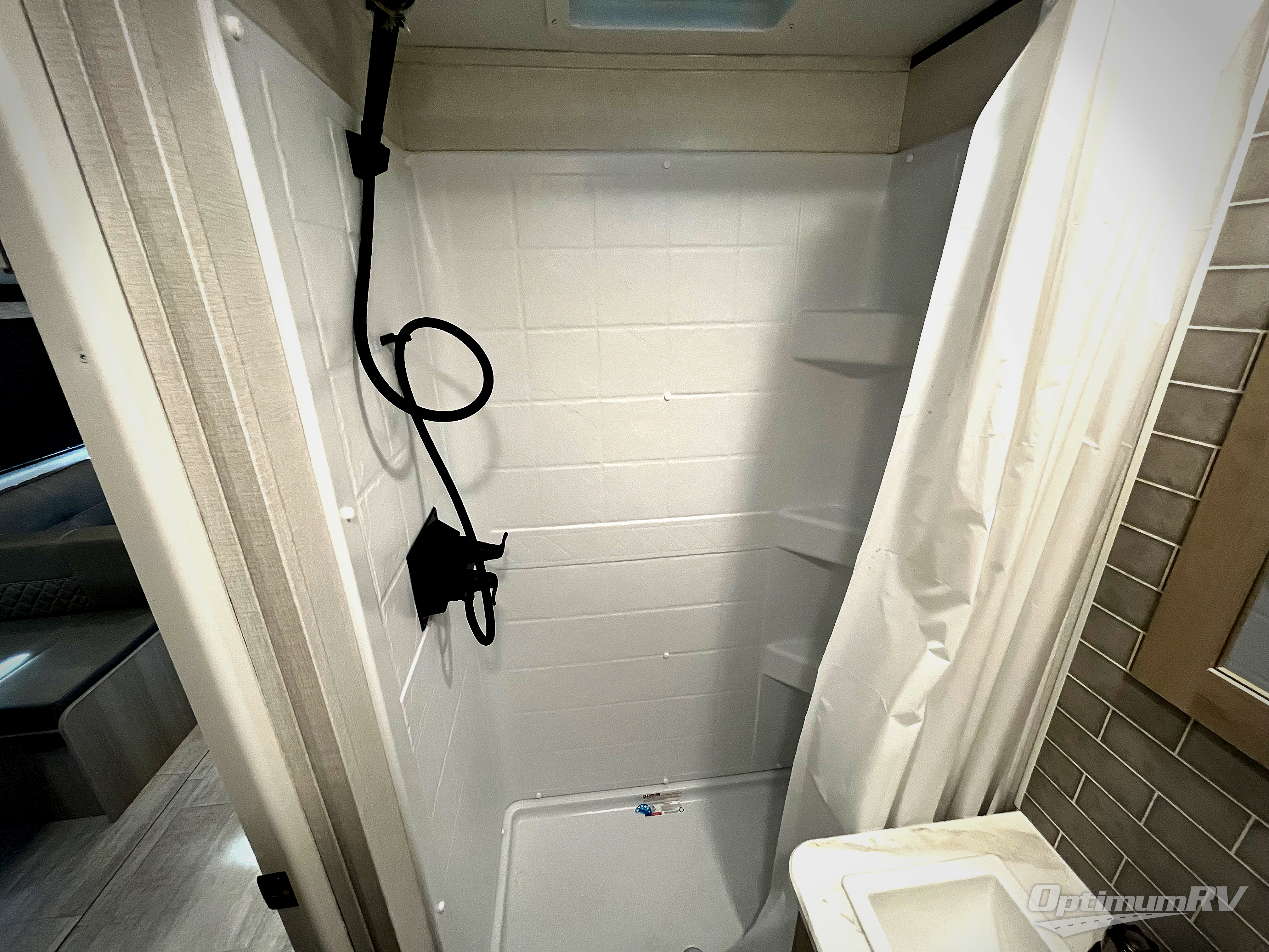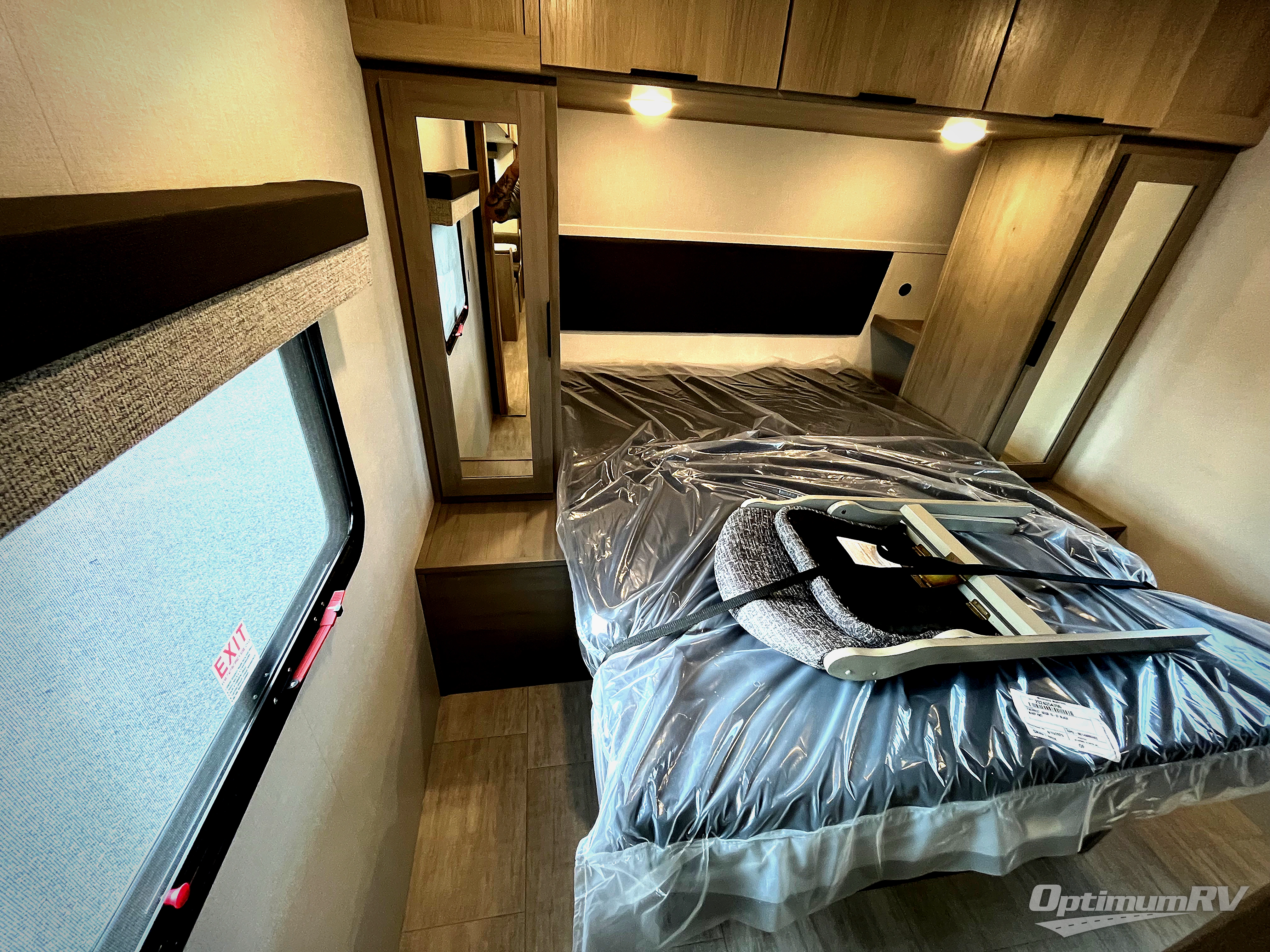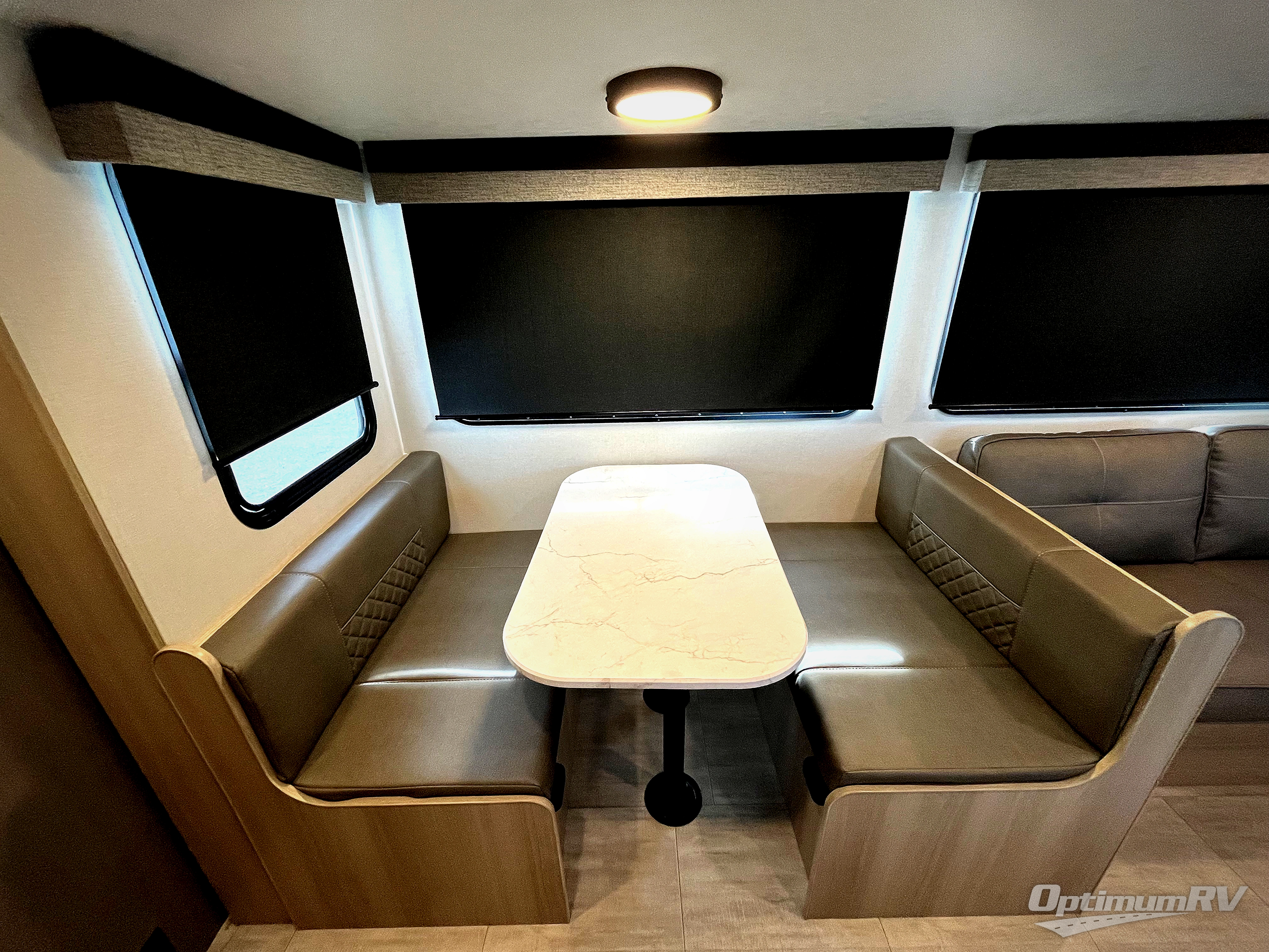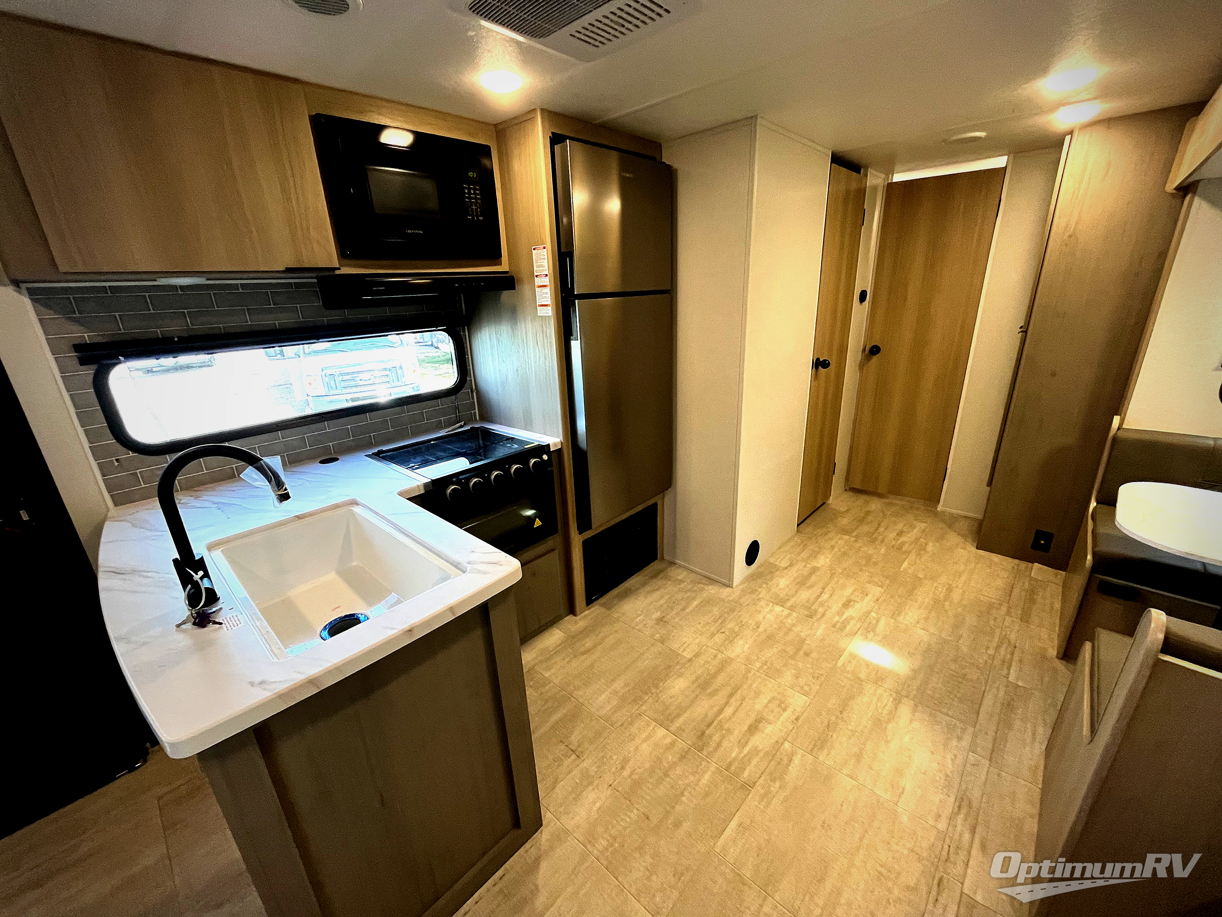 This travel trailer is perfect for weekend excursions or extended getaways at your favorite state park. You will have your own queen bed up front with storage space for your things, and the rear private bunkhouse will be perfect for guests. Here, you'll find a set of bunk beds plus a fold-up bunk over a booth dinette so there is a place to eat or play games back here. The full kitchen will let you cook meals each day, and the 10 cu. ft. refrigerator will keep your food fresh. Outside, a 14' power awning will provide some shade, and an outdoor refrigerator will keep cold drinks close by!
