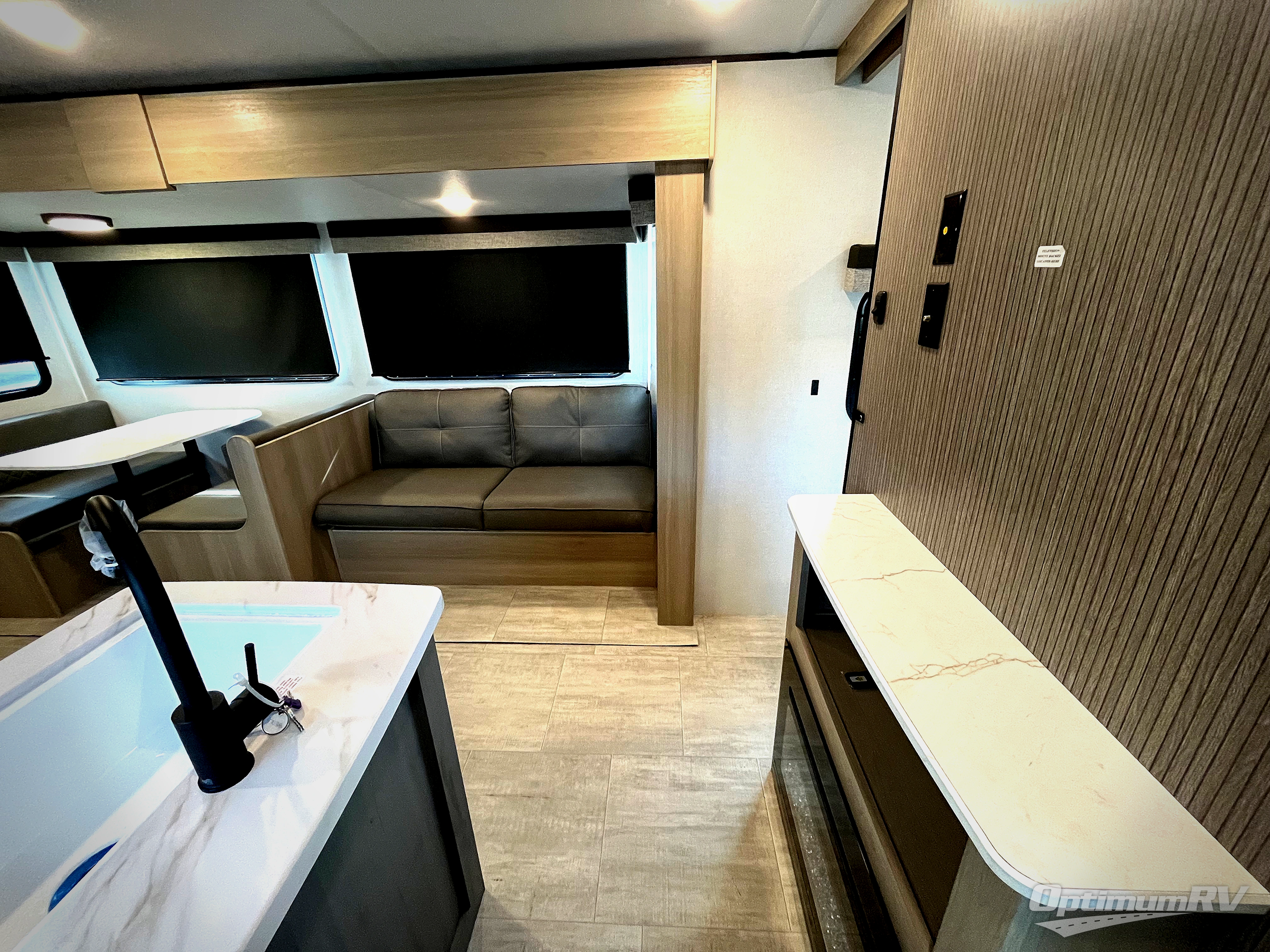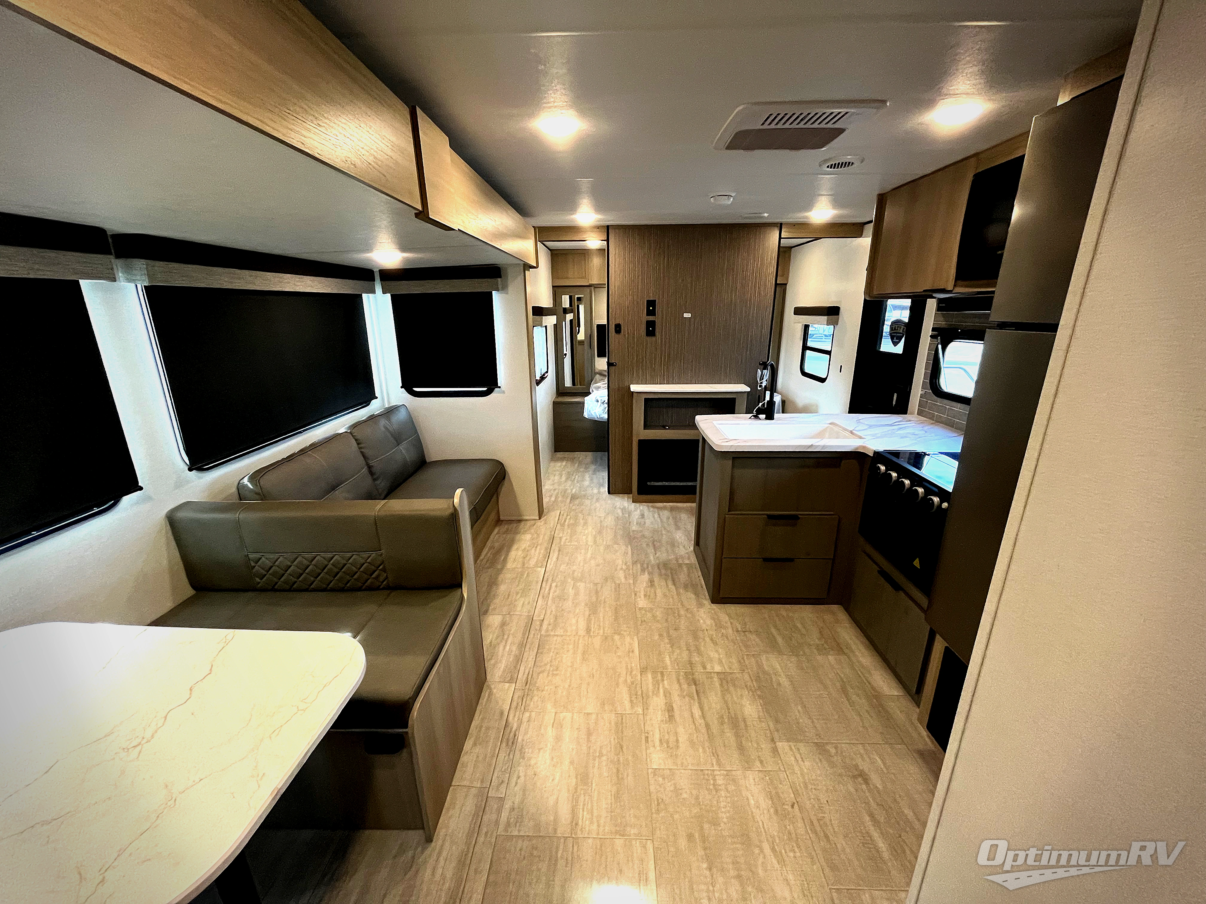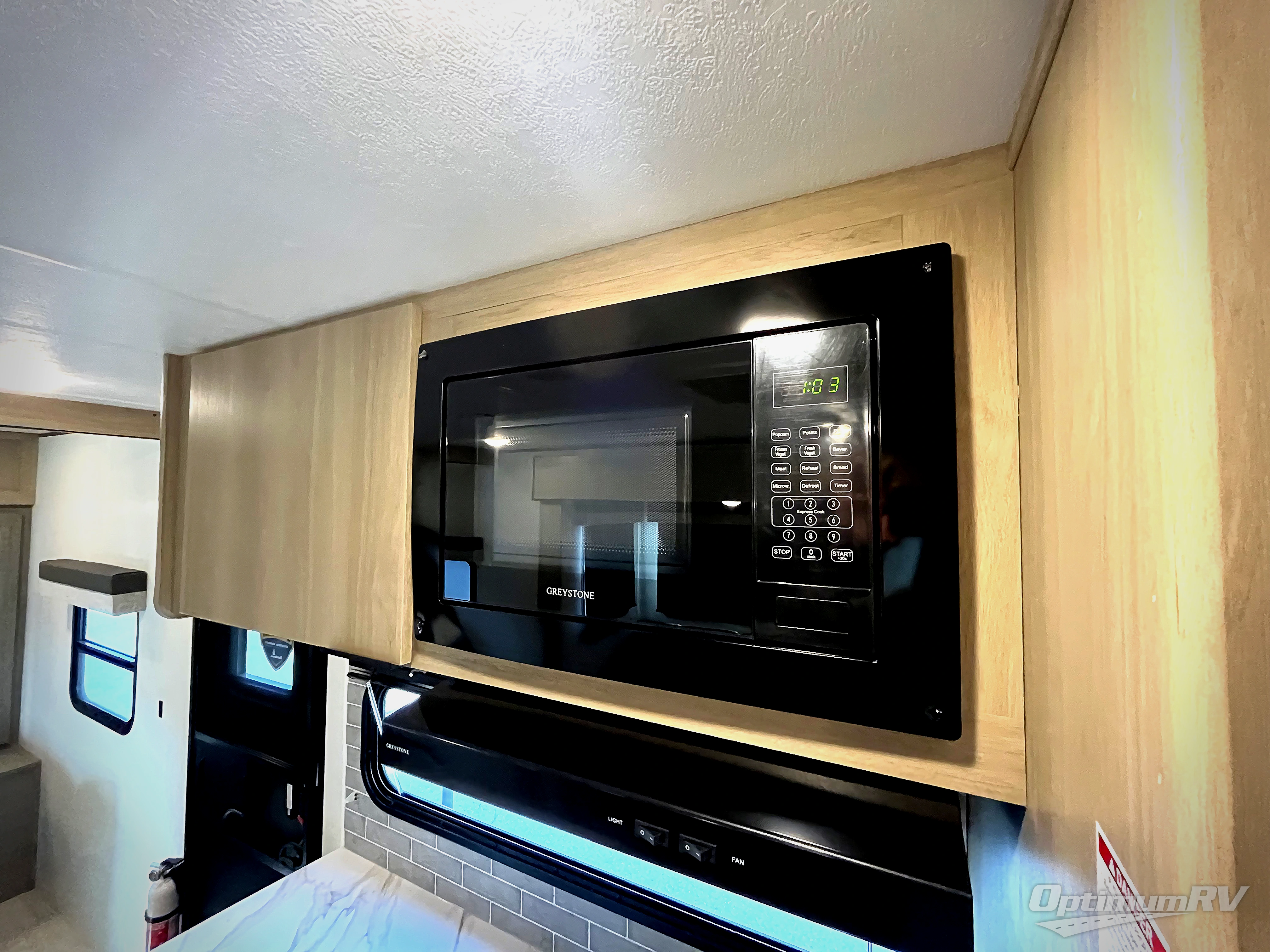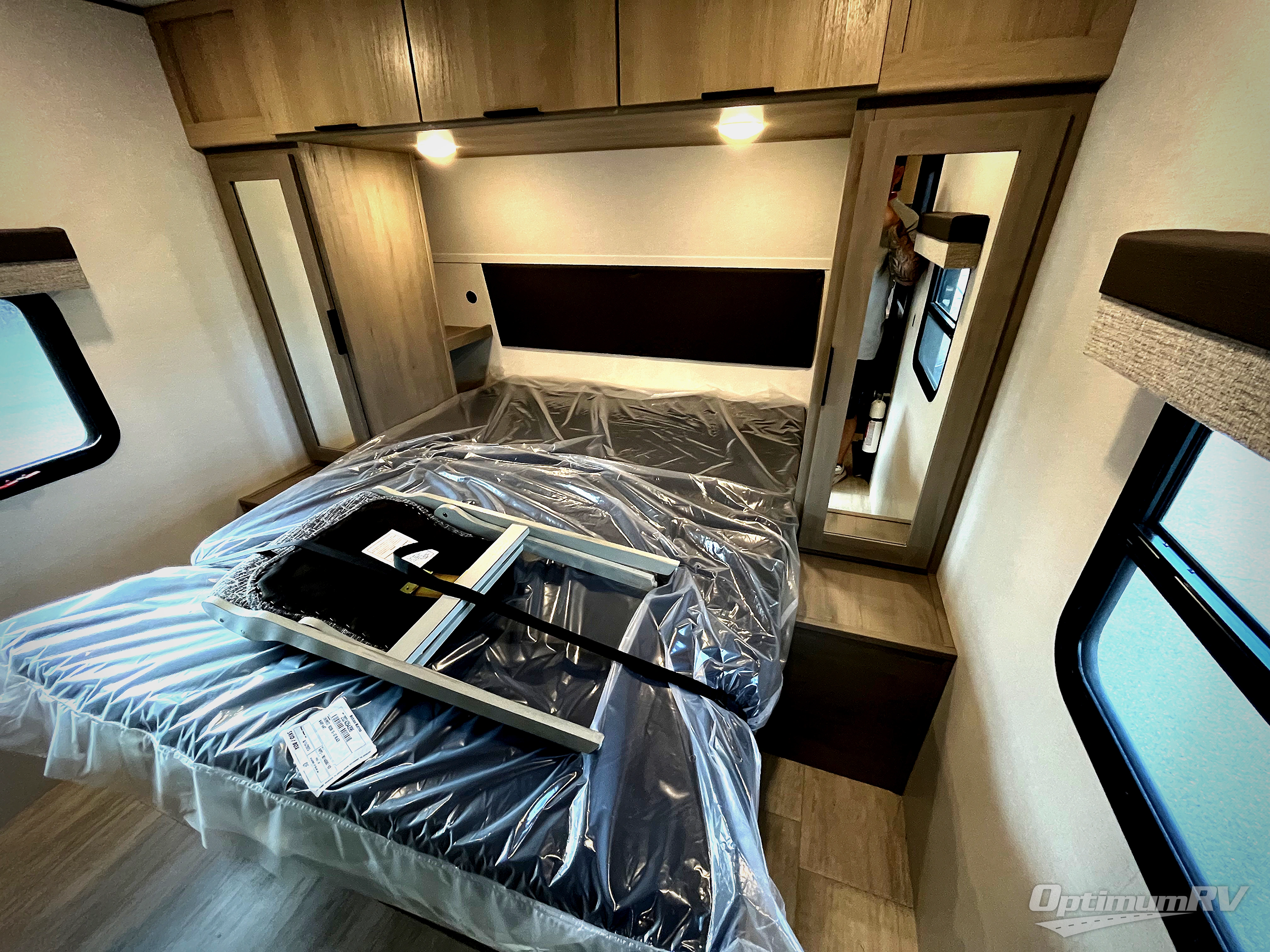 This travel trailer is perfect for weekend excursions or extended getaways at your favorite state park. You will have your own queen bed up front with storage space for your things, and the rear private bunkhouse will be perfect for guests. Here, you'll find a set of bunk beds plus a fold-up bunk over a booth dinette so there is a place to eat or play games back here. The full kitchen will let you cook meals each day, and the 10 cu. ft. refrigerator will keep your food fresh. Outside, a 14' power awning will provide some shade, and an outdoor refrigerator will keep cold drinks close by!