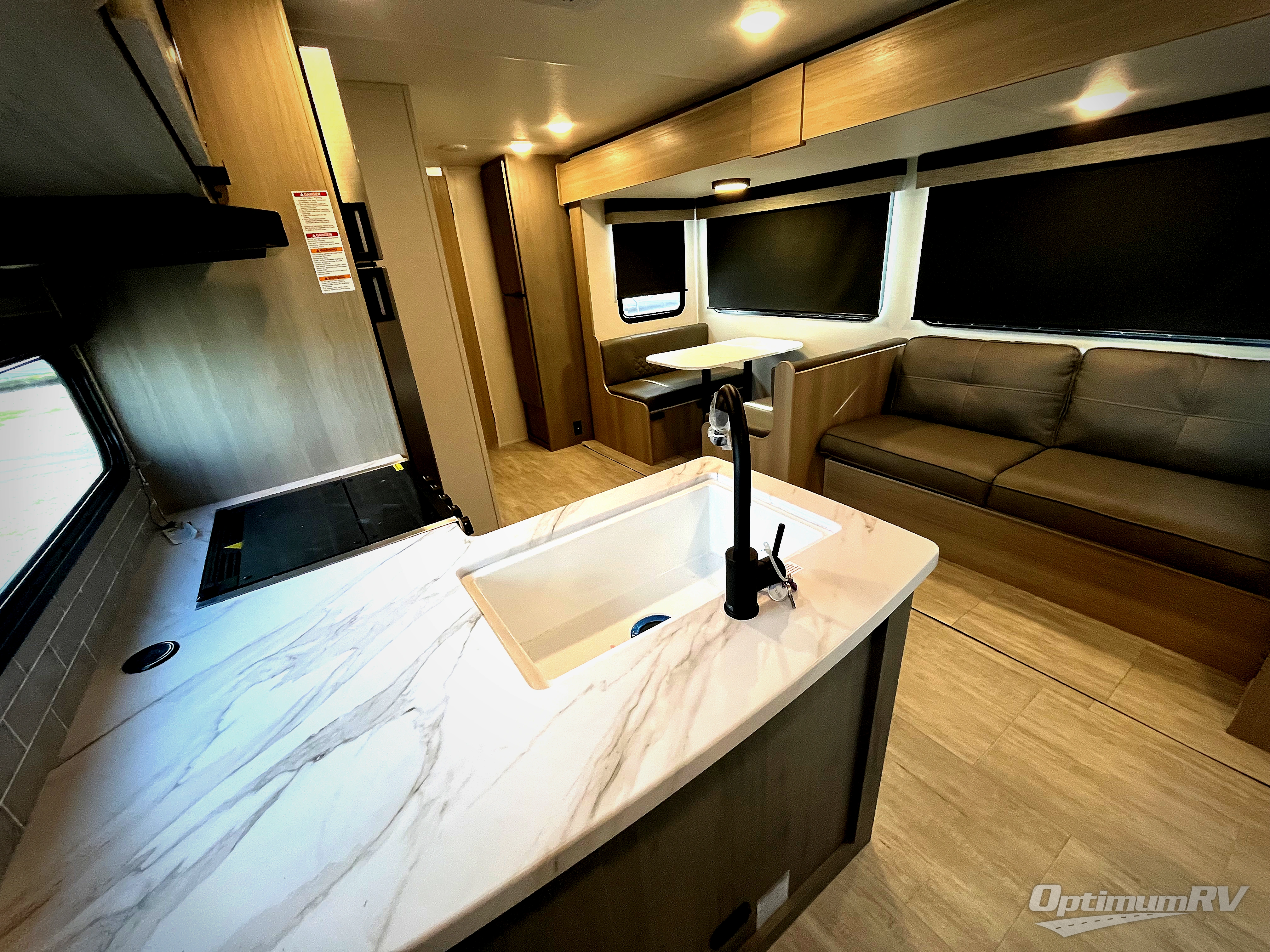 Each Kodiak travel trailer by Dutchmen includes a diamond front plate, easy lube axles, and a power tongue jack for hassle-free towing. The bear cave storage will allow you to bring along all the camp gear, and the power awning with an LED light will create an inviting outdoor space. Head inside to enjoy the designer valances, blackout roller shades, and seamless countertops. There is also HyperDeck flooring that will withstand your many adventures plus a 6' 8" interior height for more head room. A high output furnace and 13.5k BTU A/C will keep you comfortable, and the on-demand tankless water heater will provide instant hot water when you need it!