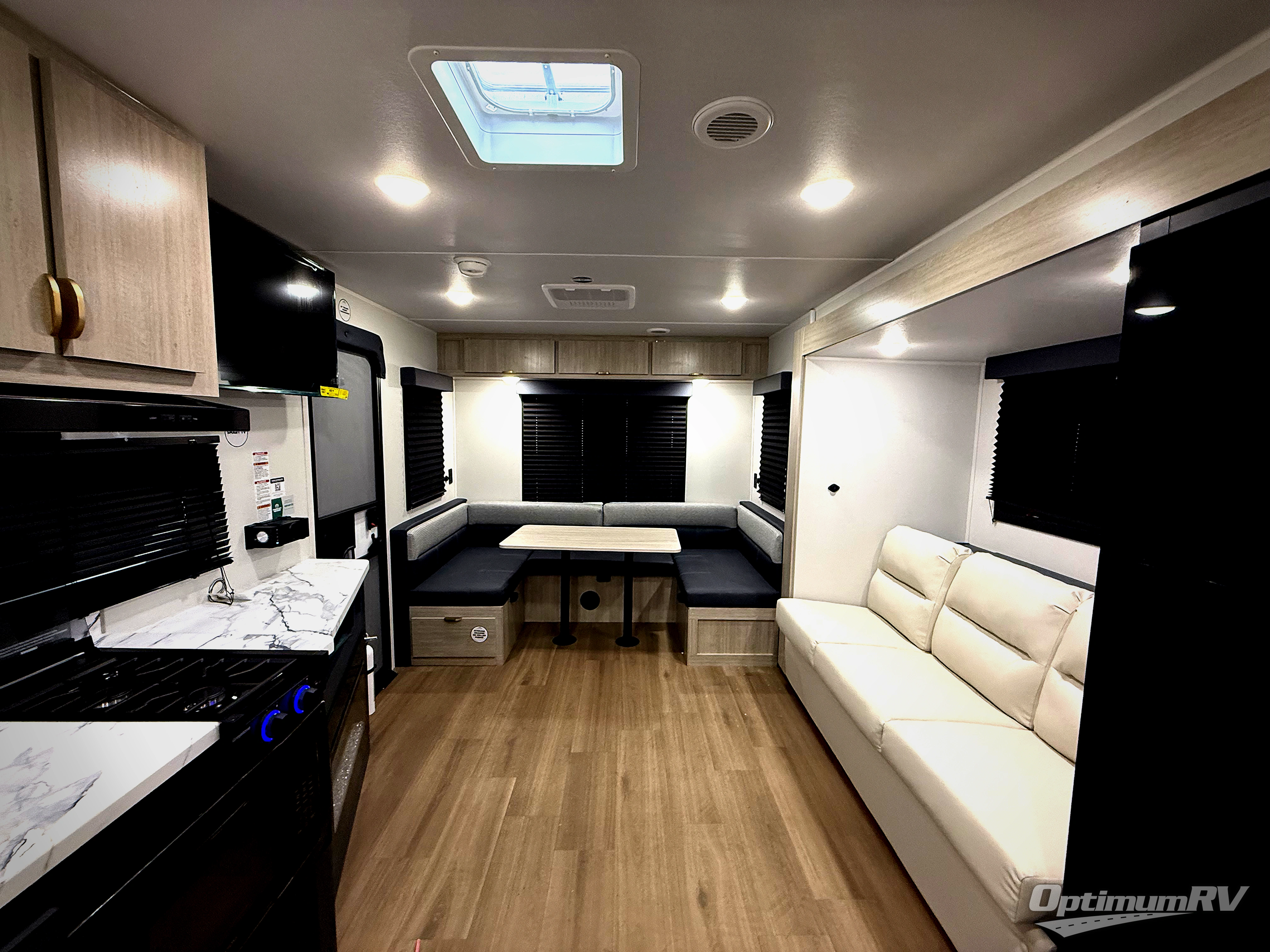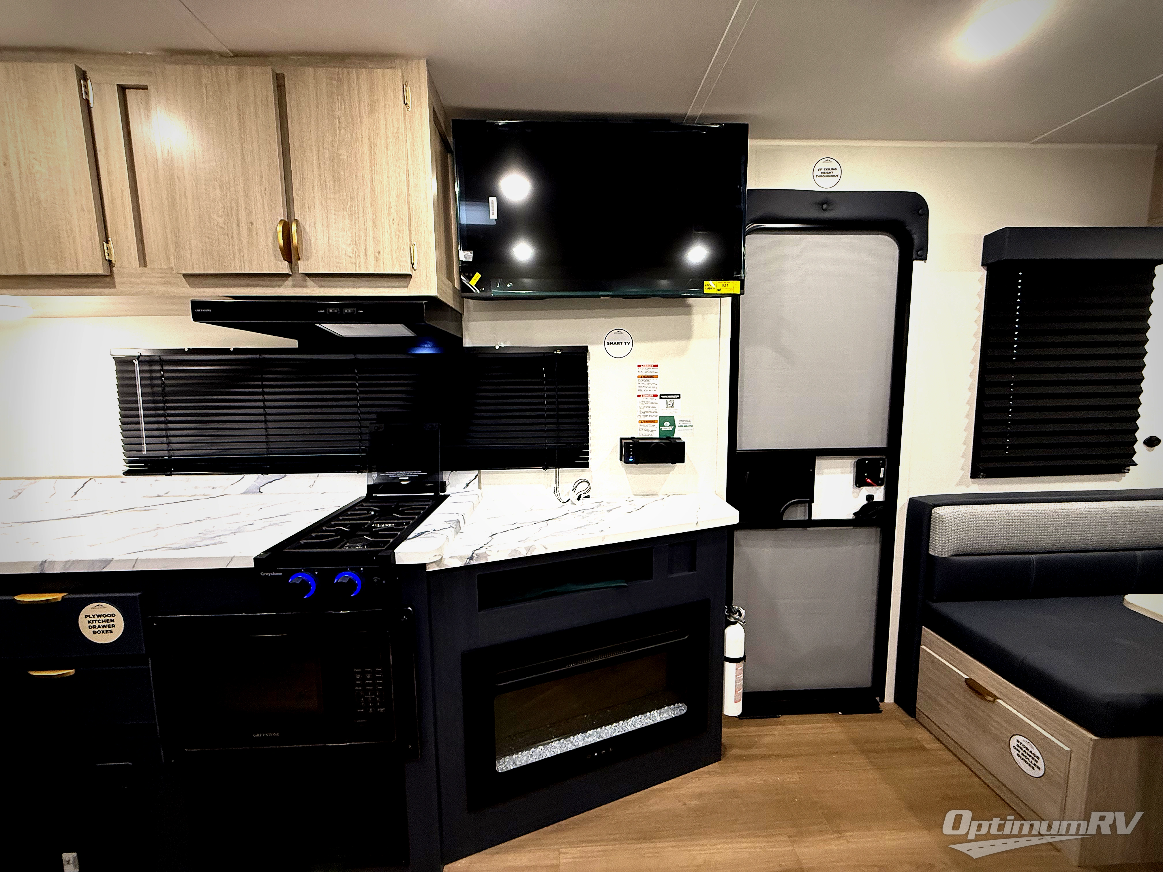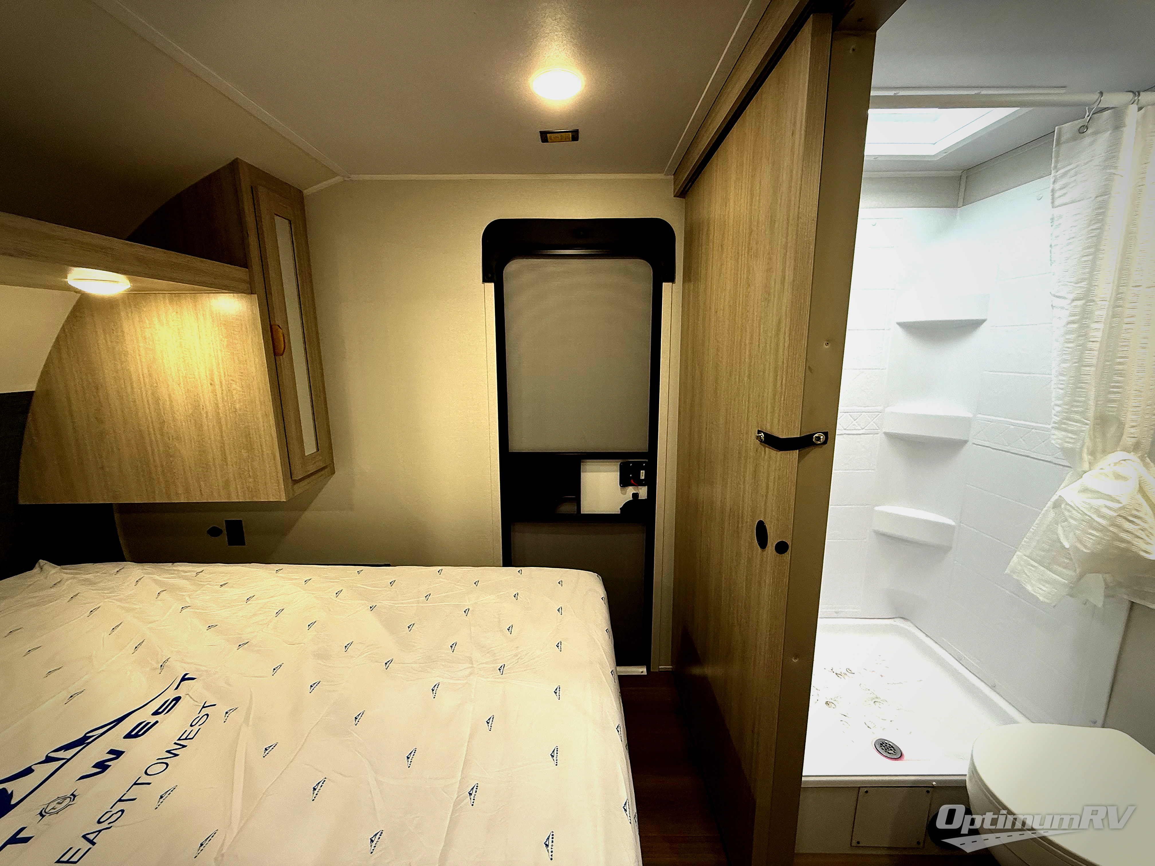 Gather around the U-shaped dinette, perfect for meals, games, or planning your next adventure. The jackknife sofa’s a comfy spot to lounge, binge-watch shows, or chill with the crew. The kitchen’s got you covered with a refrigerator to keep snacks chilled, a pantry for dry goods, plus a two-burner cooktop and microwave to prep meals. Plenty of overhead cabinets keep things tidy. Refresh and recharge in our convenient walk-through bathroom—no backtracking needed. Relax in the spacious front bedroom’s king bed, with ample wardrobes to stash your gear and handy nightstands for those midnight reads. Two entry doors allow for effortless flow in and out, perfect for grabbing gear or stretching your legs.