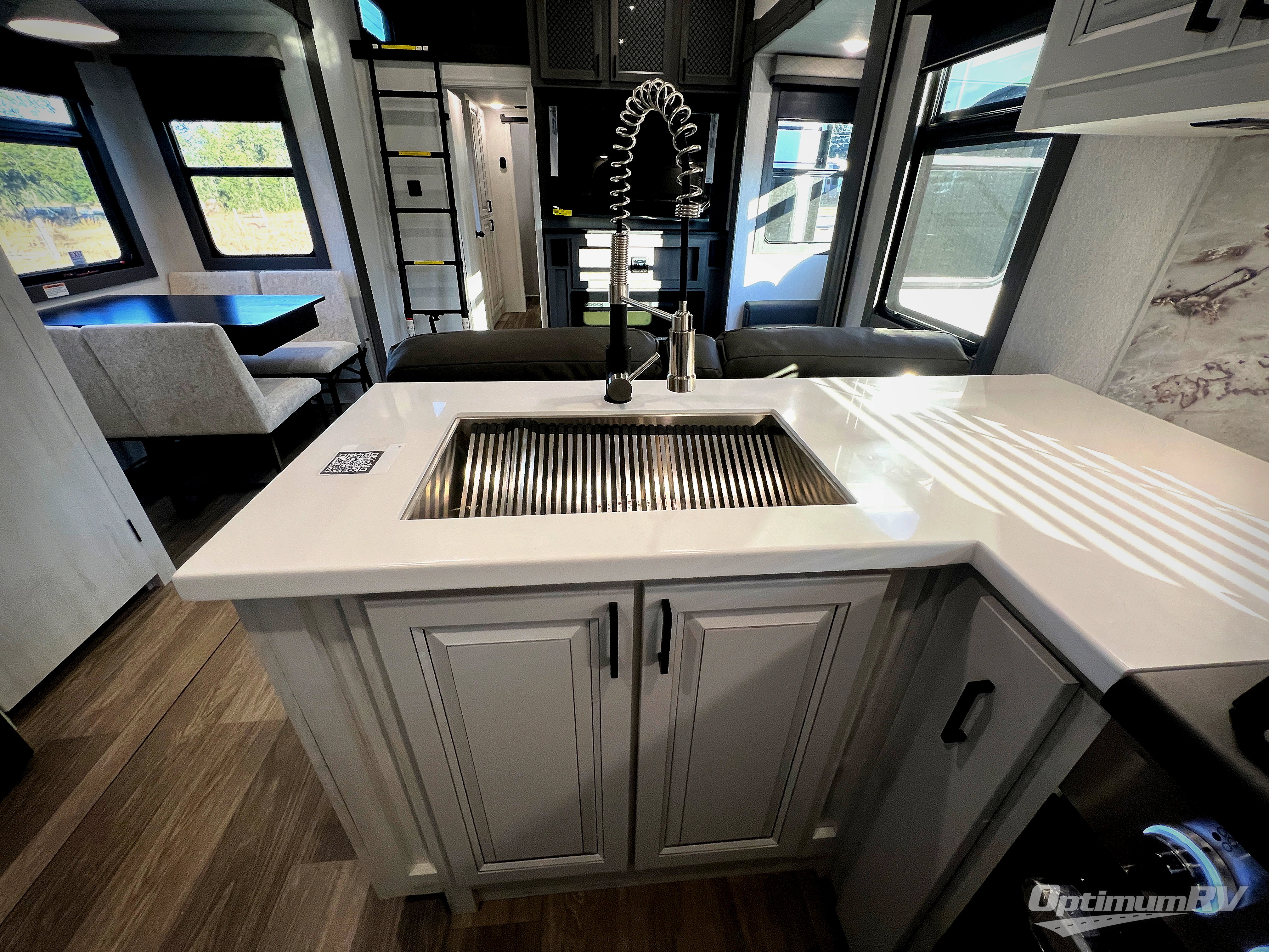 There is just too much luxury to name on the EAST TO WEST Ahara fifth wheel! These units are quite impressive, and once you see them, you'll know what we mean. The Ahara first grabs your attention with its fully painted aerodynamic fiberglass front cap, 102" wide-body chassis, and deep tint square frameless windows. For towing, you'll find a MORryde CRE 3000 suspension, LED marker lights, LED taillights with back-up lights, and rear view camera prep. Traveling in different climates is also made easy with the high-efficiency triple A/C system, 40,000 BTU high-capacity furnace, plus heated, insulated, and enclosed underbelly found within the Climate Package. Head inside to enjoy Slow Rise roller shades, a flush floor kitchen slide to help prevent trips, and solid surface countertops in the kitchen and bath to name a few luxuries!