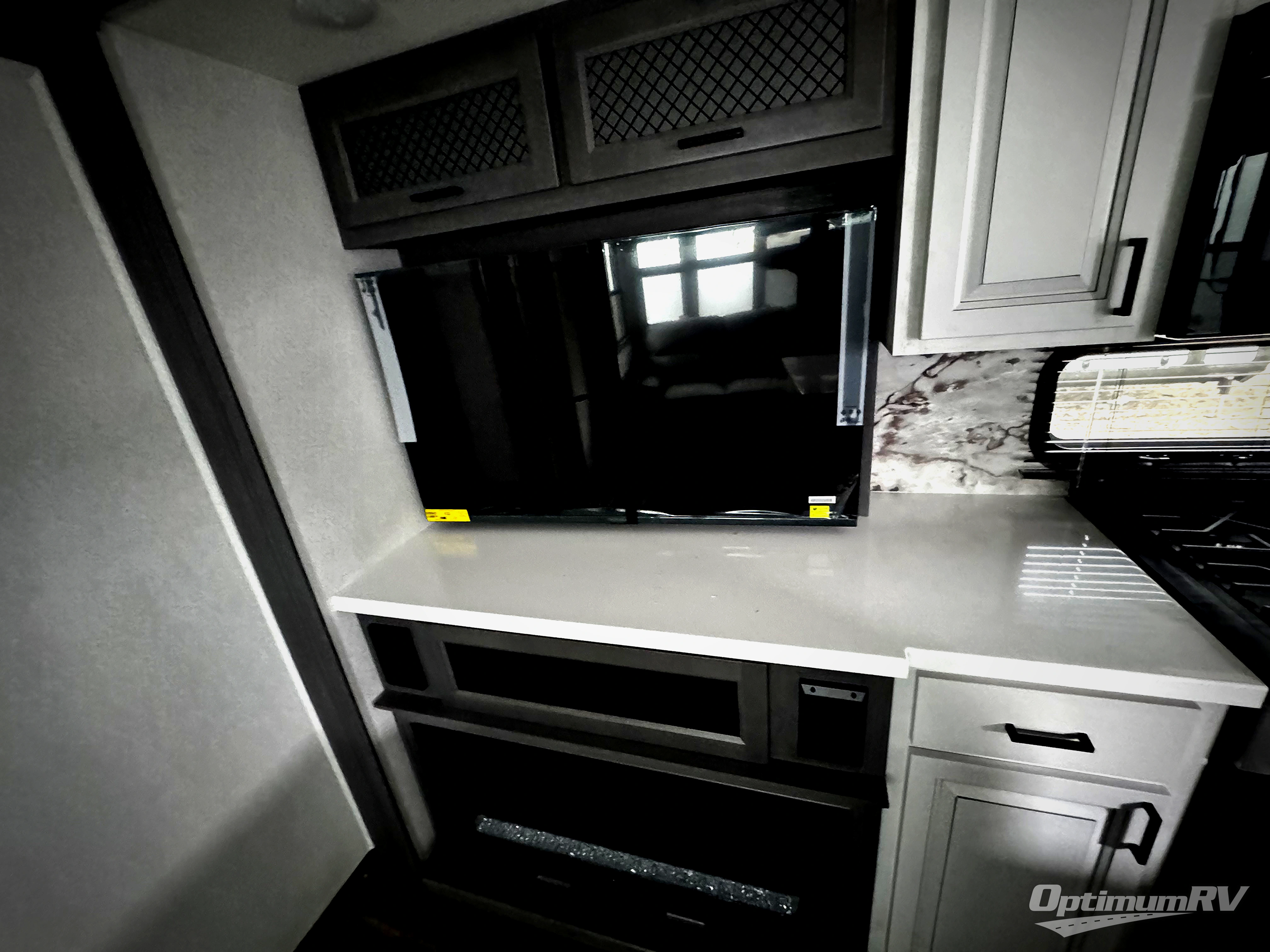 There is just too much luxury to name on the EAST TO WEST Ahara fifth wheel! These units are quite impressive, and once you see them, you'll know what we mean. The Ahara first grabs your attention with its fully painted aerodynamic fiberglass front cap, 102" wide-body chassis, and deep tint square frameless windows. For towing, you'll find a MORryde CRE 3000 suspension, LED marker lights, LED taillights with back-up lights, and rear view camera prep. Traveling in different climates is also made easy with the high-efficiency triple A/C system, 40,000 BTU high-capacity furnace, plus heated, insulated, and enclosed underbelly found within the Climate Package. Head inside to enjoy Slow Rise roller shades, a flush floor kitchen slide to help prevent trips, and solid surface countertops in the kitchen and bath to name a few luxuries!