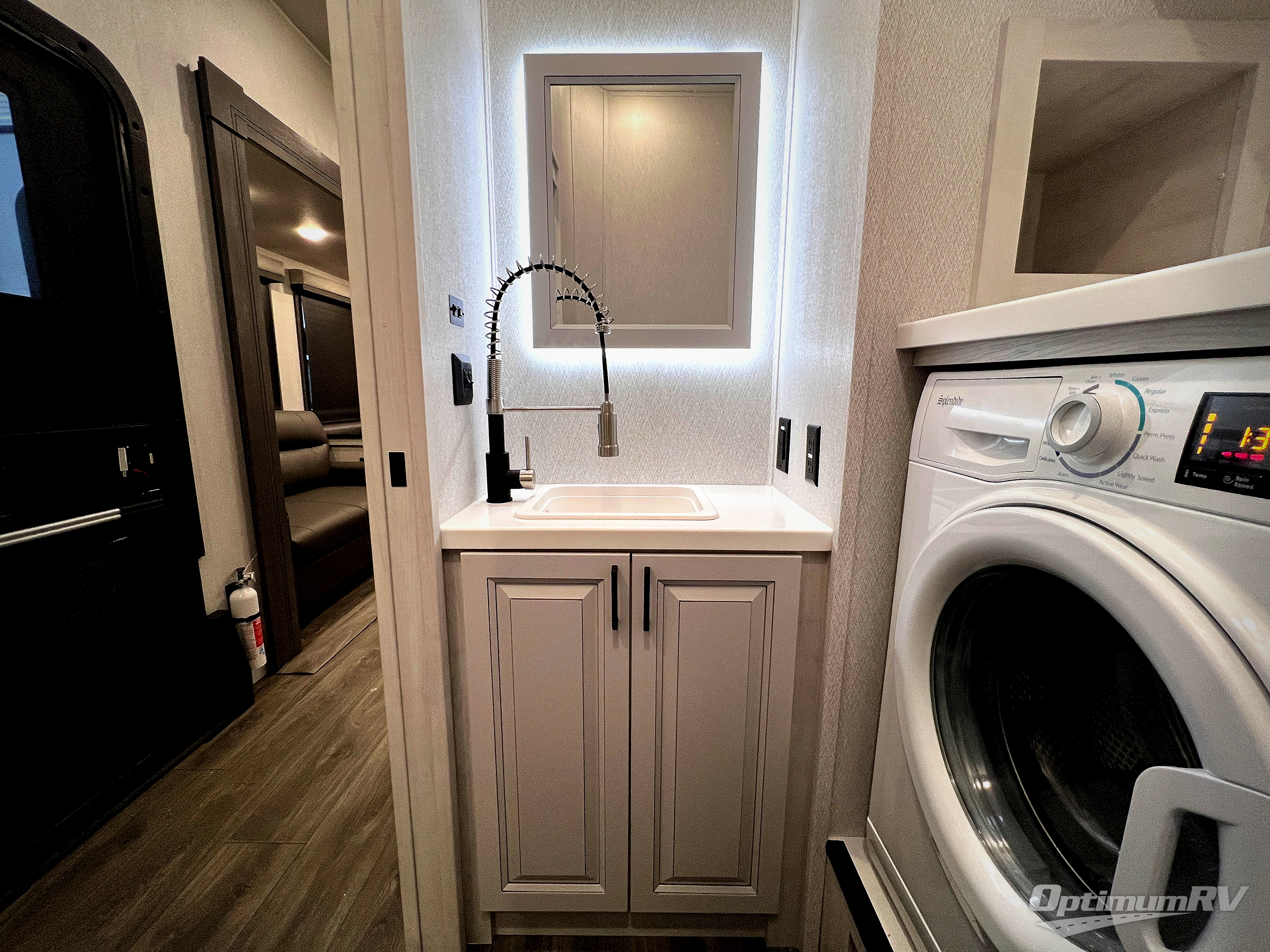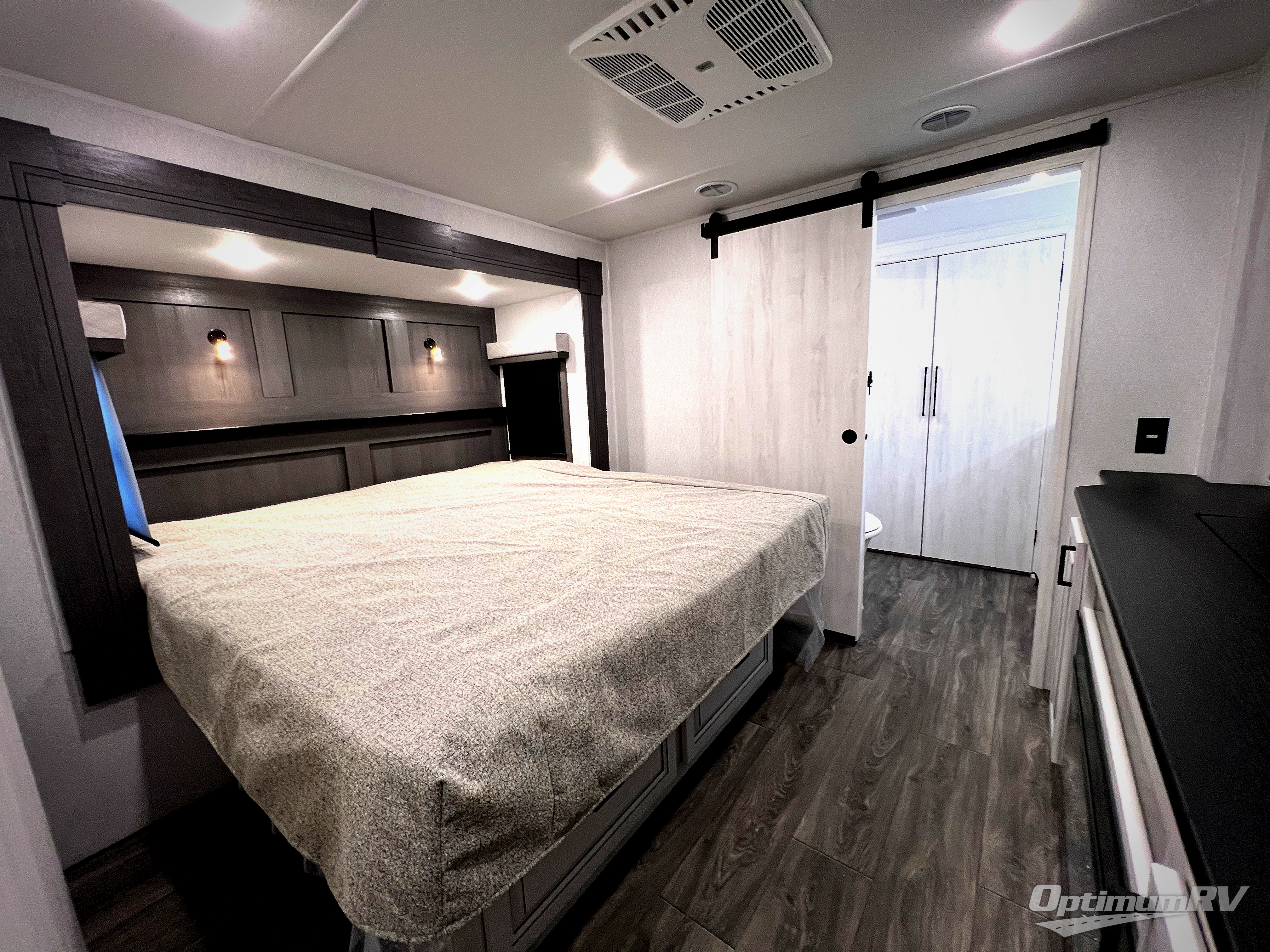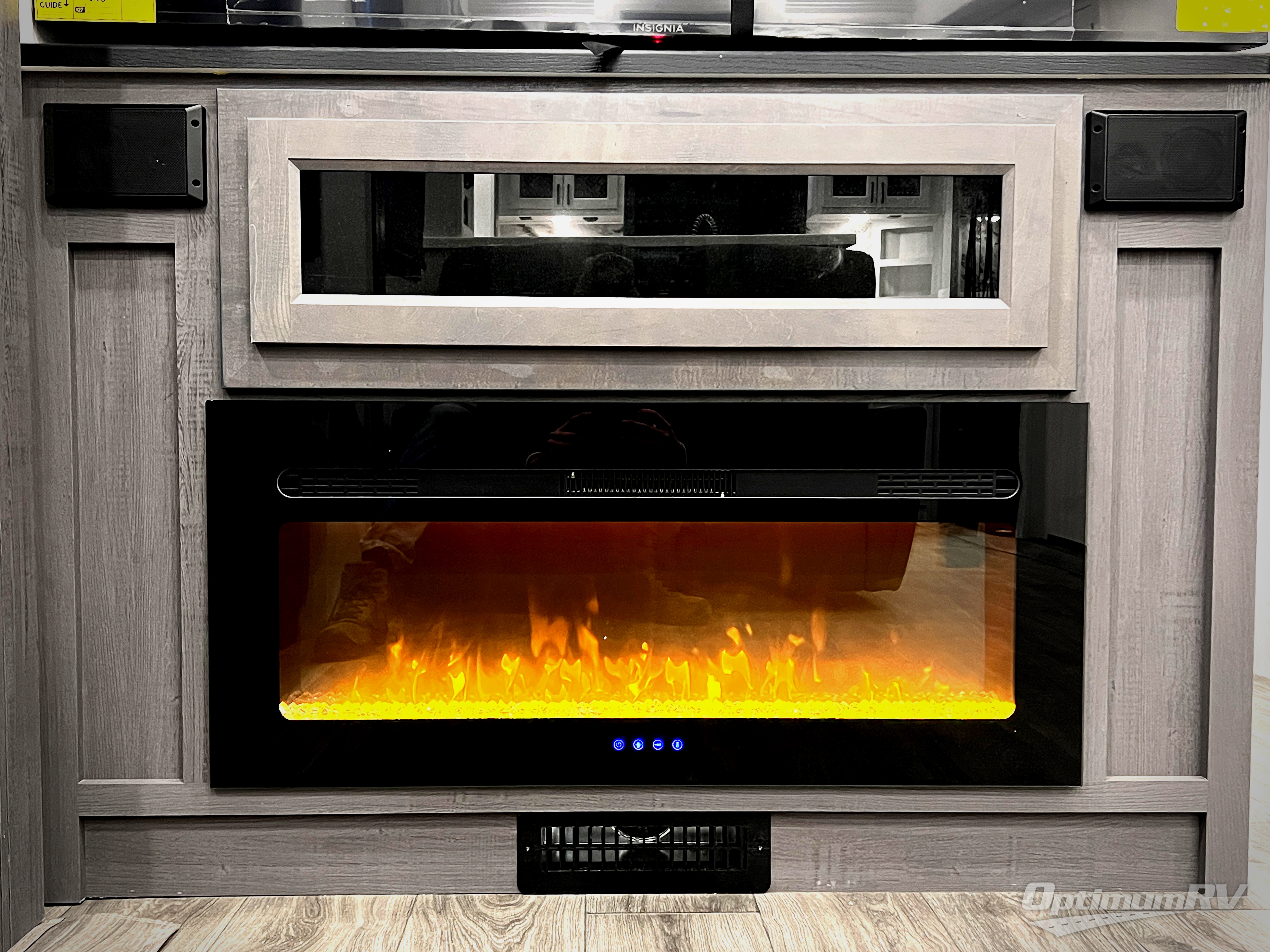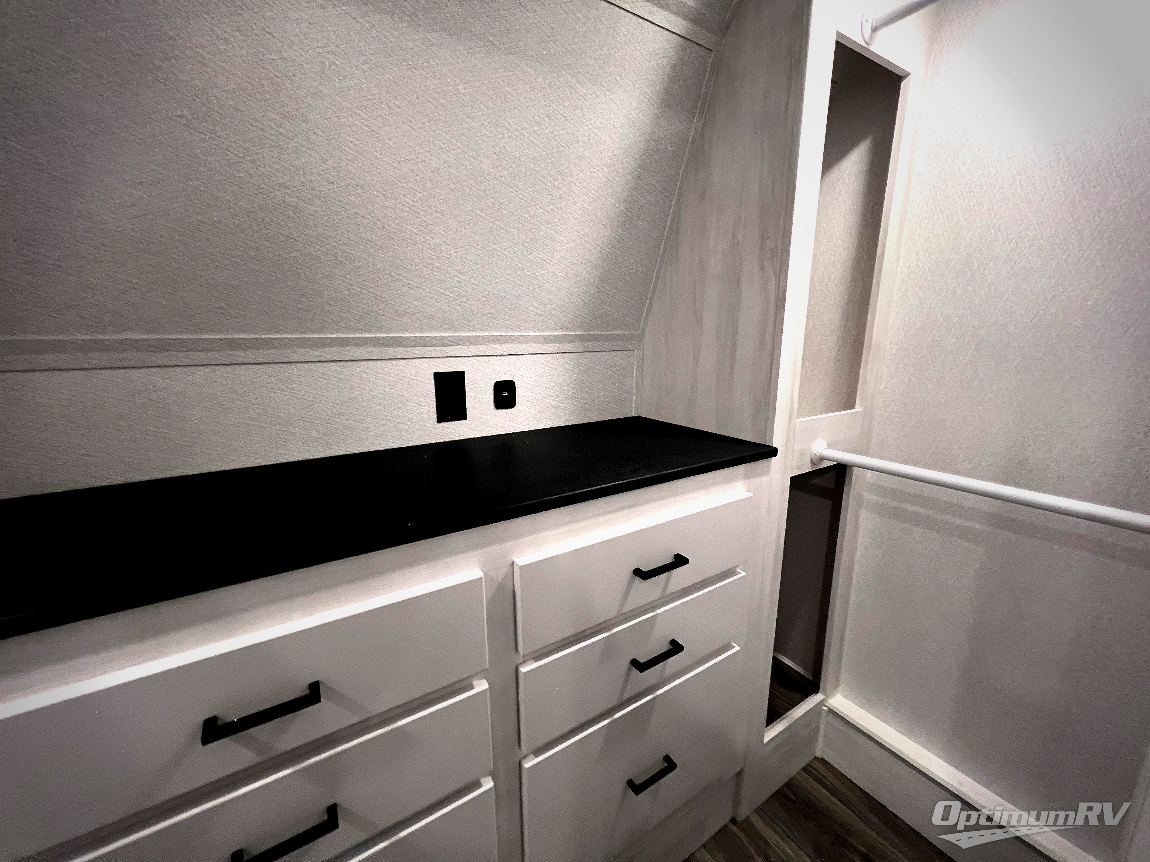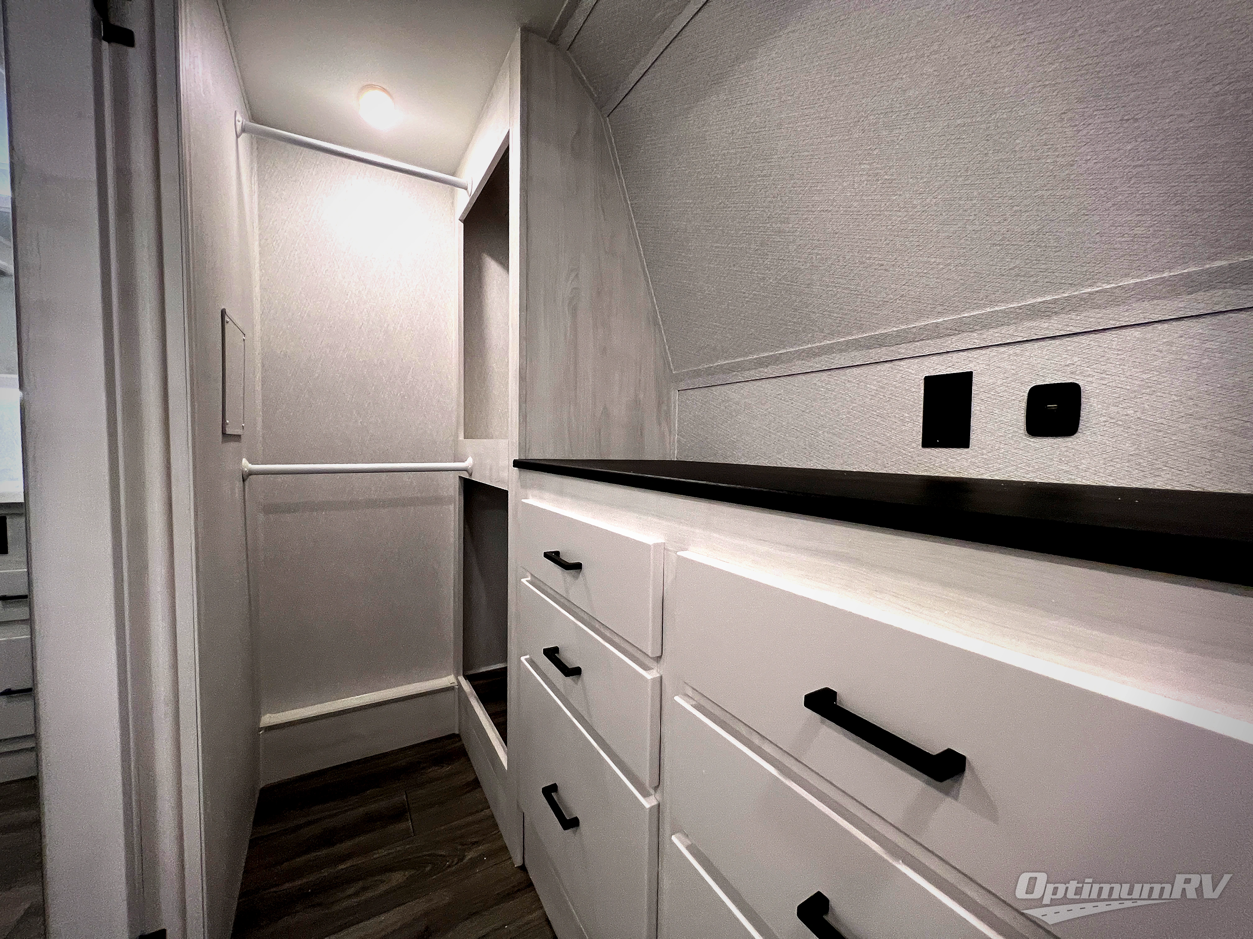 The spacious rear kitchen is equipped with a 30” microwave, 24” residential oven, overhead cabinets, breakfast bar with bar stools, walk-in pantry, and 16 cu. ft. refrigerator, perfect for cooking all your favorite dishes with the greatest convenience The living room is the heart of the home, featuring a desk with chairs, theater seating, two 60” trifold sofas, a TV with fireplace, and more. And when nature calls, you'll appreciate the convenient half bath with overhead cabinets and washer and dryer prep. The main bedroom is a serene retreat, featuring a king bed, drawers under the bed, a bedroom fireplace, and more. This is the perfect place to relax and recharge after a long day of adventure, and with a front full bathroom featuring a 30” x 40” shower, dual sink vanity, walk-in closet, dresser/drawers, you'll have everything you need to stay clean and comfortable on the go. Outside, you'll find not one, but two awnings to providing plenty of shade and protection from the elements.