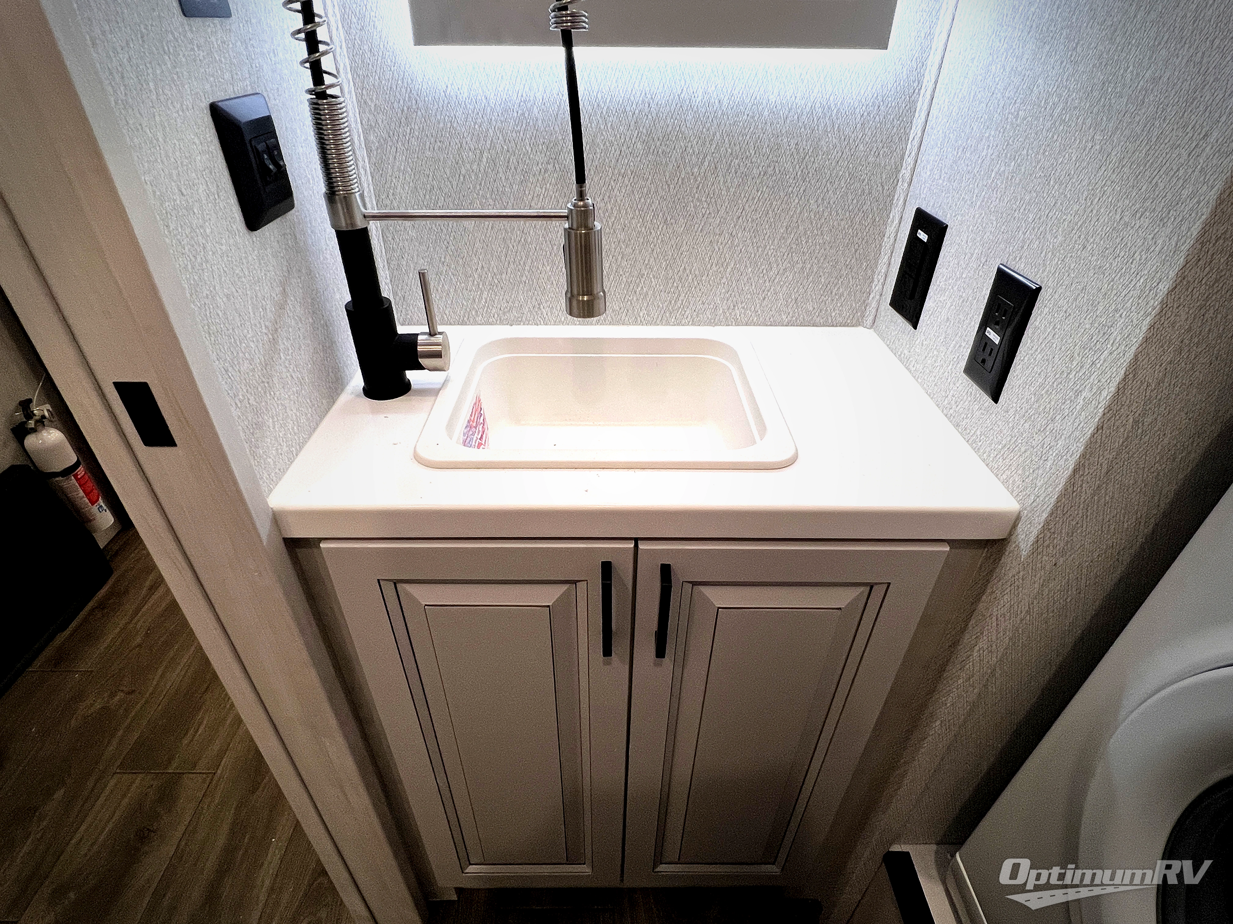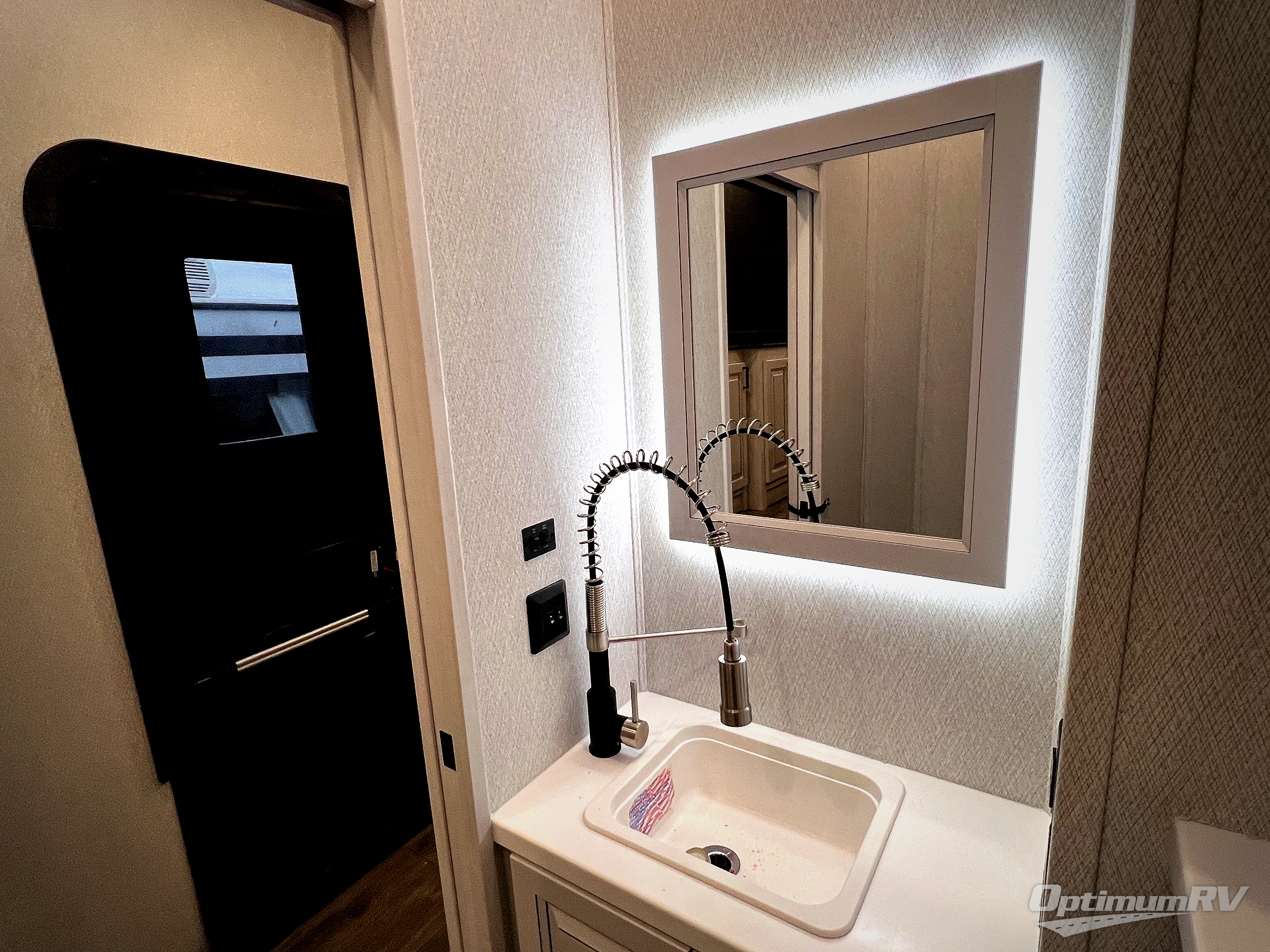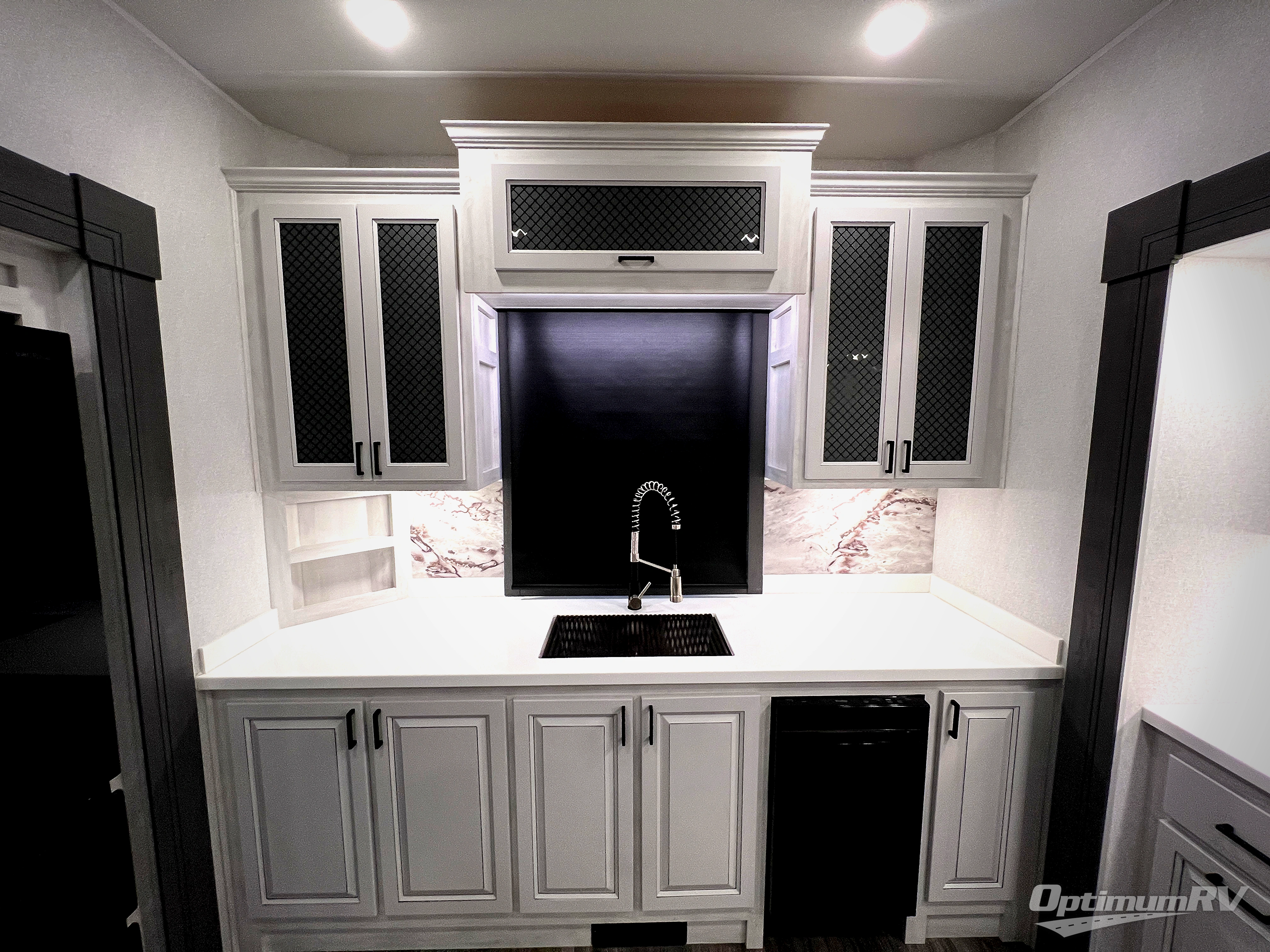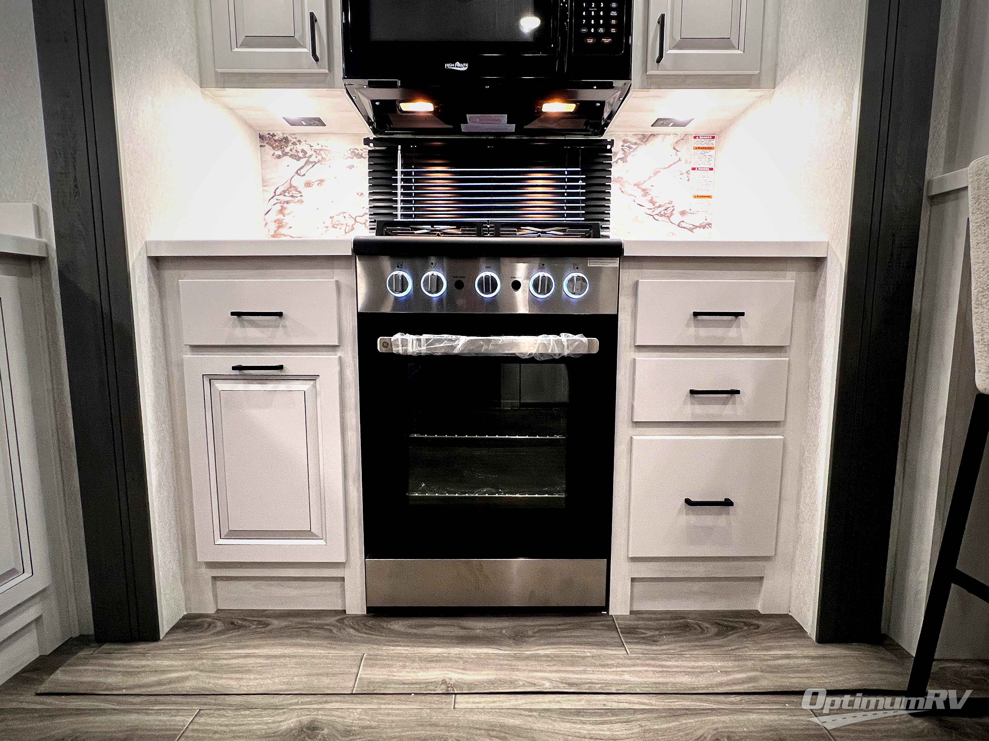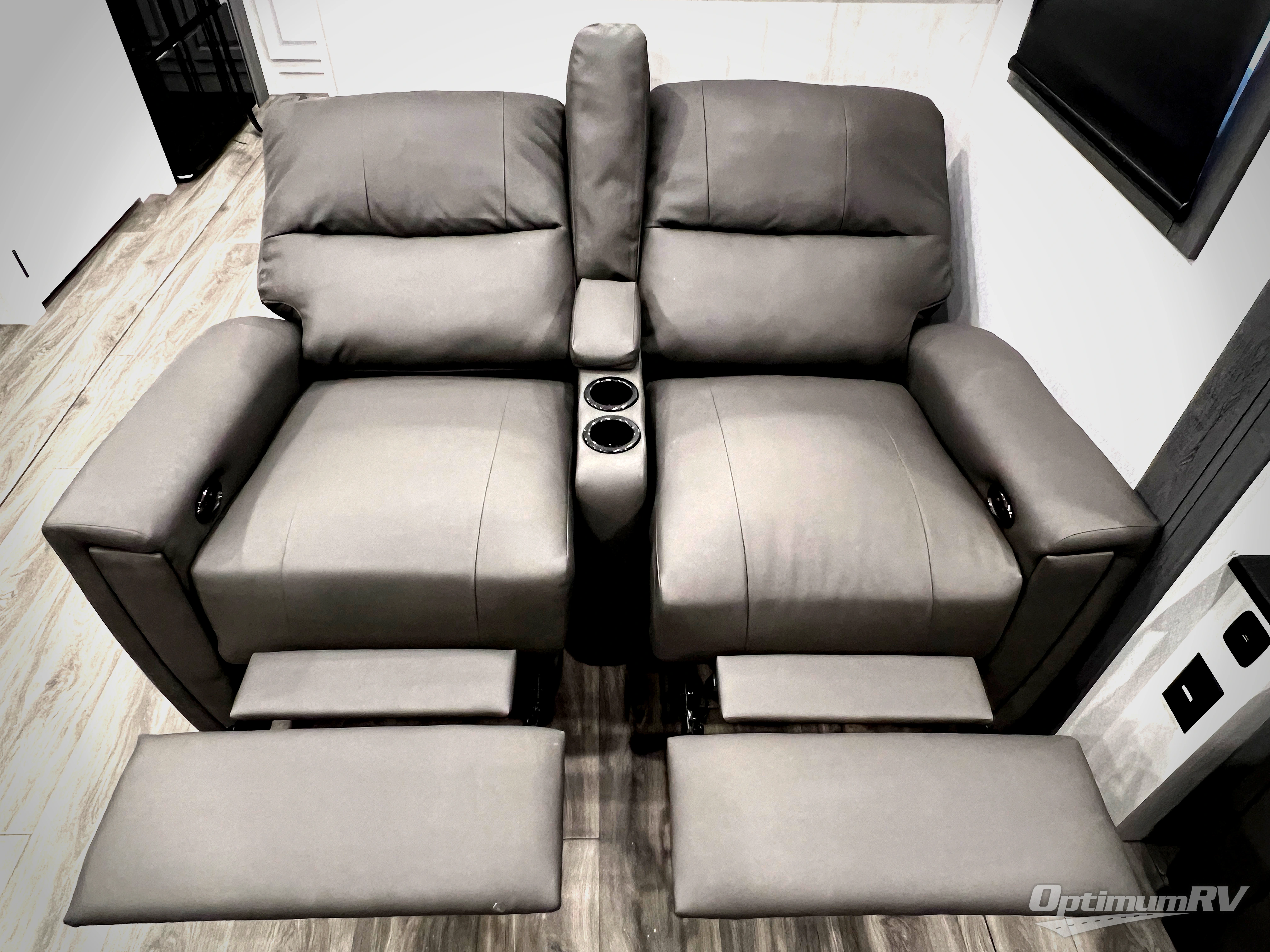 The spacious rear kitchen is equipped with a 30” microwave, 24” residential oven, overhead cabinets, breakfast bar with bar stools, walk-in pantry, and 16 cu. ft. refrigerator, perfect for cooking all your favorite dishes with the greatest convenience The living room is the heart of the home, featuring a desk with chairs, theater seating, two 60” trifold sofas, a TV with fireplace, and more. And when nature calls, you'll appreciate the convenient half bath with overhead cabinets and washer and dryer prep. The main bedroom is a serene retreat, featuring a king bed, drawers under the bed, a bedroom fireplace, and more. This is the perfect place to relax and recharge after a long day of adventure, and with a front full bathroom featuring a 30” x 40” shower, dual sink vanity, walk-in closet, dresser/drawers, you'll have everything you need to stay clean and comfortable on the go. Outside, you'll find not one, but two awnings to providing plenty of shade and protection from the elements.