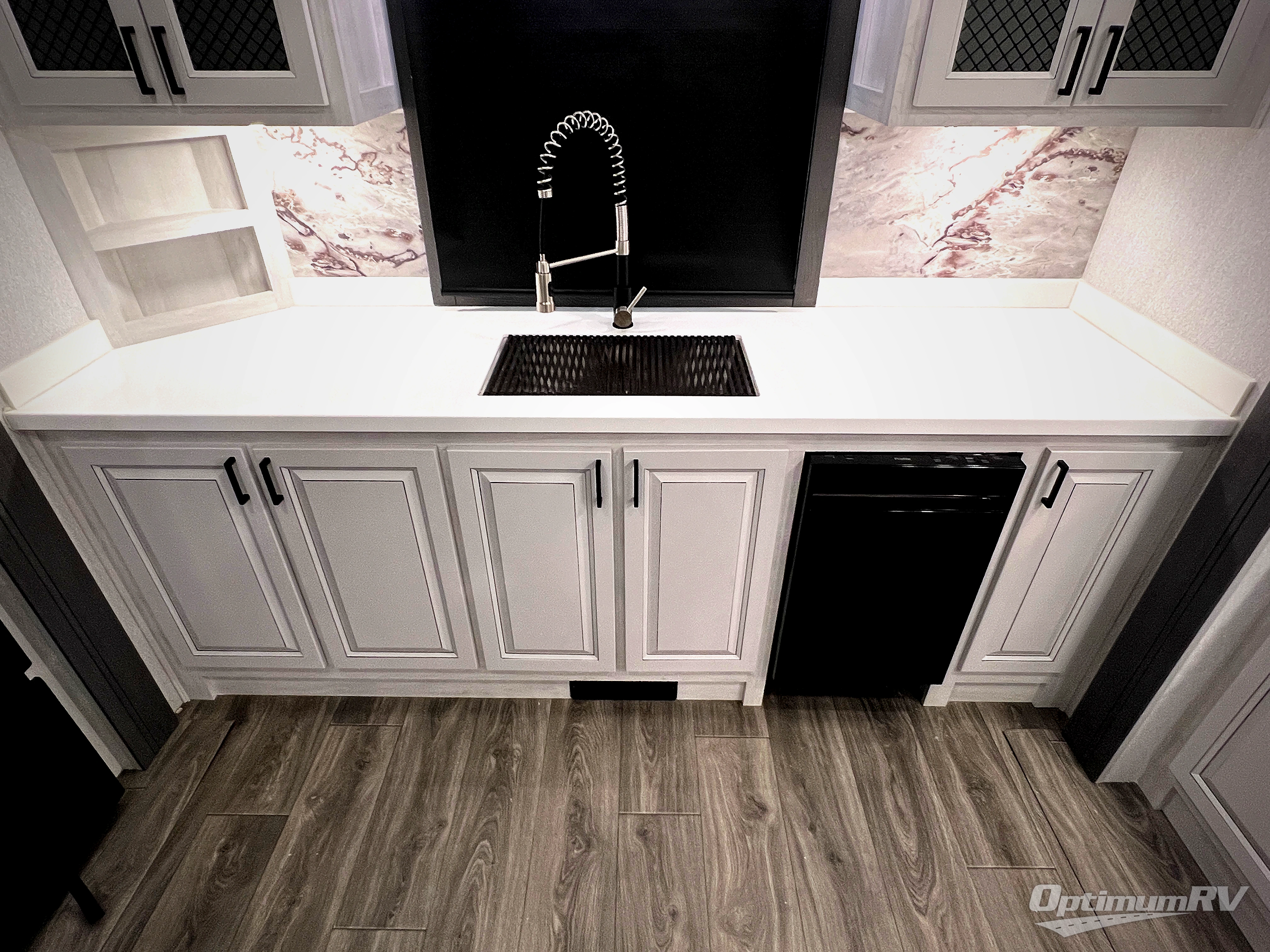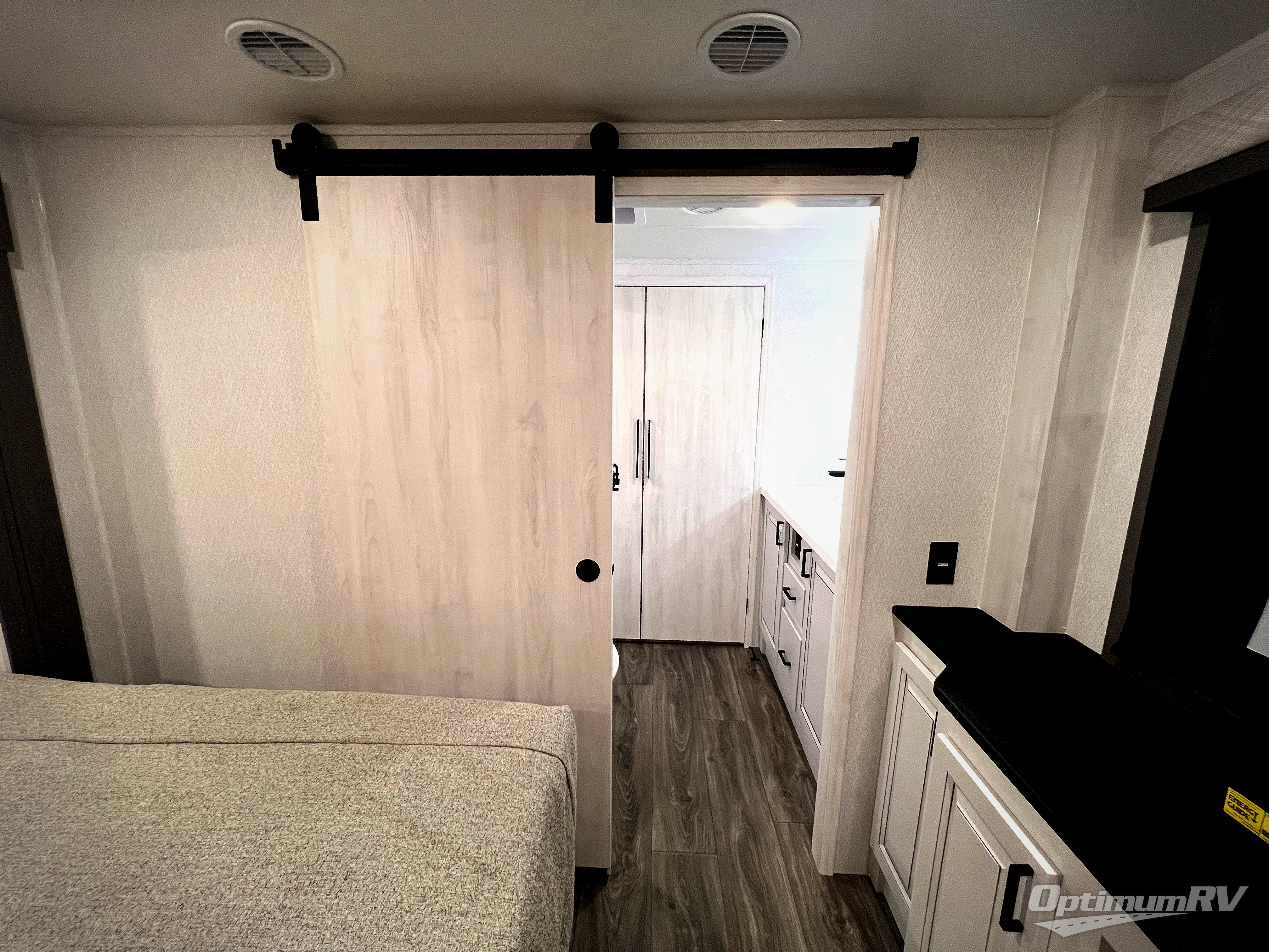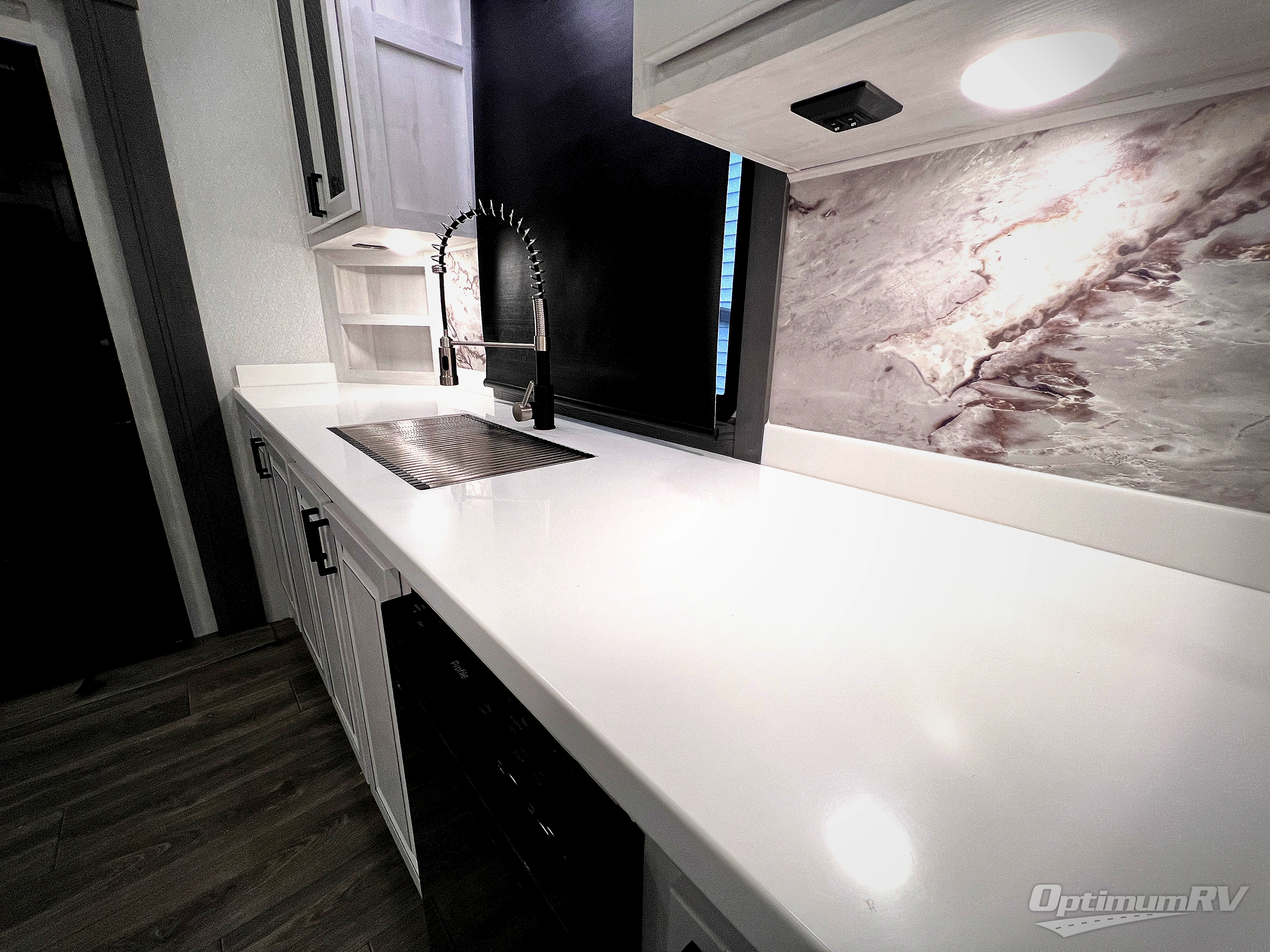There is just too much luxury to name on the EAST TO WEST Ahara fifth wheel! These units are quite impressive, and once you see them, you'll know what we mean. The Ahara first grabs your attention with its fully painted aerodynamic fiberglass front cap, 102" wide-body chassis, and deep tint square frameless windows. For towing, you'll find a MORryde CRE 3000 suspension, LED marker lights, LED taillights with back-up lights, and rear view camera prep. Traveling in different climates is also made easy with the high-efficiency triple A/C system, 40,000 BTU high-capacity furnace, plus heated, insulated, and enclosed underbelly found within the Climate Package. Head inside to enjoy Slow Rise roller shades, a flush floor kitchen slide to help prevent trips, and solid surface countertops in the kitchen and bath to name a few luxuries!