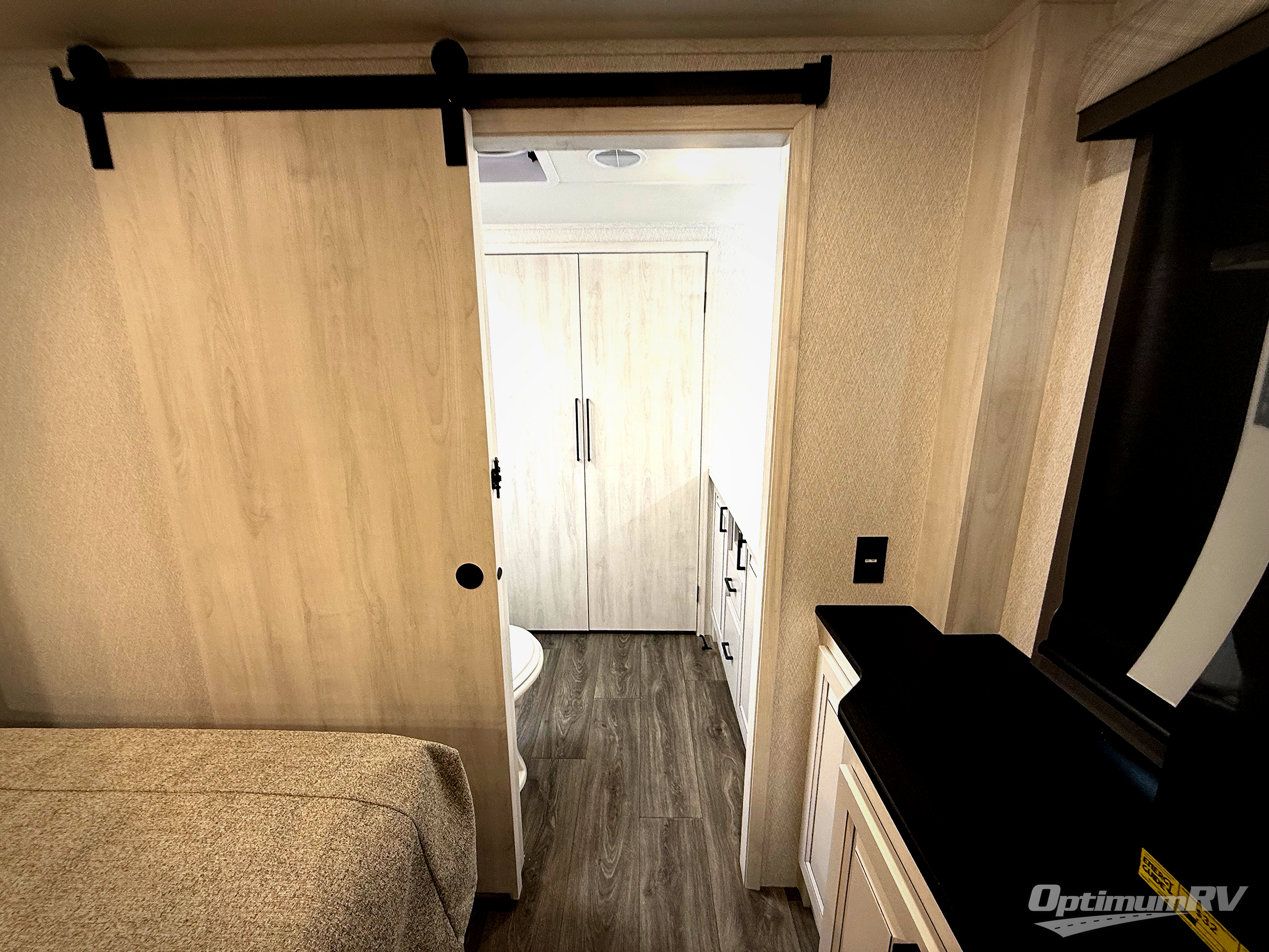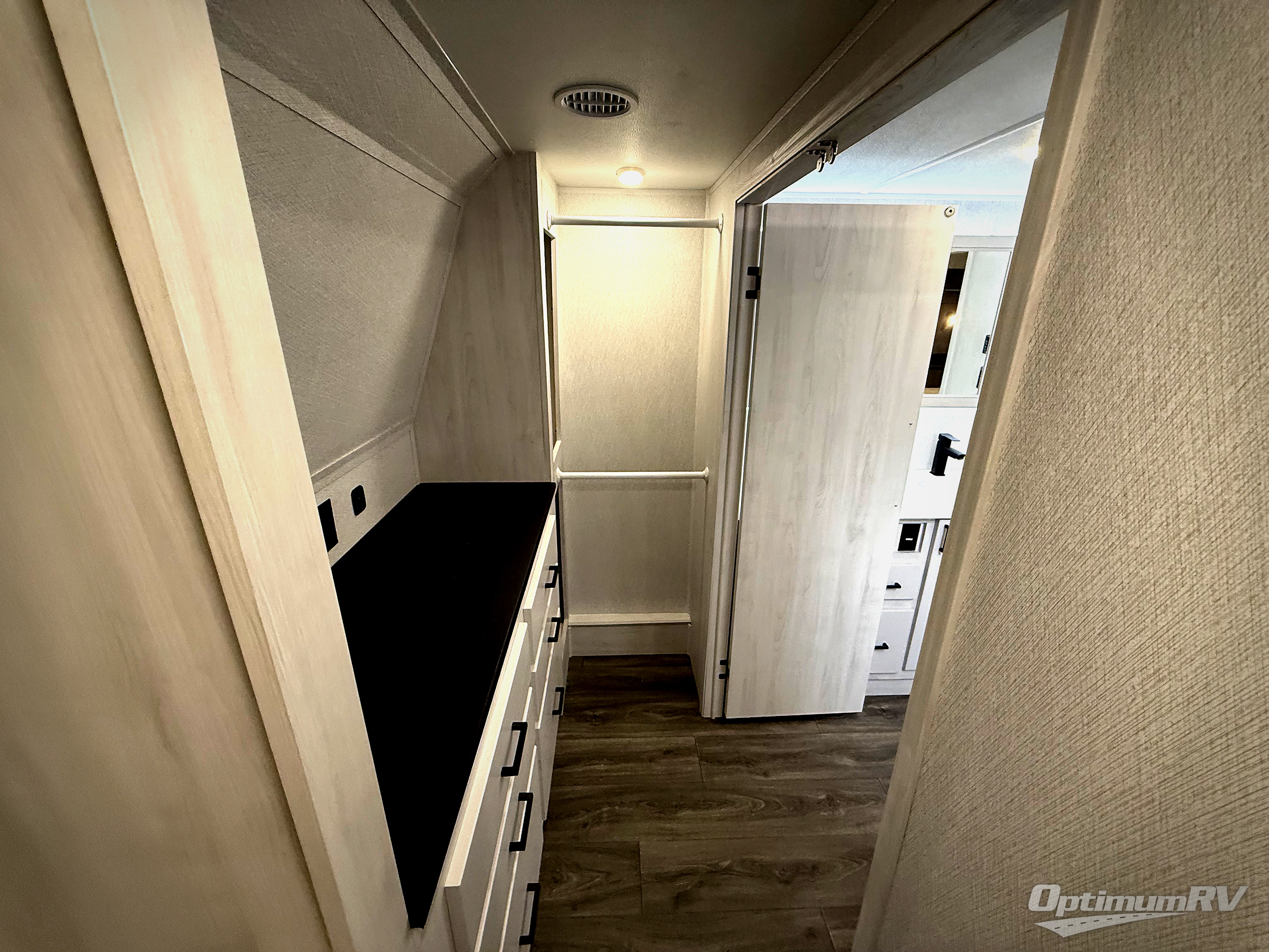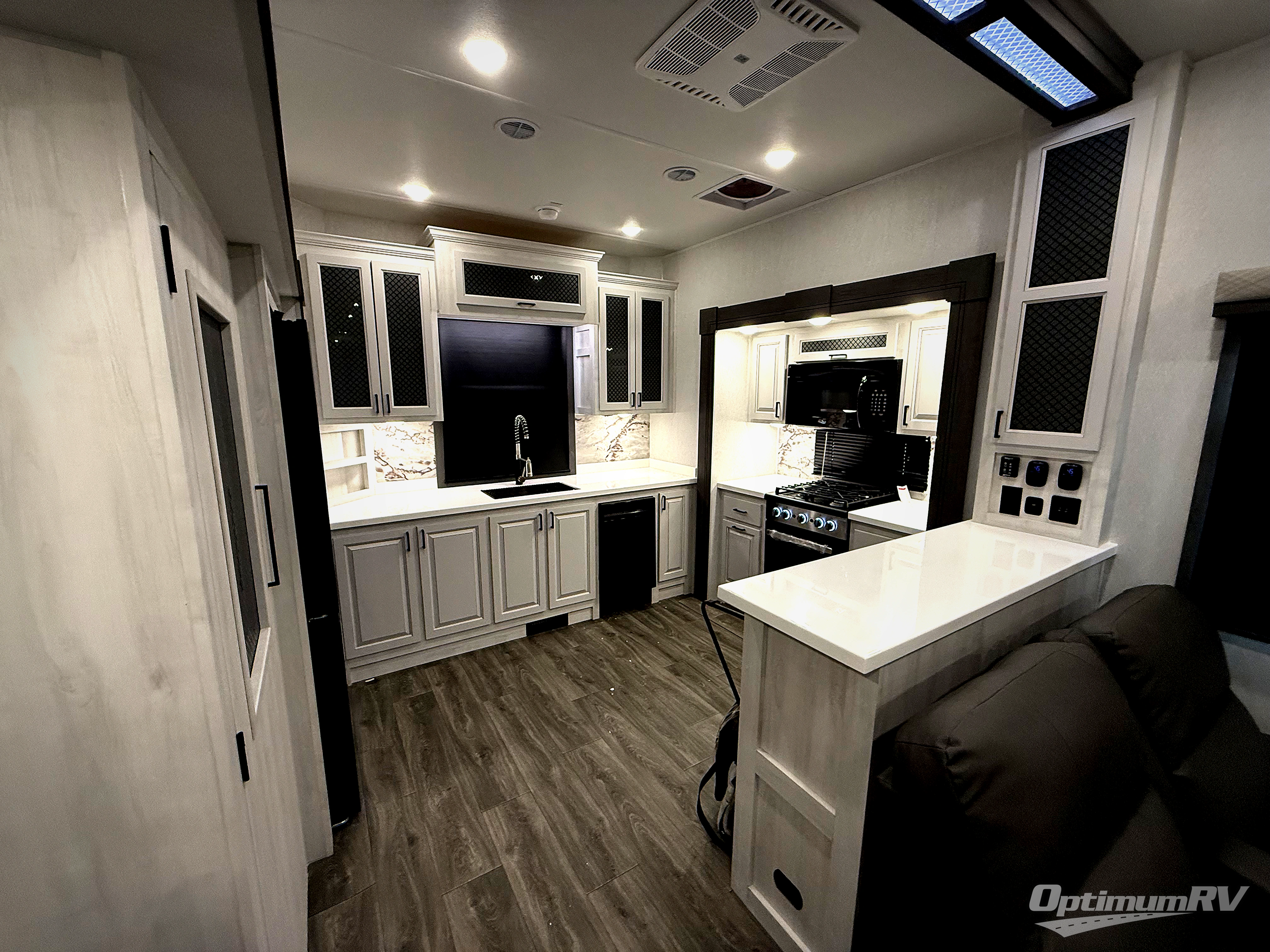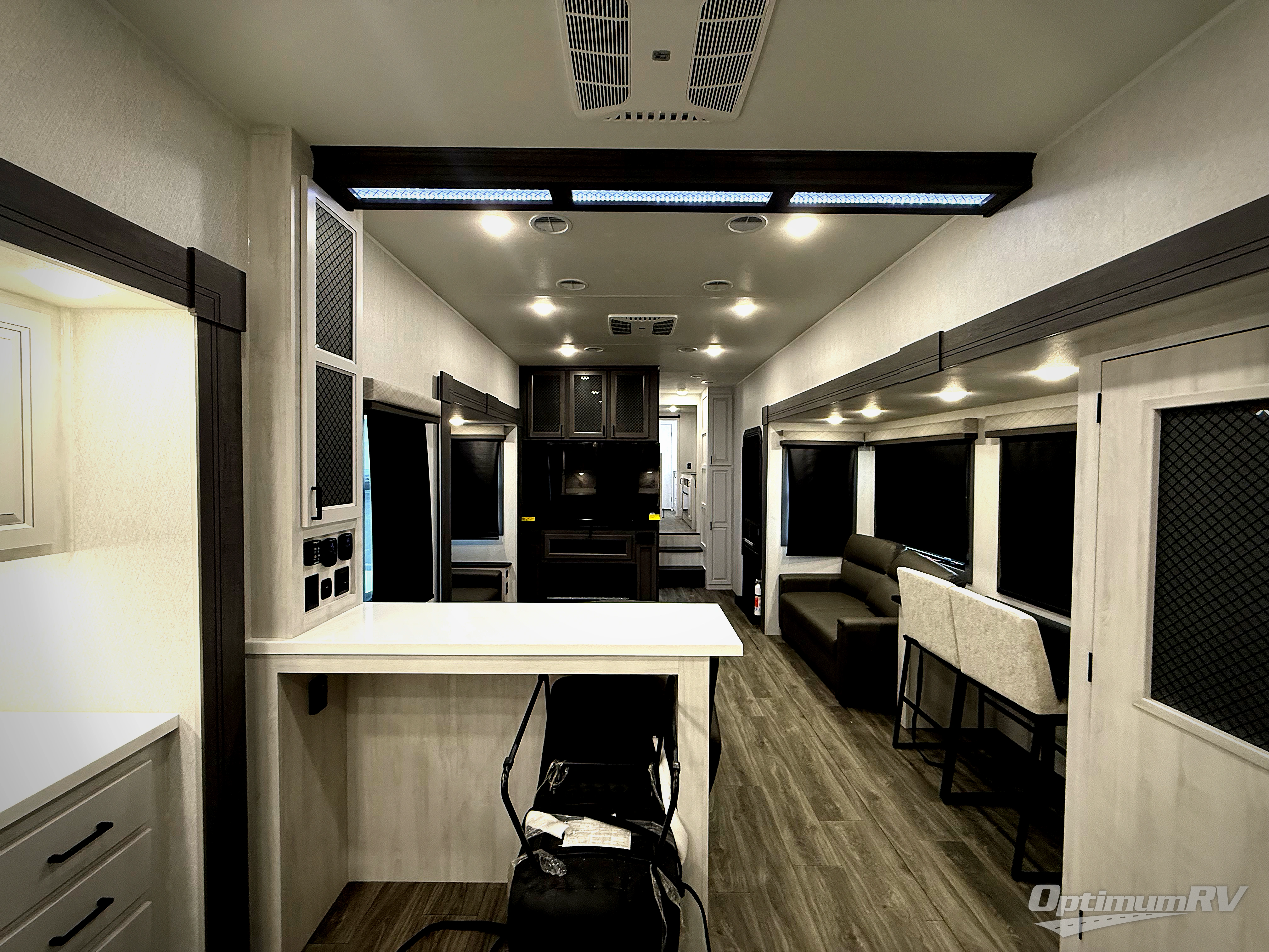 There is just too much luxury to name on the EAST TO WEST Ahara fifth wheel! These units are quite impressive, and once you see them, you'll know what we mean. The Ahara first grabs your attention with its fully painted aerodynamic fiberglass front cap, 102" wide-body chassis, and deep tint square frameless windows. For towing, you'll find a MORryde CRE 3000 suspension, LED marker lights, LED taillights with back-up lights, and rear view camera prep. Traveling in different climates is also made easy with the high-efficiency triple A/C system, 40,000 BTU high-capacity furnace, plus heated, insulated, and enclosed underbelly found within the Climate Package. Head inside to enjoy Slow Rise roller shades, a flush floor kitchen slide to help prevent trips, and solid surface countertops in the kitchen and bath to name a few luxuries!