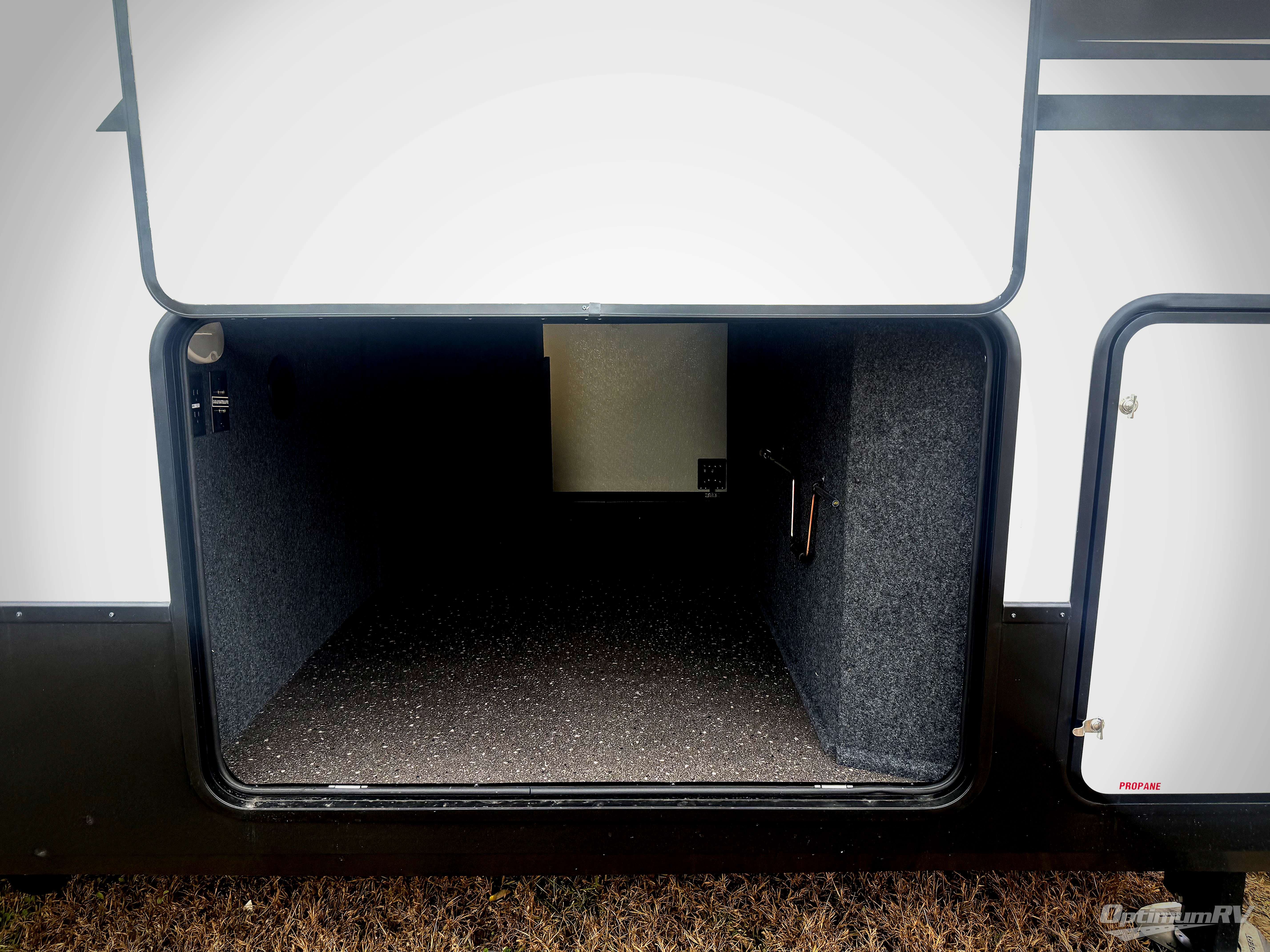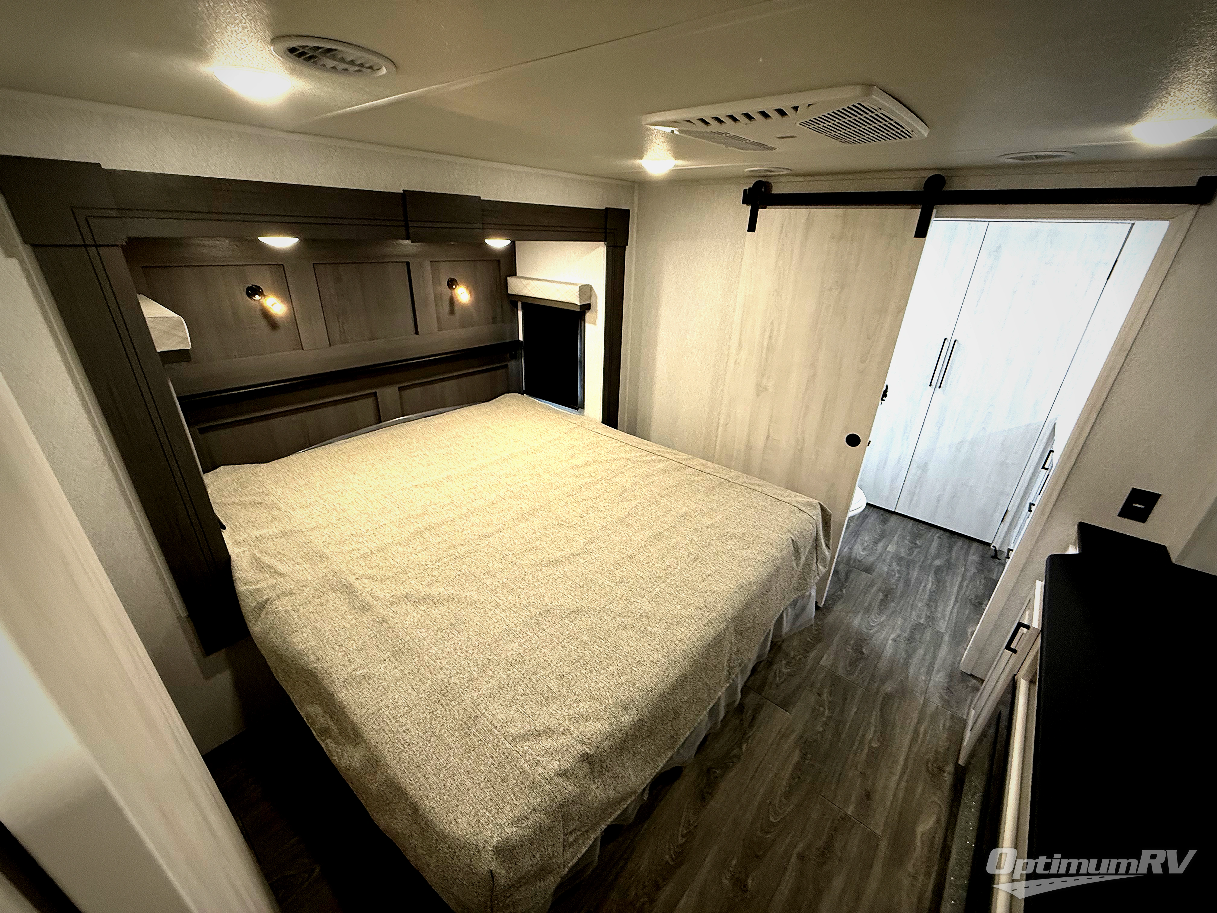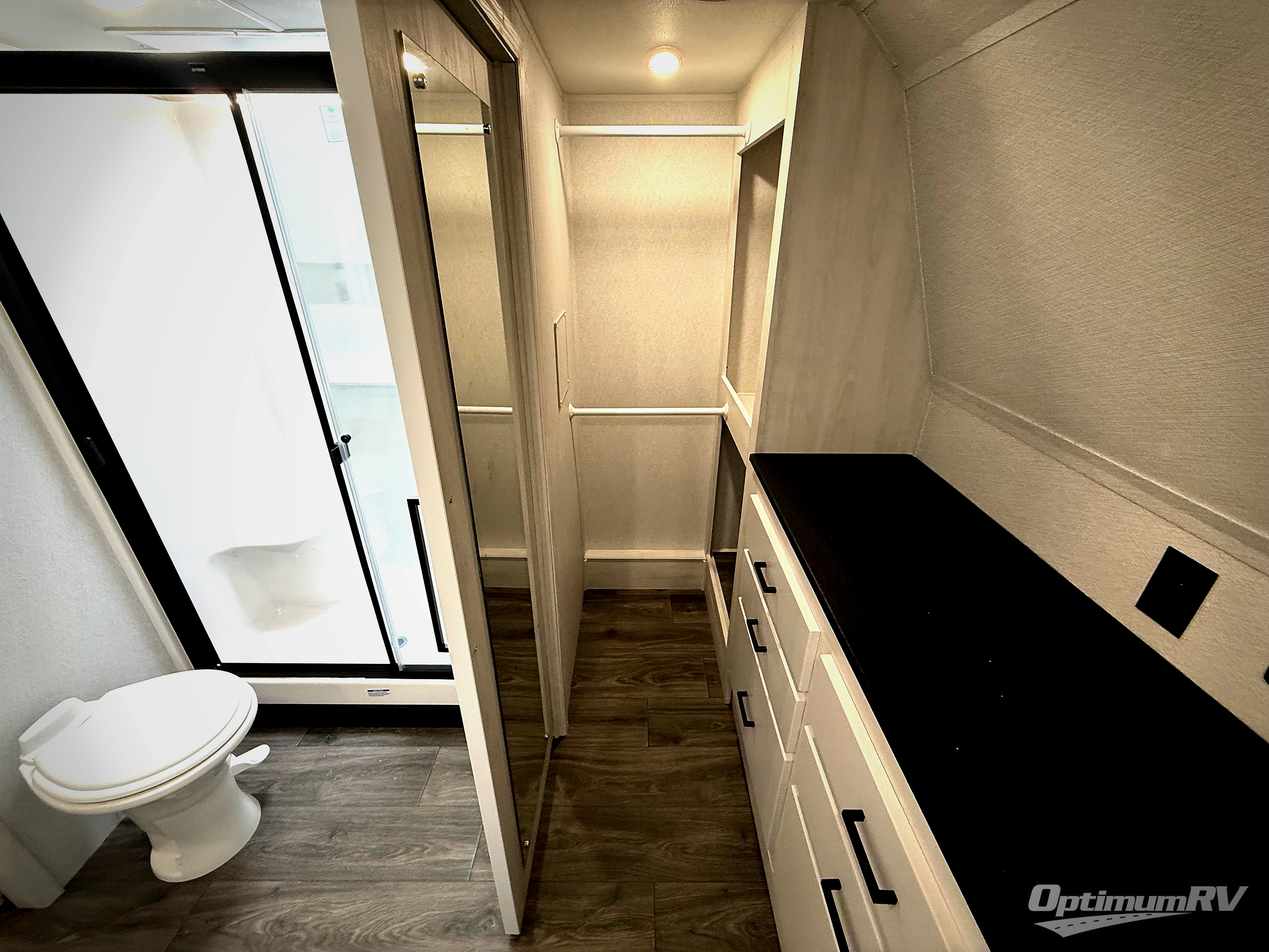 The spacious rear kitchen is equipped with a 30” microwave, 24” residential oven, overhead cabinets, breakfast bar with bar stools, walk-in pantry, and 16 cu. ft. refrigerator, perfect for cooking all your favorite dishes with the greatest convenience The living room is the heart of the home, featuring a desk with chairs, theater seating, two 60” trifold sofas, a TV with fireplace, and more. And when nature calls, you'll appreciate the convenient half bath with overhead cabinets and washer and dryer prep. The main bedroom is a serene retreat, featuring a king bed, drawers under the bed, a bedroom fireplace, and more. This is the perfect place to relax and recharge after a long day of adventure, and with a front full bathroom featuring a 30” x 40” shower, dual sink vanity, walk-in closet, dresser/drawers, you'll have everything you need to stay clean and comfortable on the go. Outside, you'll find not one, but two awnings to providing plenty of shade and protection from the elements.
