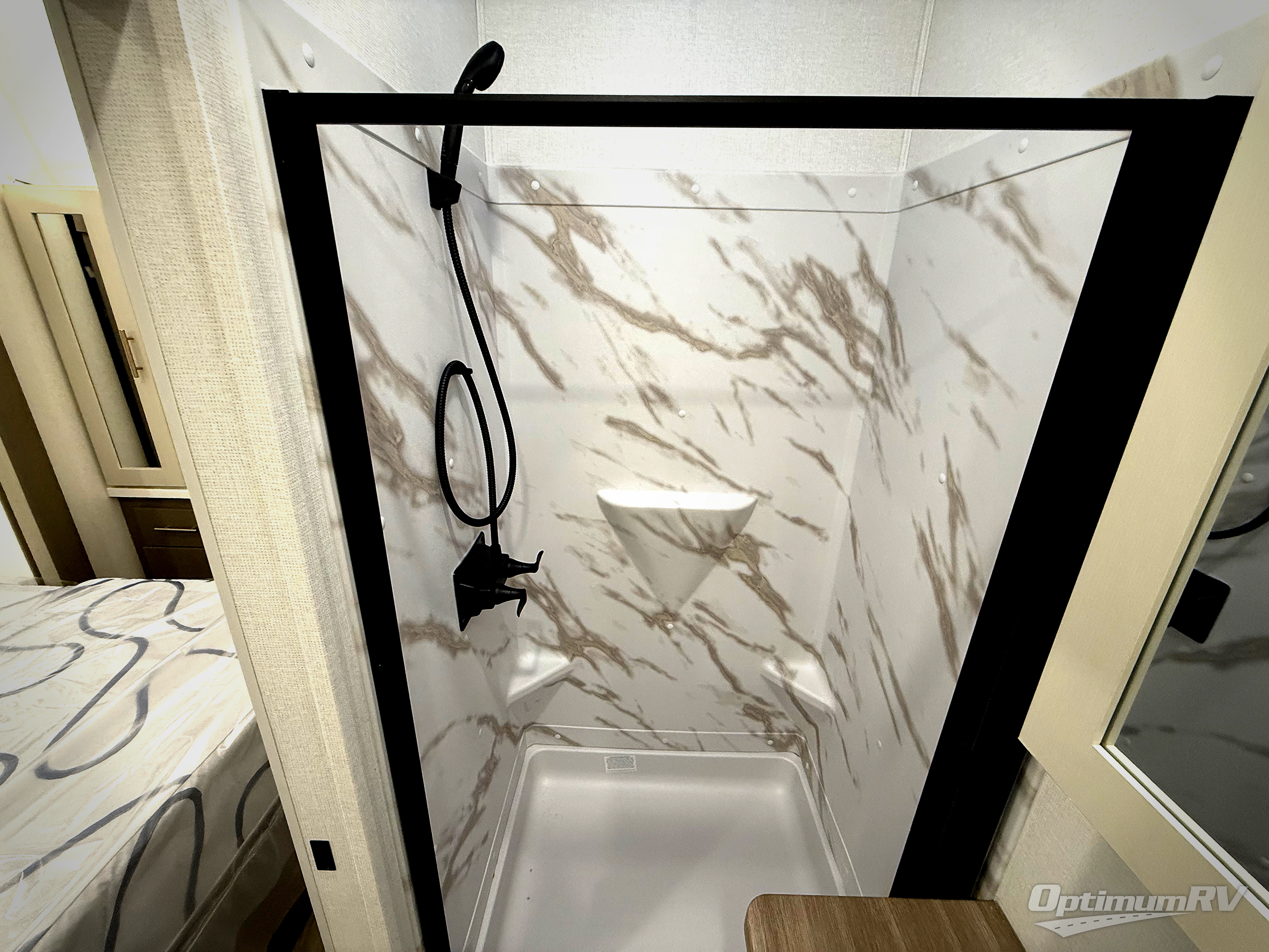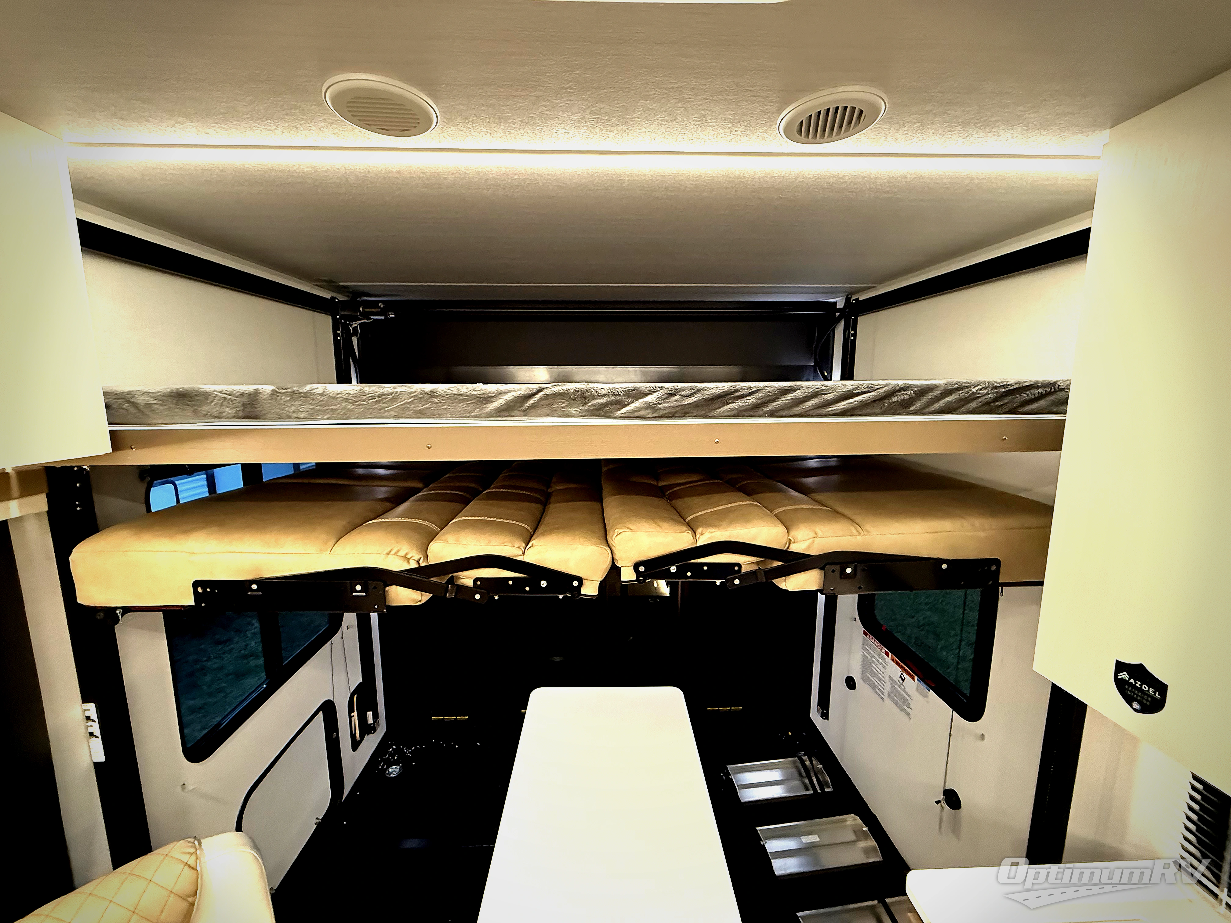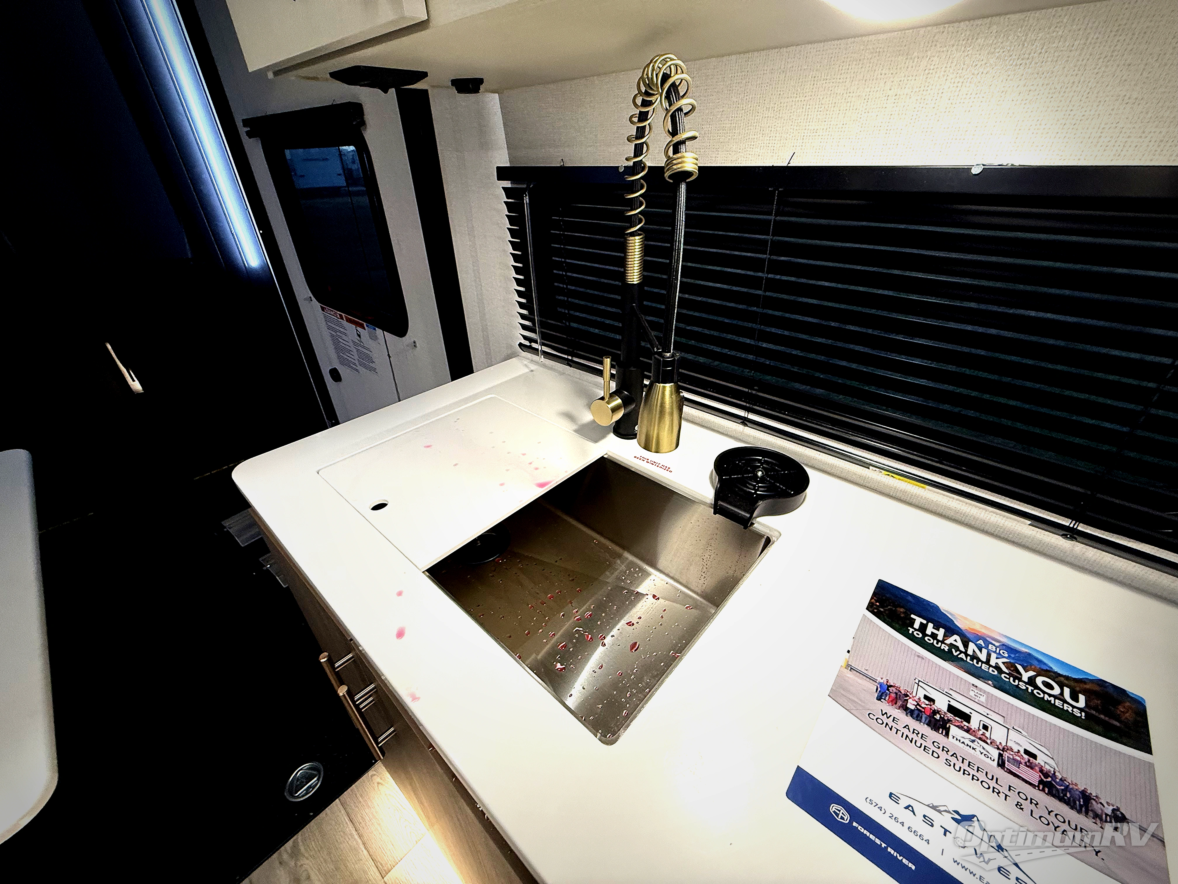 Each Alta travel trailer or toy hauler by EAST TO WEST is constructed with a 5" vacuum bonded roof, an enclosed and heated underbelly, and diamond plate front rock guard for added protection. Outside, you'll find marine-grade exterior speakers, a universal docking station, and back-up camera prep that can be added to make maneuvering in and out of campgrounds easier than ever. Inside, there are 4k interior LED lights, solid pressed membrane countertops, black roller shades, and many more interior comforts you are sure to love.