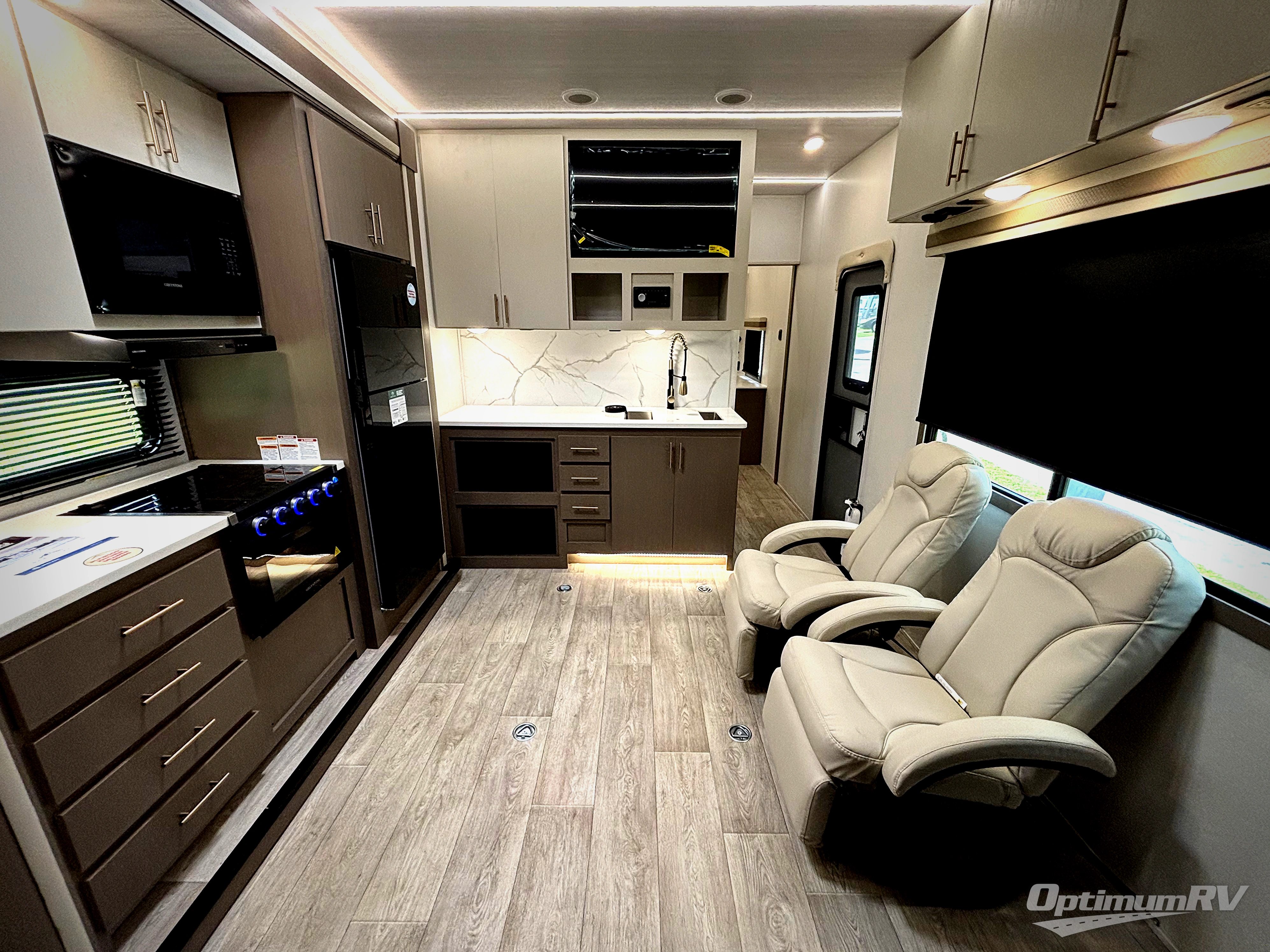 Each Alta travel trailer or toy hauler by EAST TO WEST is constructed with a 5" vacuum bonded roof, an enclosed and heated underbelly, and diamond plate front rock guard for added protection. Outside, you'll find marine-grade exterior speakers, a universal docking station, and back-up camera prep that can be added to make maneuvering in and out of campgrounds easier than ever. Inside, there are 4k interior LED lights, solid pressed membrane countertops, black roller shades, and many more interior comforts you are sure to love.