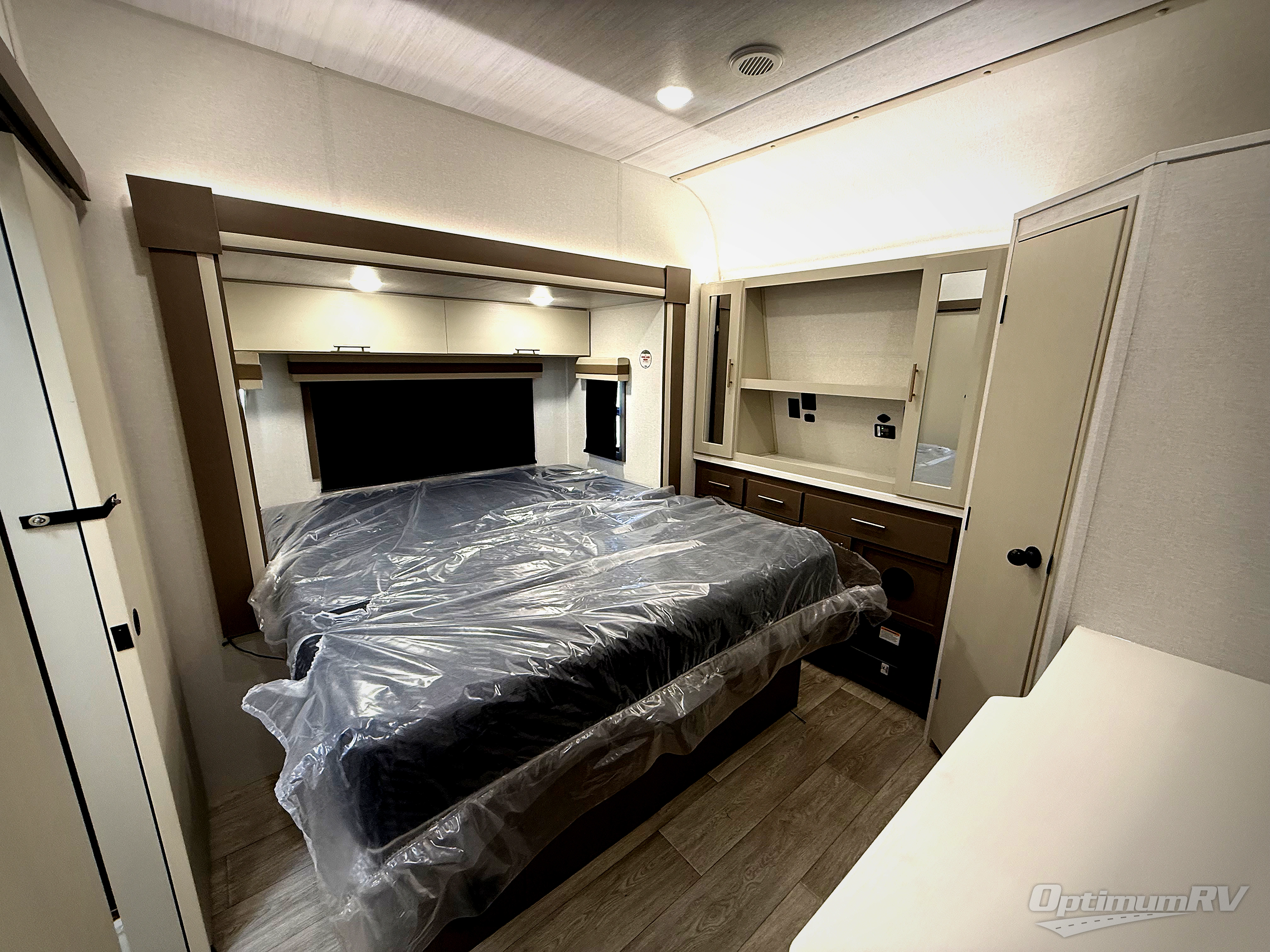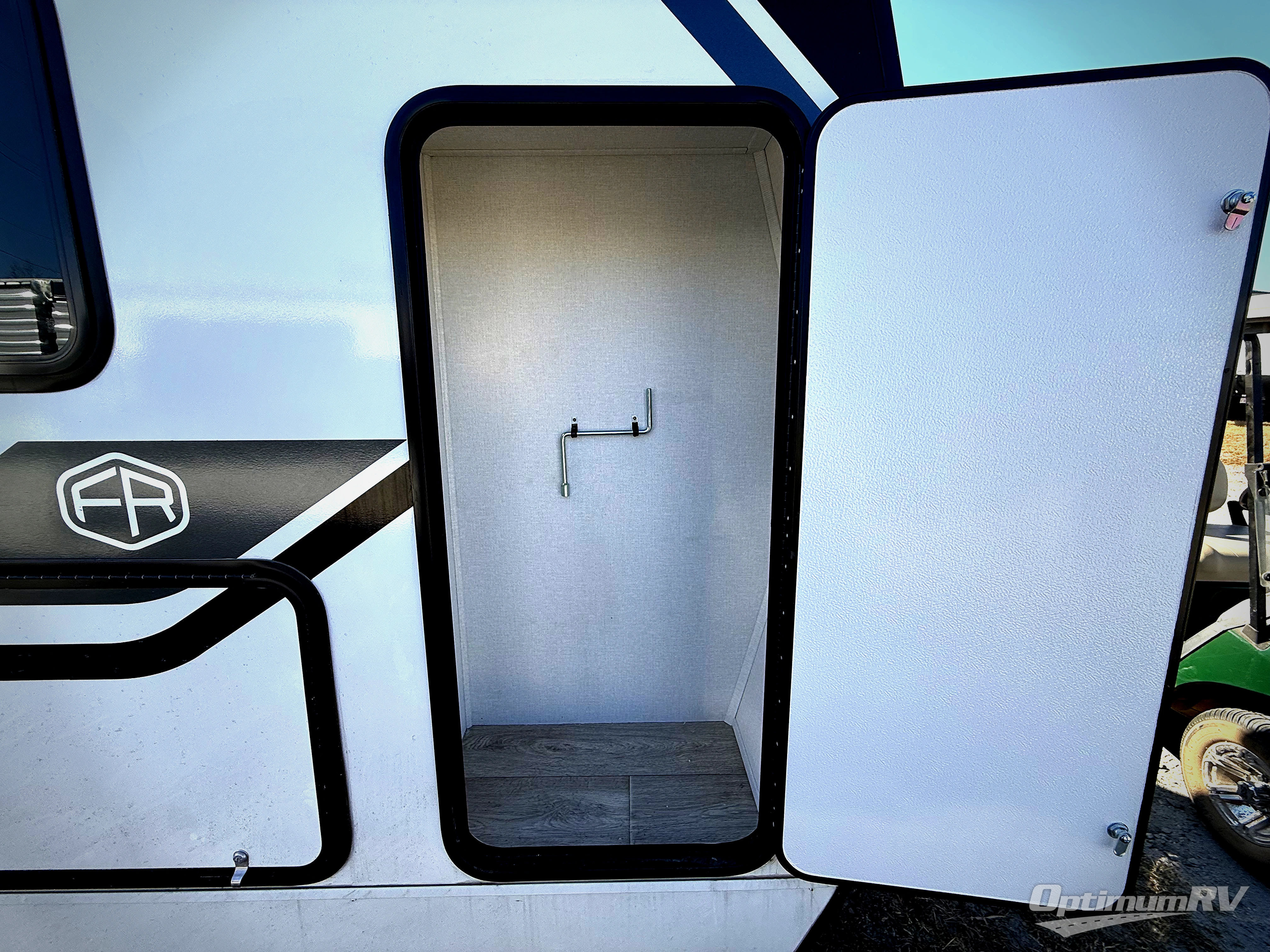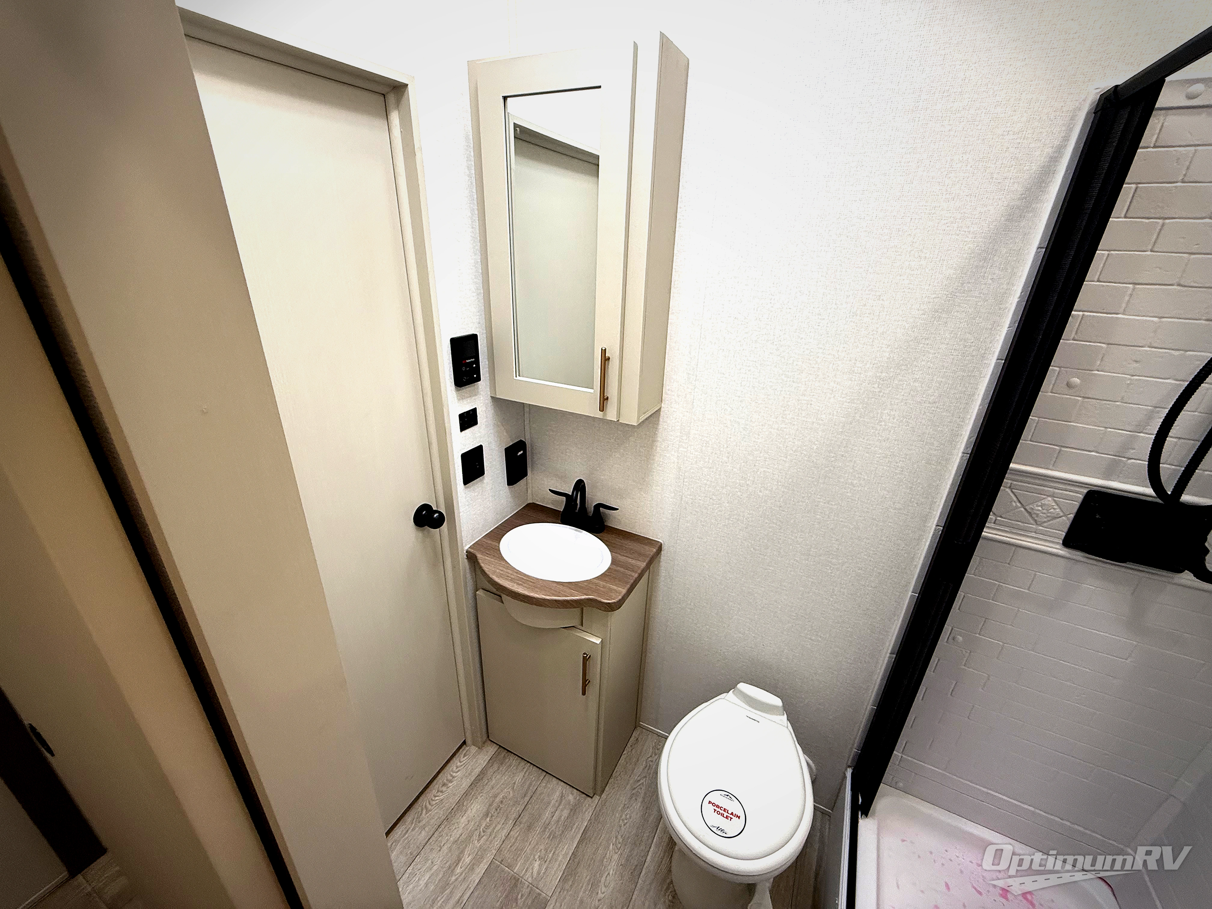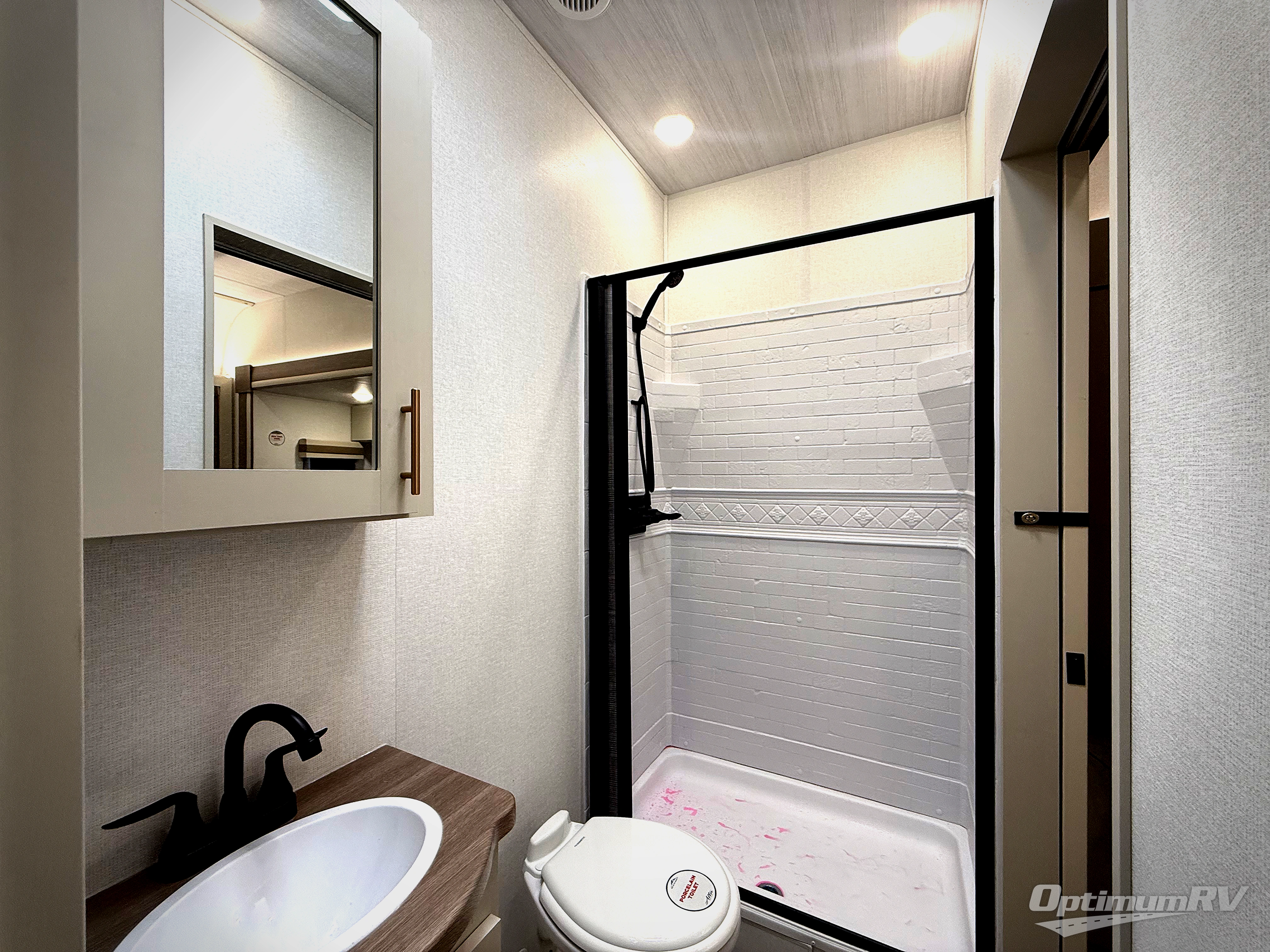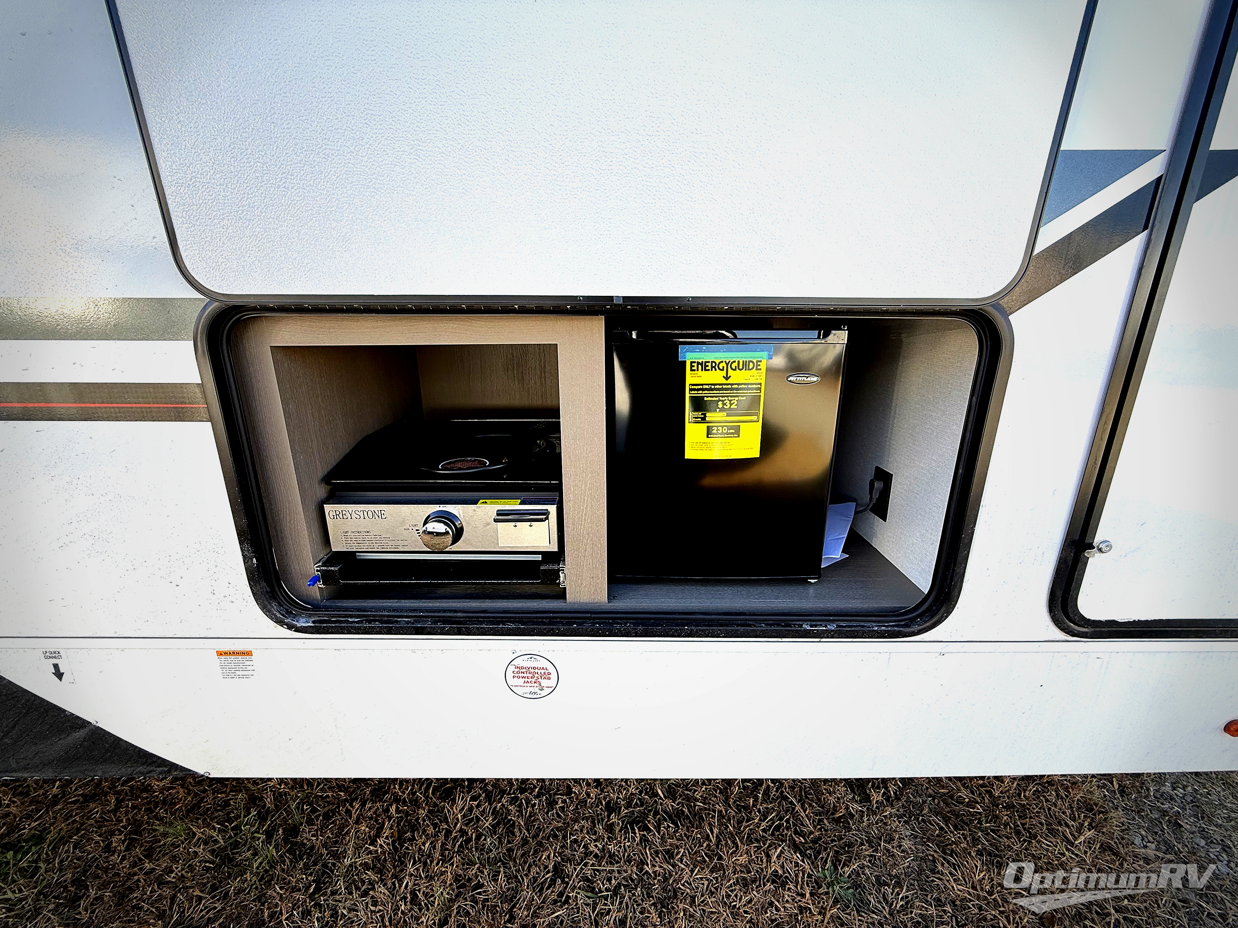 Take your favorite toys and favorite people to your favorite camping spots in this toy hauler! It offers a 14' garage so there is plenty of room for all your toys with a 97" x 92" ramp door with patio kit for easy loading and unloading. A Happi-jack with bunk above opposing sofas with a table in between means you will get lots of flexible use out of the space. The kitchen comes with a 10.7 cu. ft. 12V black glass refrigerator and three-burner range, and you can relax in one of the two recliners after dinner. At night retire to the front bedroom with its king bed slide, wardrobe, dresser, and dual entry bath with shower and skylight. This model also comes with the mandatory West Coach Power Package with a 400 watt solar panel, a 30 Amp controller and a second battery to keep you going!