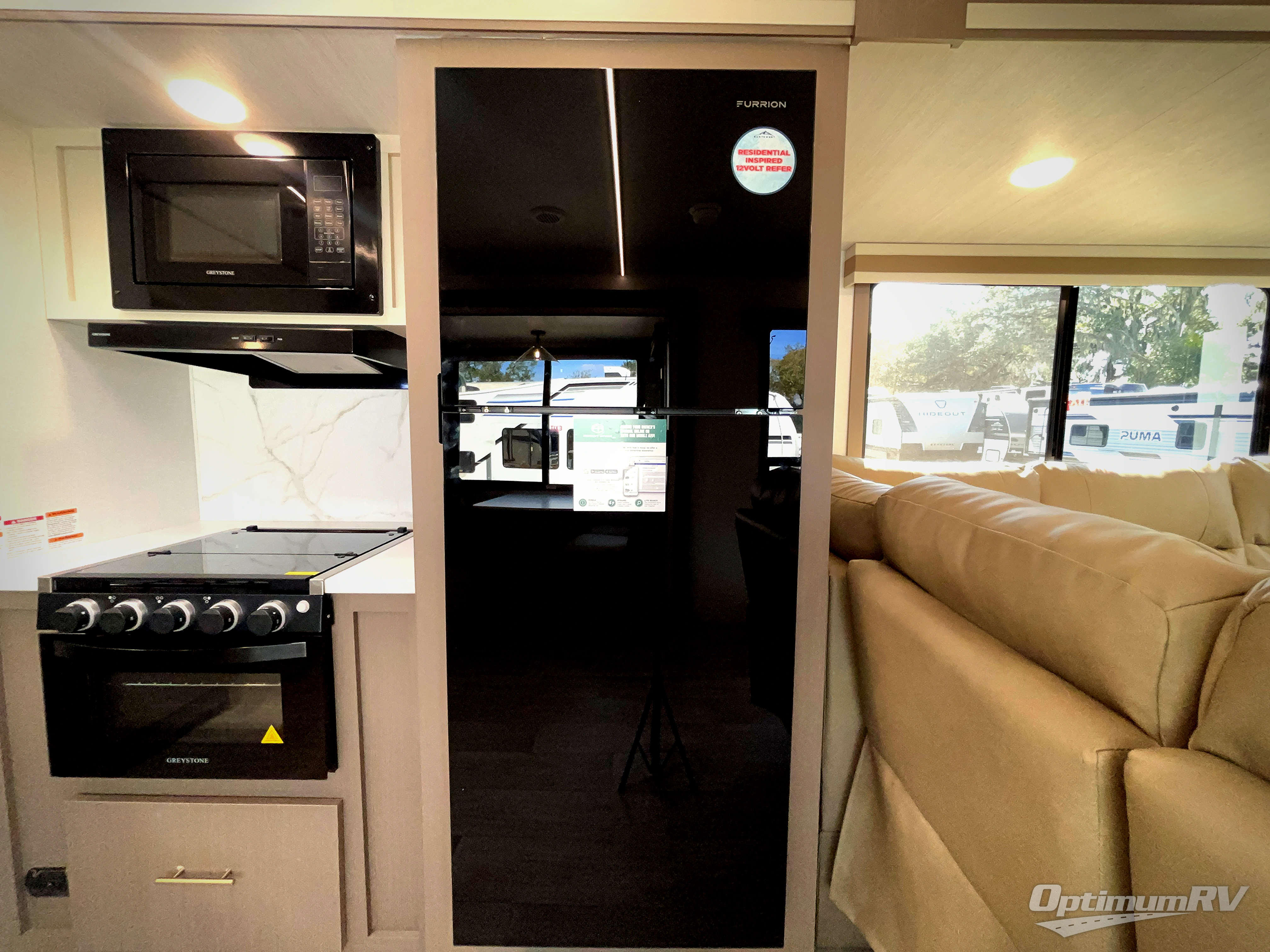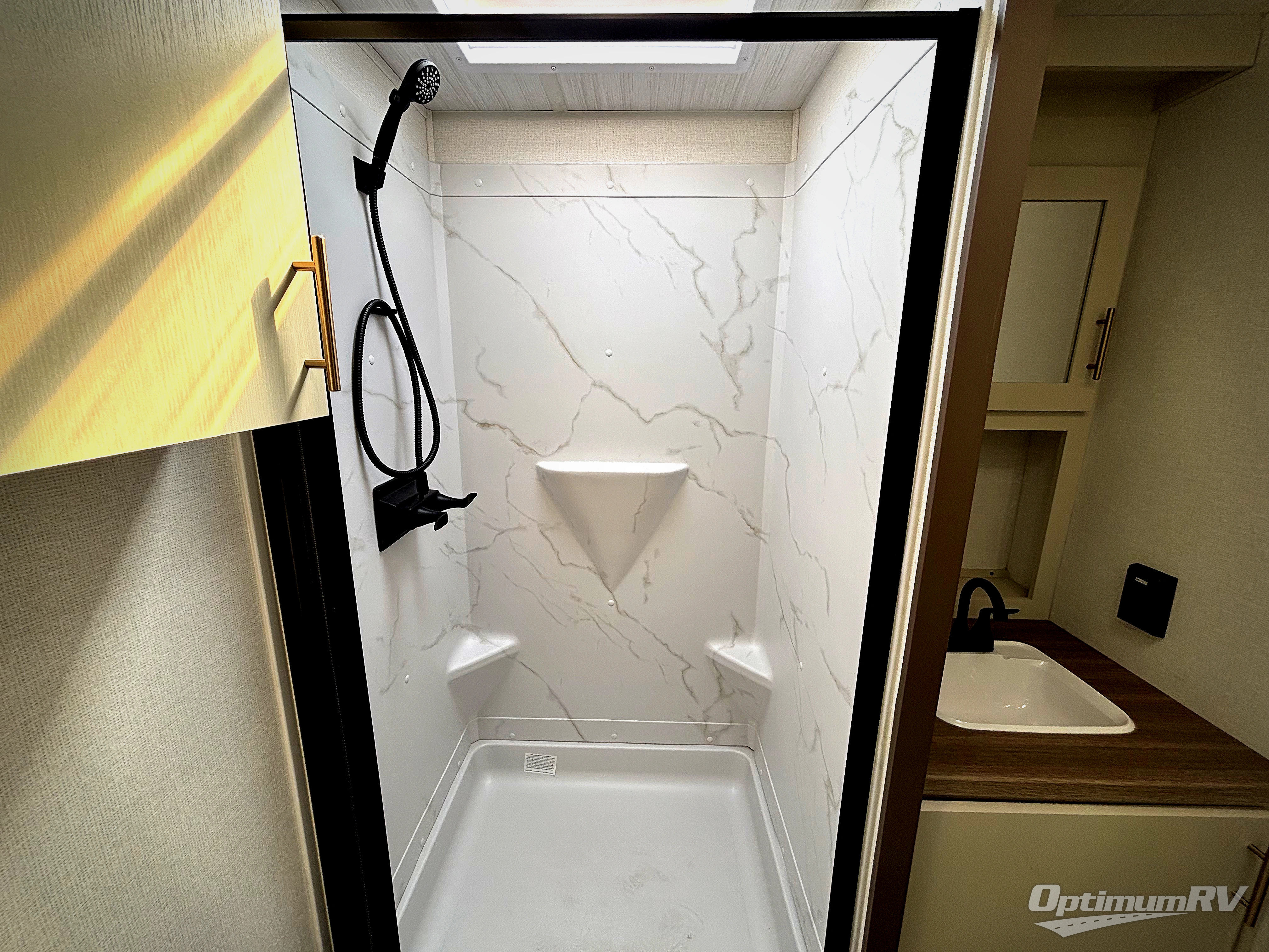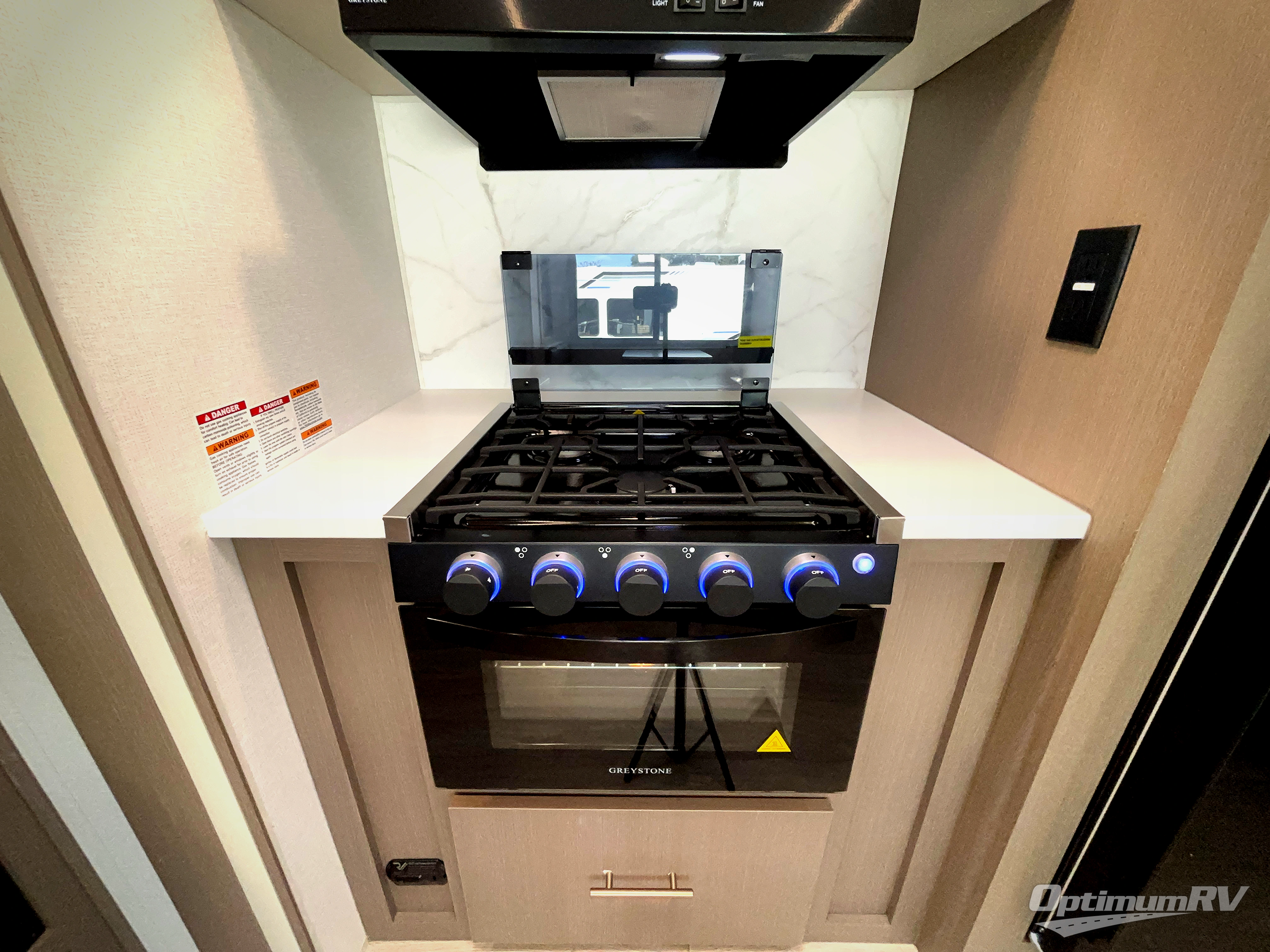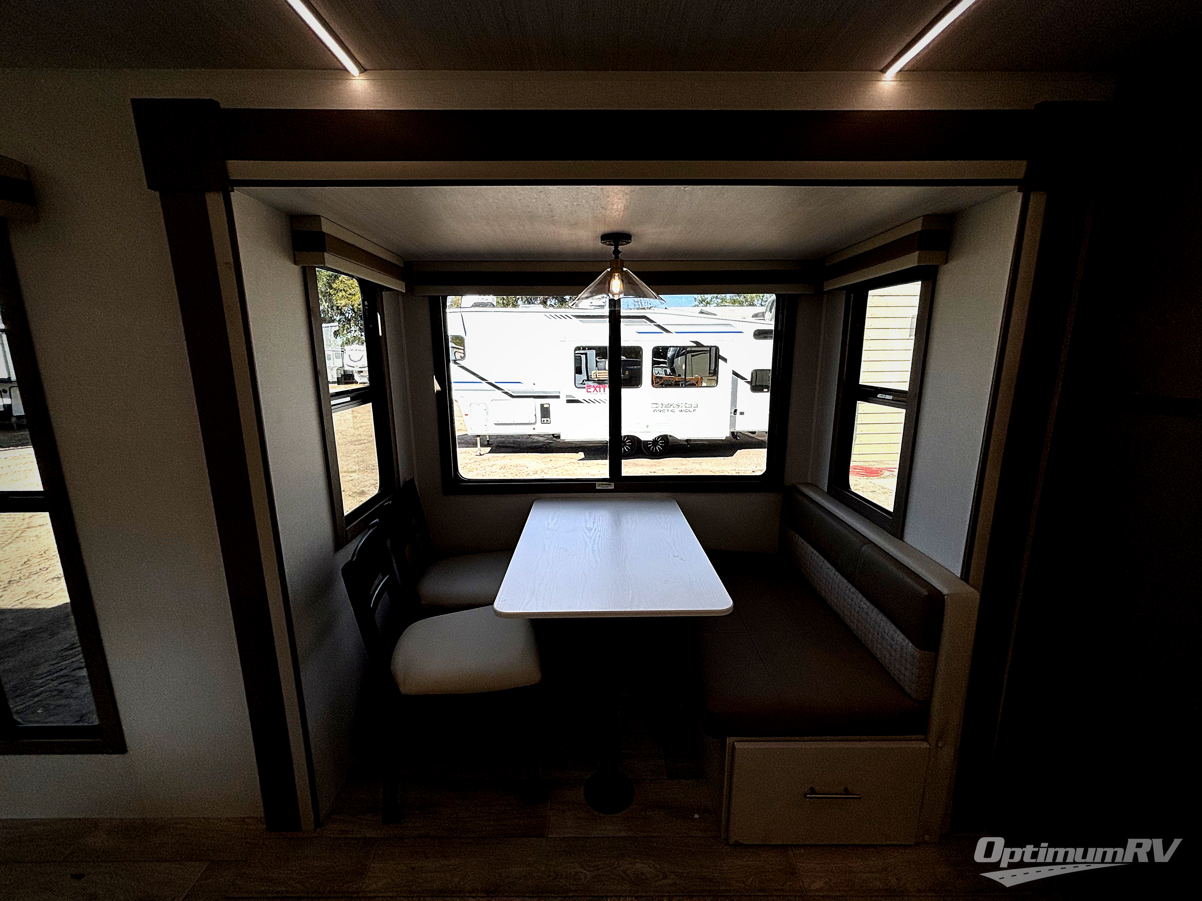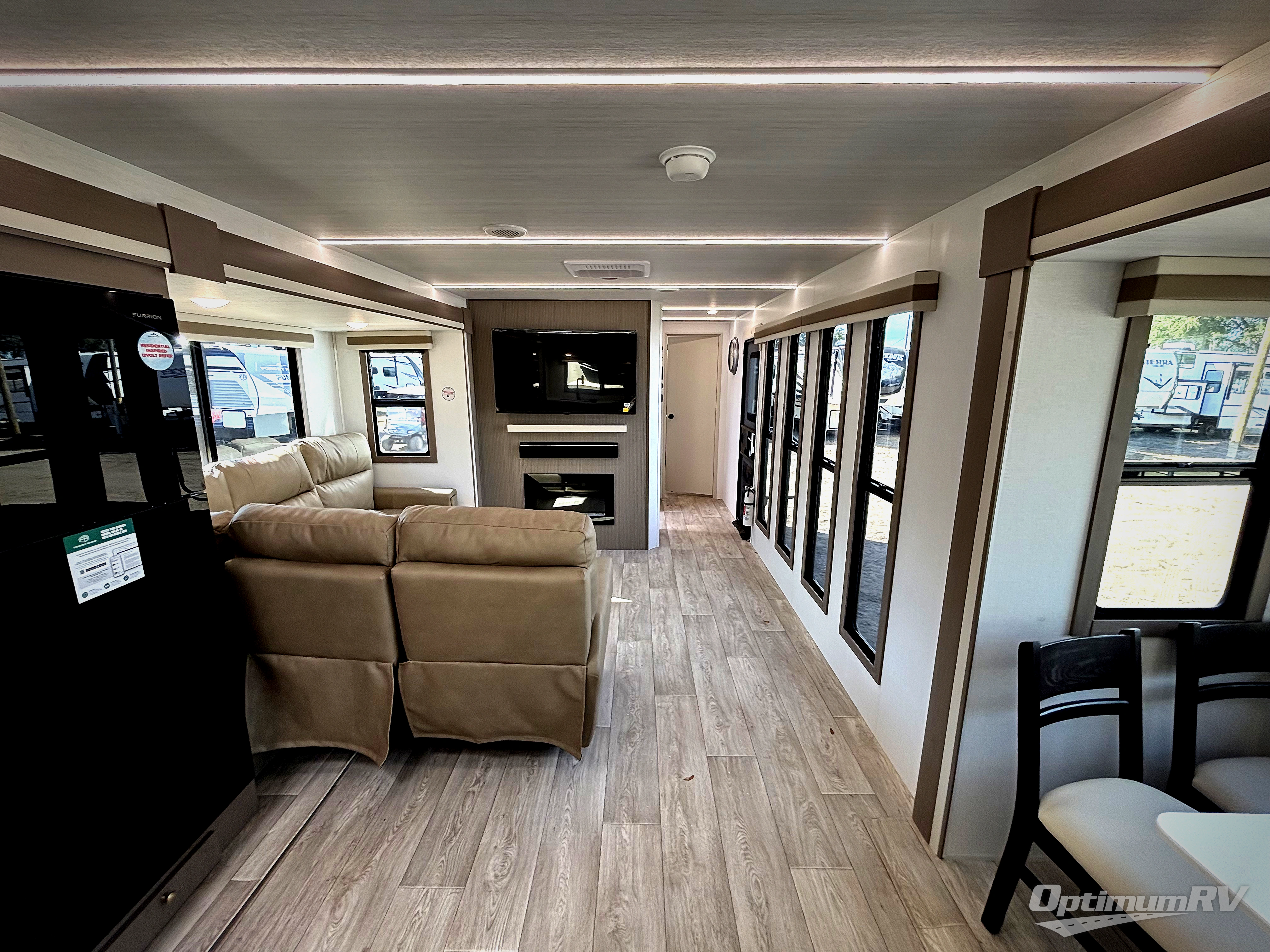 Experience a luxurious ride in this travel trailer. The rear kitchen is equipped with everything you need to whip up a culinary masterpiece. Enjoy ample storage in the pantry, a 12V refrigerator for keeping your favorite drinks and snacks chilled, a three-burner cooktop for cooking up a storm, and a microwave for quick reheating. The sink provides a convenient spot for washing up, and the spacious countertops offer plenty of room for food preparation. Relax and unwind in the heart of the trailer, a comfortable living area features a tri-fold sofa and a sofa with recliners. Gather around the fireplace on chilly evenings, or enjoy your favorite shows on the TV. Further, the full bathroom is equipped with everything you need for a comfortable stay, and the front bedroom boasts a queen-sized bed, large wardrobe, dresser, and overhead cabinets. Finally, take your living space outdoors with the fold-down patio, perfect for alfresco dining or simply enjoying the fresh air.