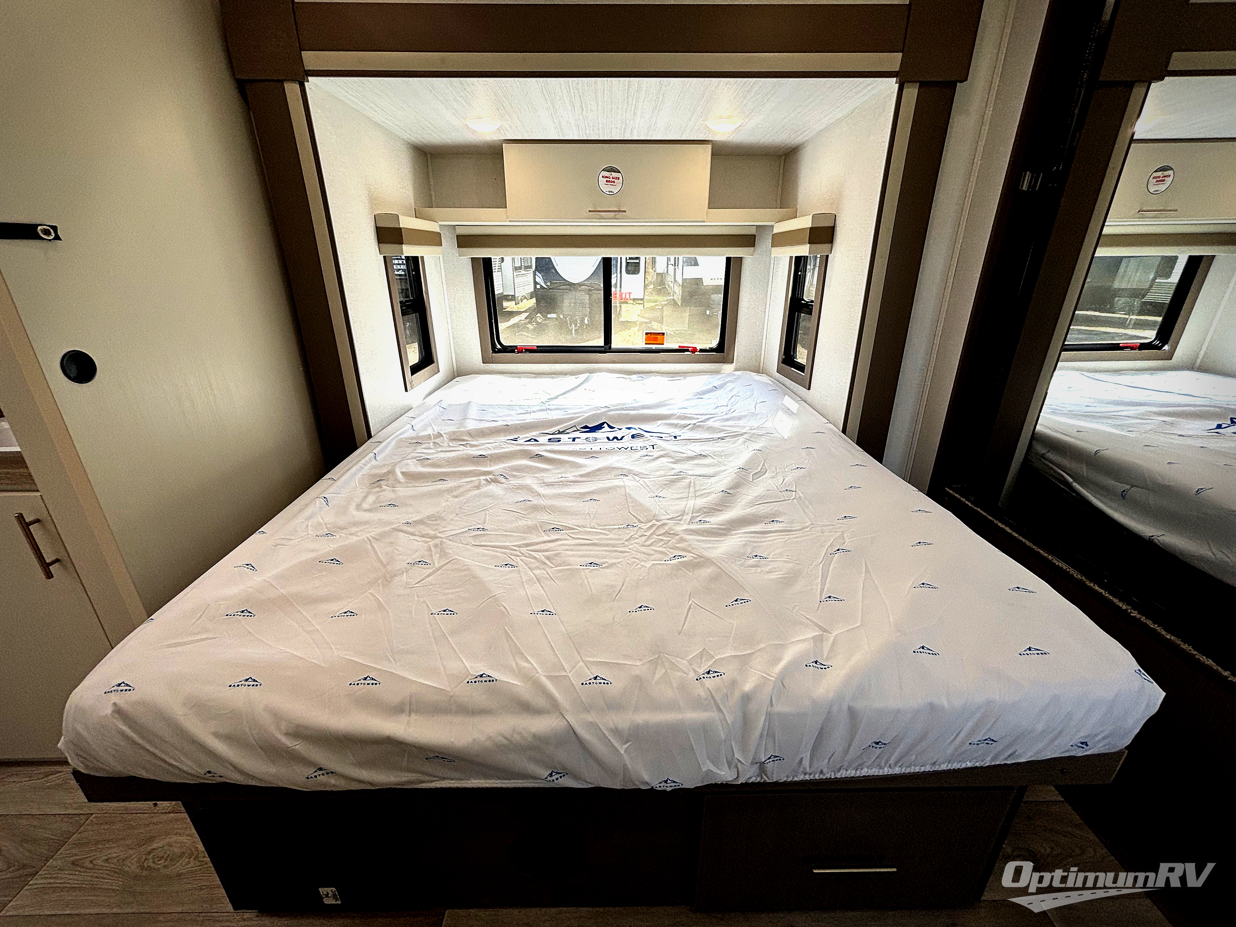 Each Alta travel trailer or toy hauler by EAST TO WEST is constructed with a 5" vacuum bonded roof, an enclosed and heated underbelly, and diamond plate front rock guard for added protection. Outside, you'll find marine-grade exterior speakers, a universal docking station, and back-up camera prep that can be added to make maneuvering in and out of campgrounds easier than ever. Inside, there are 4k interior LED lights, solid pressed membrane countertops, black roller shades, and many more interior comforts you are sure to love.