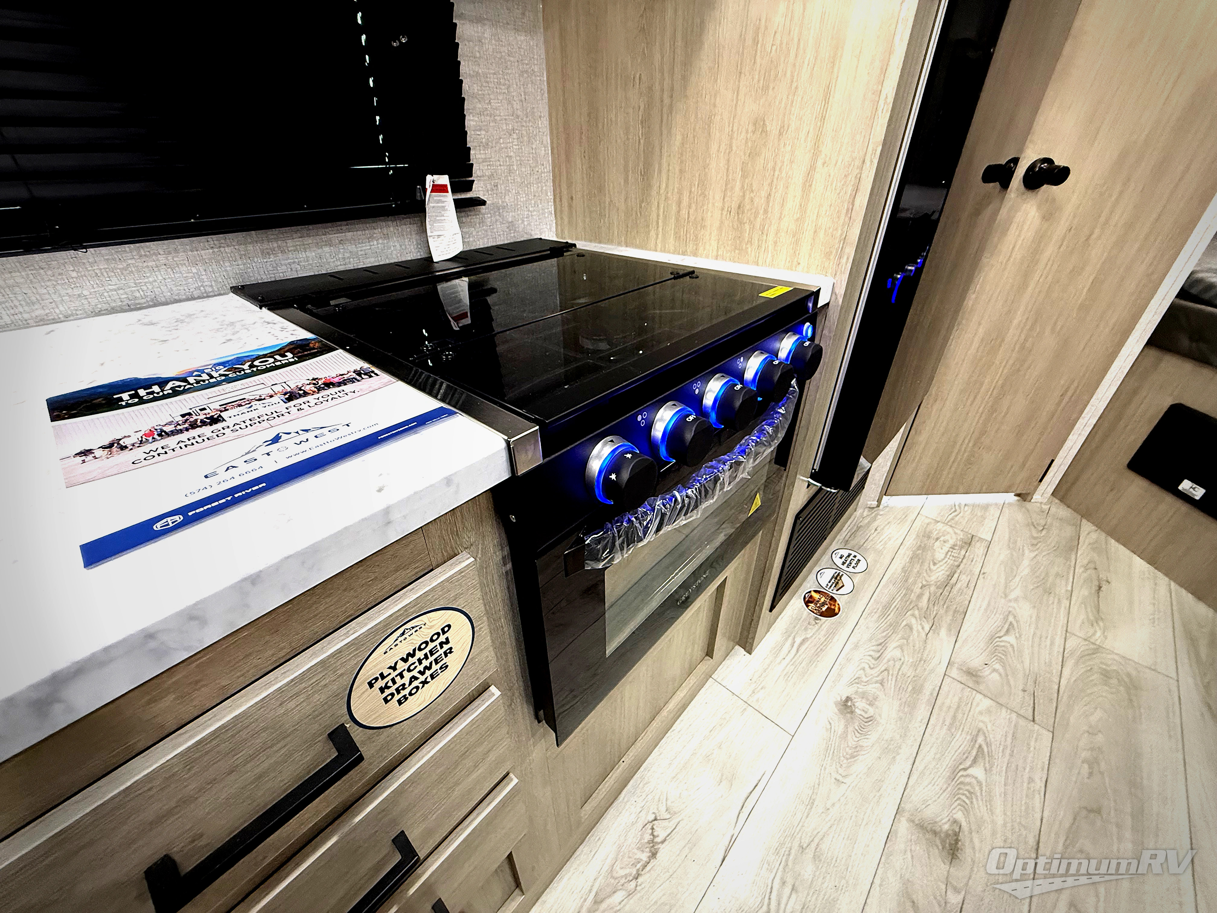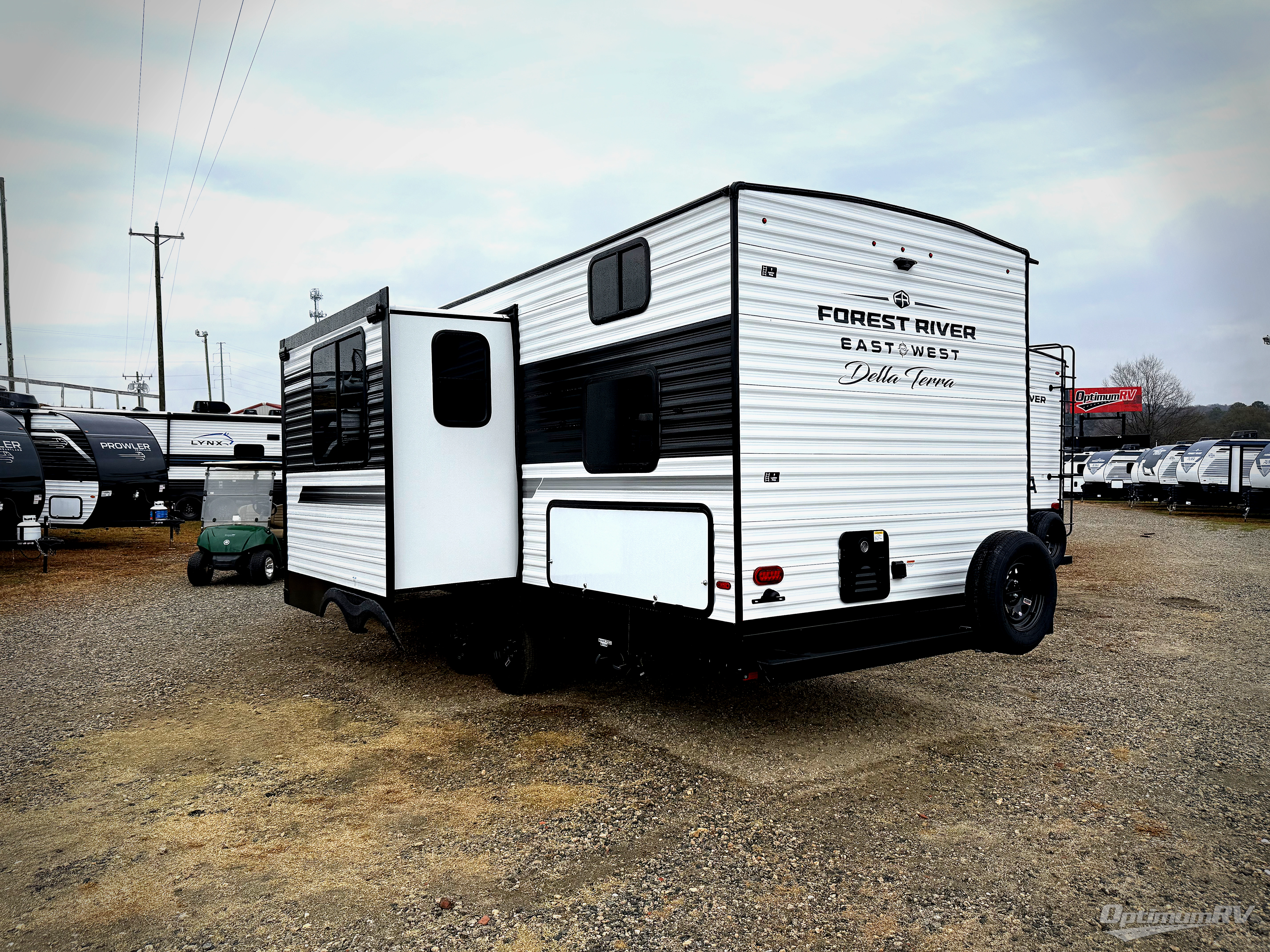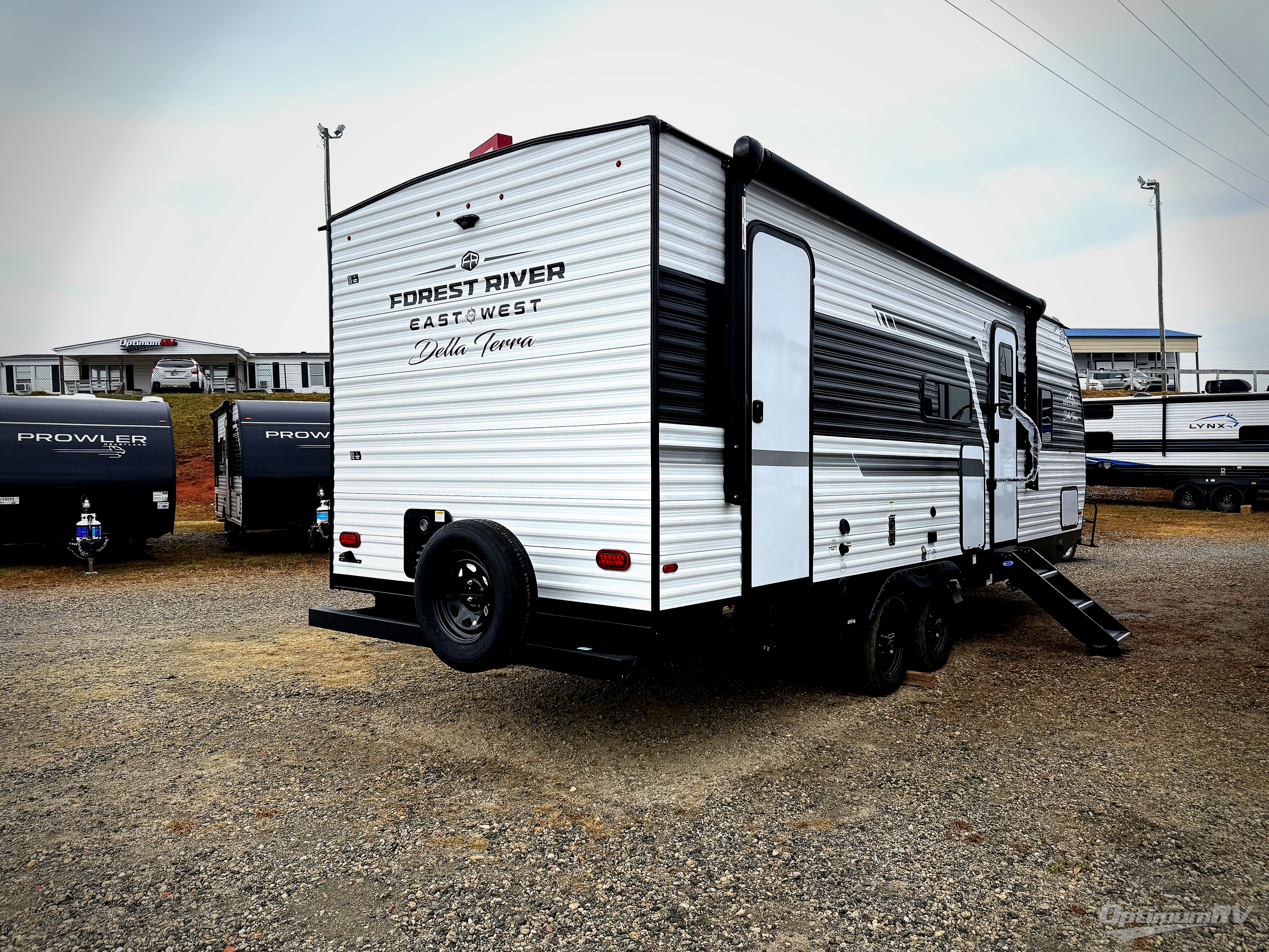 Each Della Terra travel trailer by EAST TO WEST is constructed with an enclosed and heated underbelly and enclosed holding tanks for added protection against the elements. There is also a power tongue jack with an LED light for easy set up and a power awning with LED lights you can rest under after you've unpacked. The Explore Comfort Package comes seamless pressed countertops, kitchen backsplash, window valance package with black night shades, and many more comforts. You will also appreciate the Adventure Outdoor Package with backup camera prep and solar prep, a tankless water heater, an RV grill quick disconnect, and a universal docking station with battery disconnect.