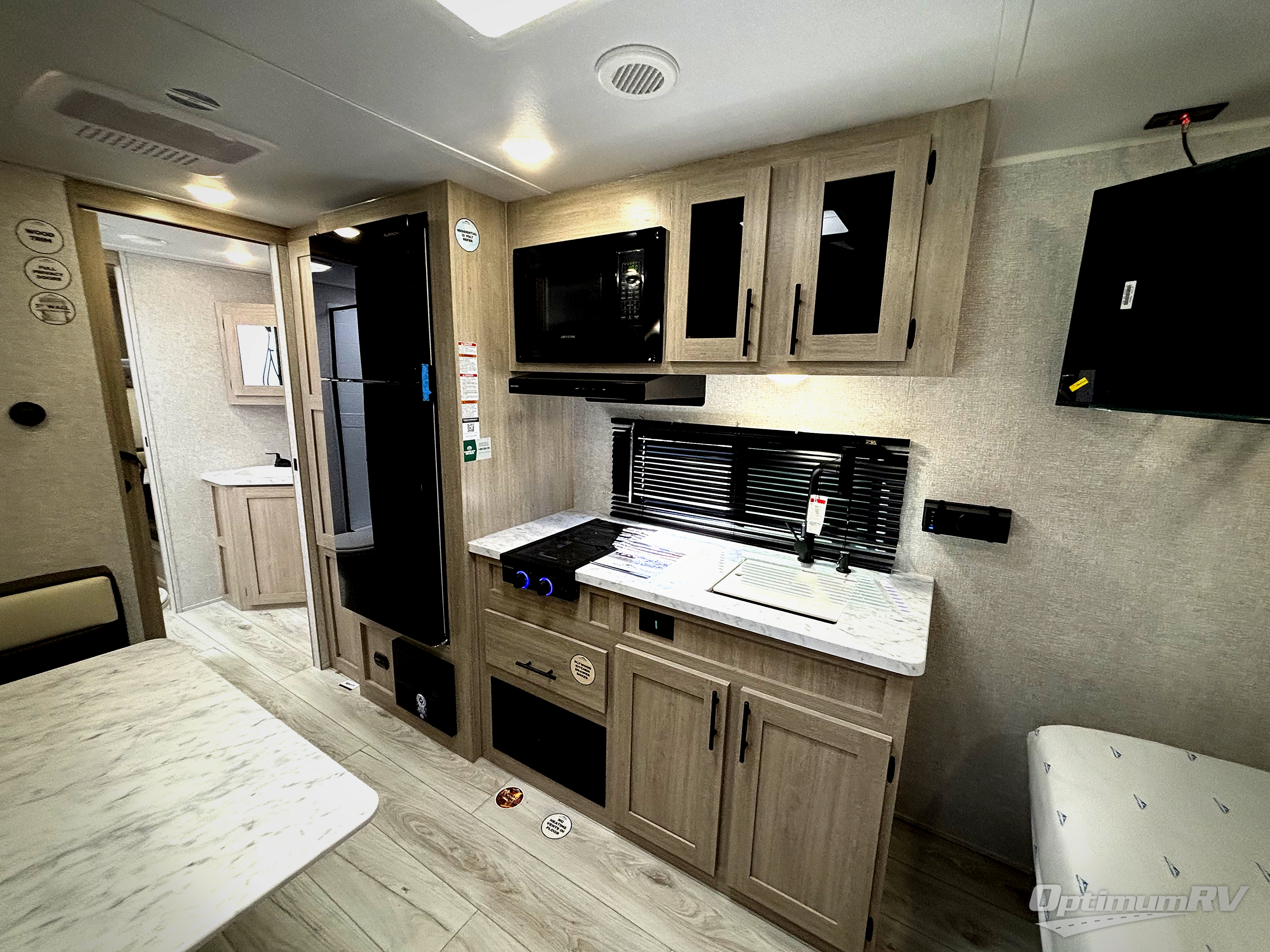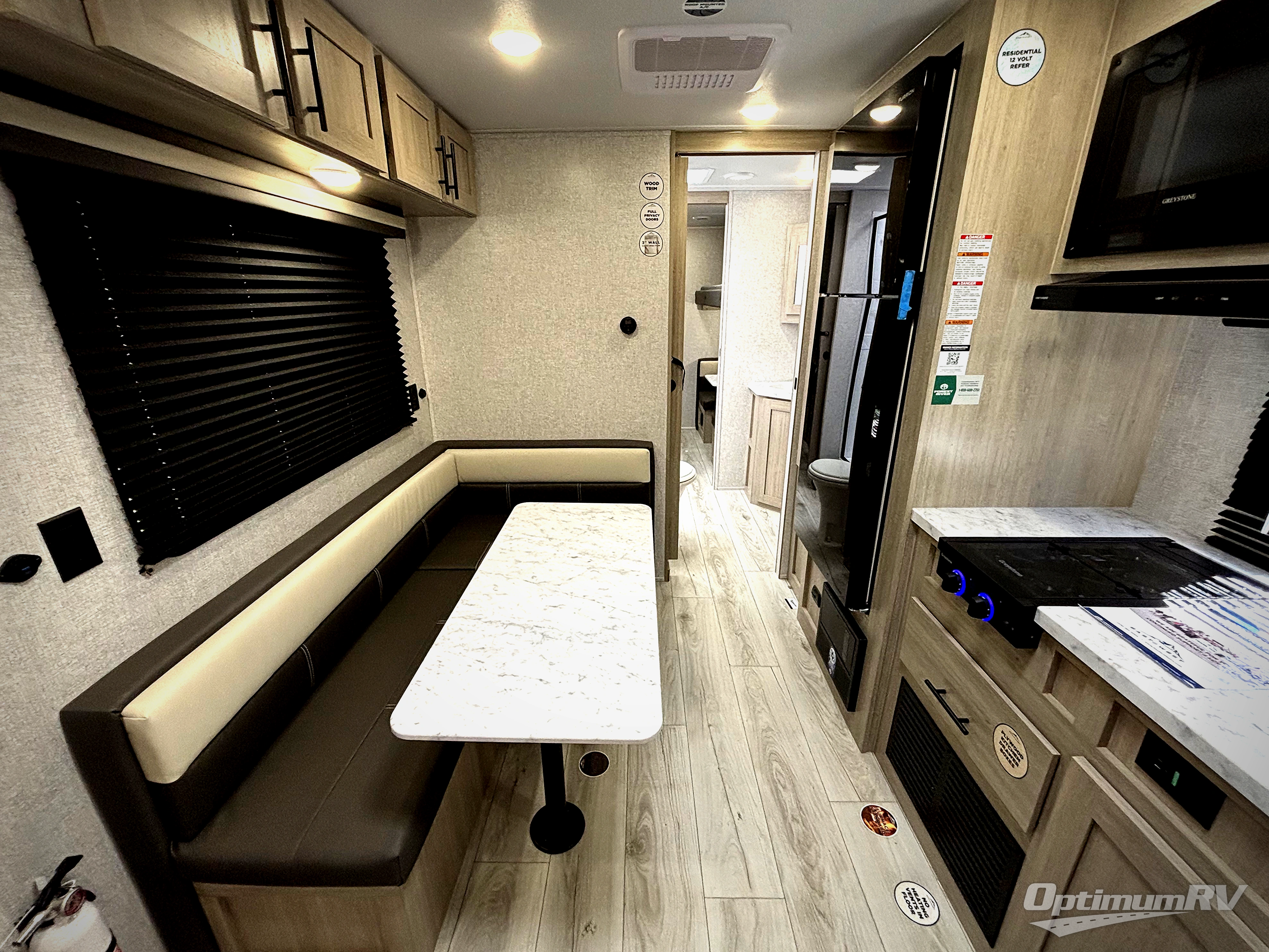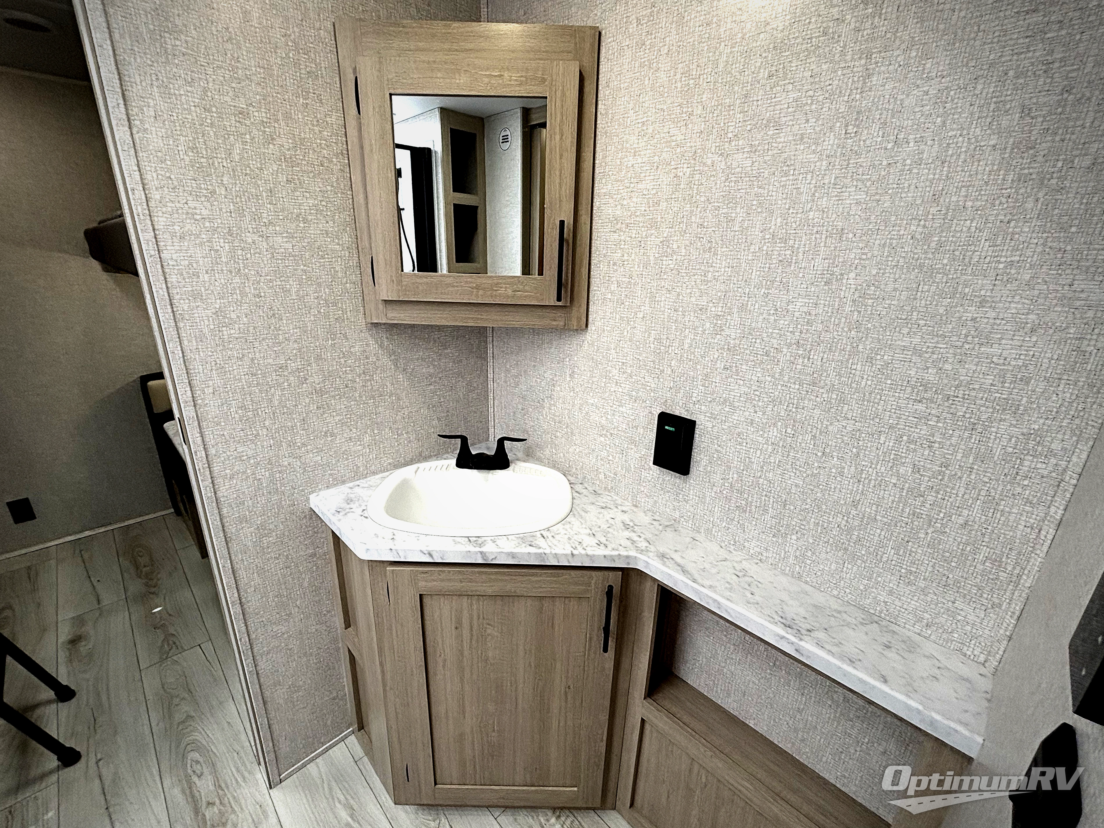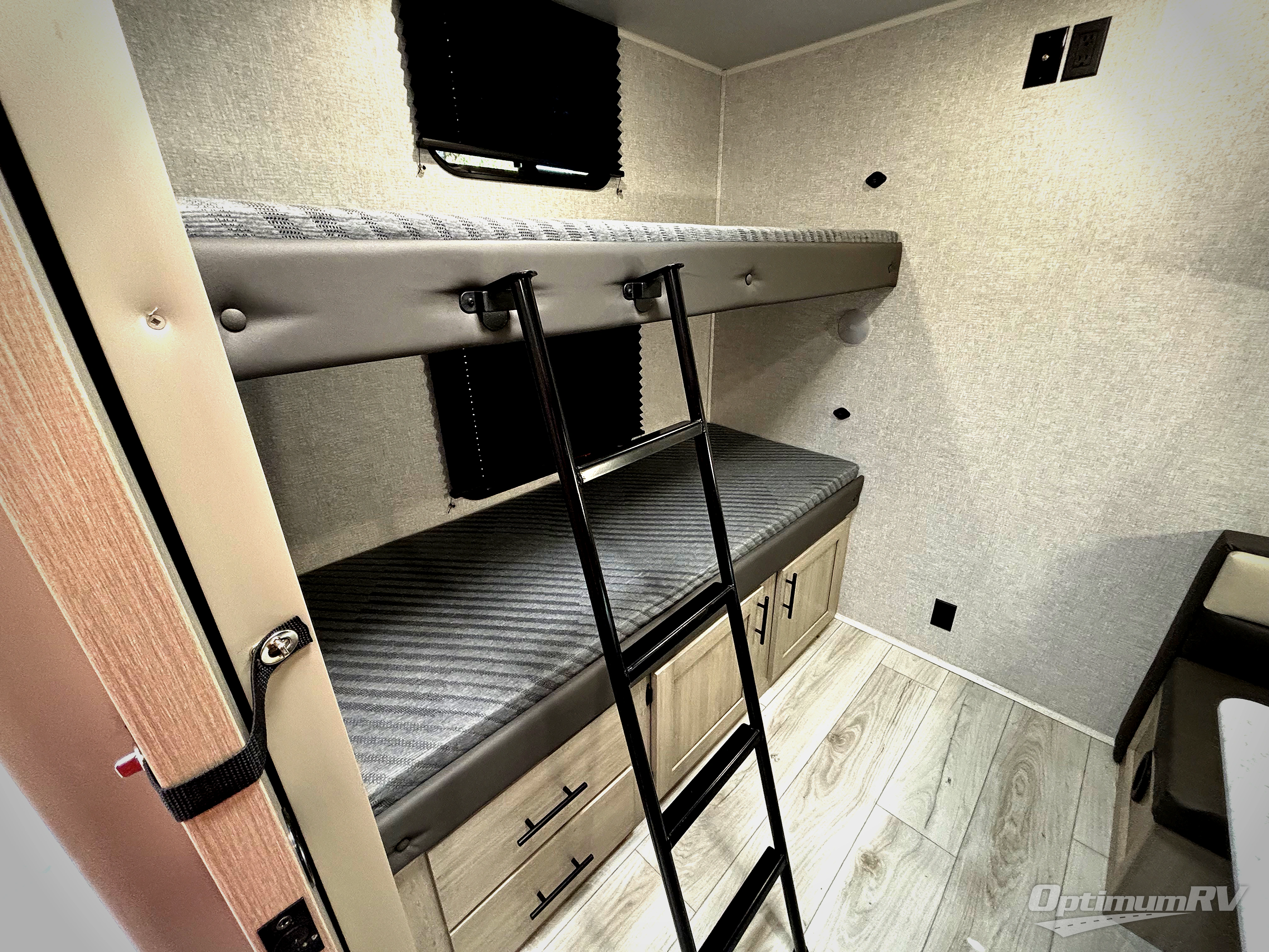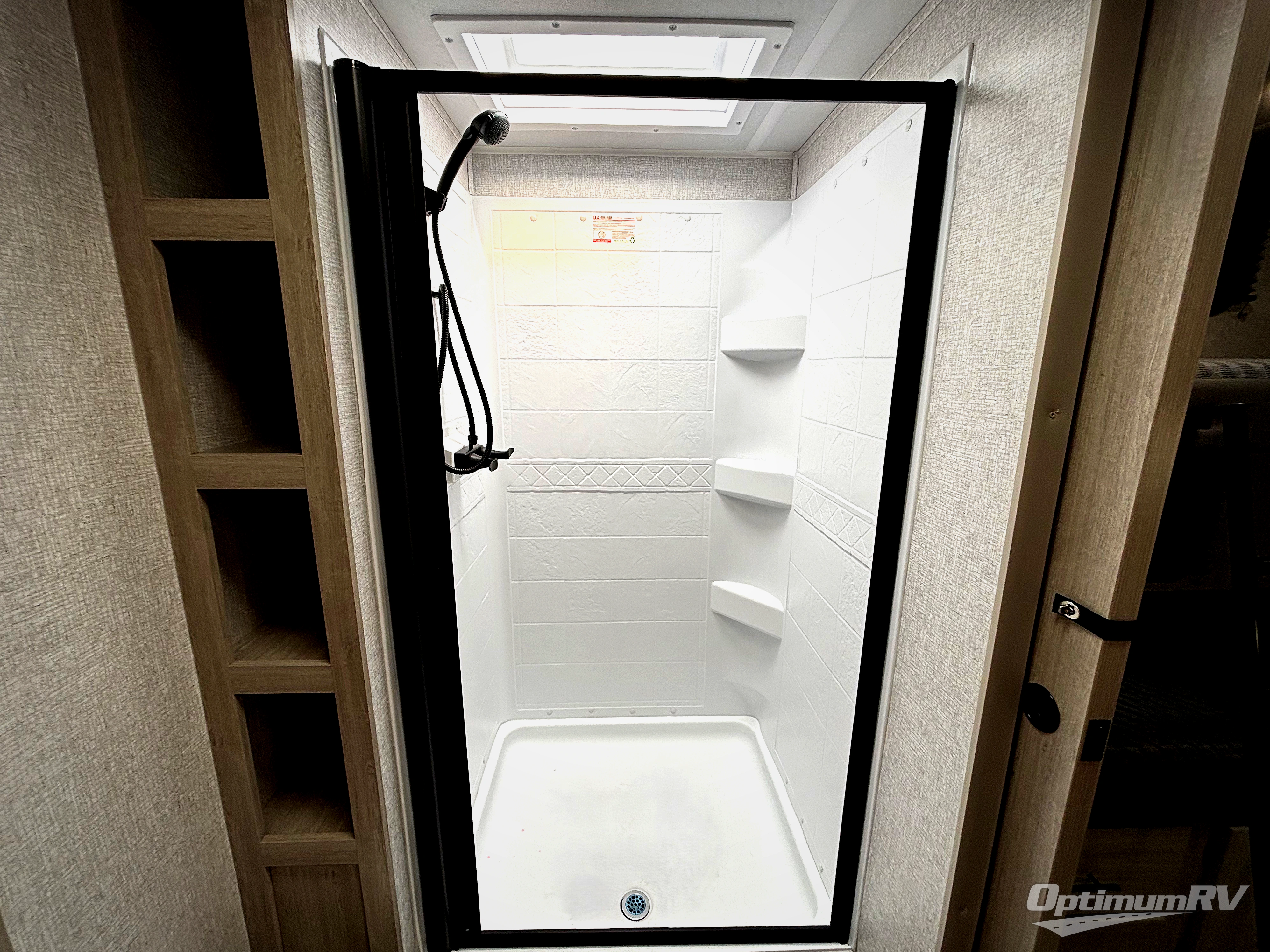 There is much to love in this travel trailer! Starting with the rear private bunkhouse which has a set of double bunk beds with storage underneath and a bunk over a booth dinette with storage underneath it too. The front king bed also has storage underneath it, as well as wardrobes and nightstands on either side of it for your clothes and books. The chef can prepare their best home cooked meals in the fully equipped kitchen, and everyone can enjoy them at the L-shaped dinette with storage underneath for boardgames to play after dinner. The walk-through bathroom makes it easy for all to access the 30" x 36" shower, and you even have an outside shower to rinse the mud off of your feet before entering inside!
