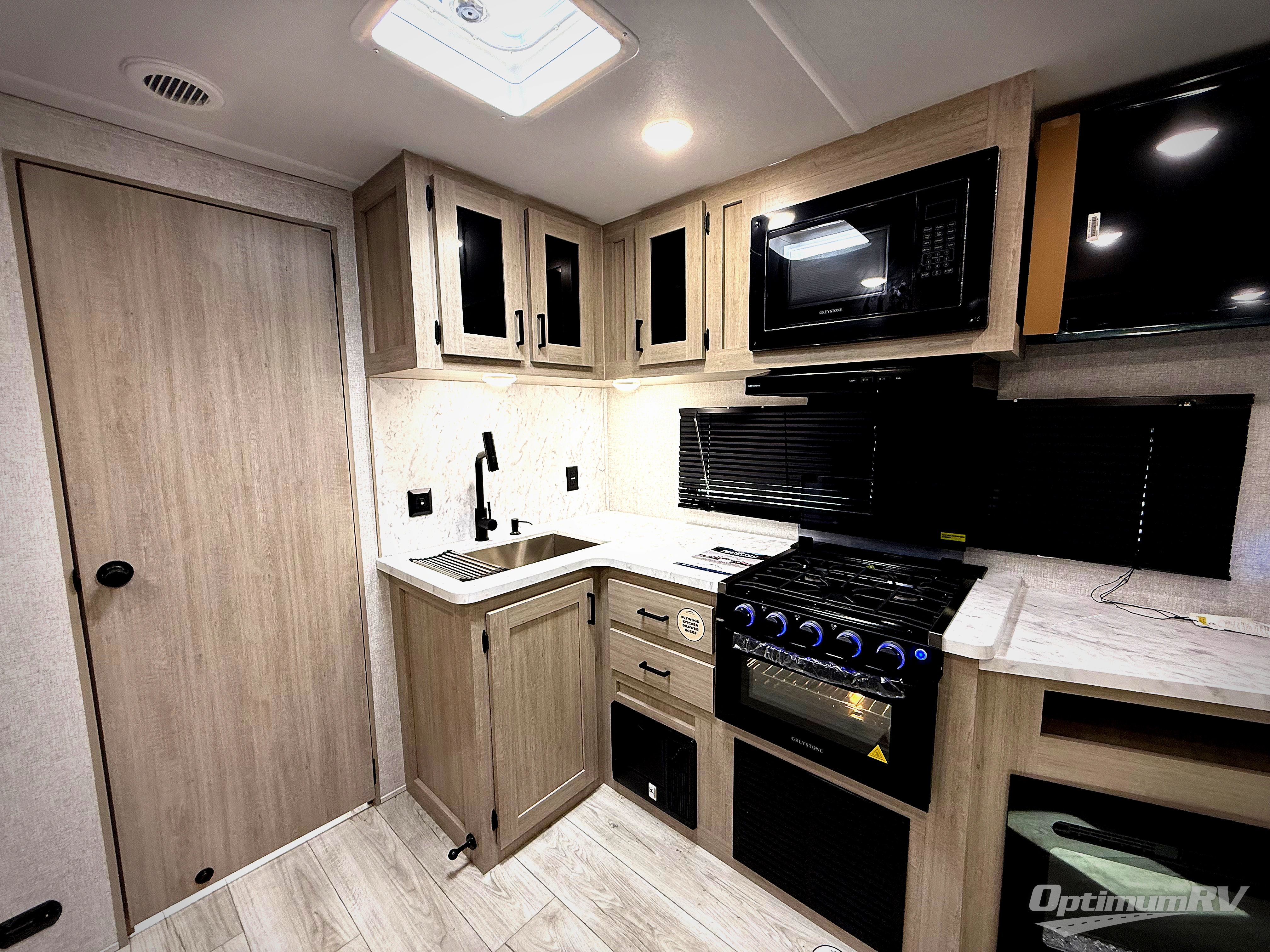 Each Della Terra travel trailer by EAST TO WEST is constructed with an enclosed and heated underbelly and enclosed holding tanks so you can camp all year long. There is also a power tongue jack with an LED light for easy set up and a power awning with LED lights you can rest under after you've unpacked. The Explore Comfort Package comes seamless pressed countertops, kitchen backsplash, window valance package with black night shades, and many more comforts. You will also appreciate the Adventure Outdoor Package with backup camera prep and solar prep, a tankless water heater, an RV grill quick disconnect, and a universal docking station with battery disconnect.