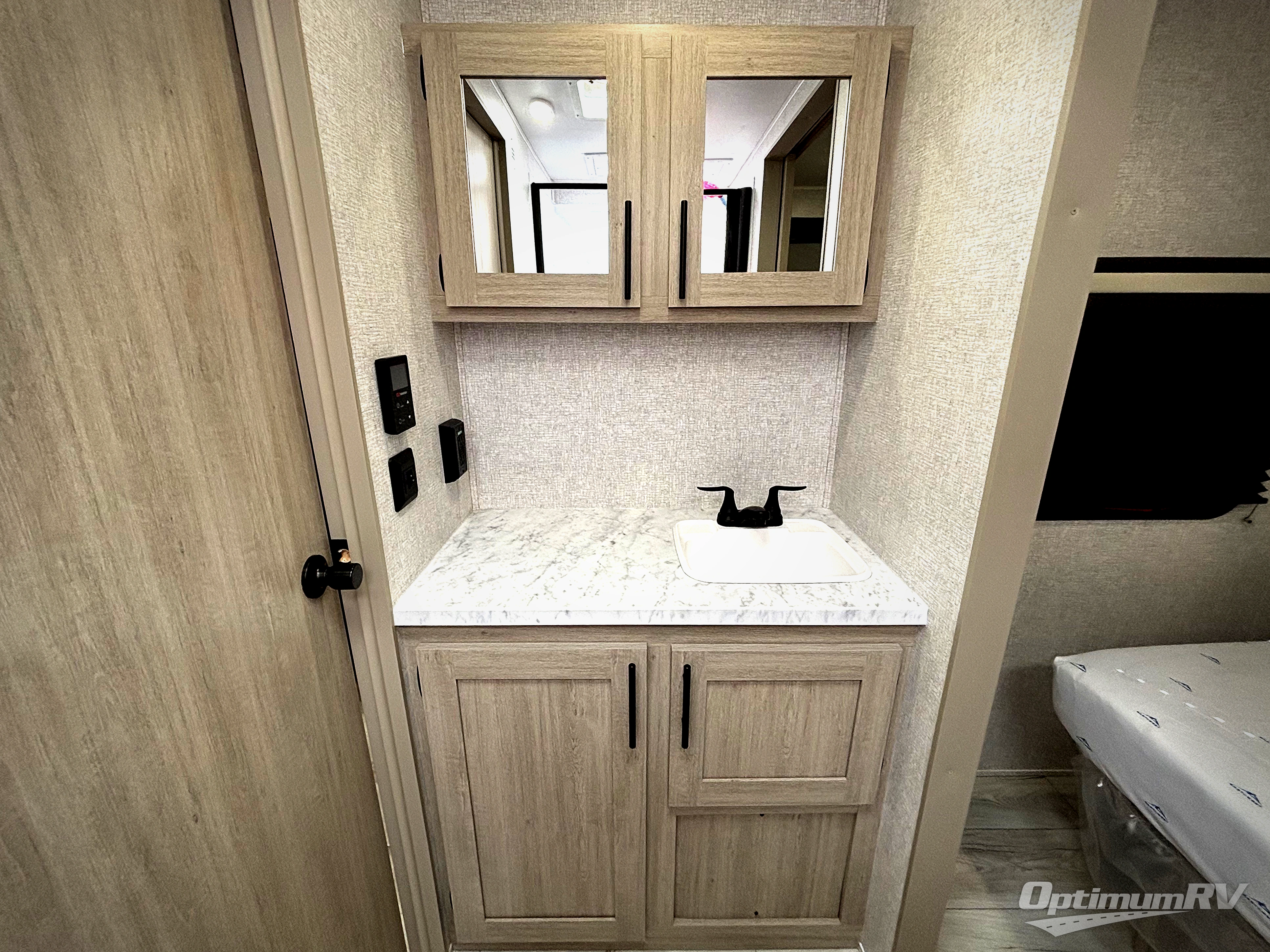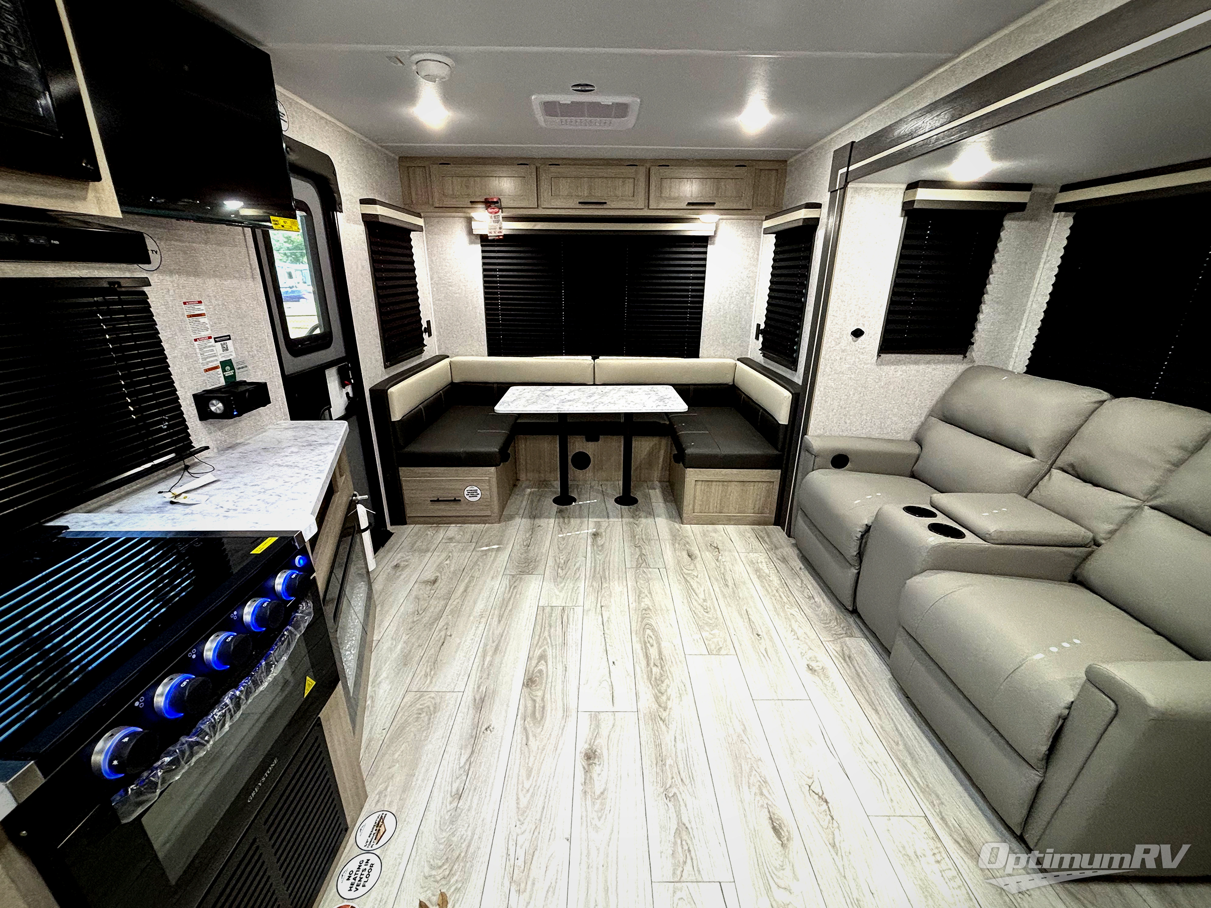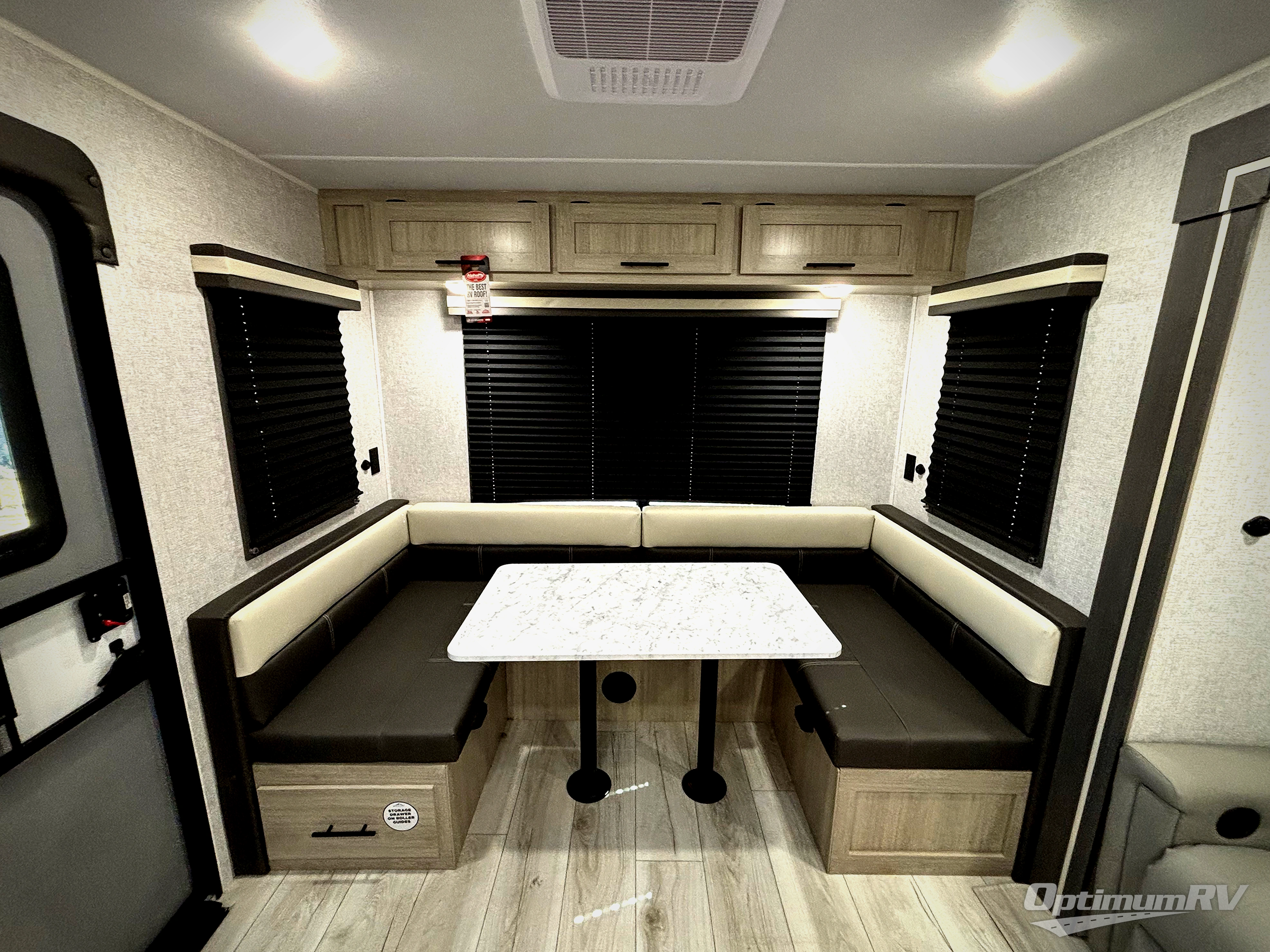 When you are wanting a little more interior space in your next travel trailer, take a look inside! This large slide out widens the main living space so you can easily make meals using full amenities without having to move for someone walking from the front bedroom and walk-through bath to the U-shaped dinette in the back. For sleeping, there is a king-size bed with storage on both sides at the very front of this unit giving you privacy from the rest, and even a private second entry/exit door from within the bedroom. You will find storage beneath the bed for larger items or extra blankets, plus a space saving sliding door. The U-shaped dinette and jackknife sofa offer comfortable seating as well as extra sleeping space for overnight guests, and the fireplace is just a nice feature to enjoy. On the outside, an 18' awning provides a large outdoor living area protected from the elements, and the oversized pass-through will house all of your exterior gear like lawn chairs, outdoor games and rugs, plus so much more!