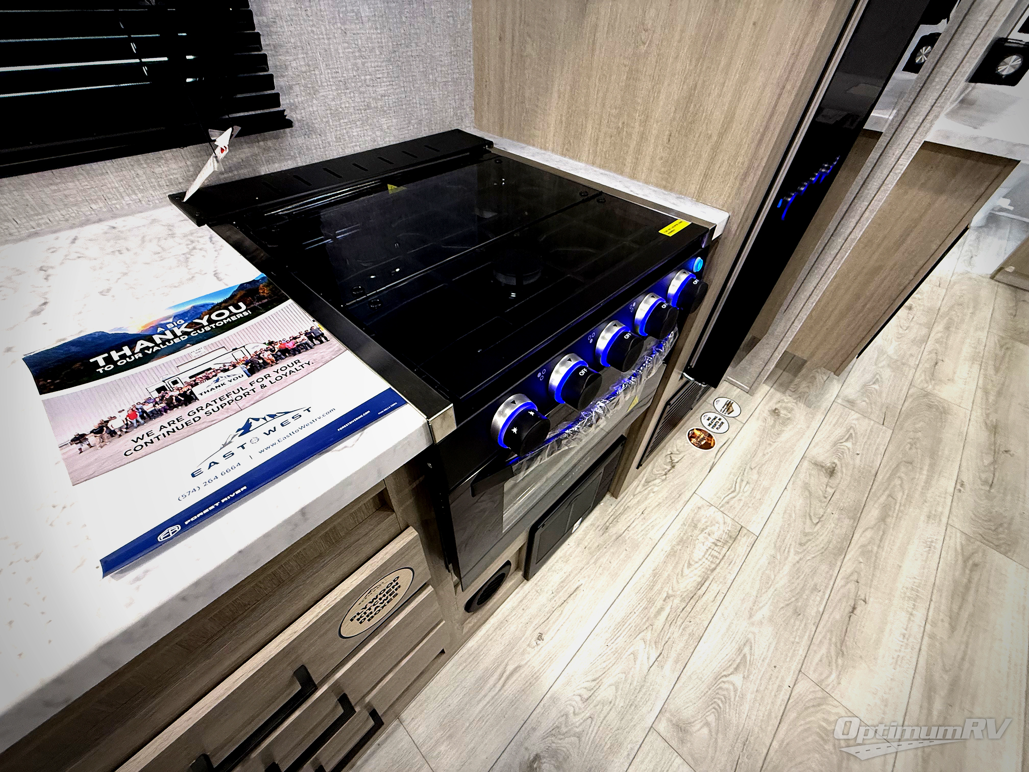 Each Della Terra travel trailer by EAST TO WEST is constructed with an enclosed and heated underbelly and enclosed holding tanks for added protection against the elements. There is also a power tongue jack with an LED light for easy set up and a power awning with LED lights you can rest under after you've unpacked. The Explore Comfort Package comes seamless pressed countertops, kitchen backsplash, window valance package with black night shades, and many more comforts. You will also appreciate the Adventure Outdoor Package with backup camera prep and solar prep, a tankless water heater, an RV grill quick disconnect, and a universal docking station with battery disconnect.