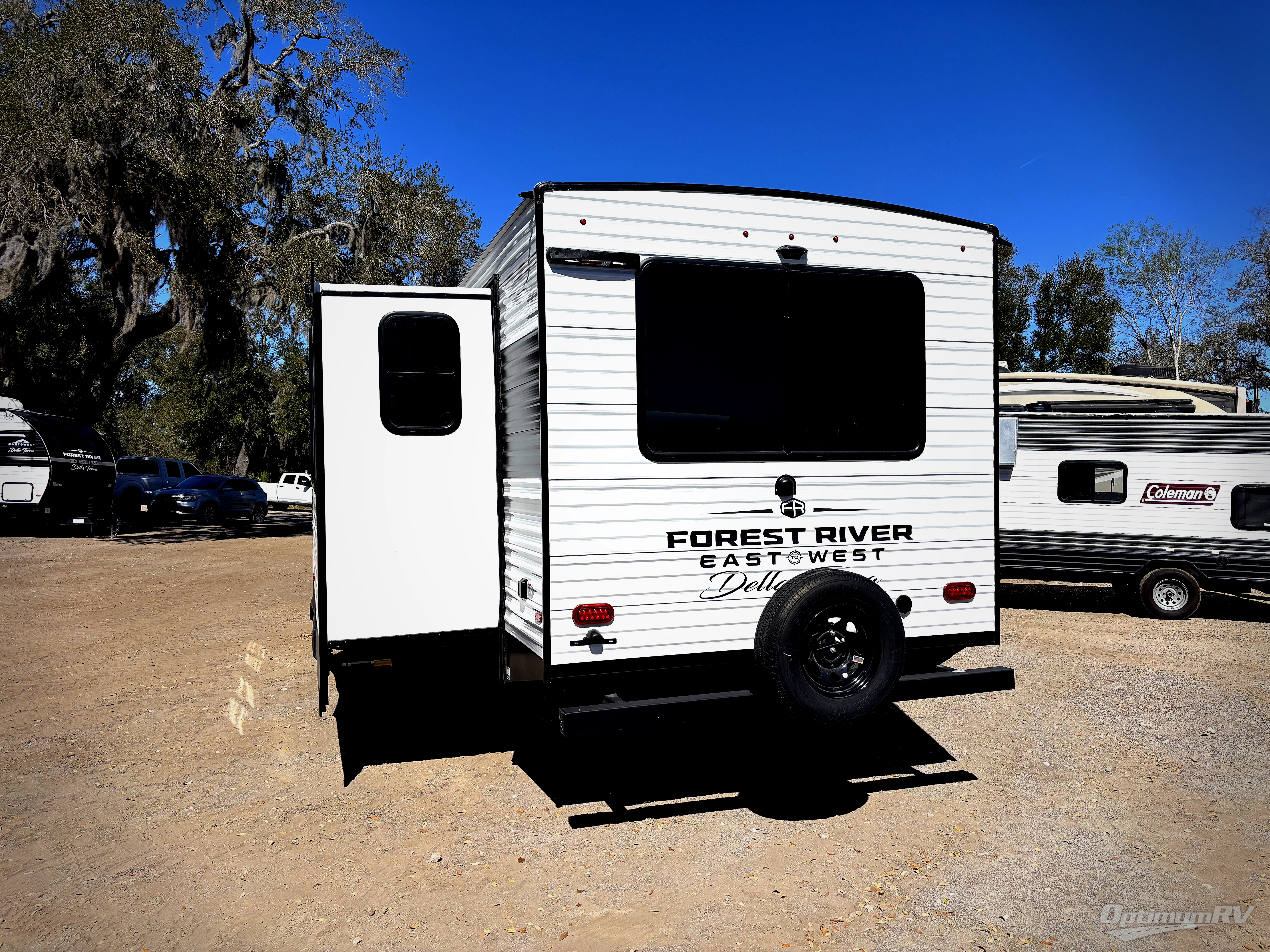 Each Della Terra travel trailer by EAST TO WEST is constructed with an enclosed and heated underbelly and enclosed holding tanks so you can camp all year long. There is also a power tongue jack with an LED light for easy set up and a power awning with LED lights you can rest under after you've unpacked. The Explore Comfort Package comes seamless pressed countertops, kitchen backsplash, window valance package with black night shades, and many more comforts. You will also appreciate the Adventure Outdoor Package with backup camera prep and solar prep, a tankless water heater, an RV grill quick disconnect, and a universal docking station with battery disconnect.