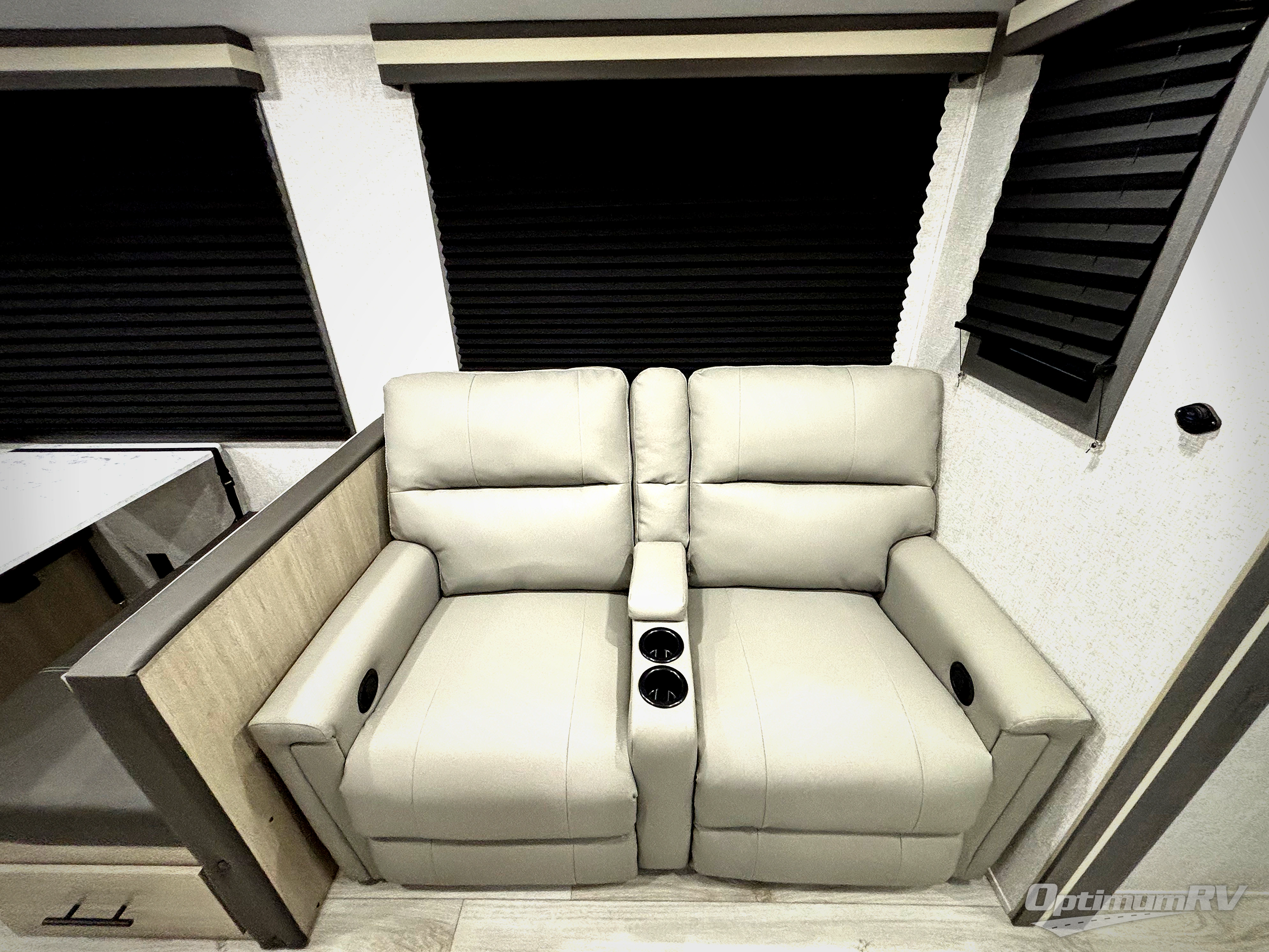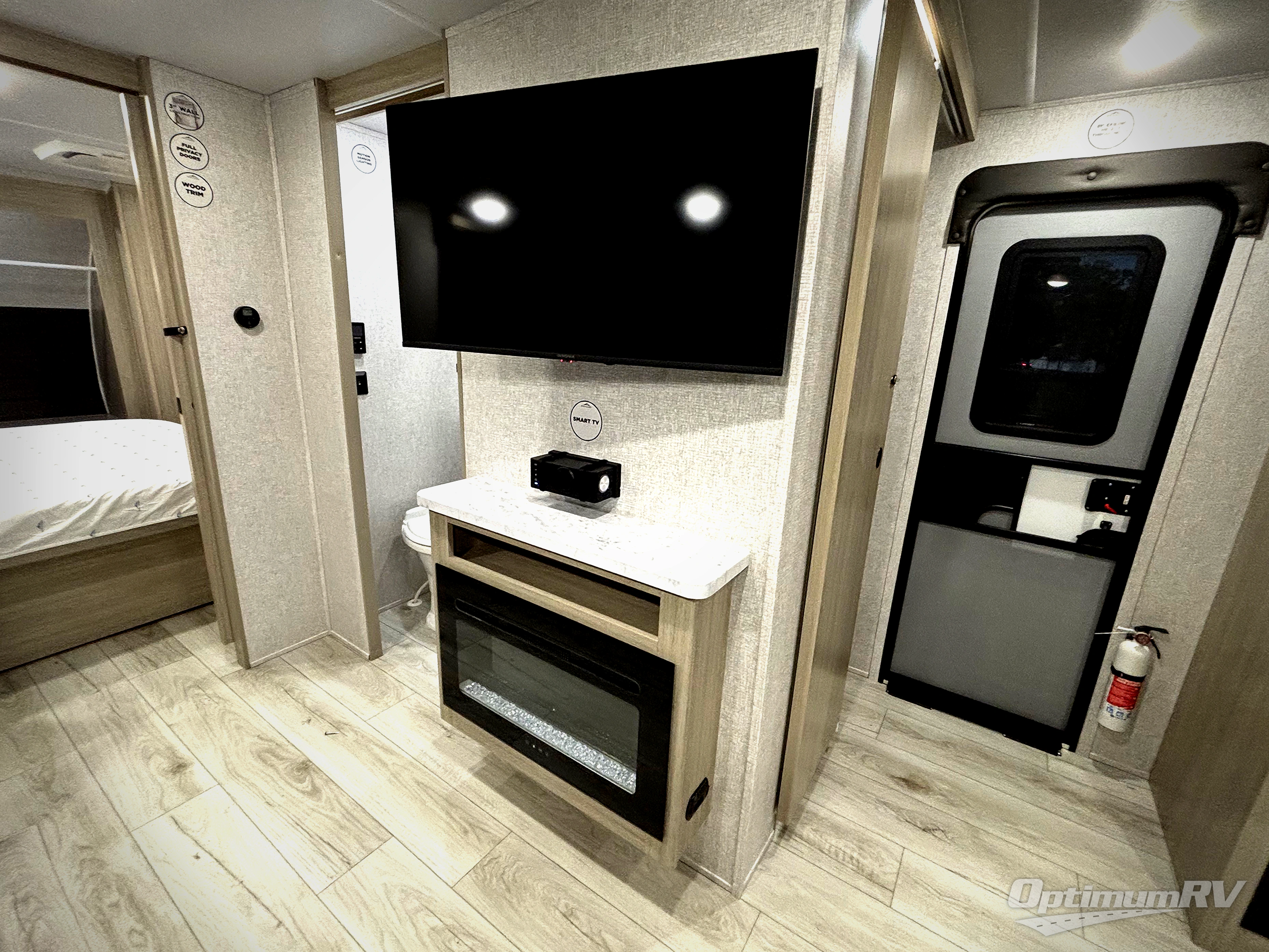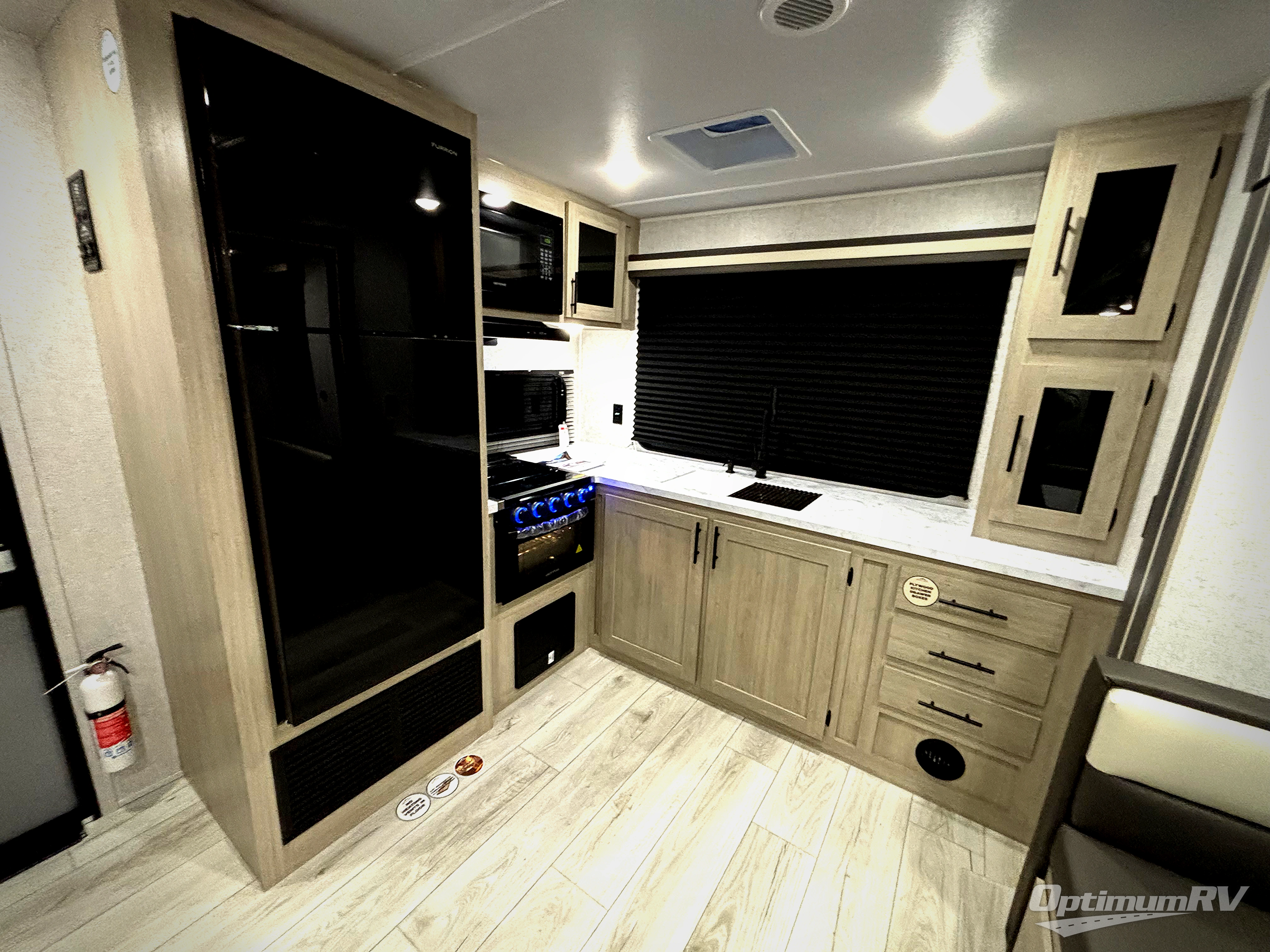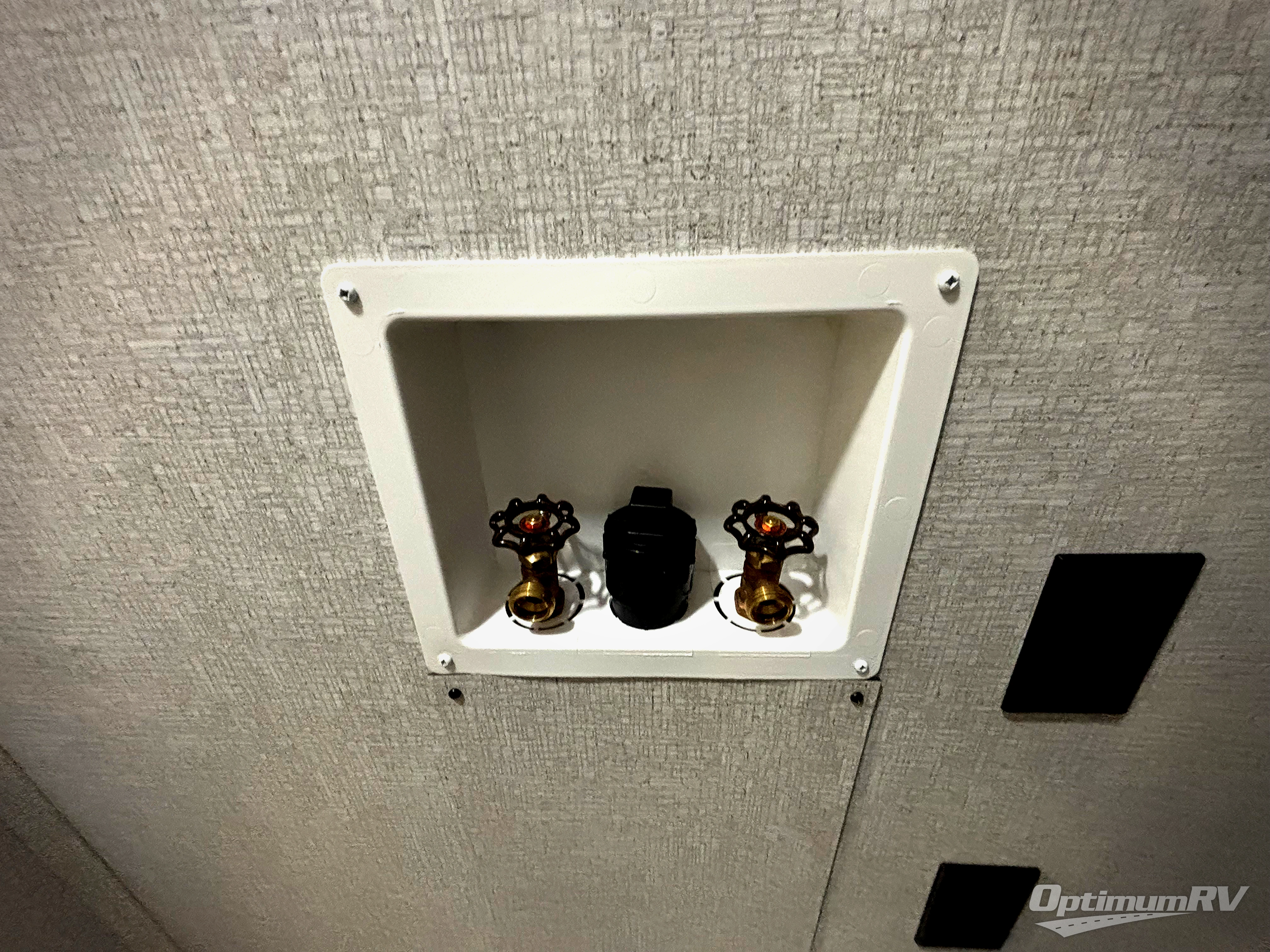 This travel trailer will feel just like home with its spacious interior and at-home comforts. Since there are dual entry doors, you can enter in through the front bedroom or the rear kitchen and living area. A king bed slide in the bedroom is sure to bring comfort, and there is a closet to keep your clothes wrinkle-free, plus washer and dryer prep. The second slide out is found in the living room, and here you can relax on the jiffy sofa or dine at the booth dinette. The chef of your group will love cooking in the rear kitchen, and there is generous counter space here to set out snacks. An entryway pantry and closet will provide additional storage for snacks, jackets, and more!