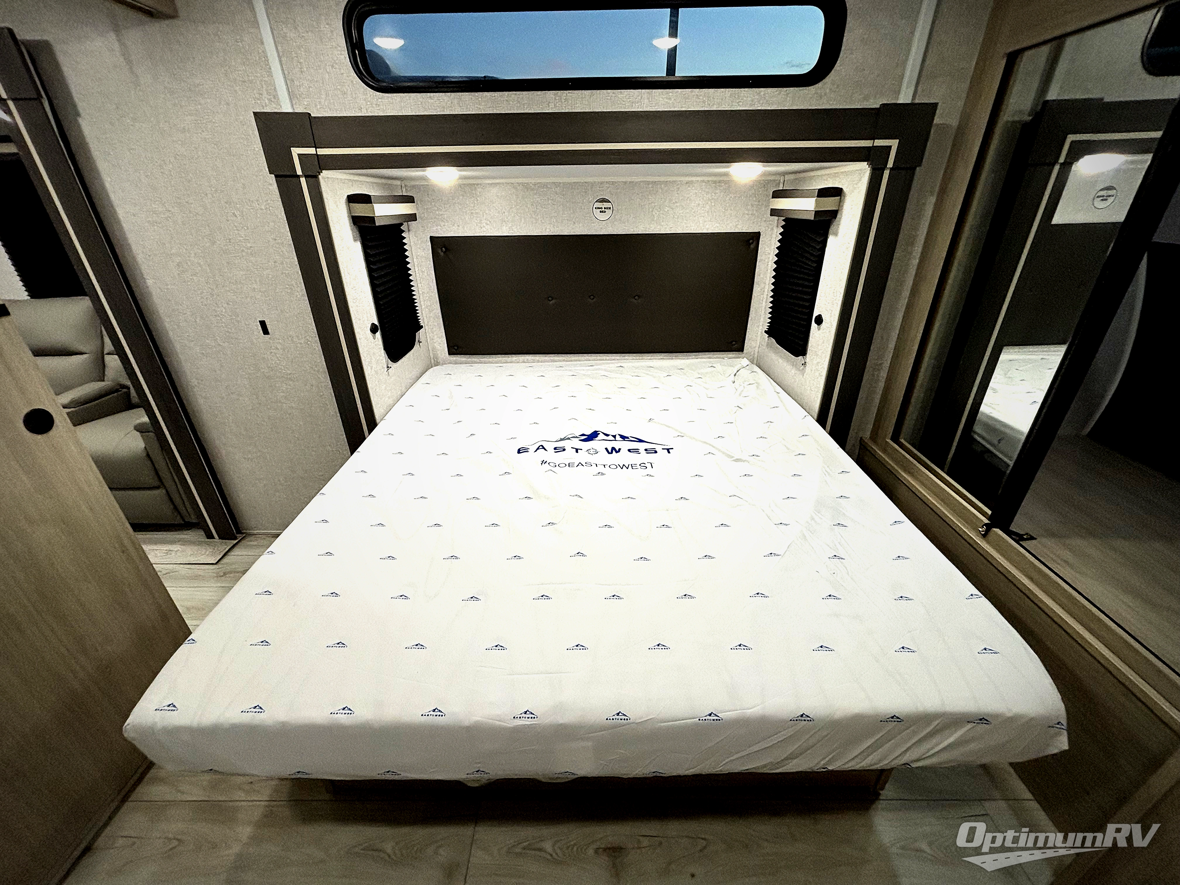 Each Della Terra travel trailer by EAST TO WEST is constructed with an enclosed and heated underbelly and enclosed holding tanks for added protection against the elements. There is also a power tongue jack with an LED light for easy set up and a power awning with LED lights you can rest under after you've unpacked. The Explore Comfort Package comes seamless pressed countertops, kitchen backsplash, window valance package with black night shades, and many more comforts. You will also appreciate the Adventure Outdoor Package with backup camera prep and solar prep, a tankless water heater, an RV grill quick disconnect, and a universal docking station with battery disconnect.