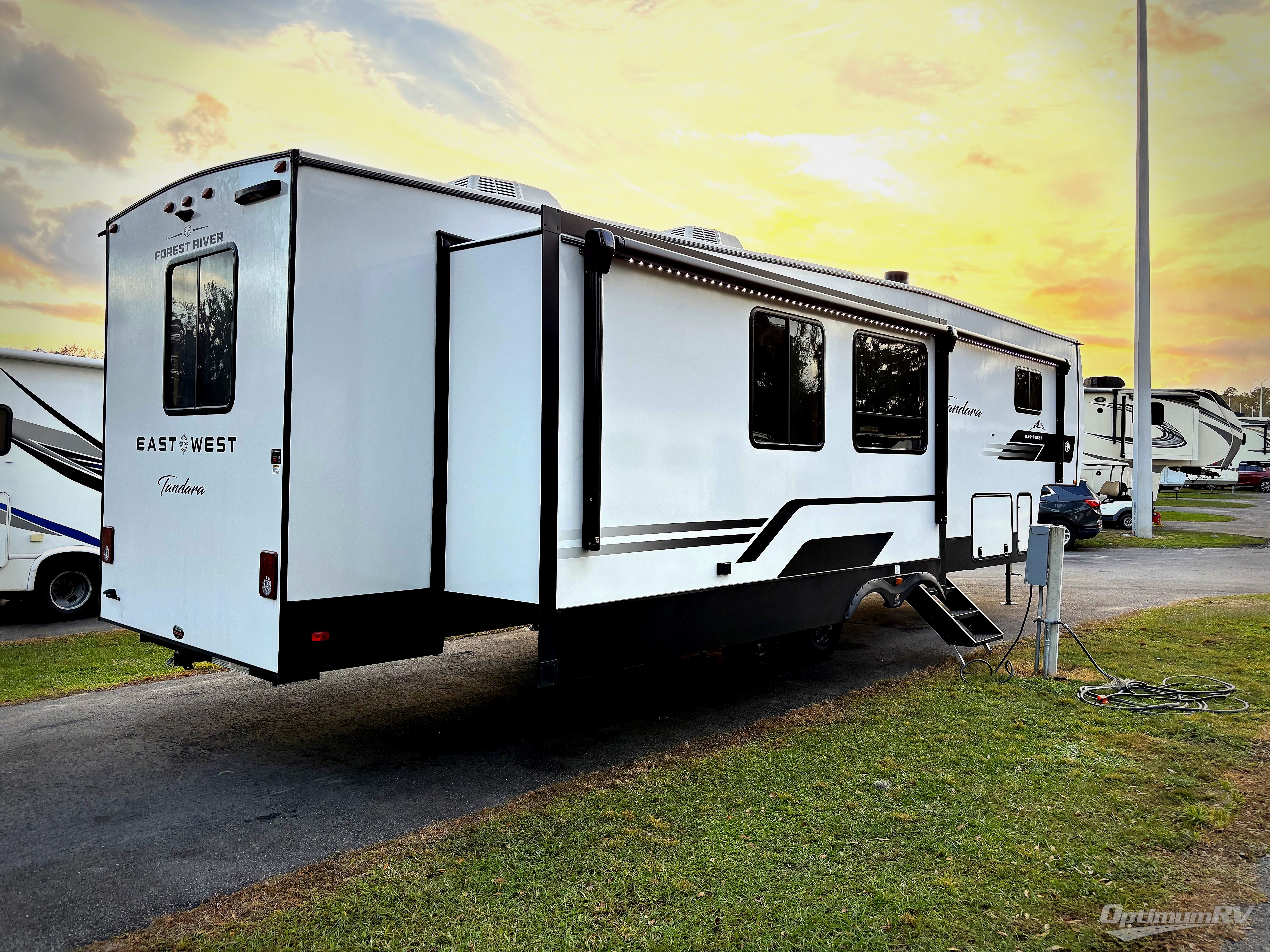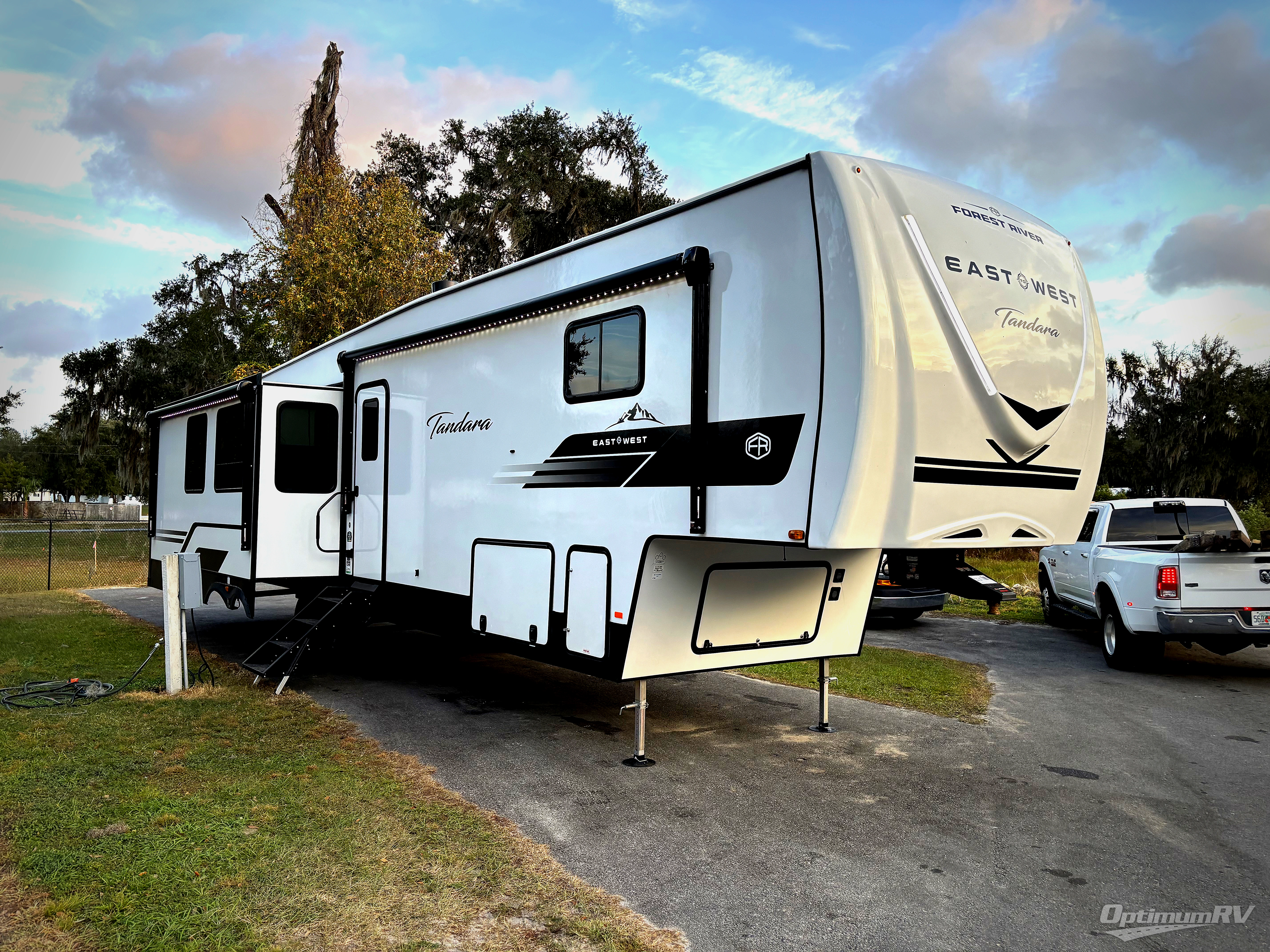 With any Tandara fifth wheel by EAST TO WEST, you will enjoy many standard features to make each trip enjoyable. The Tandara Exterior Luxury Package includes a universal all-in-one docking station, an automatic leveling system, metal slam latch cargo doors, and a 200W solar panel for off-grid capabilities. You will also appreciate the Tandara Climate Package with ductless flooring, dual attic vents, plus a heated and enclosed underbelly for added protection. Inside, you'll find a flush floor kitchen slide, Slow Rise roller shades, solid surface kitchen countertops, and more stand-out features included in the Tandara Interior Luxury Package.