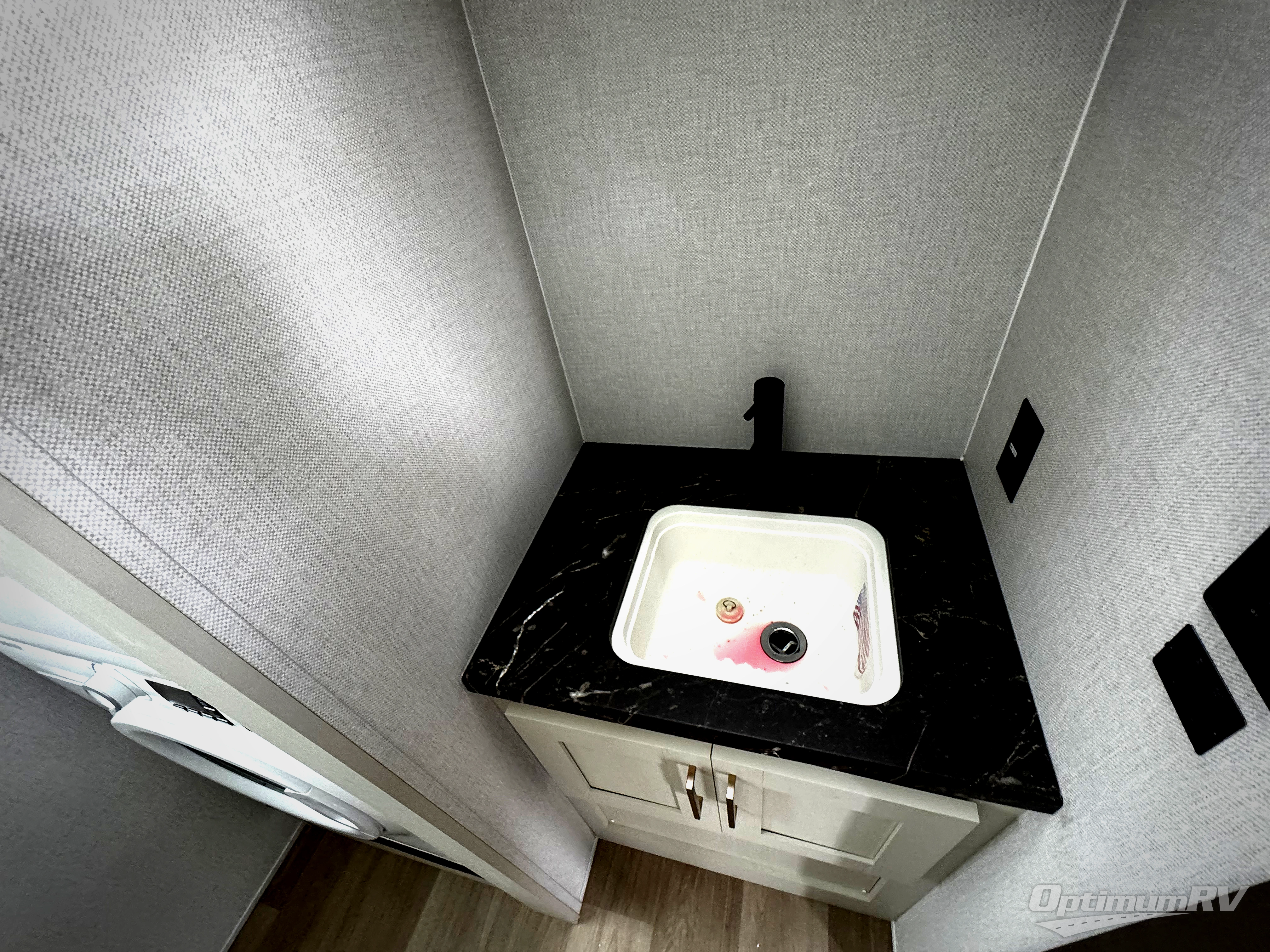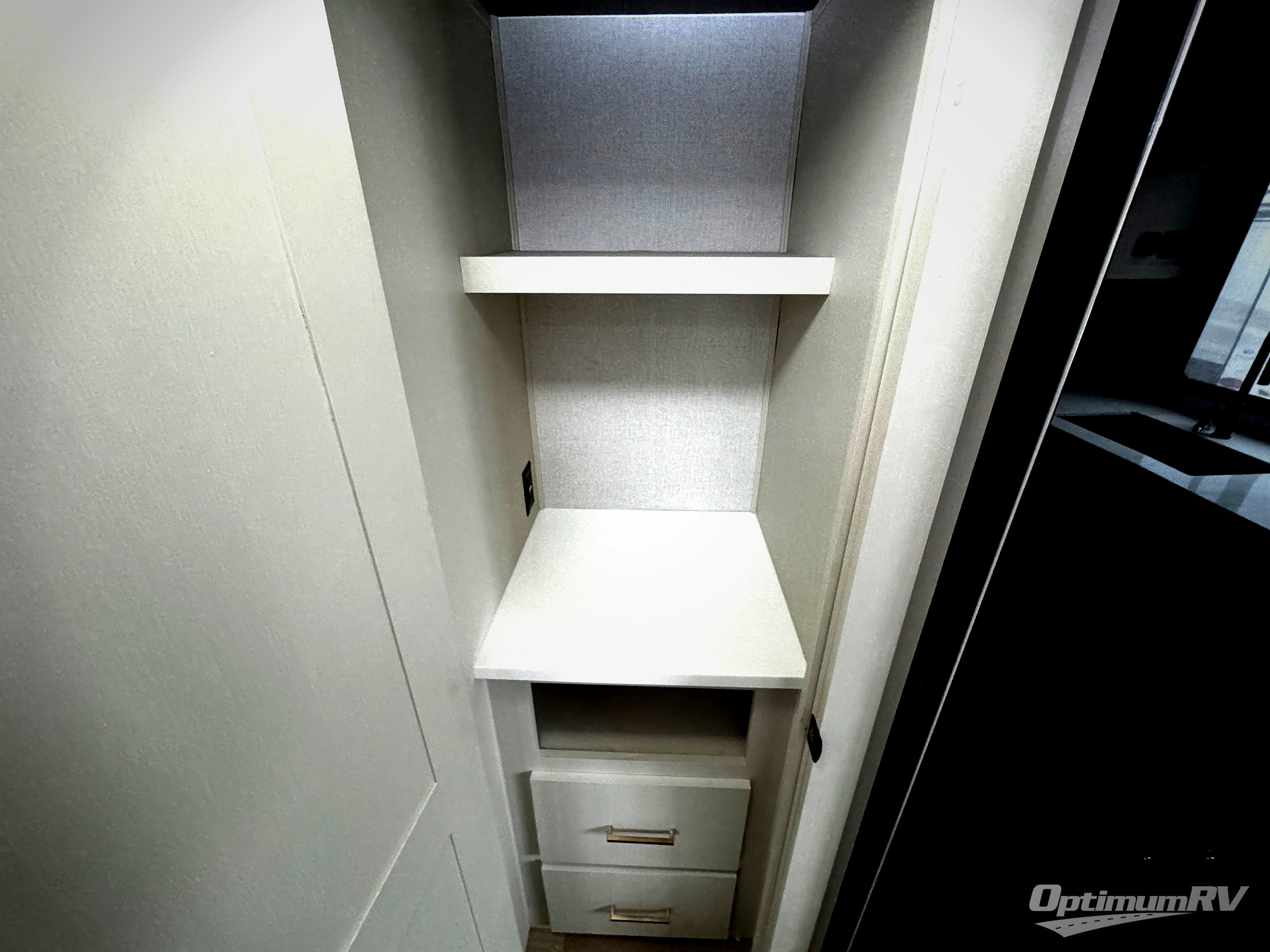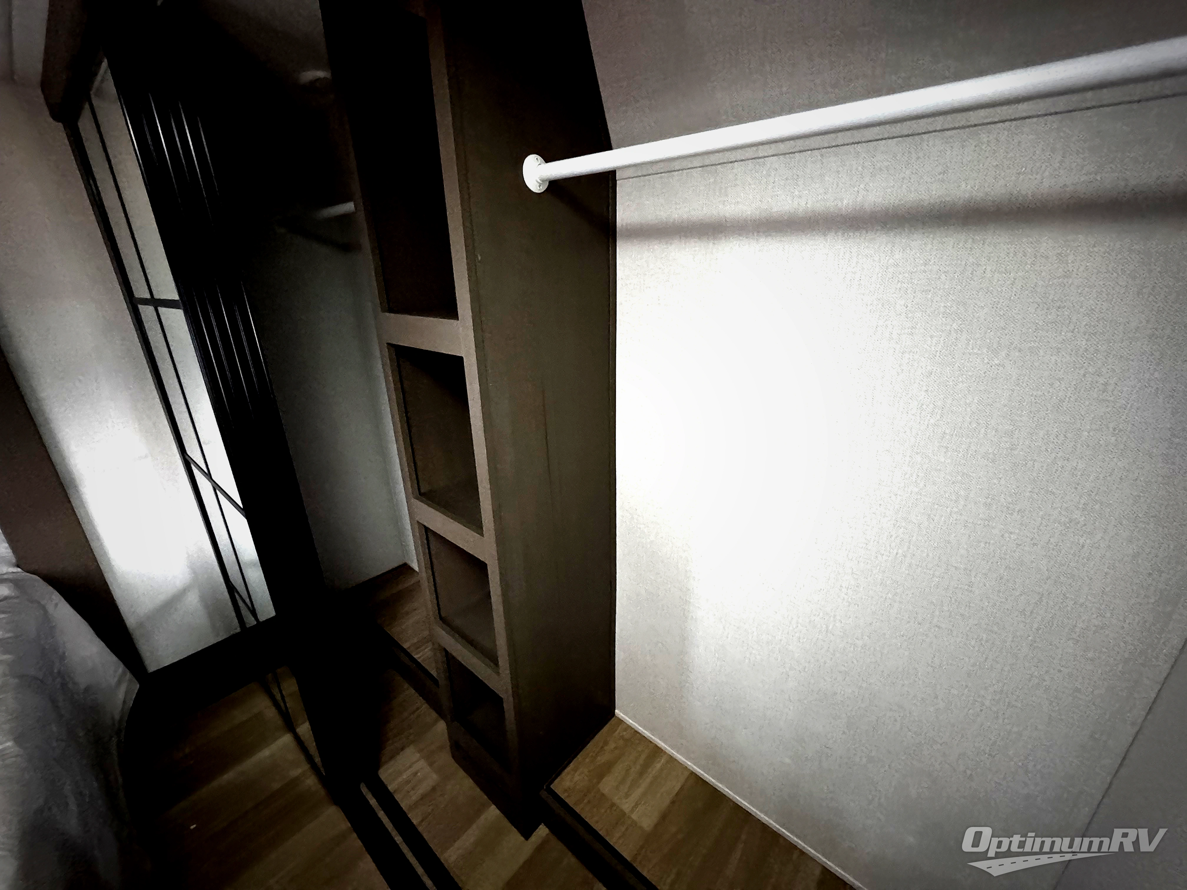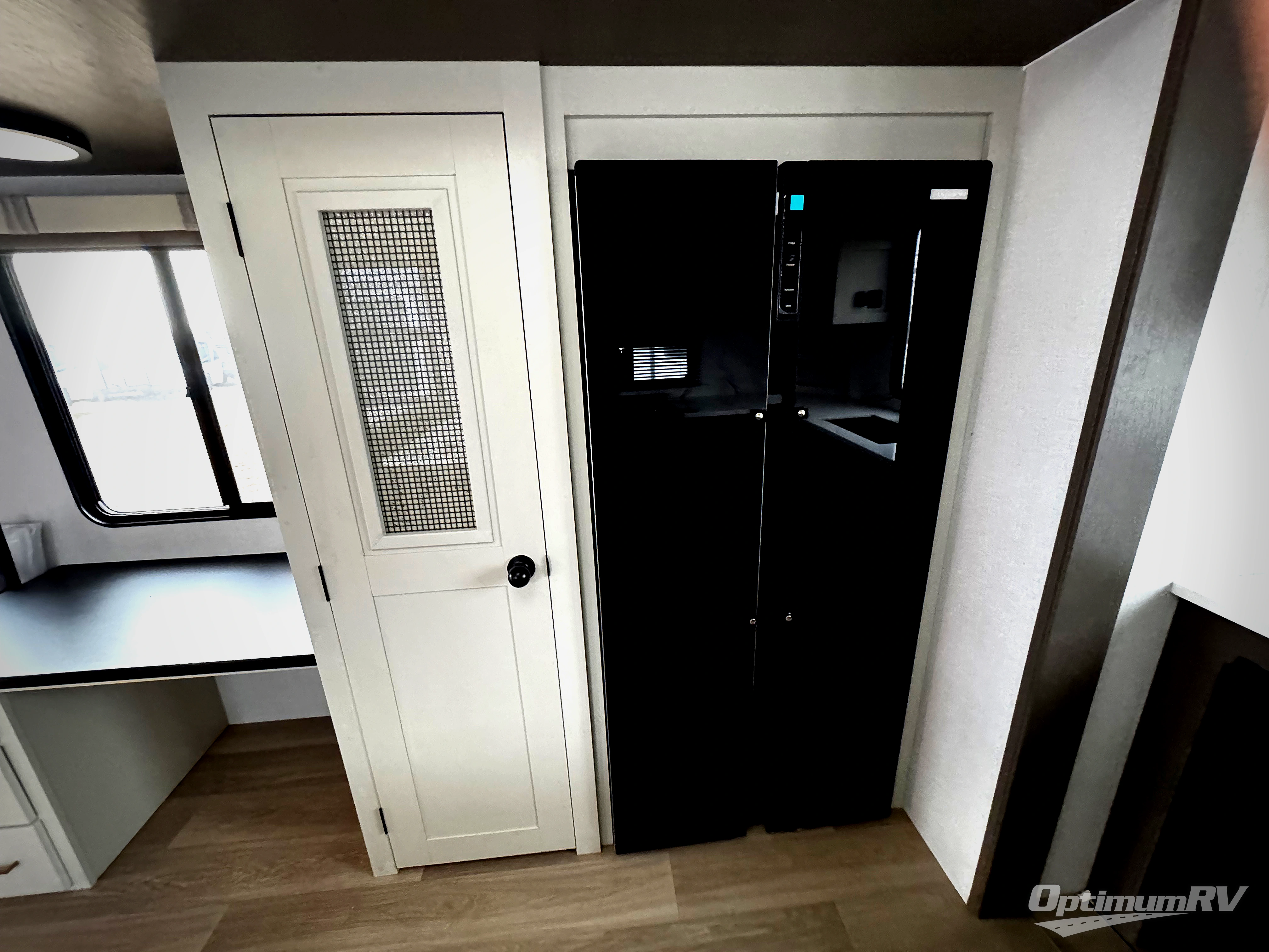 It won't be hard to find comfort and convenience in this spacious fifth wheel! The rear kitchen features ample counter space, a four burner 24" range, plus a 16 cu. ft. 12V refrigerator and pantry for food storage. There is also a desk here if you plan to work while you're away from home, and the coffee station by the pantry will be the perfect place to set up your own Keurig machine. The middle living area includes theater seating across from the 65" TV and fireplace, and there is a hide-a-bed sofa for guests to sleep on. A convenient utility room includes a sink with counter space plus stackable washer/dryer prep to make this an optional laundry room! A full bath will let you freshen up each day, and the front private bedroom will feel just like home with its king bed slide out, dresser and full-width wardrobe!