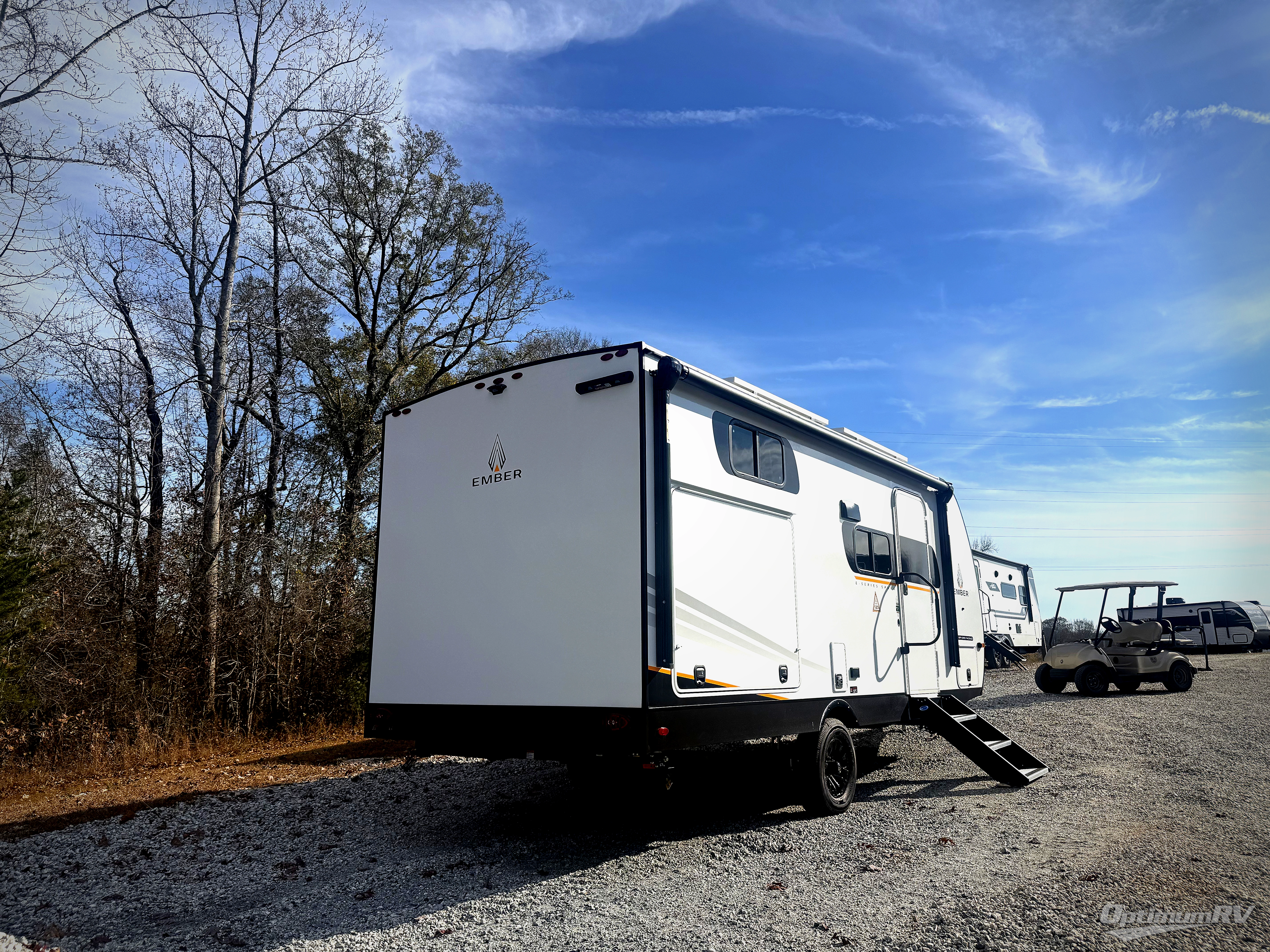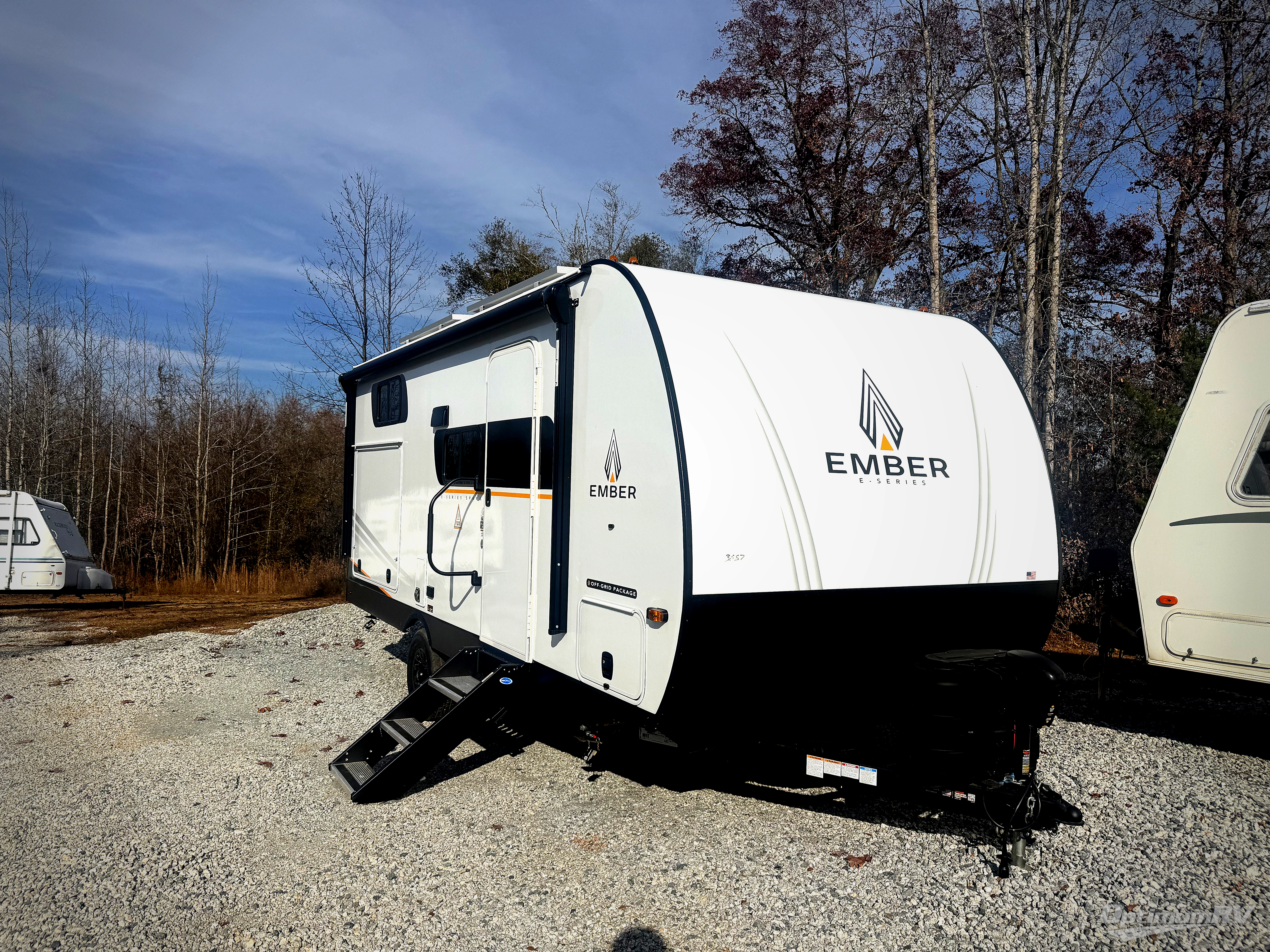 With any E-Series travel trailer by Ember RV you will enjoy a lightweight RV with all the "Essentials" needed for memorable trips in the great outdoors! Each model is constructed with durable laminated Azdel Onboard composite walls, a full walkable roof with a one-piece Tufflex PVC roofing material, and a gel-coated fiberglass exterior. The Dexter axles with E-Z lube hubs and forward self-adjusting electric brakes plus Goodyear Endurance tires will provide a smooth tow from home to campground. You will appreciate the Congoleum DiamondFlor "carpetless" interior that is easy to clean, and the hardwood framed cabinet doors will create a more residential feel. Each model includes a tankless on-demand water heater for endless hot showers and an 18,000 BTU Max Cool "Whisper Quiet" A/C, which is the largest single A/C in its class! If you're looking for off-grid capabilities, you might want to choose the optional Off-Grid Solar Package with 400 total watts of solar panels, a 2,000W Pure Sine wave inverter, and a Victron MPPT solar controller!