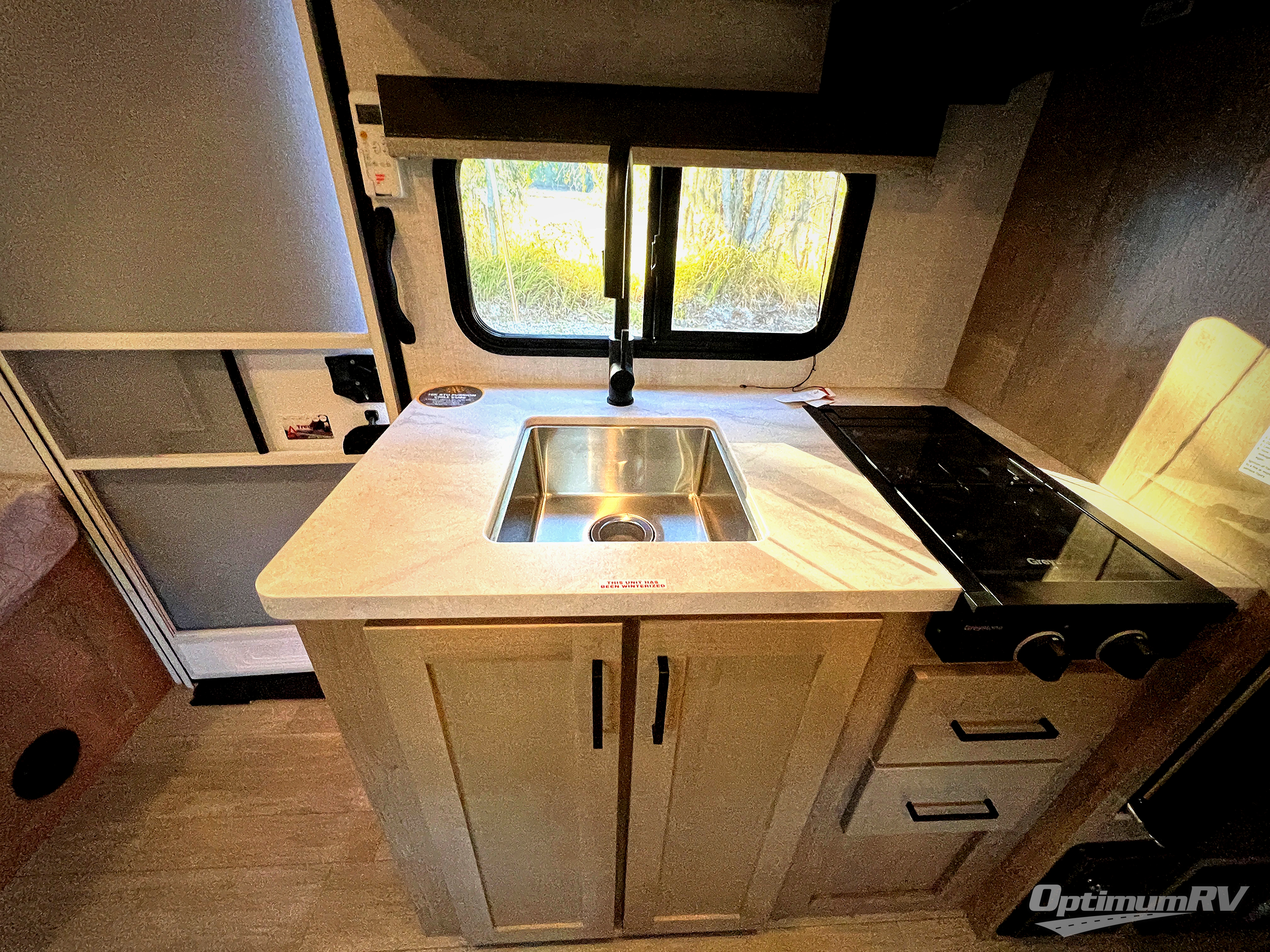 With any E-Series travel trailer by Ember RV you will enjoy a lightweight RV with all the "Essentials" needed for memorable trips in the great outdoors! Each model is constructed with durable laminated Azdel Onboard composite walls, a full walkable roof with a one-piece Tufflex PVC roofing material, and a gel-coated fiberglass exterior. The Dexter axles with E-Z lube hubs and forward self-adjusting electric brakes plus Goodyear Endurance tires will provide a smooth tow from home to campground. You will appreciate the Congoleum DiamondFlor "carpetless" interior that is easy to clean, and the hardwood framed cabinet doors will create a more residential feel. Each model includes a tankless on-demand water heater for endless hot showers and an 18,000 BTU Max Cool "Whisper Quiet" A/C, which is the largest single A/C in its class! If you're looking for off-grid capabilities, you might want to choose the optional Off-Grid Solar Package with 400 total watts of solar panels, a 2,000W Pure Sine wave inverter, and a Victron MPPT solar controller!