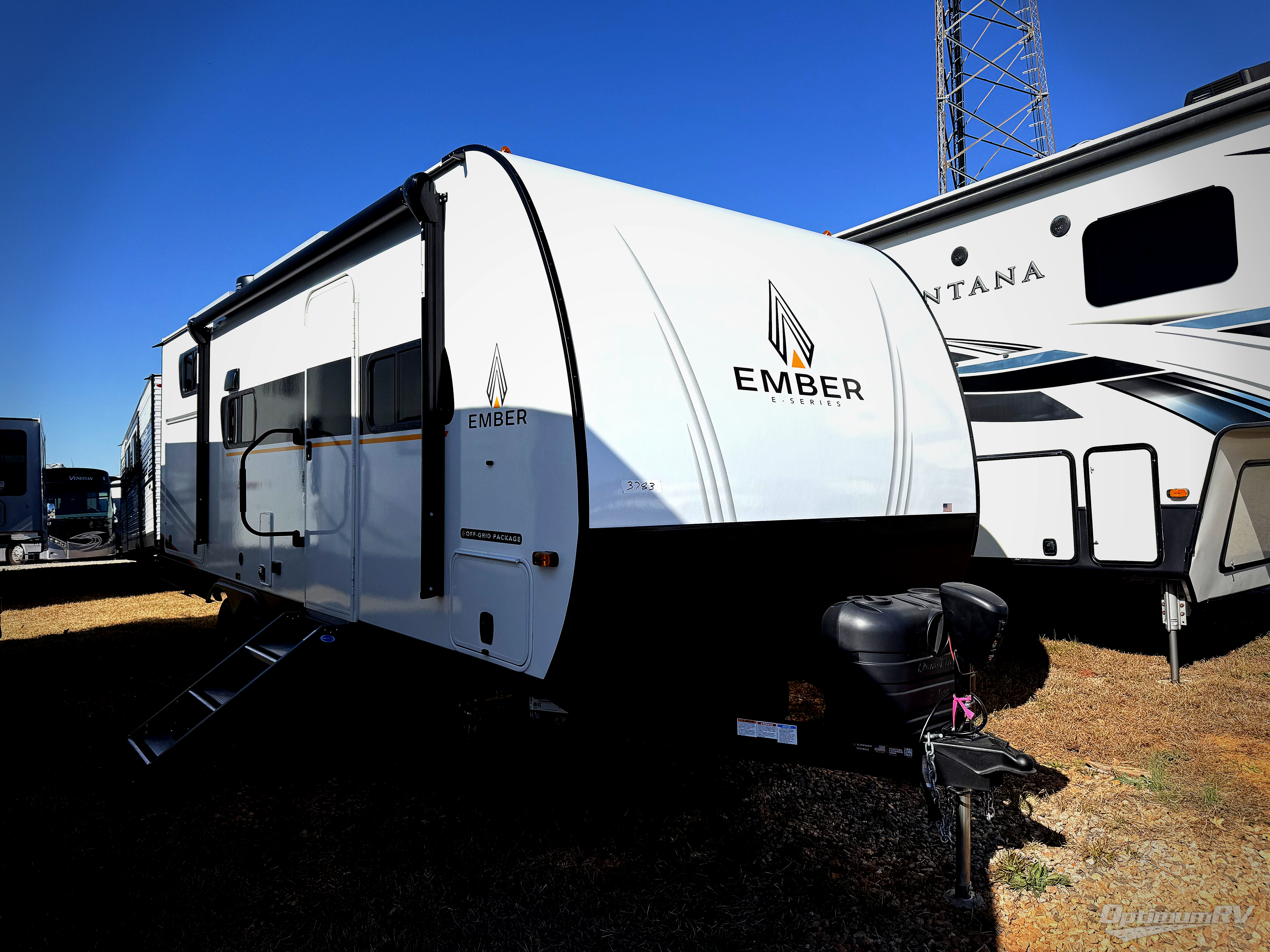 With any E-Series travel trailer by Ember RV you will enjoy a lightweight RV with all the "Essentials" needed for memorable trips in the great outdoors! Each model is constructed with durable laminated Azdel Onboard composite walls, a full walkable roof with a one-piece Tufflex PVC roofing material, and a gel-coated fiberglass exterior. The Dexter axles with E-Z lube hubs and forward self-adjusting electric brakes plus Goodyear Endurance tires will provide a smooth tow from home to campground. You will appreciate the Congoleum DiamondFlor "carpetless" interior that is easy to clean, and the hardwood framed cabinet doors will create a more residential feel. Each model includes a tankless on-demand water heater for endless hot showers and an 18,000 BTU Max Cool "Whisper Quiet" A/C, which is the largest single A/C in its class! If you're looking for off-grid capabilities, you might want to choose the optional Off-Grid Solar Package with 400 total watts of solar panels, a 2,000W Pure Sine wave inverter, and a Victron MPPT solar controller!