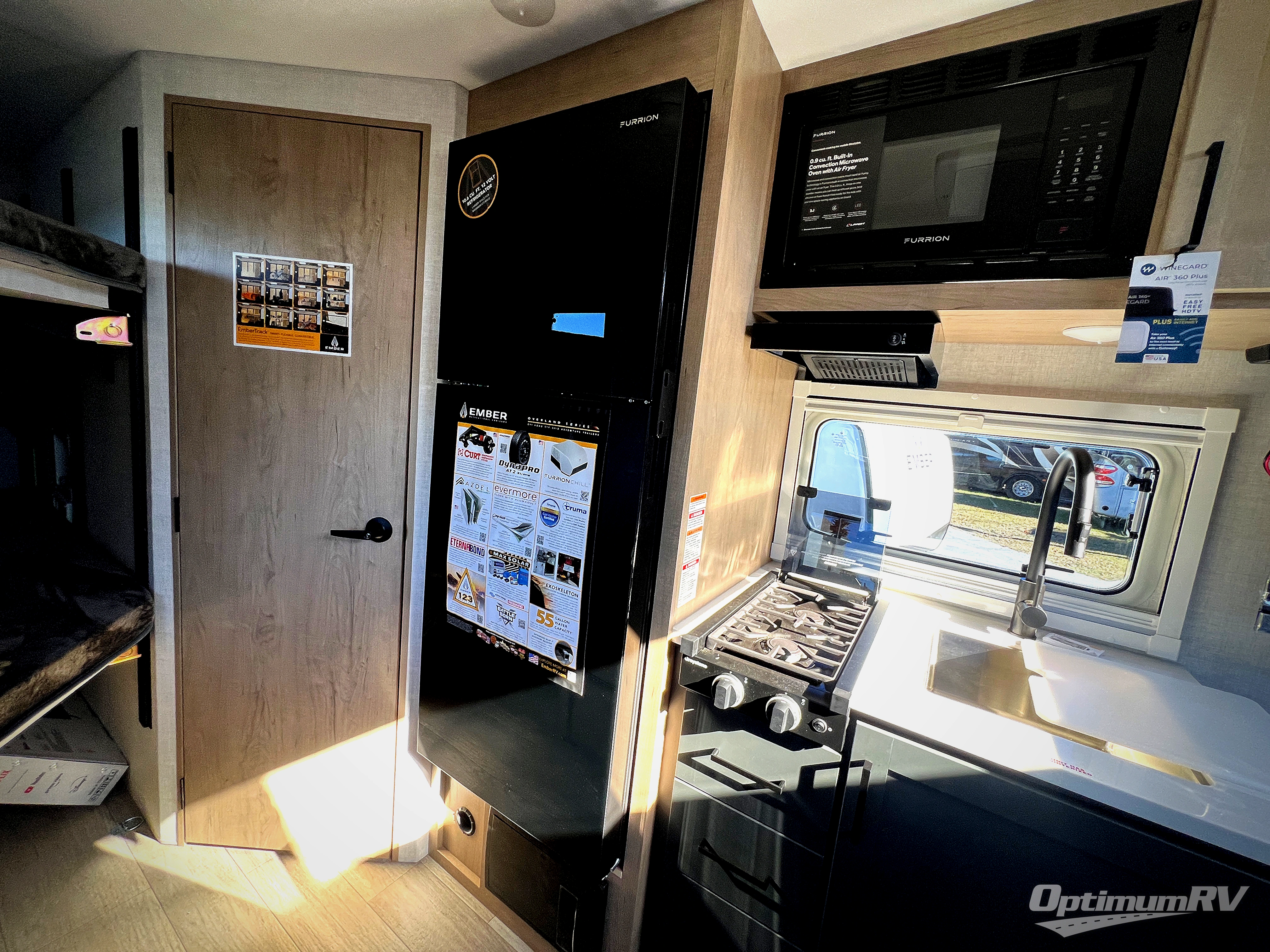 This unique travel trailer offers versatile living! Starting with the front Murphy bed that has a 60" x 80" queen bed to lay your head on at night and can convert into a sofa for seating during the day with a nightstand and a 12V HDTV/AV system to watch your favorite movies in bed. Create your best home cooked meals with the dual burner cooktop and 12V refrigerator then enjoy them at the jackknife sofa with a removable table. There is a second removable table that can be used by the Murphy bed/sofa. The repositionable Embertack E-track bunk/storage system has a 74" x 46" cargo space for your items and a storage locker door to access them from the exterior. You can enjoy twin bunks or convert them to double-size bunks to sleep two to four. The exterior also features a kayak/bike storage door, front pass-through storage area, and a 2" accessory receiver!