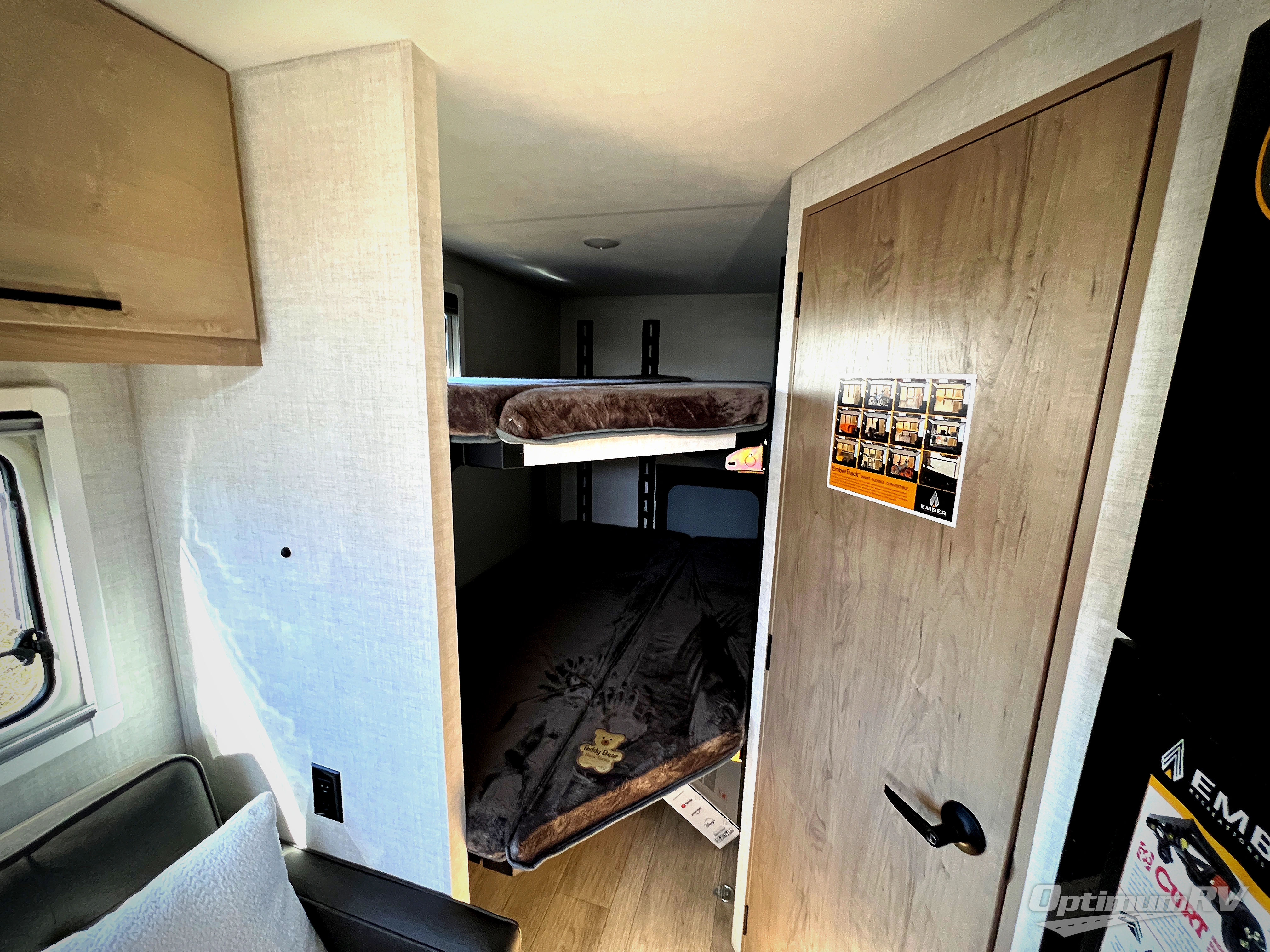 Each one of these Ember RV Overland Series travel trailers and toy hauler were built to meet the needs of today's most discerning RVers with layouts to fit couples and families! The CURT independent suspension comes with heavy-duty coil springs with dual shock absorbers on each wheel, and the 5-sided aluminum frame construction is sure to hold up through whatever adventure you throw its way. Laminated Azdel Onboard composite walls and rooftop prevent rotting or molding of the unit. Their chic interior design comes with structural composite flooring that is durable and easy to clean, dual pane caravan windows with integrated thermal shades/screens for added privacy, and an EmberLink smart RV control system to use at the touch of a finger. The Off-Grid Solar package lets you go further into the woods and the Safety First package helps you arrive safely to each destination.