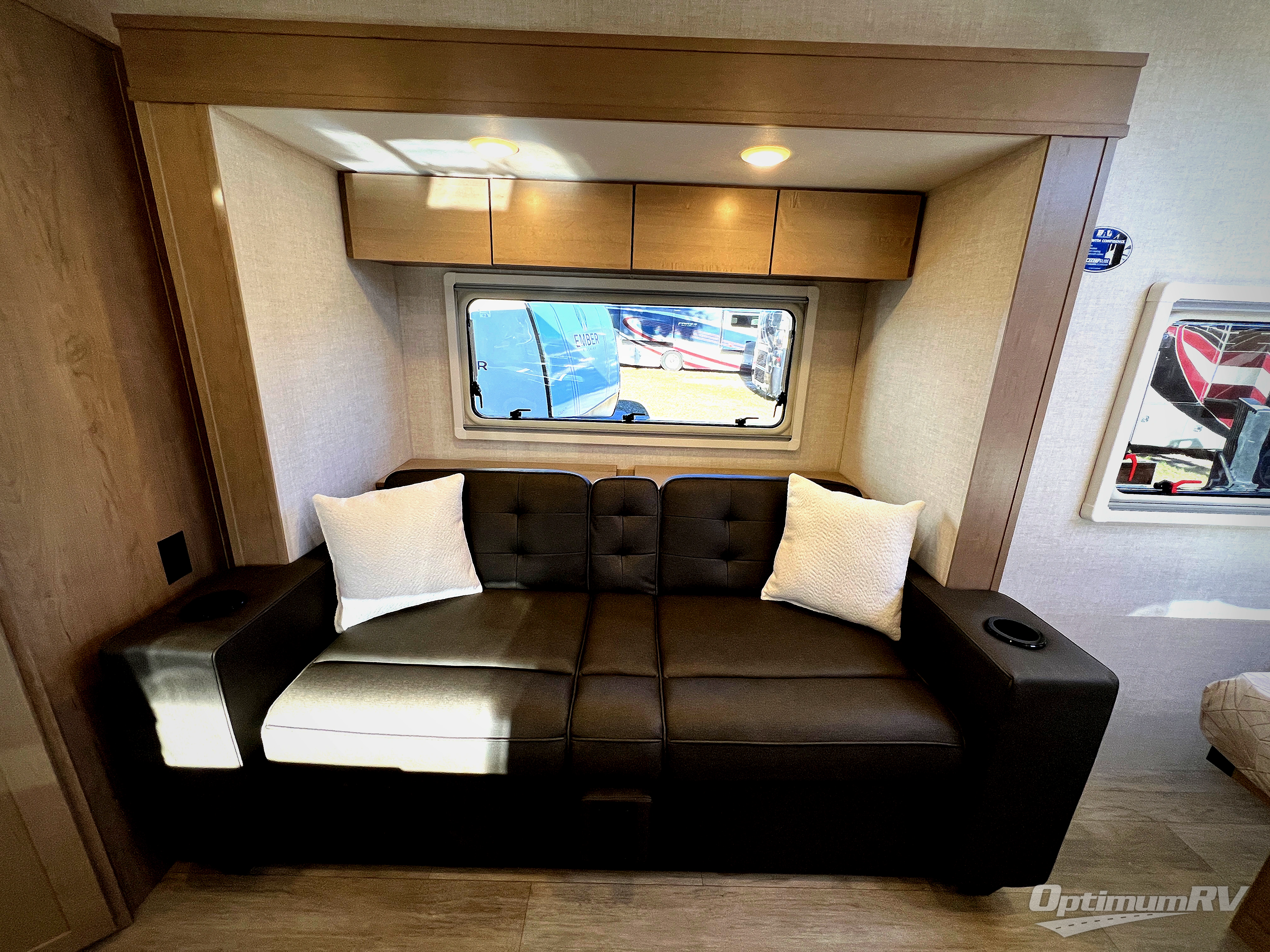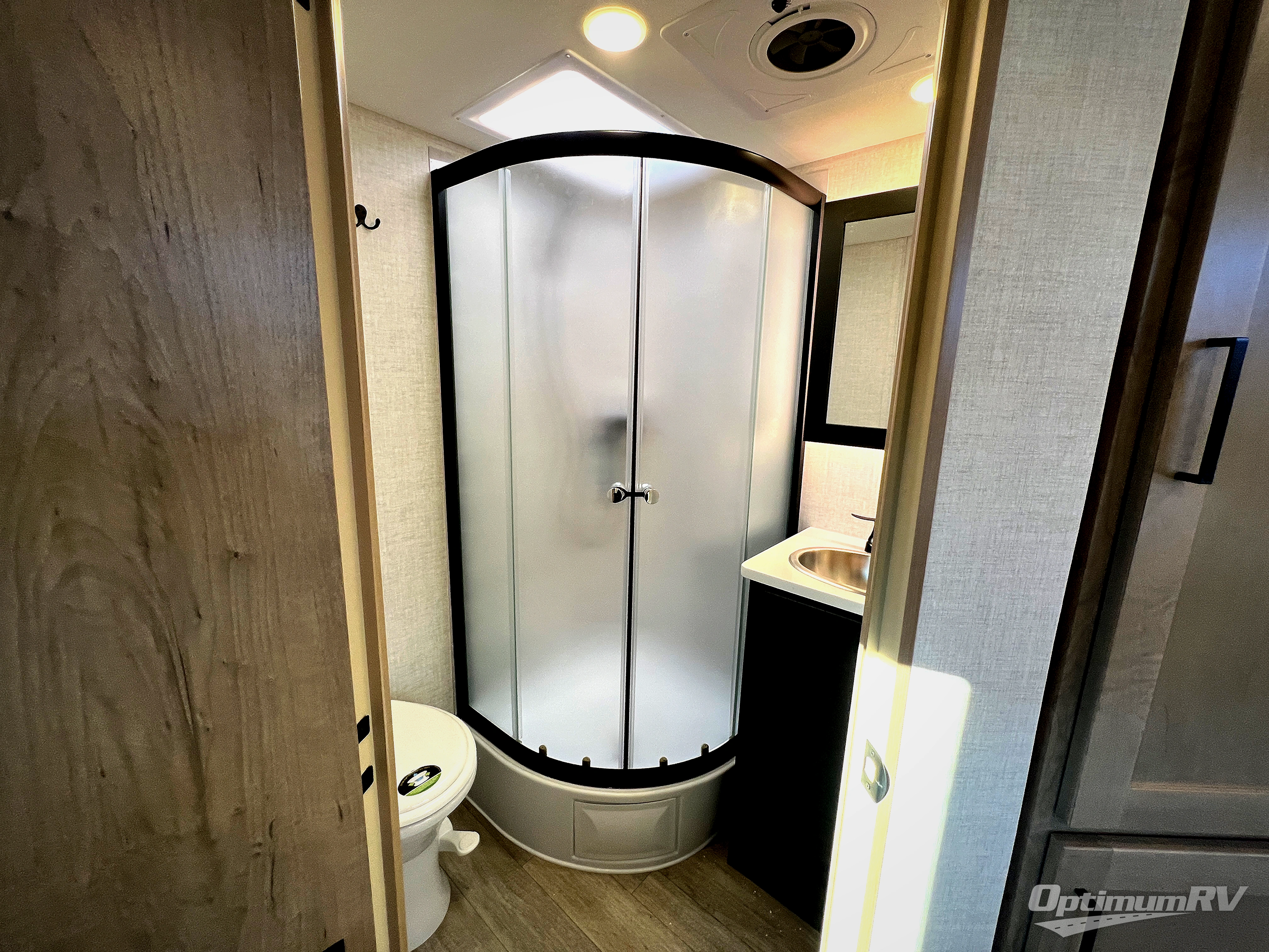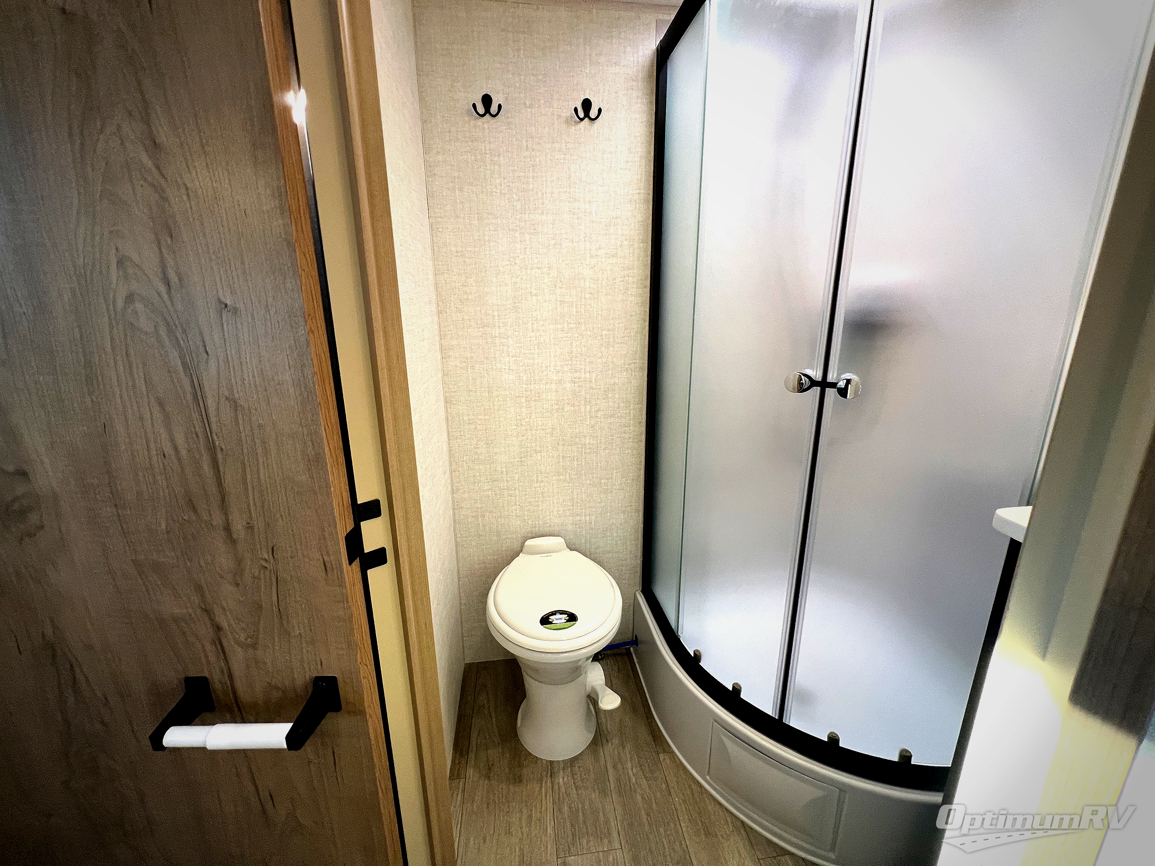 Head to your favorite campgrounds in this travel trailer! It features a front queen bed to lay your head on at night with nightstands and wardrobes on either side, plus an additional wardrobe and another hidden wardrobe behind the 12V HDTV/AV system on hinge. Prepare your best home cooked meals with the two burner cooktop and enjoy them at the jackknife sofa slide with a removable table. Behind the sofa are dual storage cubbies to keep your items out of the way too. With two pantries, you can bring all of your favorite snacks. You also have a rear corner bathroom with a 32" radius shower to rinse the sand out of your hair after a fun day at the beach!
