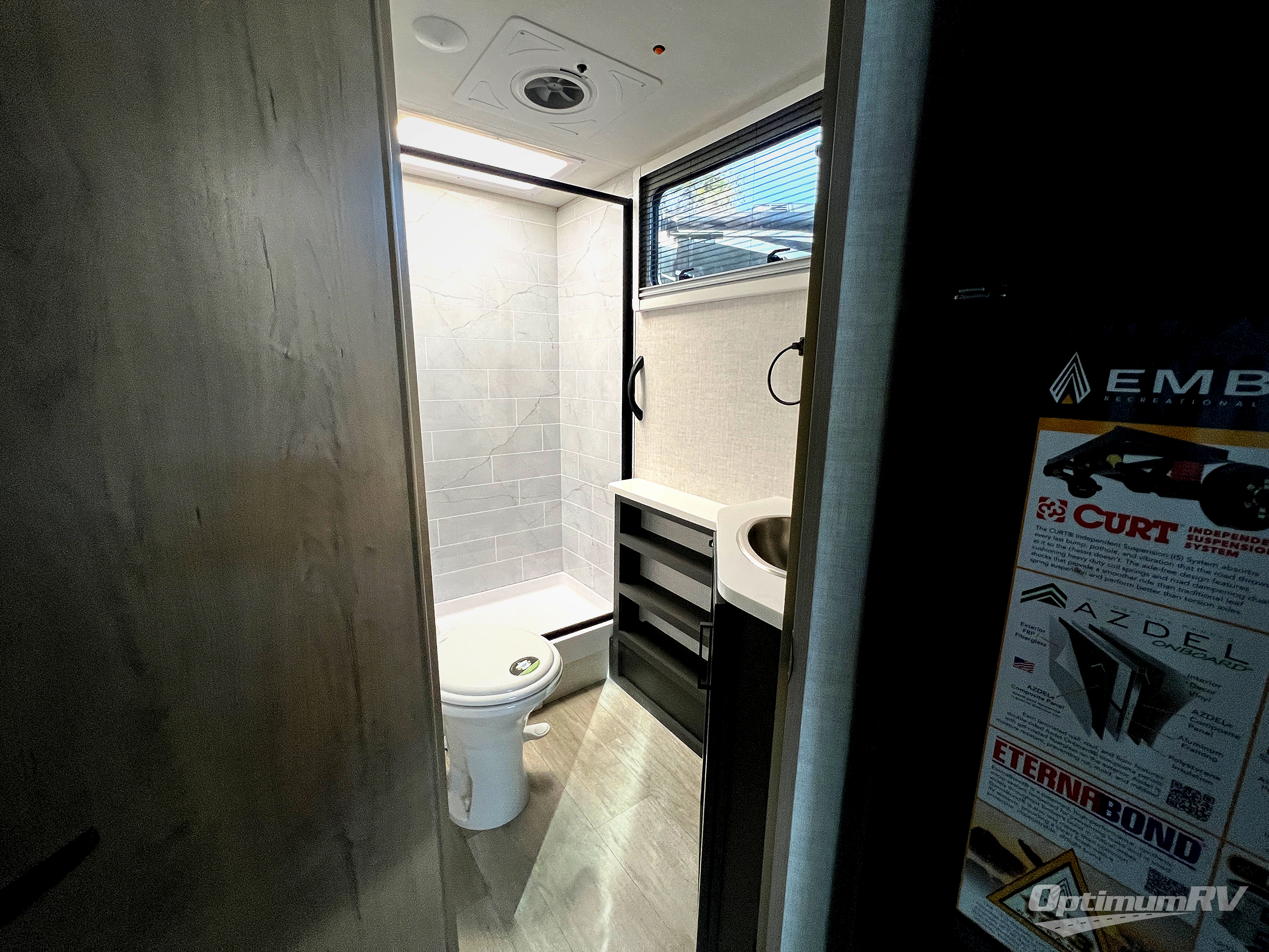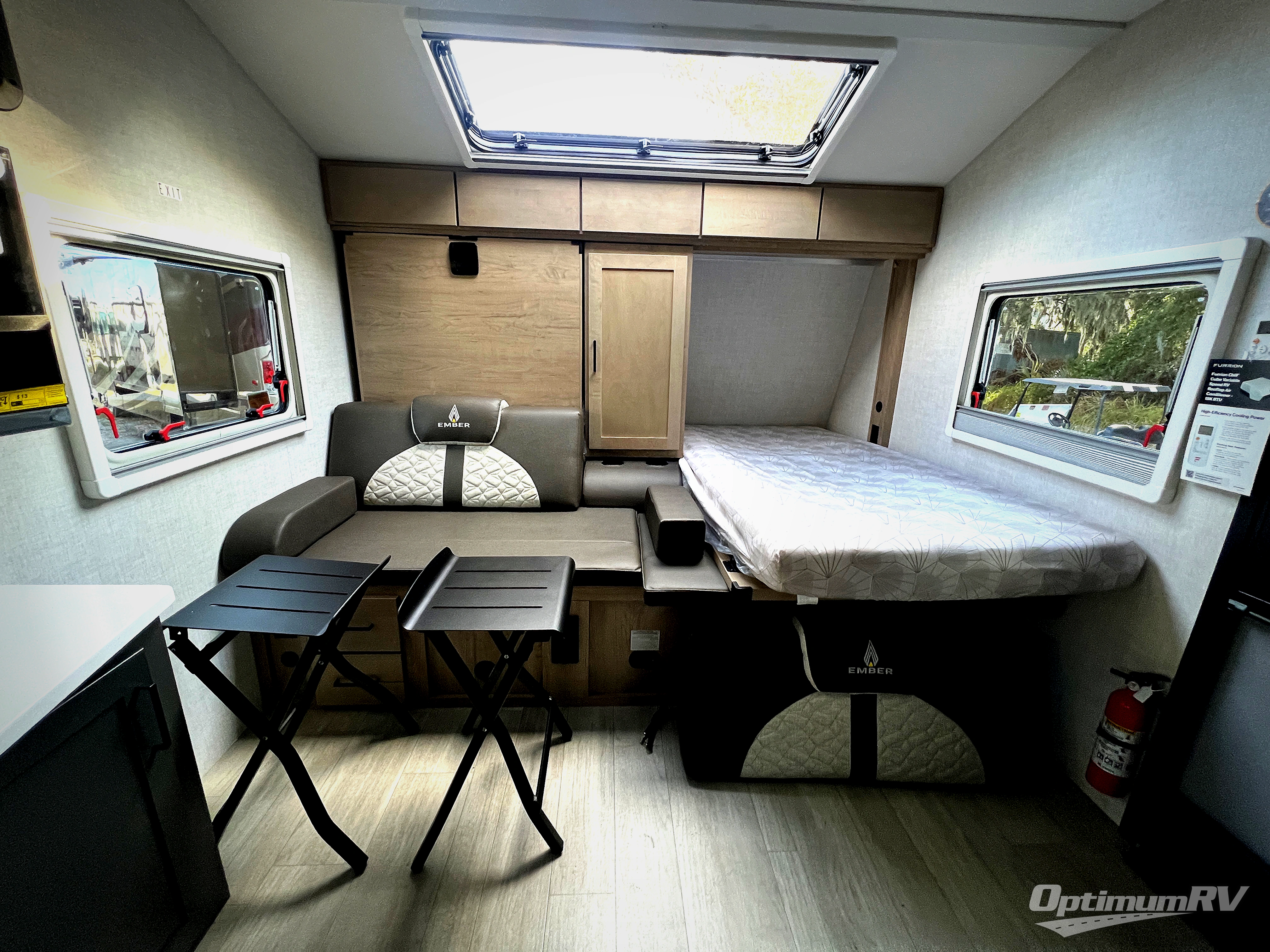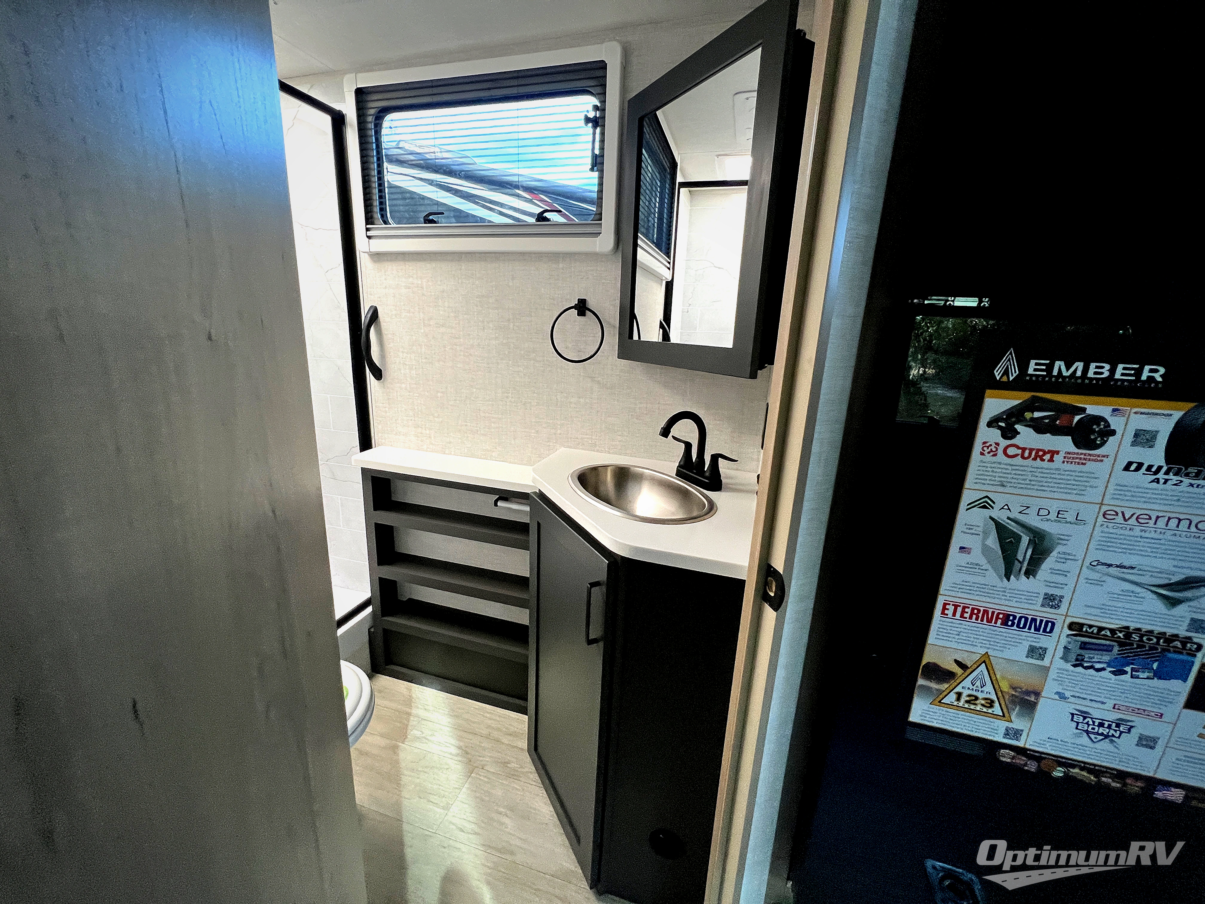 Each one of these Ember RV Overland Series travel trailers and toy hauler were built to meet the needs of today's most discerning RVers with layouts to fit couples and families! The CURT independent suspension comes with heavy-duty coil springs with dual shock absorbers on each wheel, and the 5-sided aluminum frame construction is sure to hold up through whatever adventure you throw its way. Laminated Azdel Onboard composite walls and rooftop prevent rotting or molding of the unit. Their chic interior design comes with structural composite flooring that is durable and easy to clean, dual pane caravan windows with integrated thermal shades/screens for added privacy, and an EmberLink smart RV control system to use at the touch of a finger. The Off-Grid Solar package lets you go further into the woods and the Safety First package helps you arrive safely to each destination.