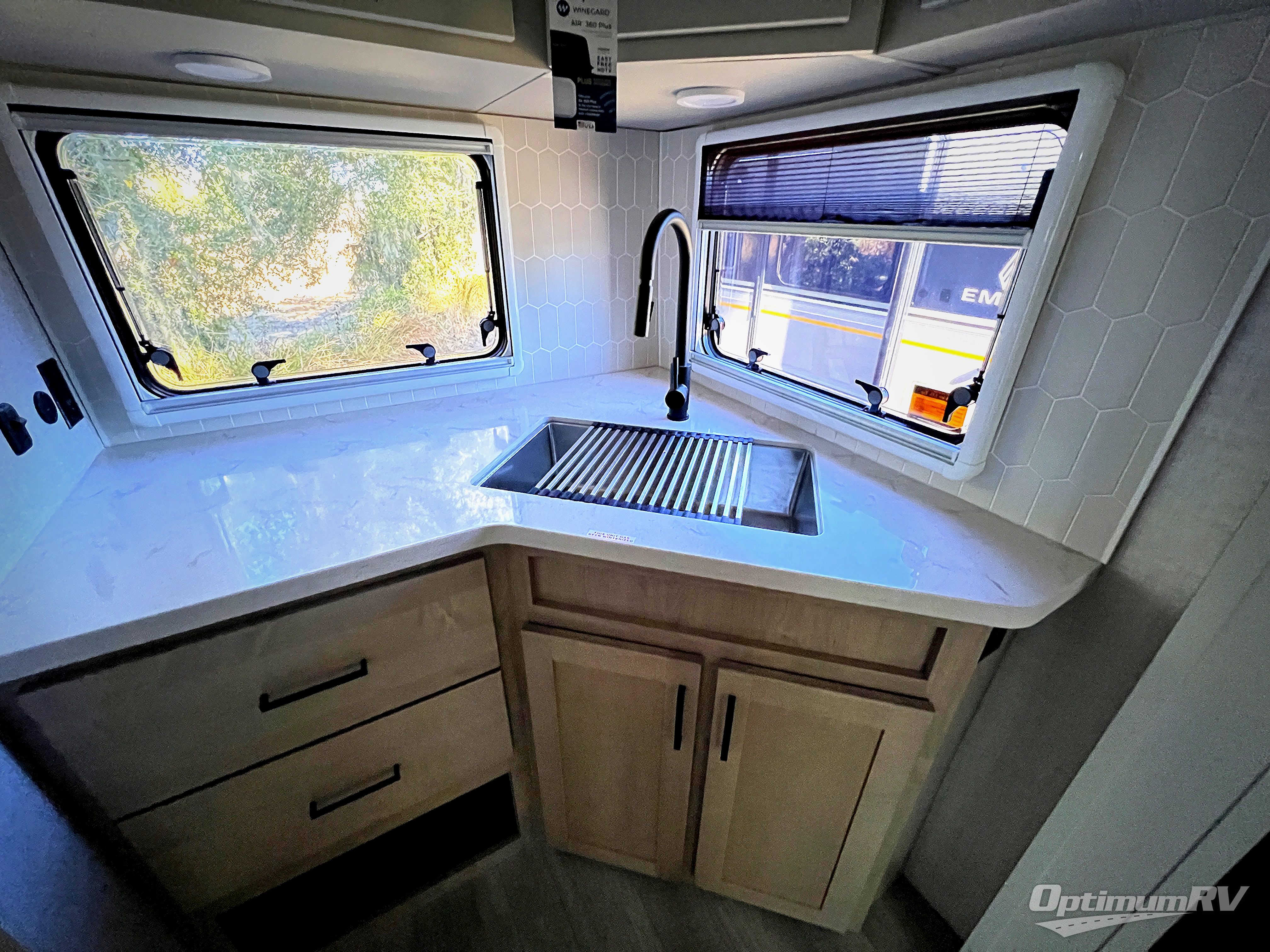 With any Touring Edition travel trailer by Ember RV, you will enjoy hassle-free towing thanks to the CURT Touring coil suspension system and Goodyear Endurance tires. There are laminated Azdel Onboard composite walls, a fully walkable roof with one-piece Tufflex PVC roofing, and a gel-coated fiberglass exterior for added durability. You will also find dual-pane acrylic caravan windows, upgraded plumbing, a mandatory Off-Grid Solar Package, and a mandatory Ground Control TT3 auto-leveling and stabilization system for easy set up. Head inside to enjoy hardwood maple cabinet doors, solid surface countertops in the kitchen and bath, dimmable LED lighting, and Congoleum DiamondFlor "carpetless" interior, perfect to withstand your adventurous lifestyle!