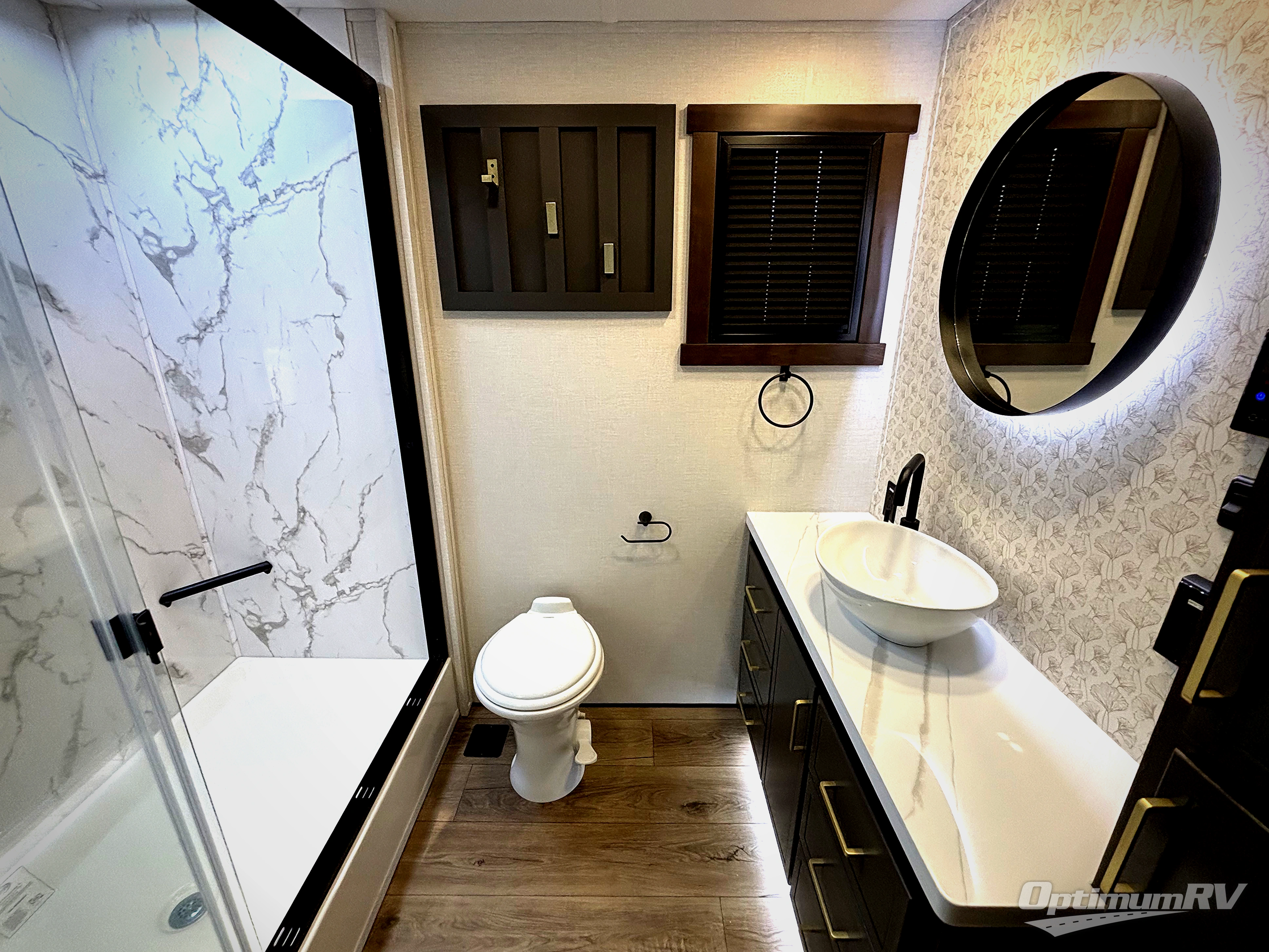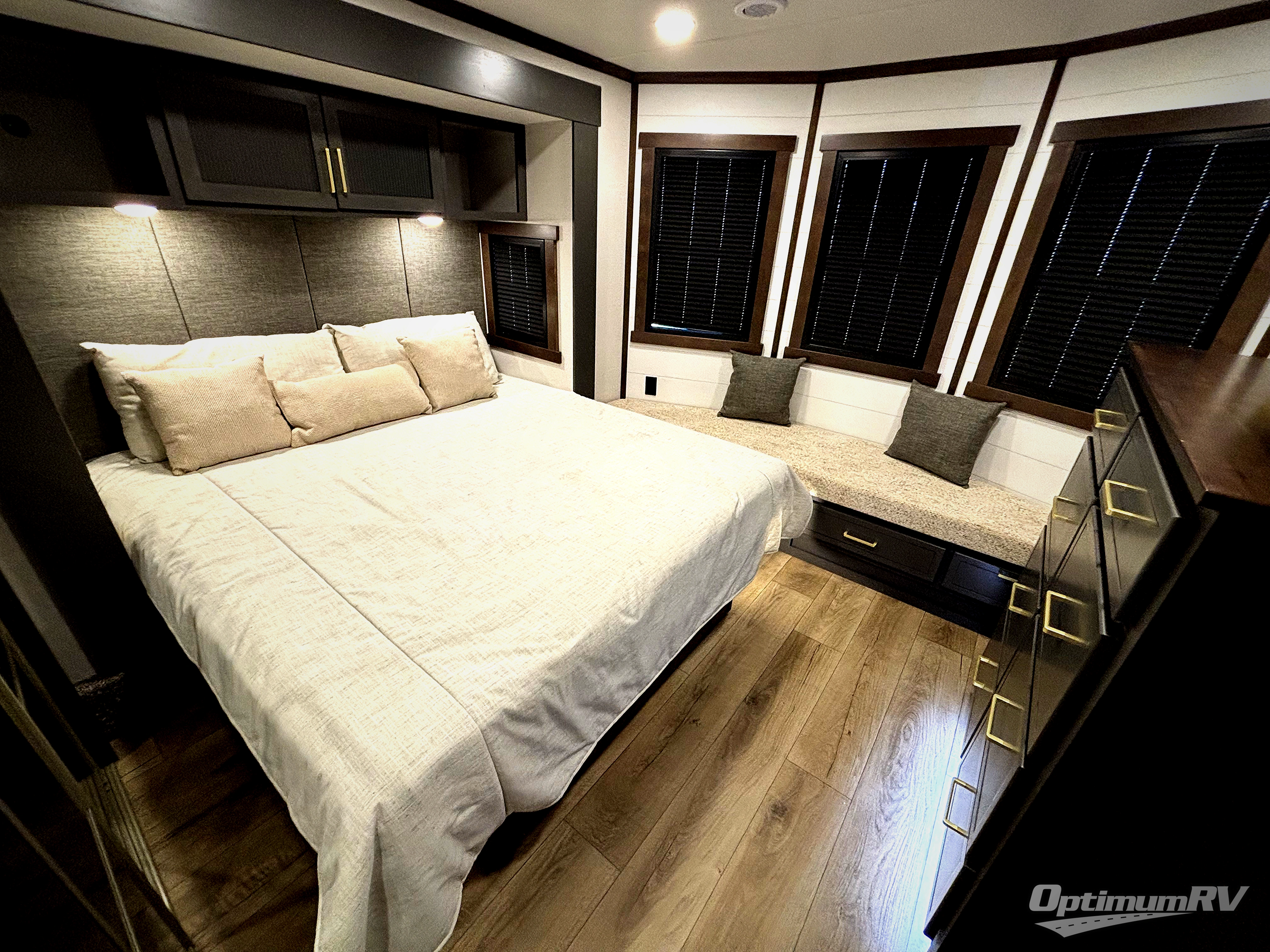 Hop on new adventures with the Forest River Cedar Creek Cottage Fifth Wheels! Each destination fifth wheel features a 101" wide body frame that provides a sturdy foundation for your adventures, while the AlphaPly TPO roof membrane offers superior durability and weather resistance. Plus, the 3M Bonded Sidewalls add an extra layer of protection and strength, and the hydraulic front jacks make setting up camp a breeze. In the luxurious interiors, the vinyl floor covering is easy to clean, and the Vixeinite flush floor slides in the kitchen and living area provide a seamless transition between the floor and the slide-outs. In addition, the 52" ceiling fan in the living room circulates air and adds to the spacious feel, and the kitchen island is a standout feature, boasting a solid surface counter, a flush-mount sink, and a stainless-steel design. You'll feel like you're cooking at home! Finally, the USB ports in the bathroom ensure you can keep your devices charged and within reach, even in the most convenient places.