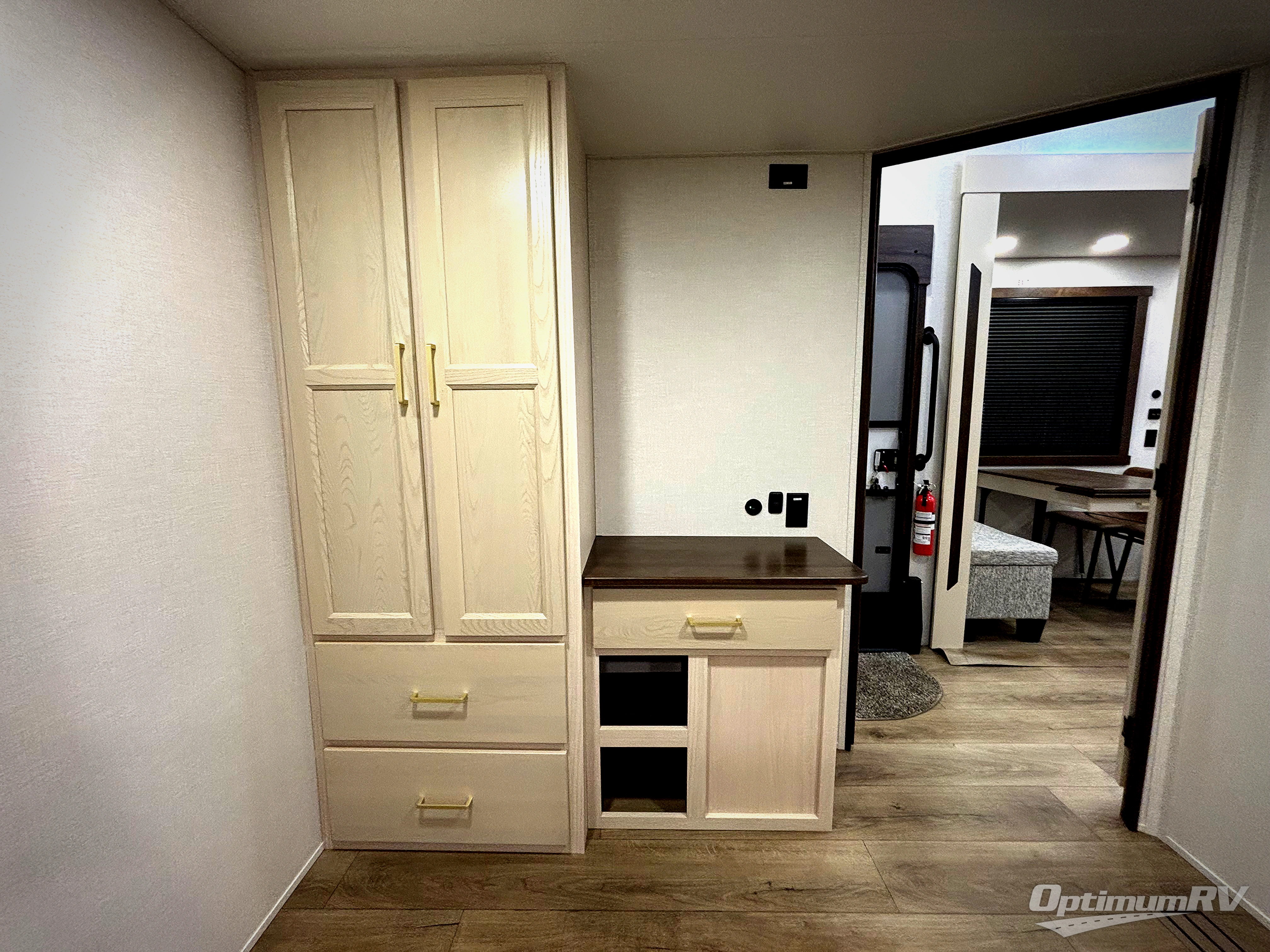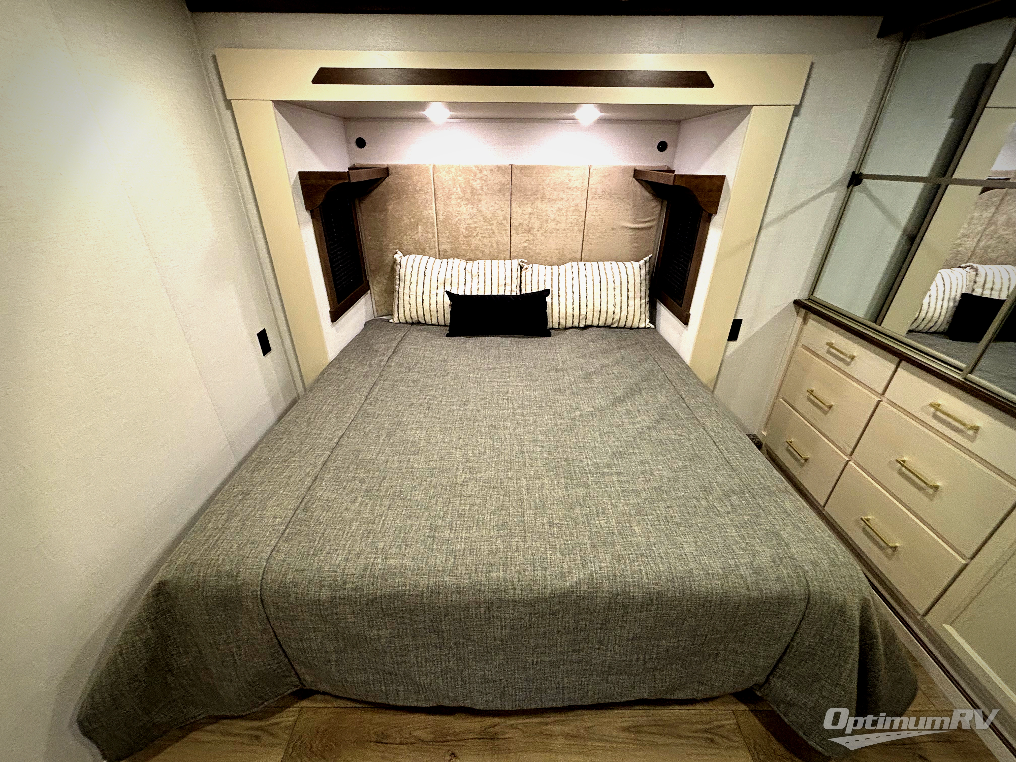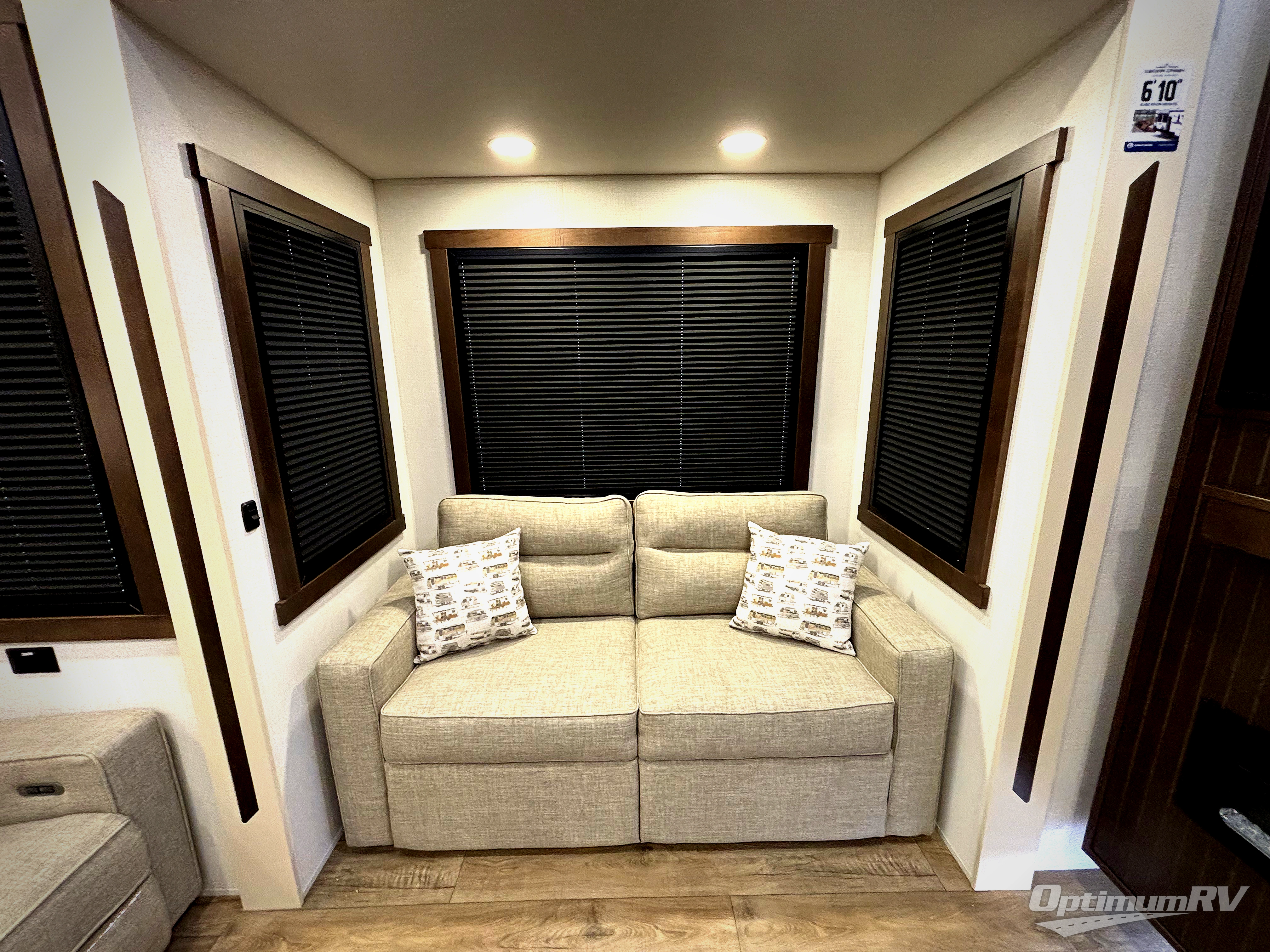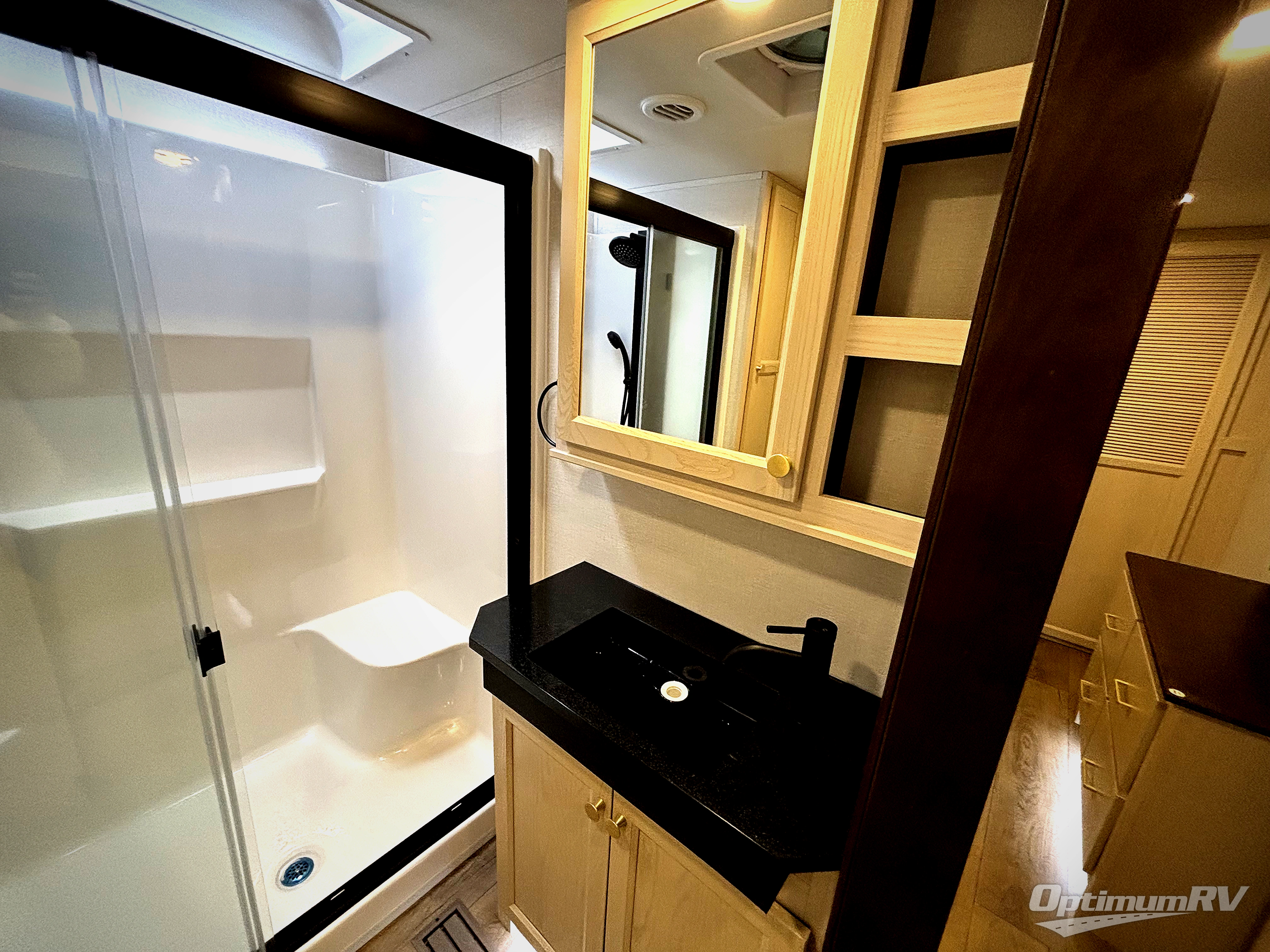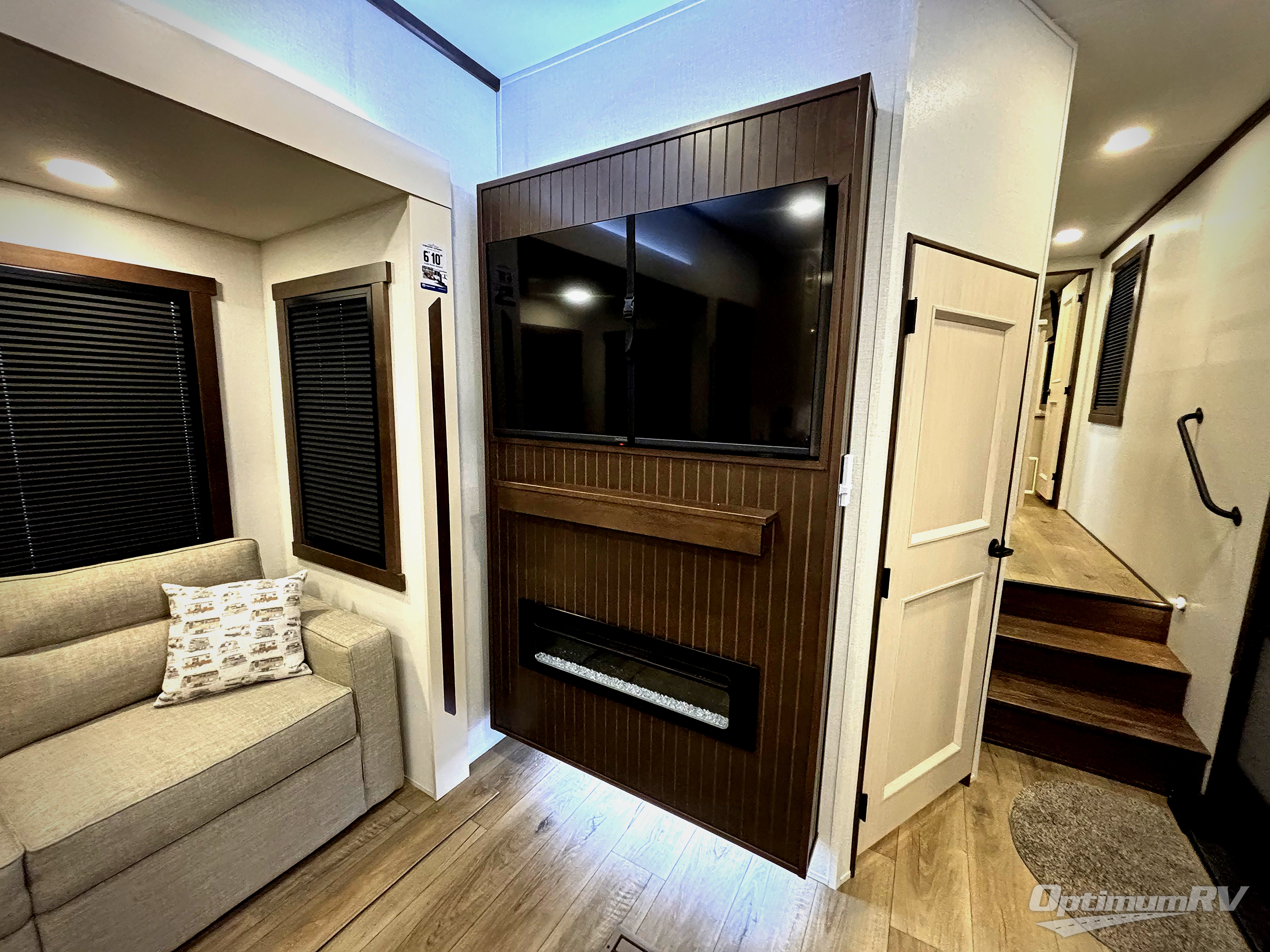 With any Cedar Creek Experience fifth wheel by Forest River, you will bet met with luxury features both inside and out! The True Gelcoat exterior is the best of the best in exteriors and the 3M bonded sidewalls will hold up over years of use. There is also a new 101'' wide-body frame, a Road Warrior suspension, plus a TST tire pressure monitoring system to make towing that much easier. You will find a hidden front storage compartment, along with a 4' x 6' ABS, ribbed, removable underbelly panels, and 6-point hydraulic leveling system, plus many more exterior conveniences. The interior will have you feeling like you haven't left home with vinyl floor coverings, power theater seating with USB ports, a cozy fireplace, vinyl floor covering and the list of comforts goes on! Each model is also pre-wired for satellite to the roof, and you're sure to never go bored with a Smart TV in the bedroom!