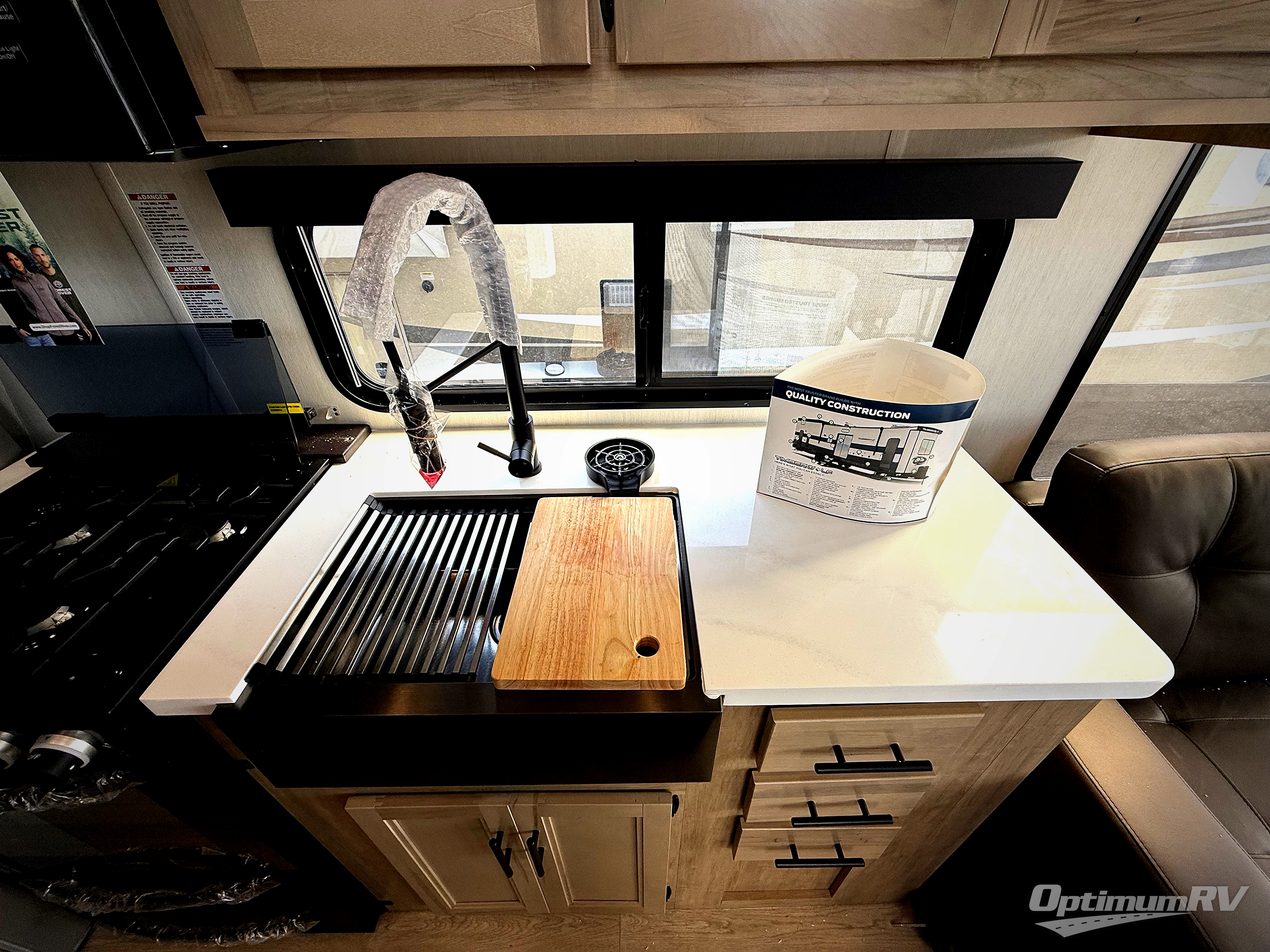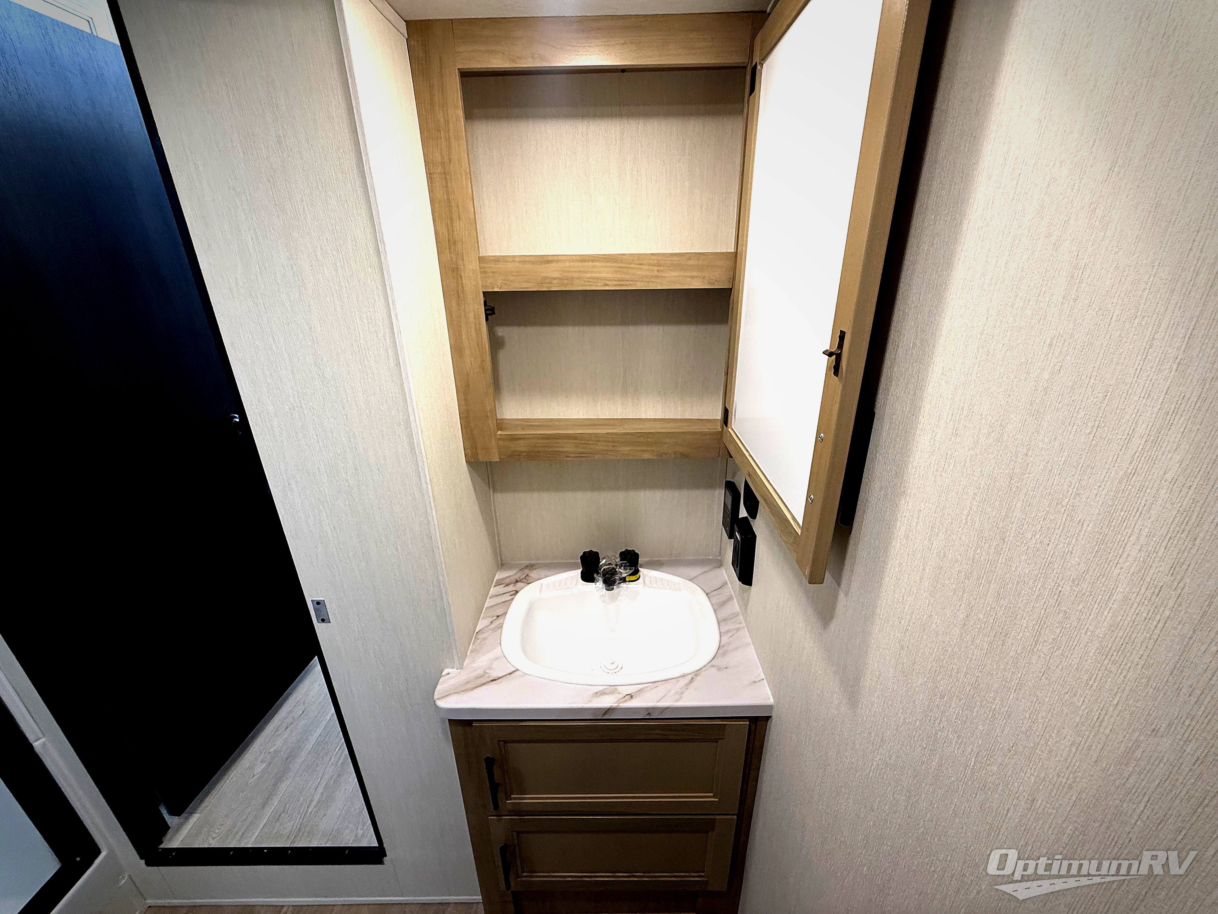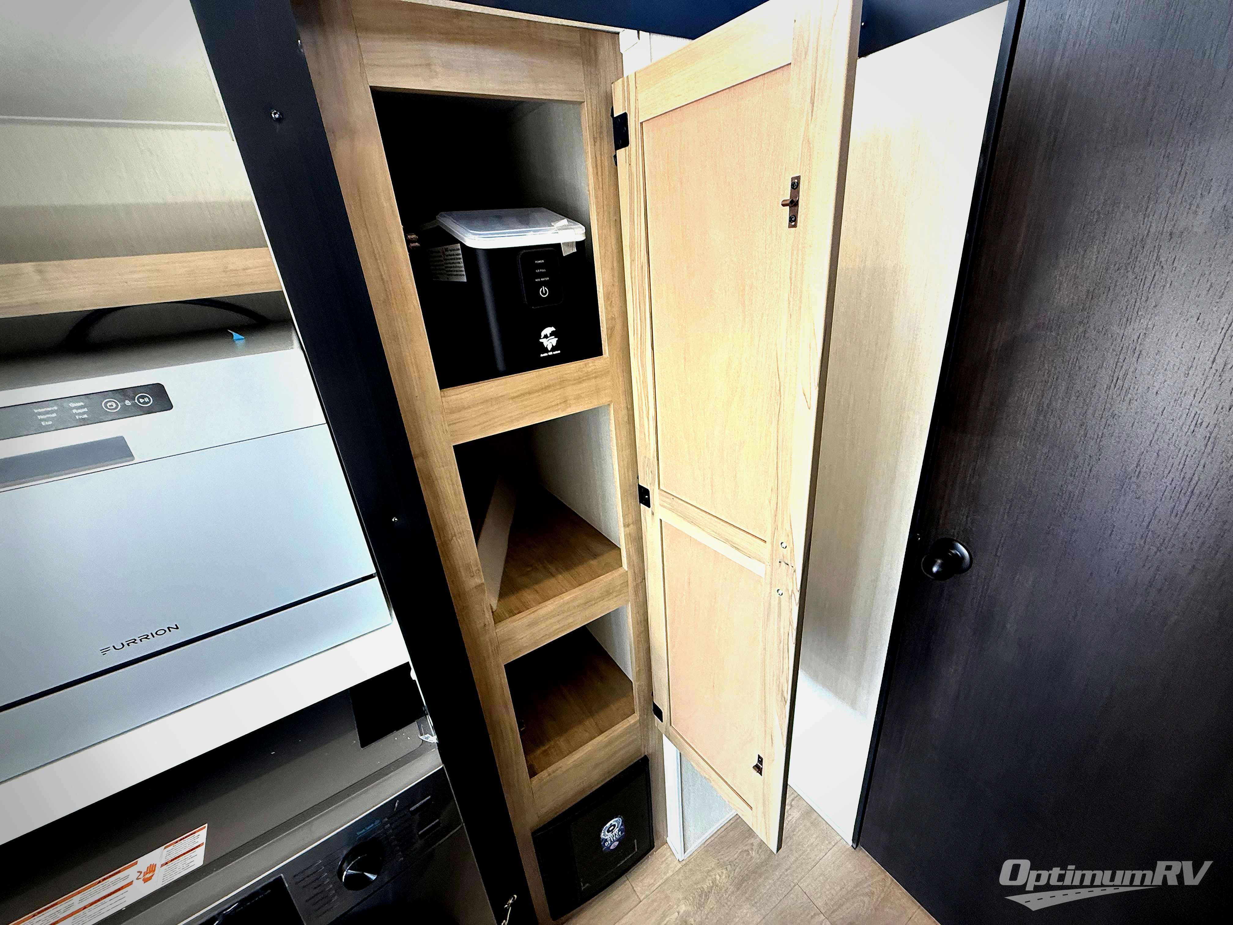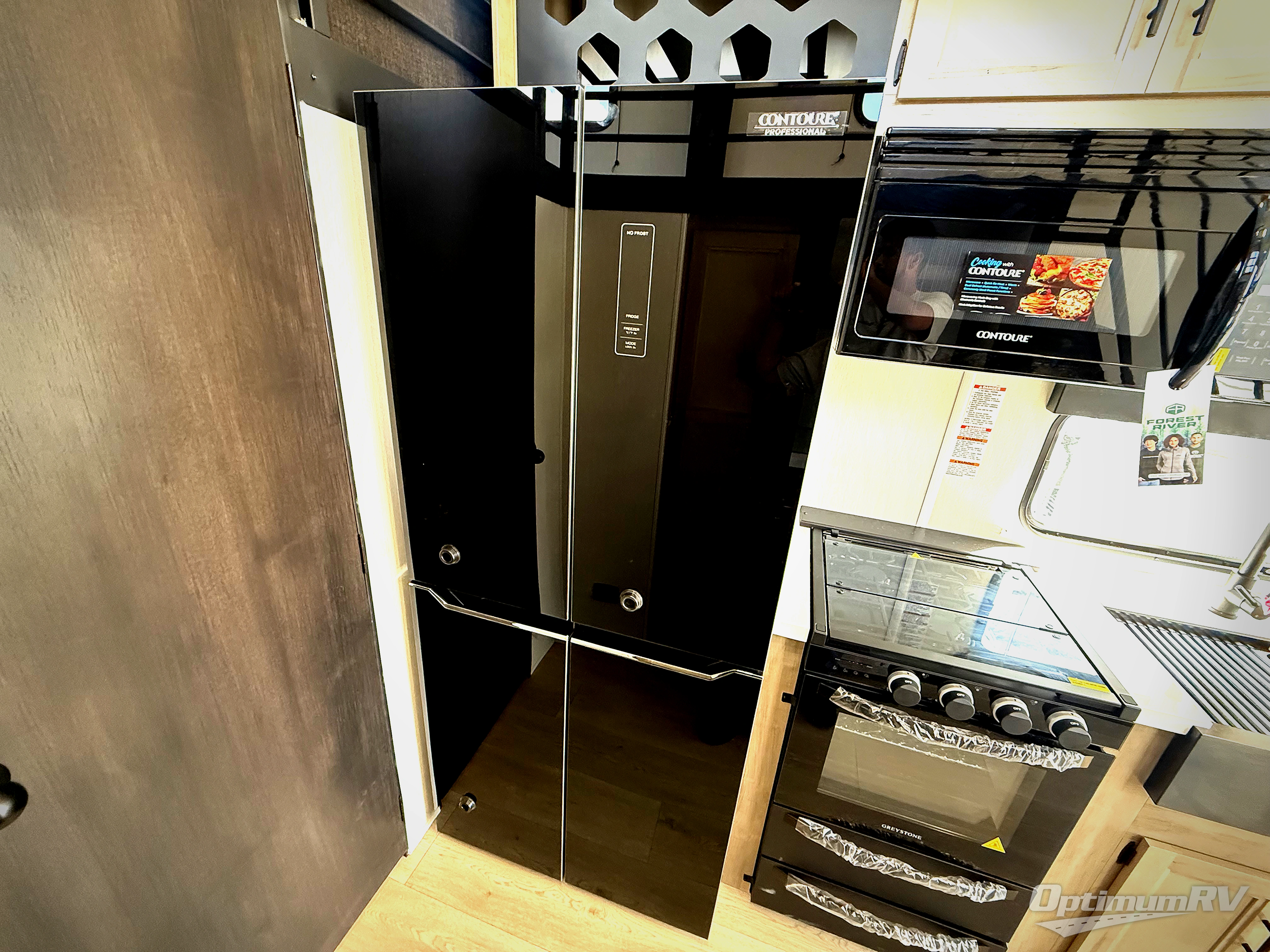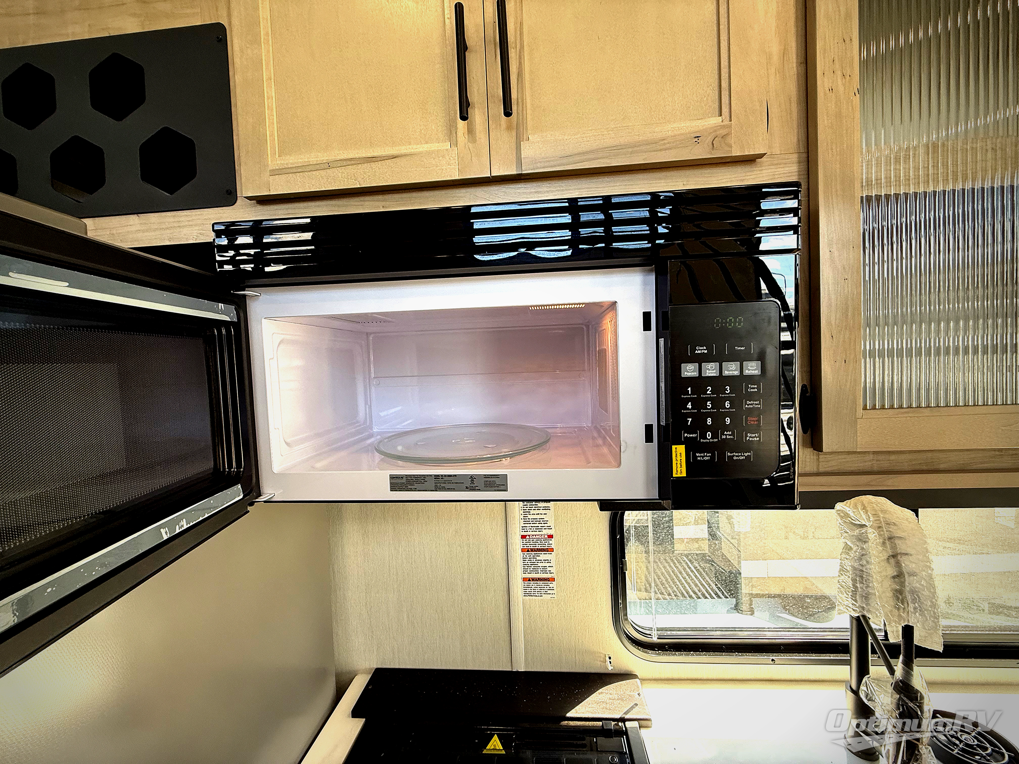 This model is similar to 16ML but larger! A bigger bathroom, RV king bed in the lower master, and a queen bed plus a twin bunk mat in the front loft. And the second loft can be utilized as extra sleeping space or storage space! There is an 18 cu. ft. refrigerator so you can stock up for a week long vacation, a hide-a-bed sofa that can transform into added sleeping for guests, and a high top table with two stools to dine at. The bathroom below is split with a shower on one side, and a private toilet area and sink opposite. And the view is amazing from just about anywhere inside.