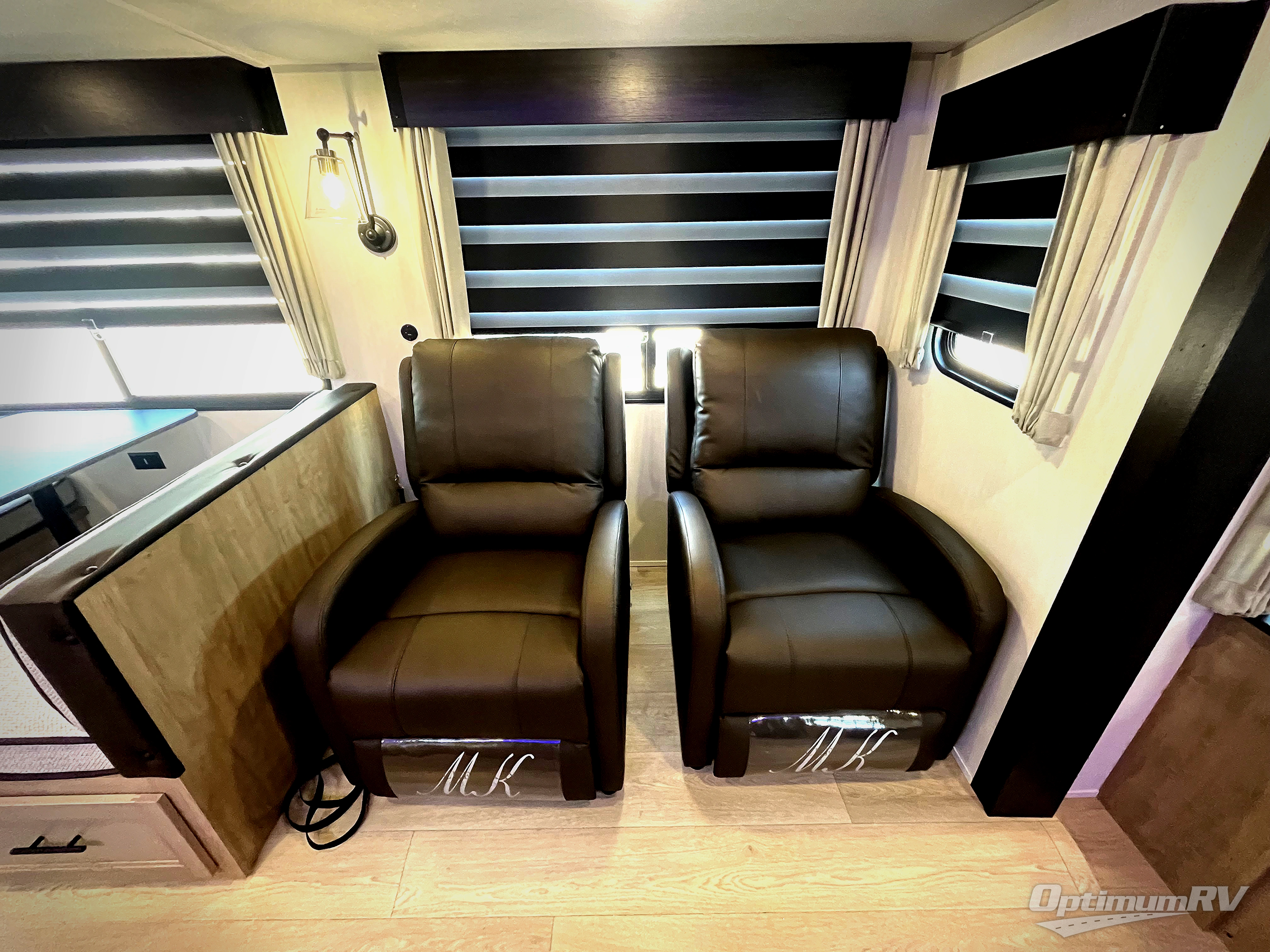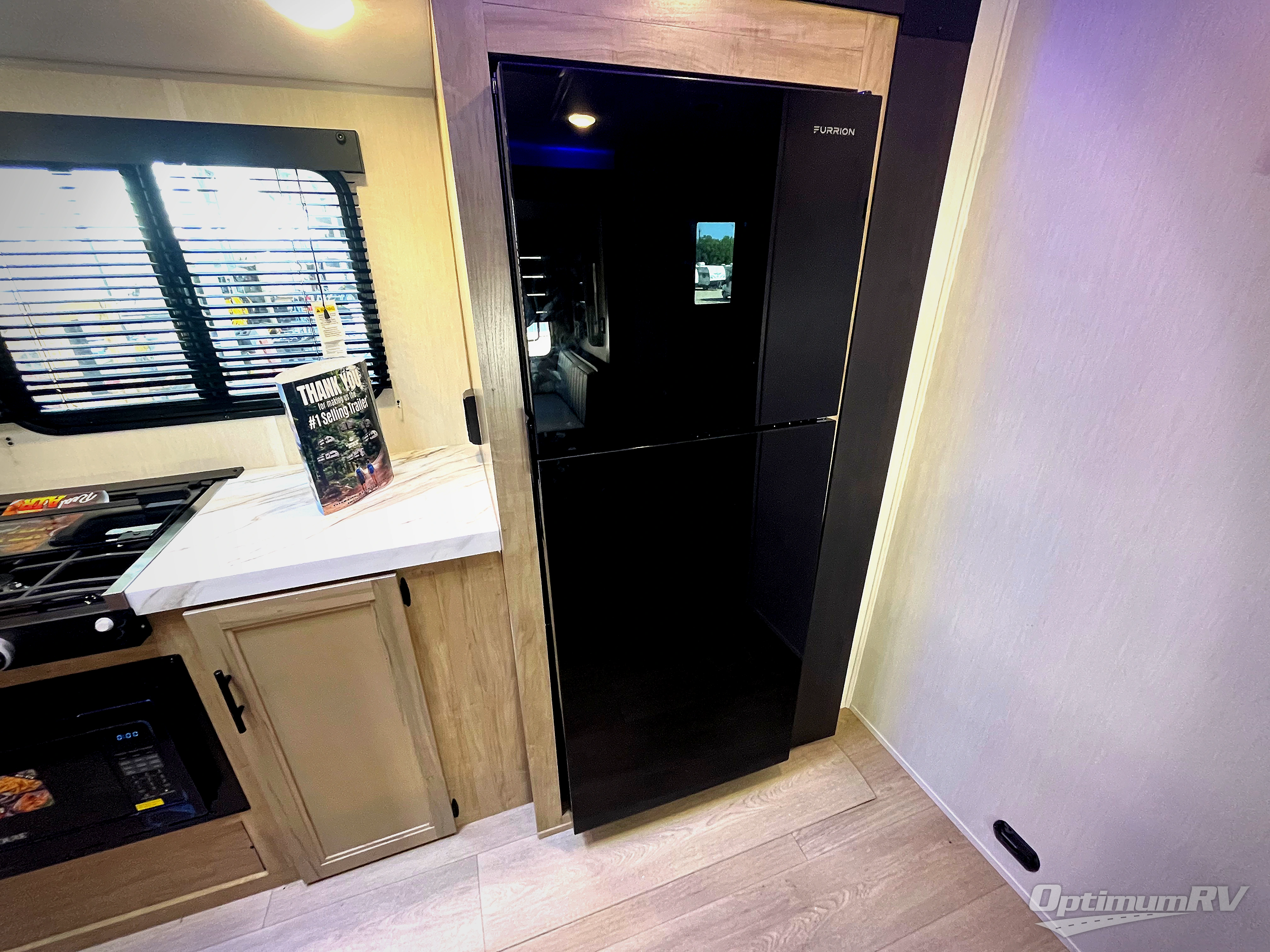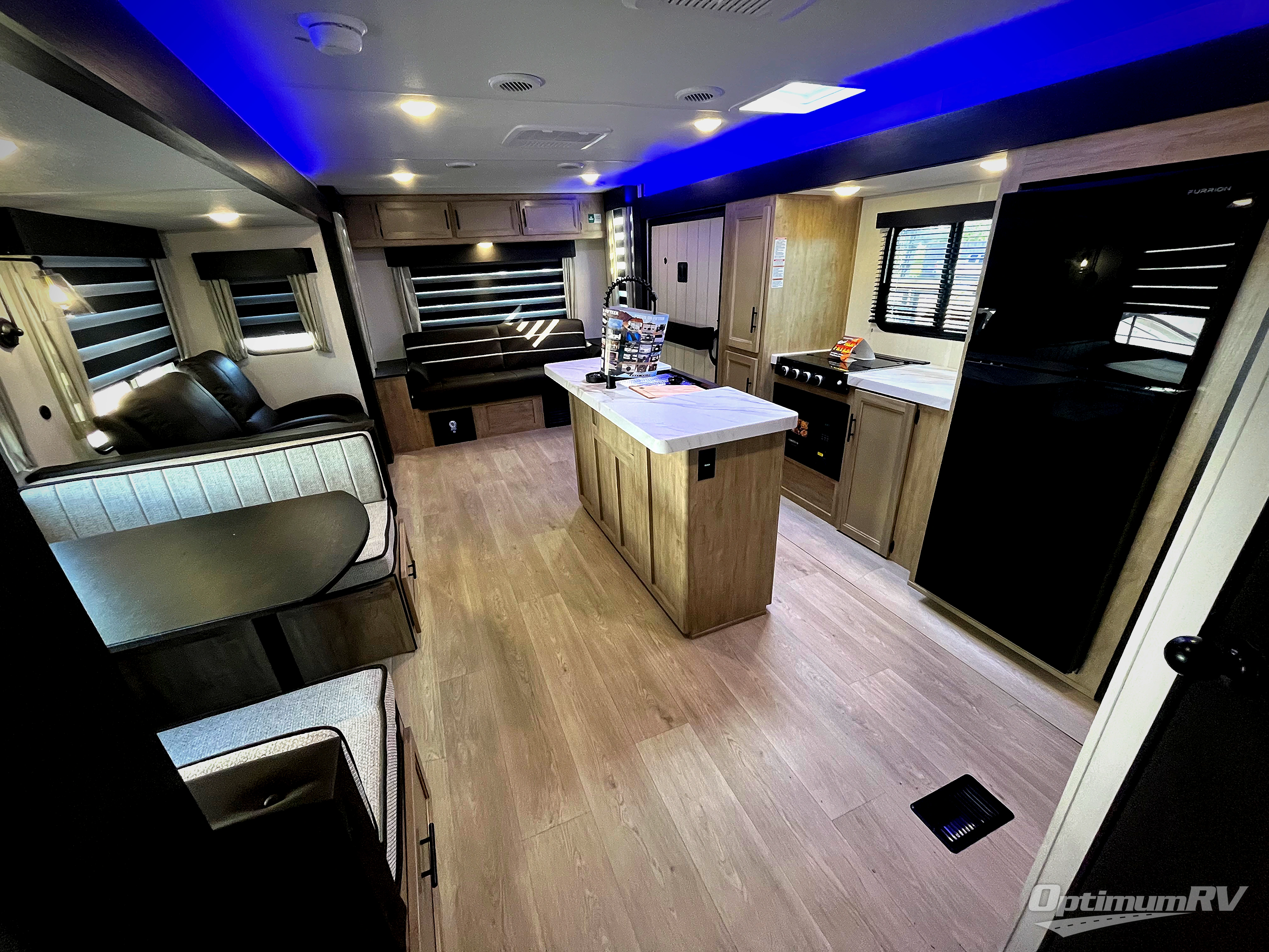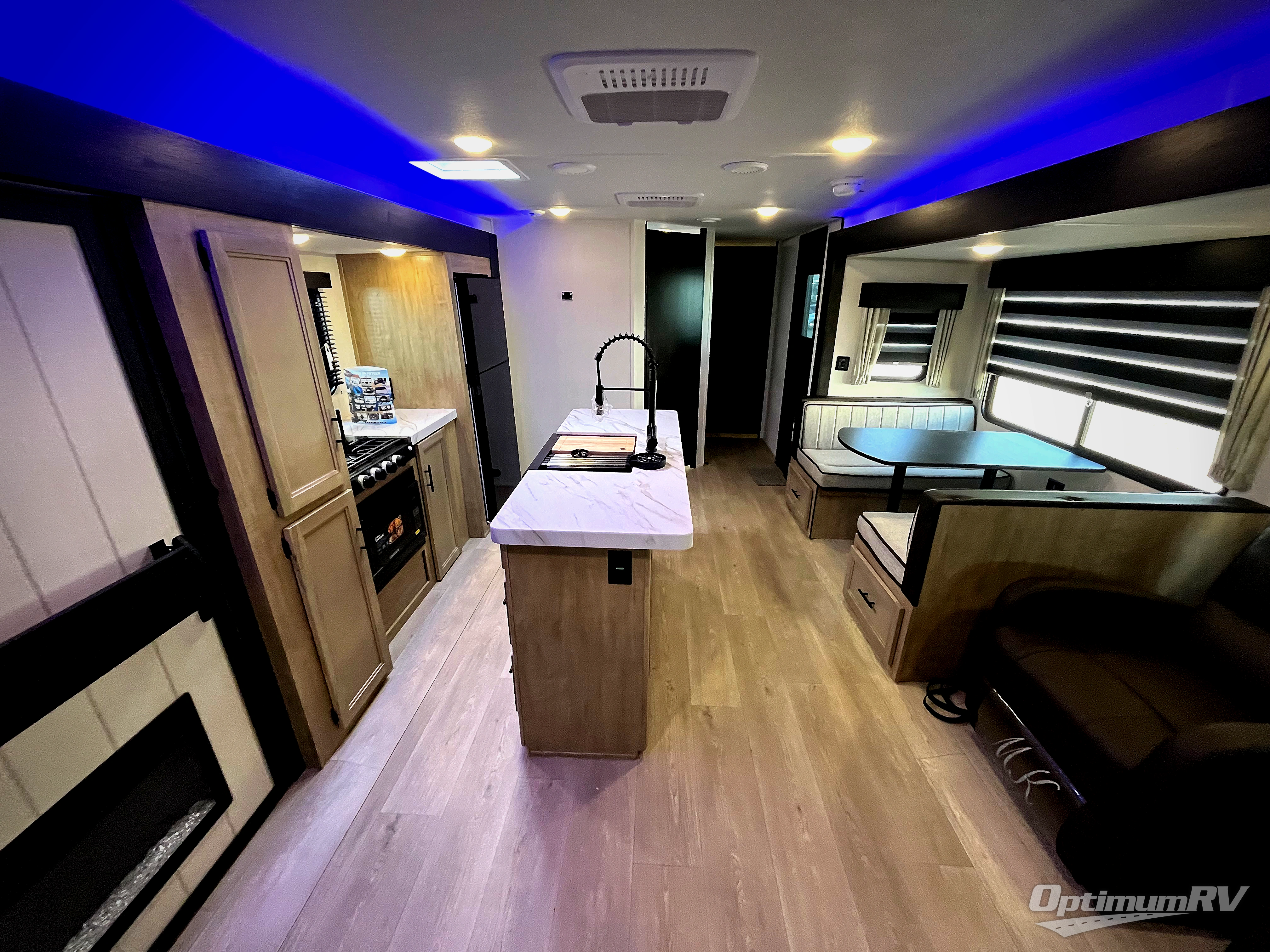 You'll love every minute spent in this double slide out travel trailer. You can relax on the rear sofa or dual lounge chairs, play a game at the booth dinette, and enjoy the glow of the fireplace. The chef of your group will appreciate the kitchen island, air fryer, plus refrigerator and pantry for food storage. A dual entry bath will create a front master bedroom, complete with an RV king bed and a bedside wardrobe to keep your space tidy.