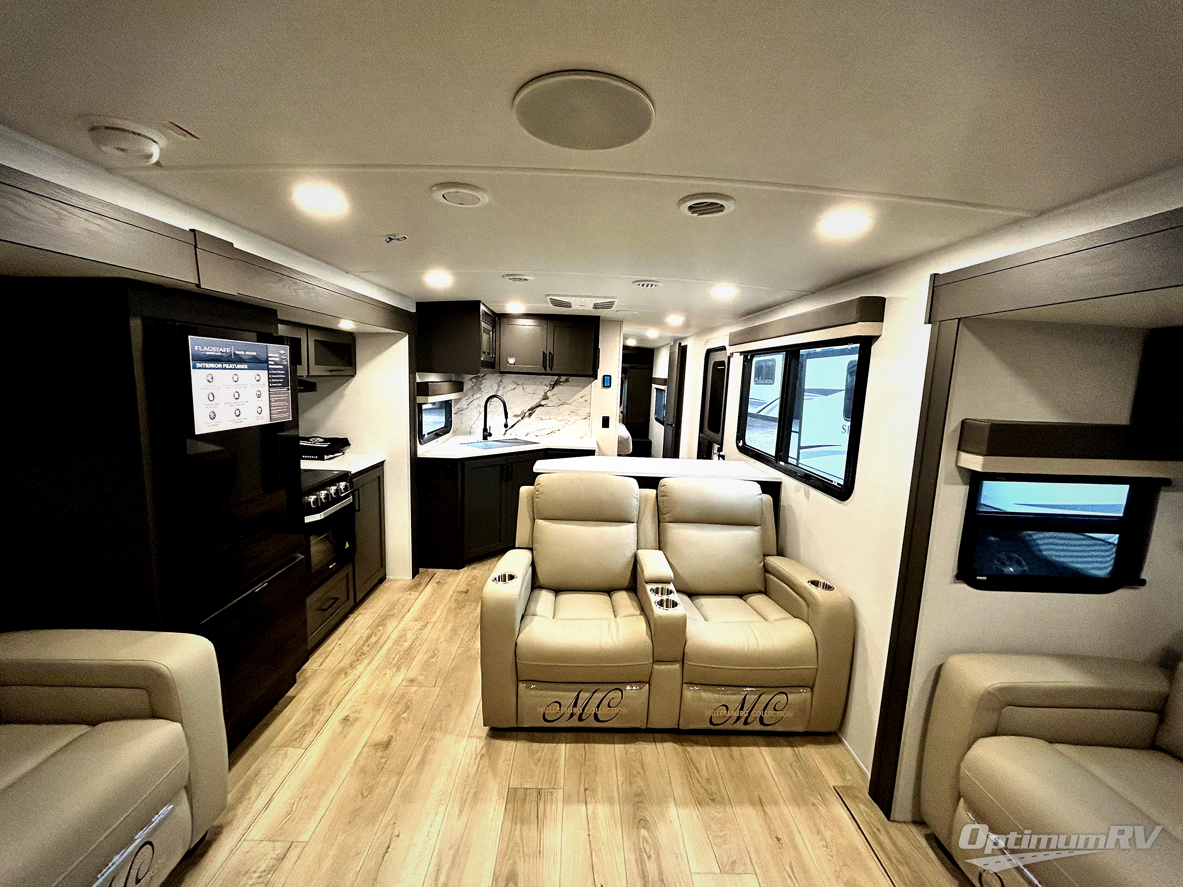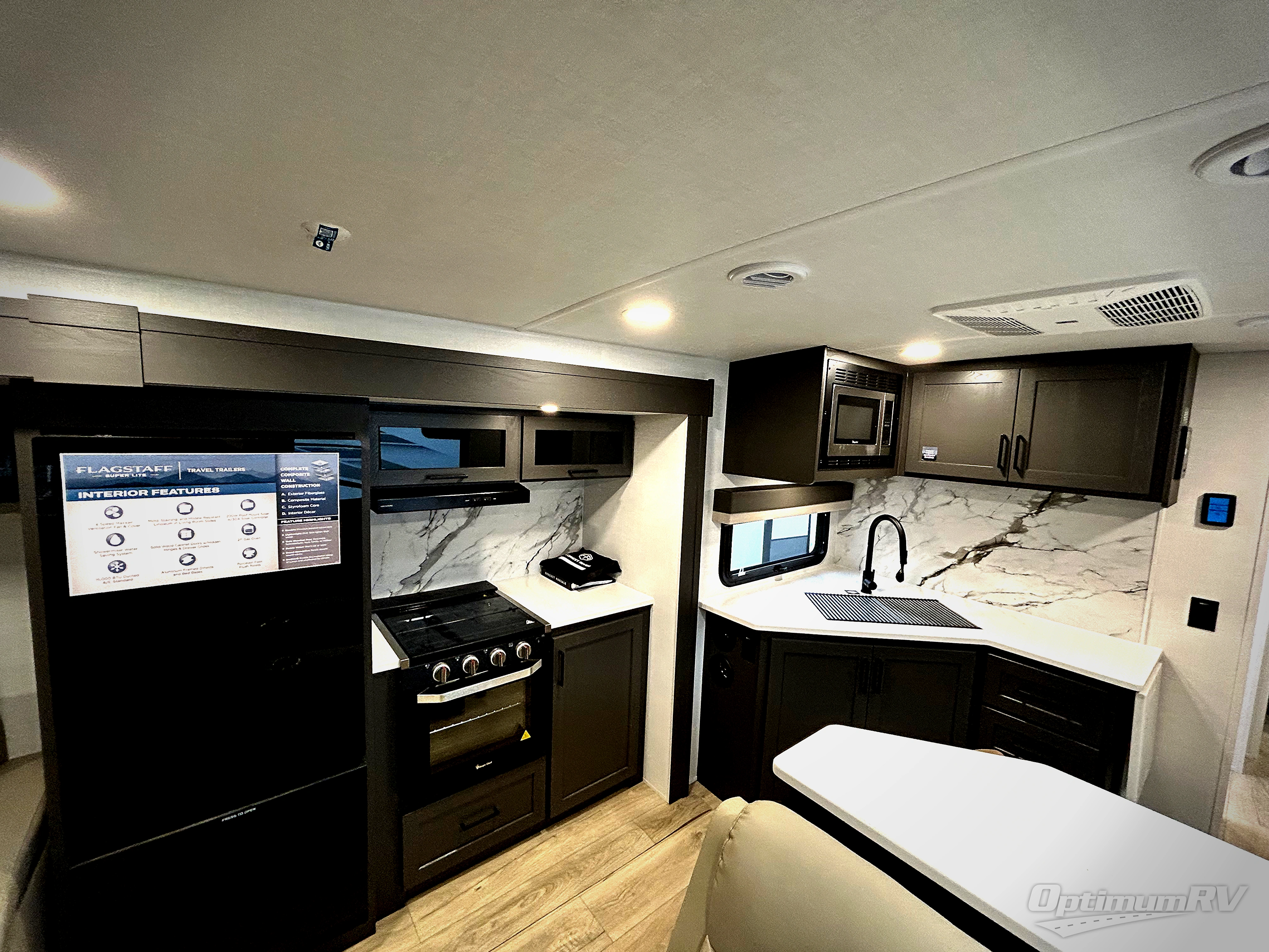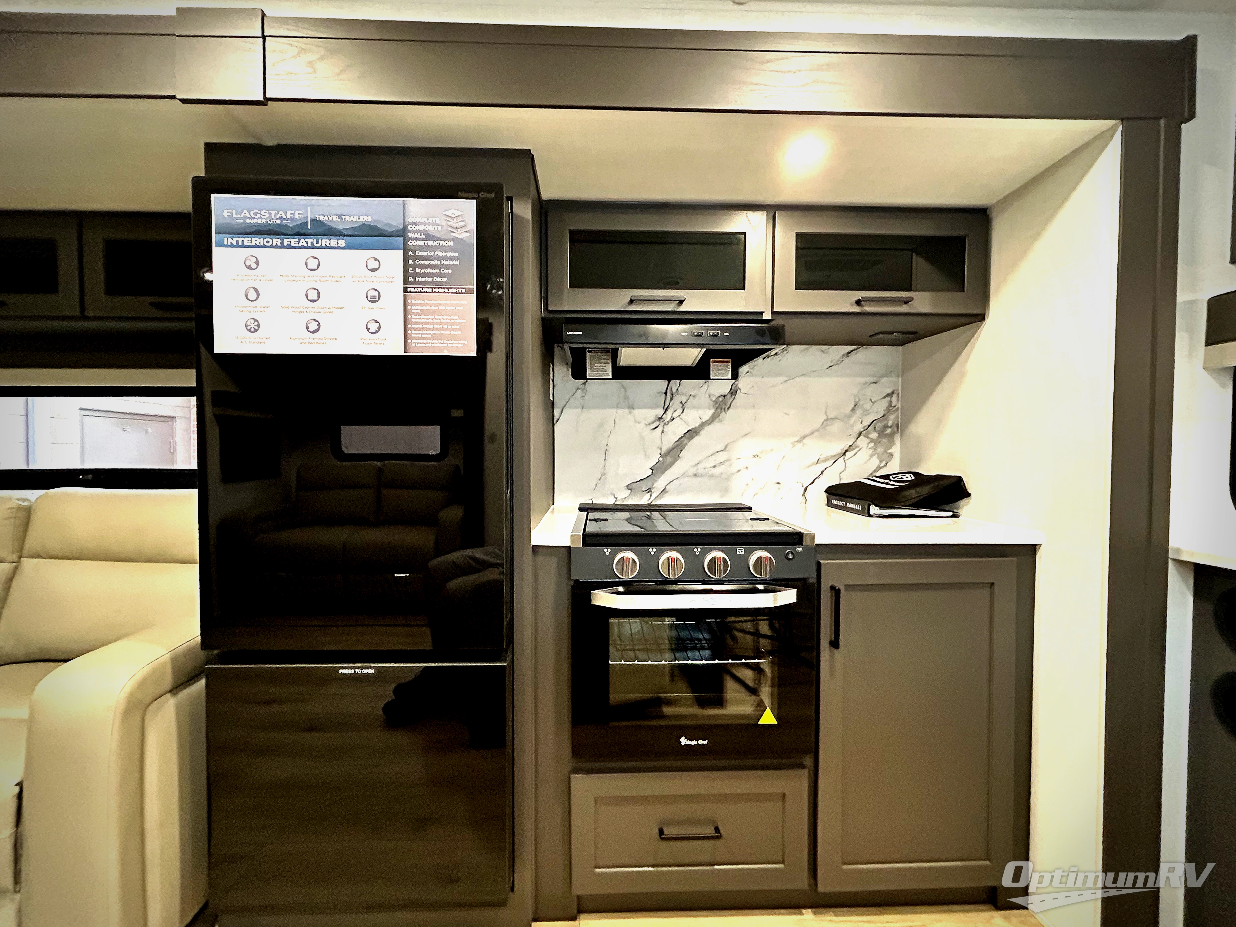 With any Flagstaff Super Lite travel trailer by Forest River, you can enjoy quality features with lightweight towing! The Climate Protection Package includes radiant foil in the front cap, underbelly, and slides, plus there are 12V thermostat-controlled heated tanks for added protection. The complete composite wall construction and 6-sided full-aluminum frame is ultra durable, and the RoadTech tire pressure monitoring adds safety. Each model also includes the Coast to Coast Package that comes with slam latch baggage doors, a high gloss fiberglass cap, Goodyear Endurance tires, plus a 200W solar panel with an optional additional 200W panel for more off grid capabilities. Inside, you'll love the roller shades, solid surface kitchen countertops, a shower miser system, and many more comforts!