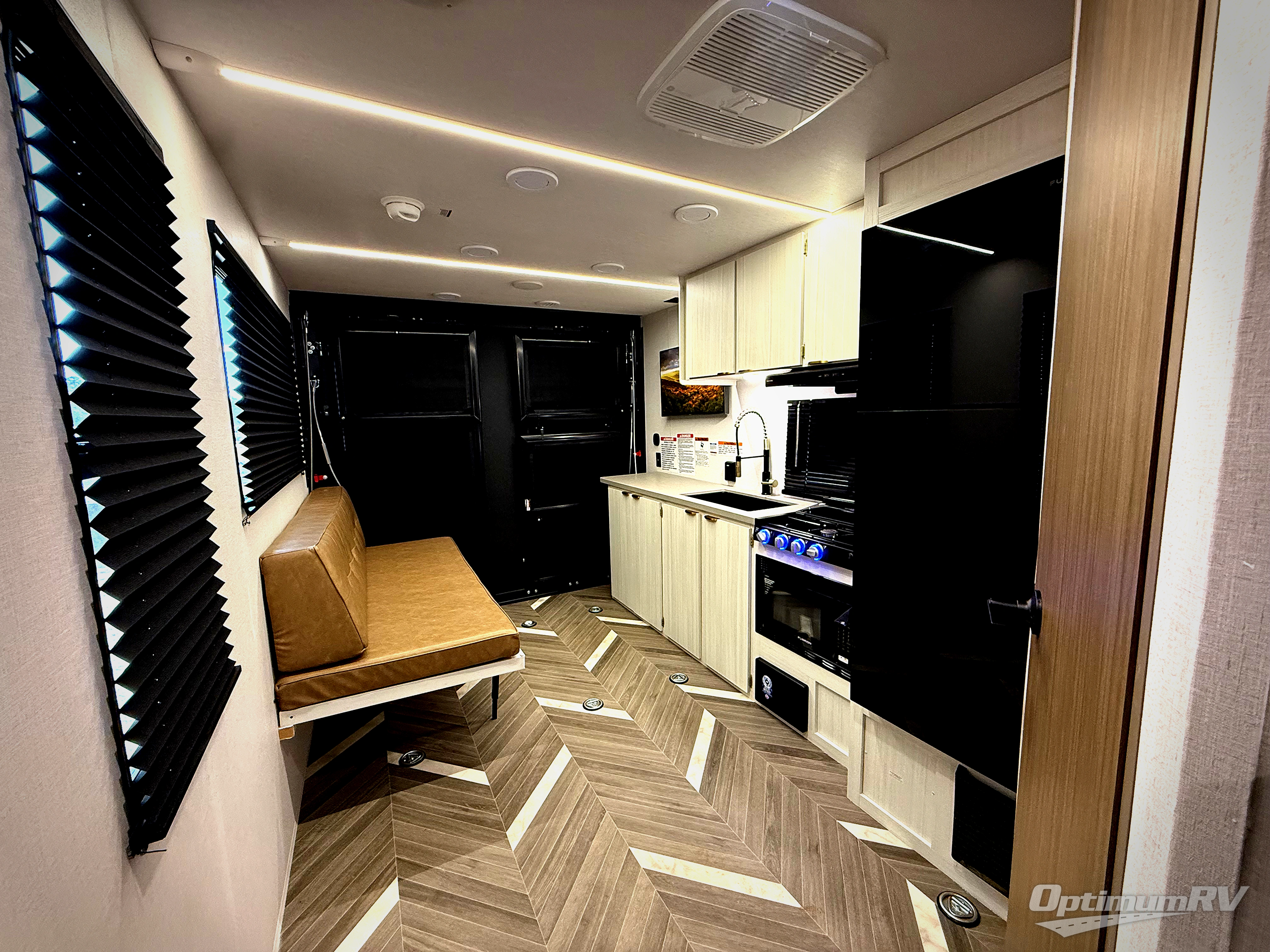 Load up your off-road toys with the ramp door into the 10' 5" garage area in this Ozark toy hauler! Once you reach your destination, unhook your toys from the tie-downs and rest on the comfortable bunk beds. The kitchen has everything you need to prepare your best home cooked meals including the deep stainless steel sink for an easy clean up and the 12V refrigerator. The full bathroom has a large shower pan so you can easily step in without worrying about a tub. Enjoy a good night's rest on the front queen bed, and there is a wardrobe to keep your clothes looking nice.
