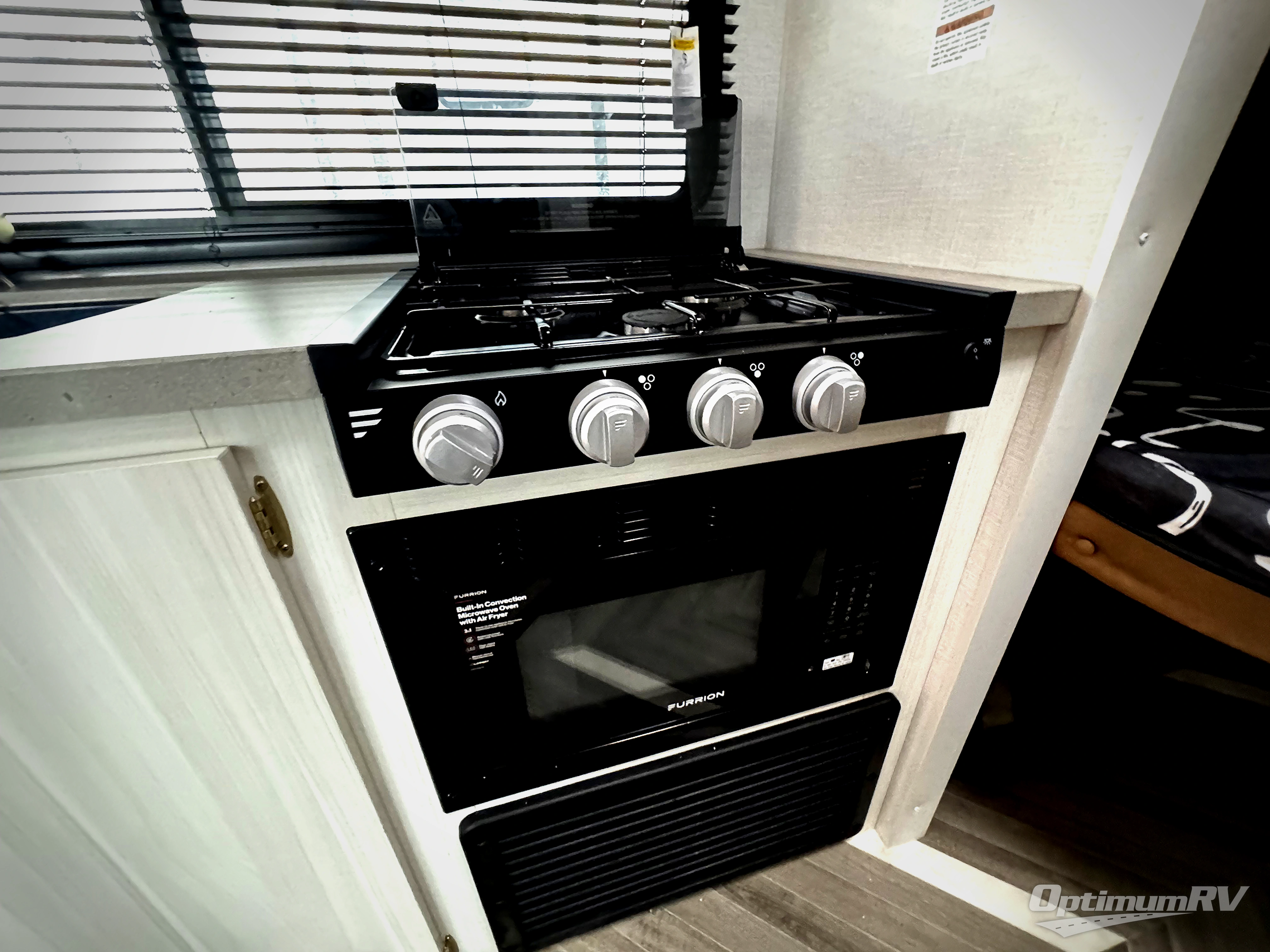 This trailer resembles the layout of 2300RB, but you'll enjoy added double-size bunks in the rear corner, with a full bath in the other rear corner! You'll have the front private bedroom all to yourselves with a king bed and dual wardrobes, and other guests can sleep on the L-shaped sofa when it's not being used to relax on. The kitchen on this Ozark includes a 3-in-1 cooktop with a convection microwave, and a window by the sink so you can have open views as you clean up. There is also a pantry and a 12V refrigerator to keep food stocked!