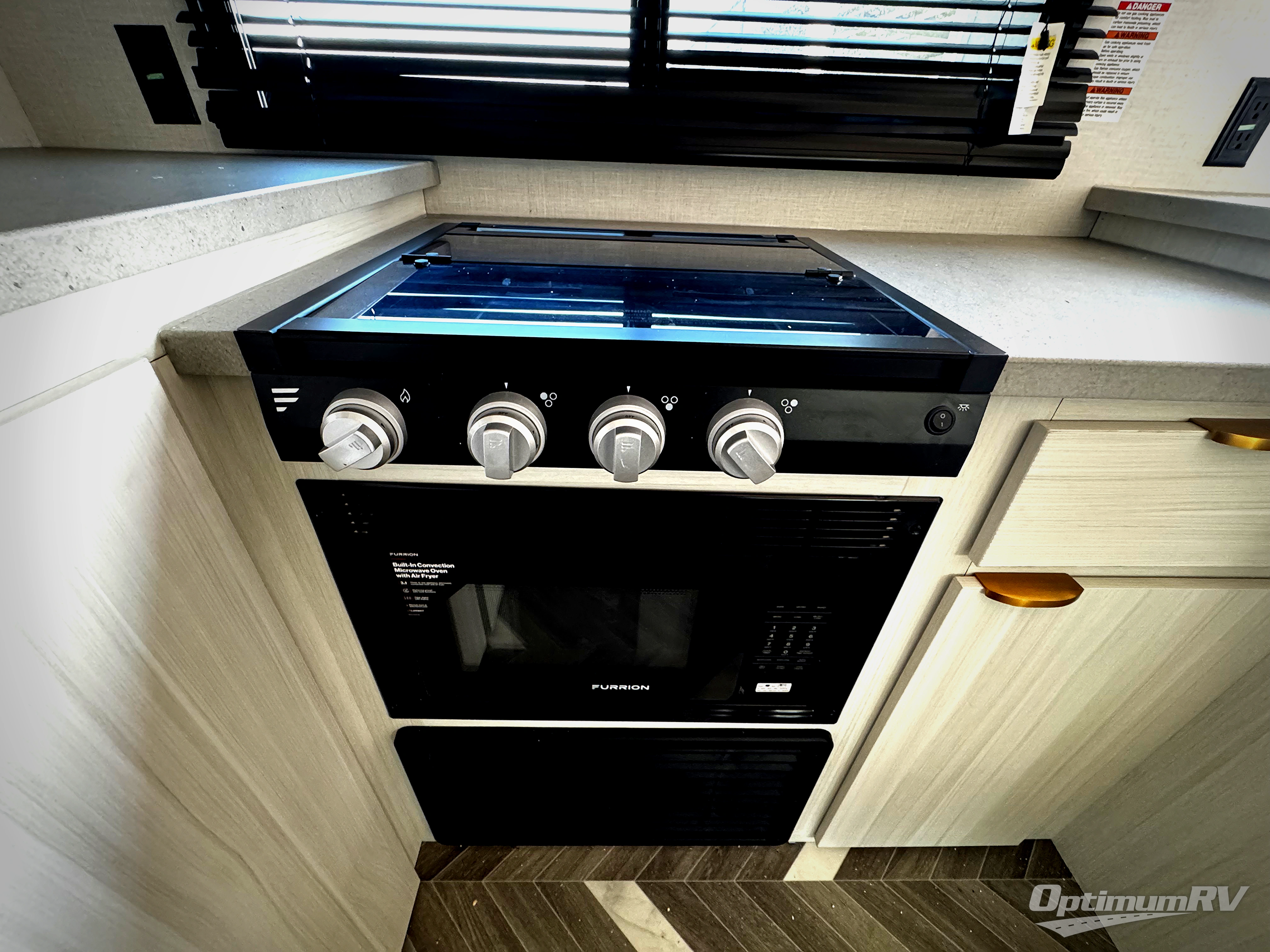 Whether you're camping in your own back yard or across the country, you'll find comfort in this spacious travel trailer. The full rear bath is not only spacious, but it's tucked away in the back for privacy. Your crew can get comfortable on the theater seating or head outdoors to relax under the 18' power awning. There is also a bar top with stools and a fully-equipped kitchen to make meals each day, or you can head outdoors to utilize the outdoor Quick Connect and 2X size camp refrigerator! When you're ready to call it a night, head to the front private bedroom for a great night's rest on the king bed that includes wardrobes on either side for your clothes.