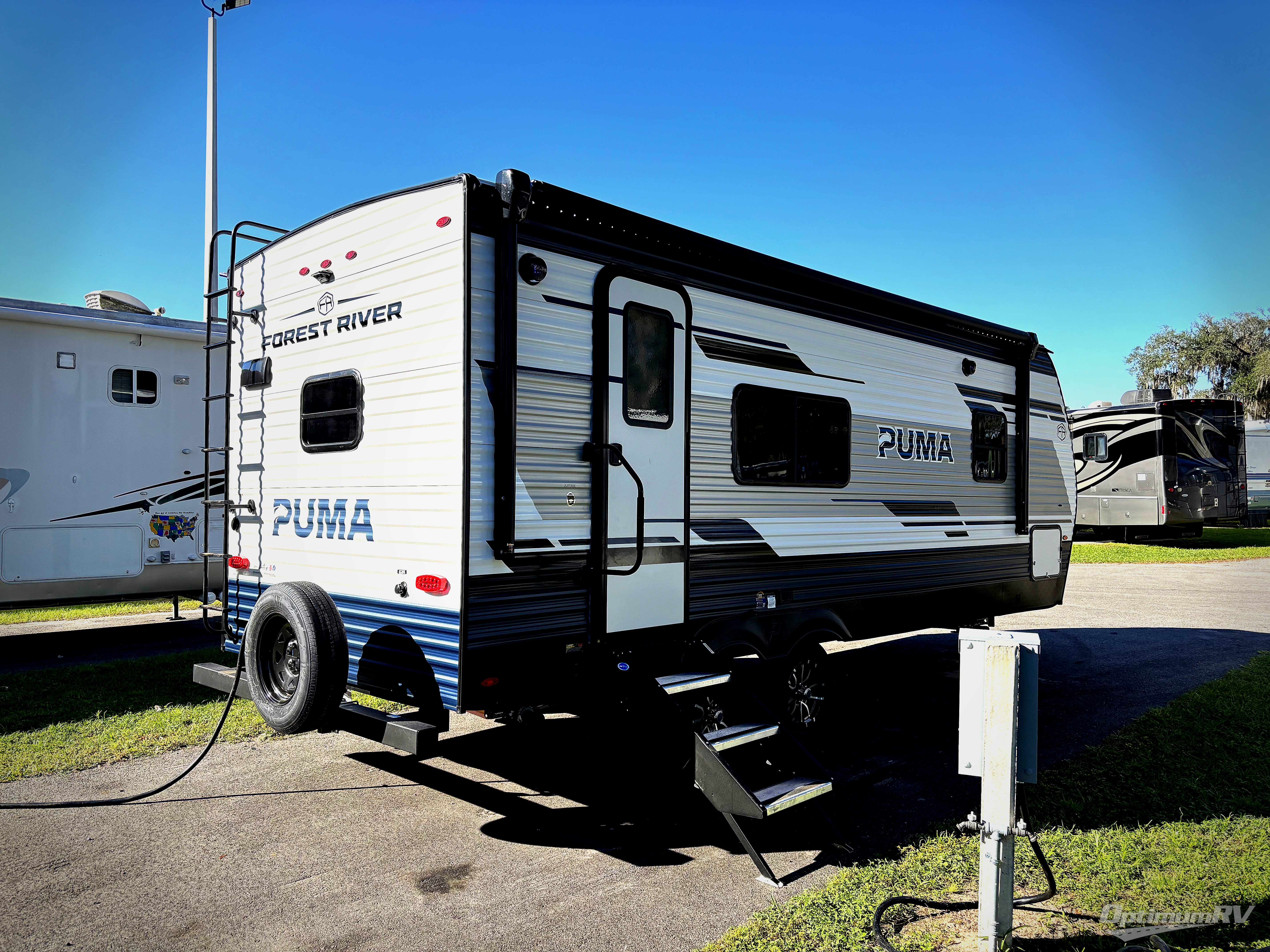 If you're looking for family-fun adventures then you need one of these Palomino Puma fifth wheels or travel trailers! They are built rugged, easy to tow, and jam packed with features. The Darco wrapped underbelly will protect your units vitals and the AlphaPly roofing membrane covers it. They also have new aluminum wheels and a powder coated steel I-beam frame. Inside, the Congoleum linoleum will be easy to keep clean, and the night roller shades will provide privacy when it's time to turn in. You'll also enjoy an electric awning with an LED light strip plus an AM/FM/Bluetooth stereo and two outside speakers to keep the party going!