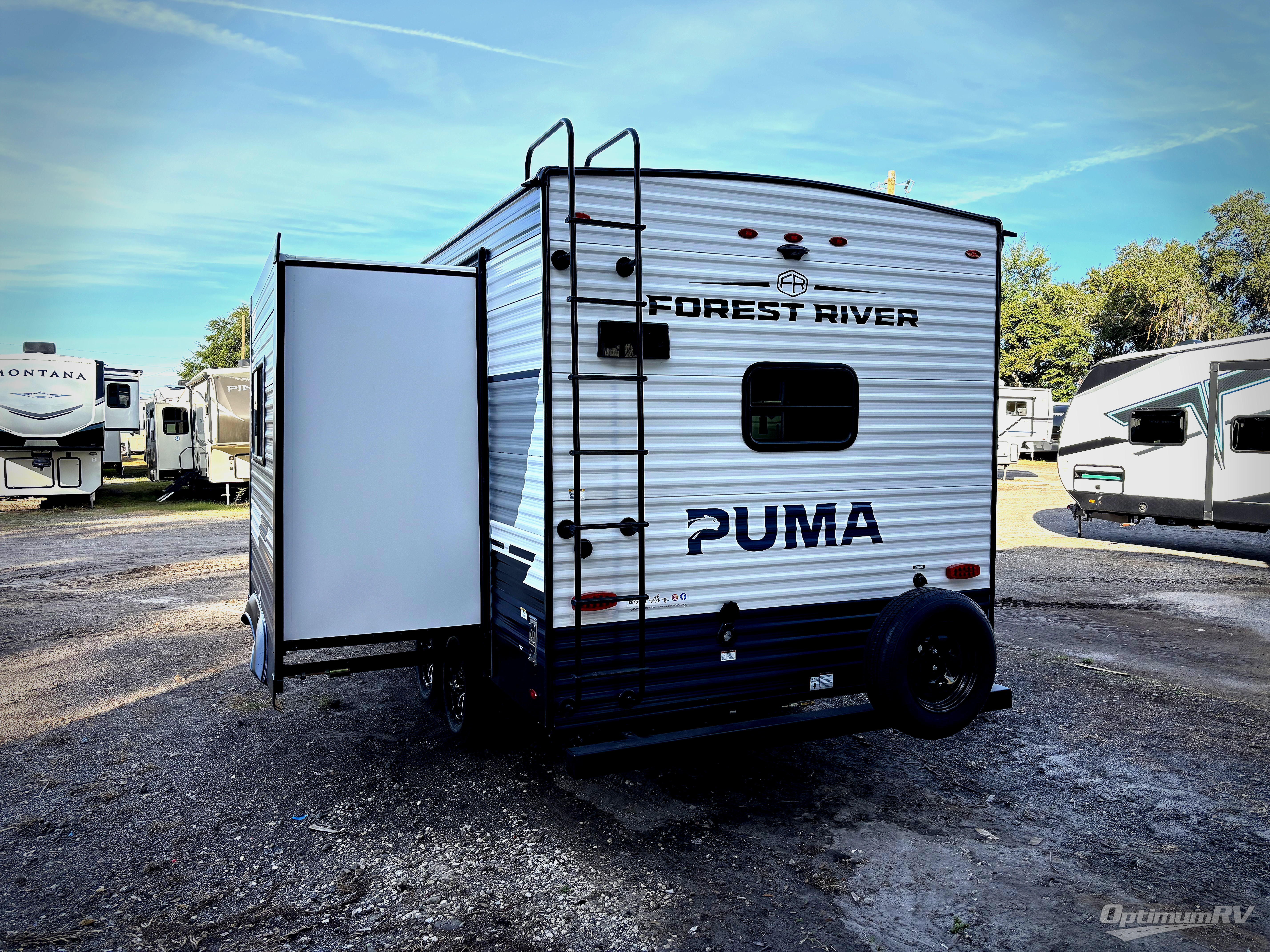 If you're looking for family-fun adventures then you need one of these Palomino Puma fifth wheels or travel trailers! They are built rugged, easy to tow, and jam packed with features. The Darco wrapped underbelly will protect your units vitals and the AlphaPly roofing membrane covers it. They also have new aluminum wheels and a powder coated steel I-beam frame. Inside, the Congoleum linoleum will be easy to keep clean, and the night roller shades will provide privacy when it's time to turn in. You'll also enjoy an electric awning with an LED light strip plus an AM/FM/Bluetooth stereo and two outside speakers to keep the party going!