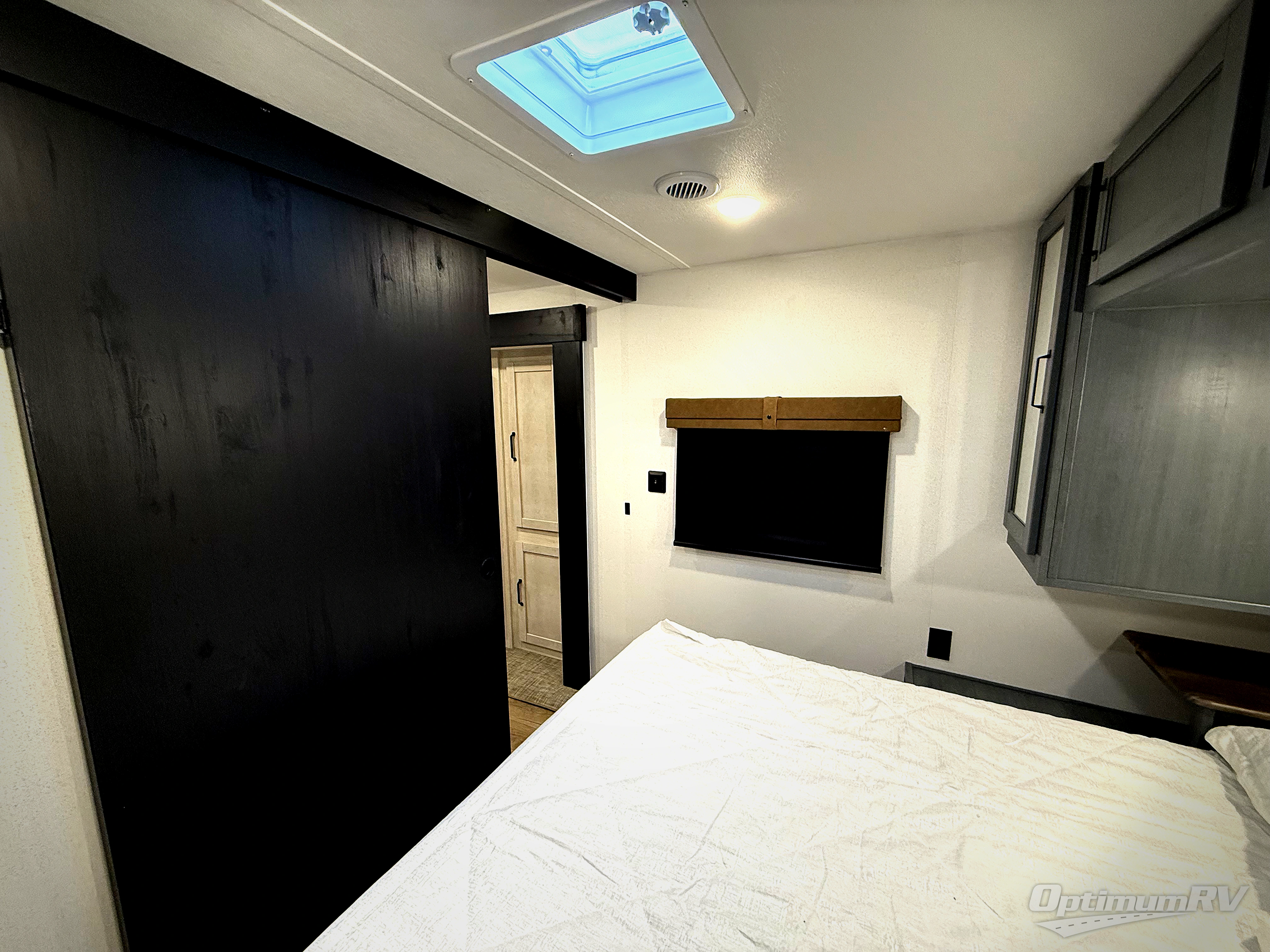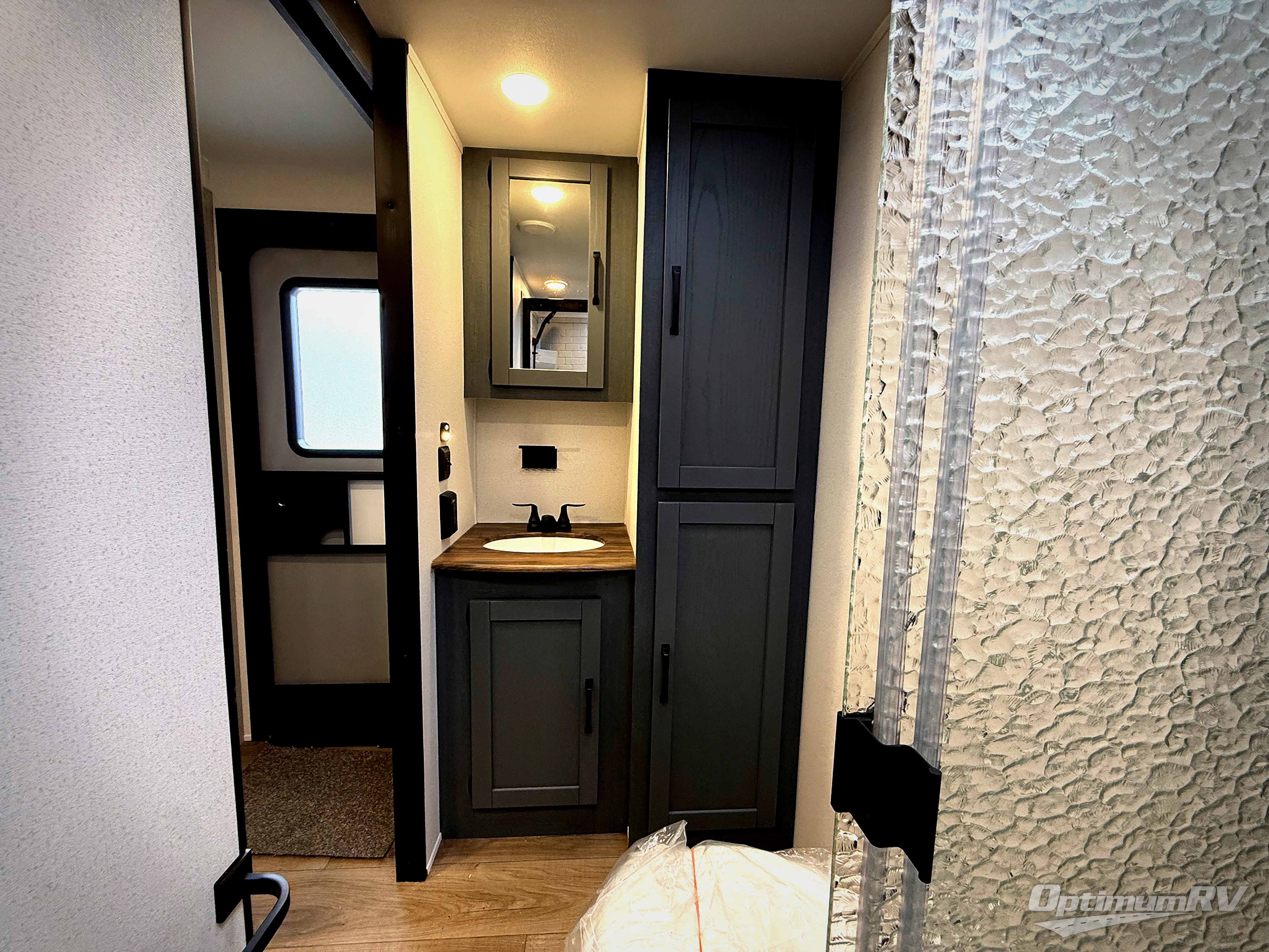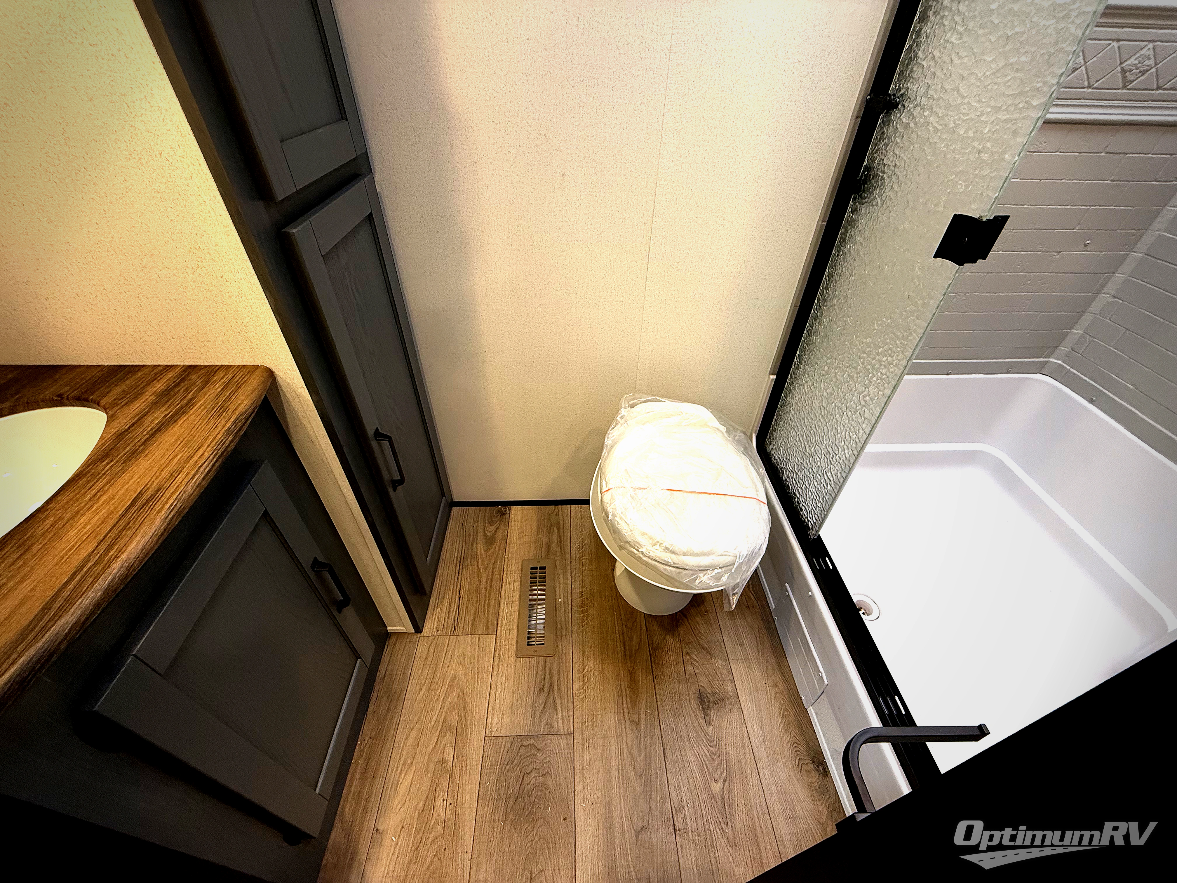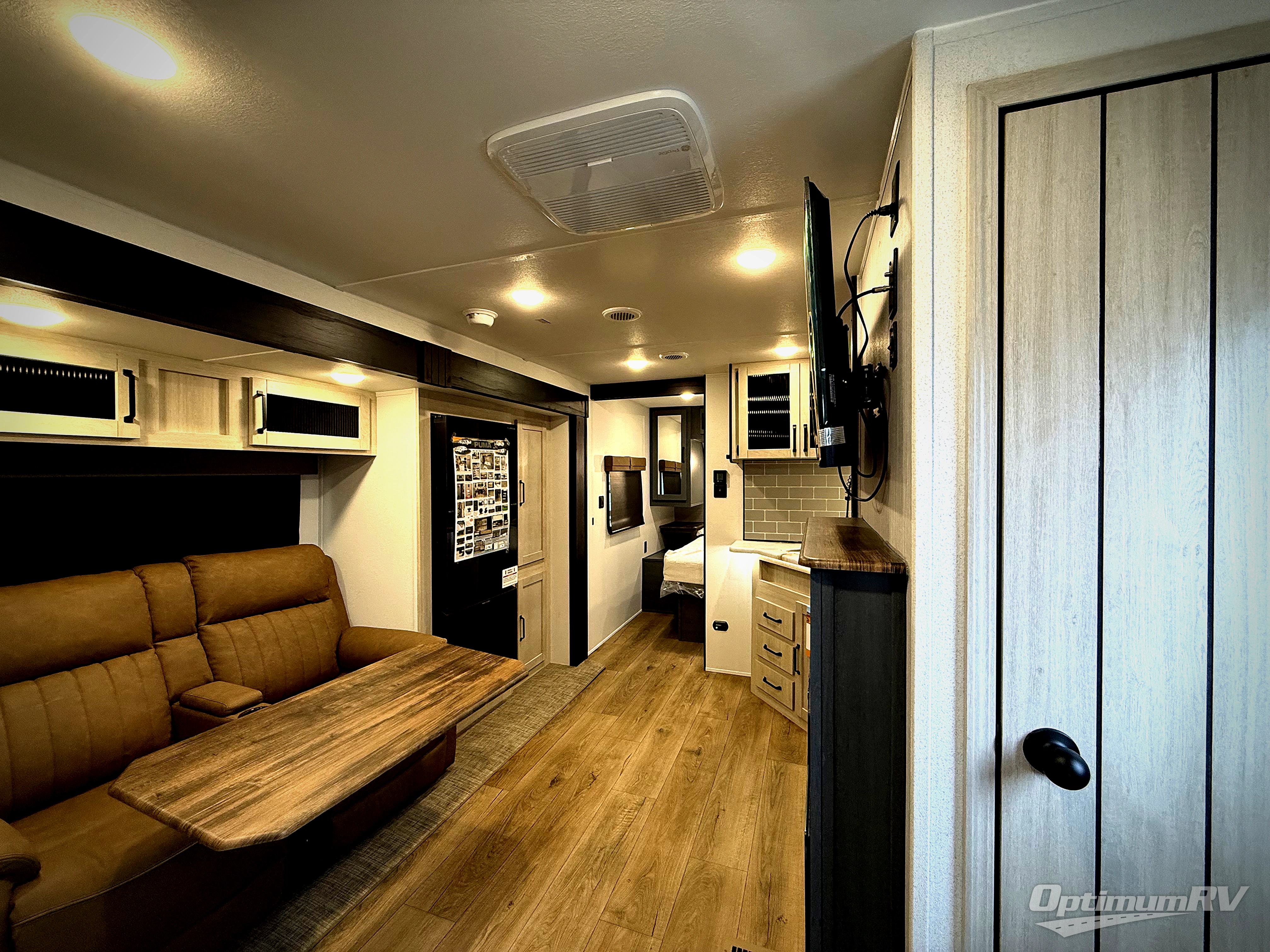 This travel trailer is inviting and spacious thanks to the large slide out, which houses the sofa, 12V refrigerator and second pantry! There is a fireplace across from the sofa for added comfort, and the full rear bath will be easy to get to. A full kitchen inside includes a stainless steel oven and range plus a stainless steel microwave to cook meals, and you can choose to add the optional micro kitchen with a griddle if you enjoy cooking outdoors! When you're ready to call it a night, the queen bed in the front private bedroom will be calling your name!