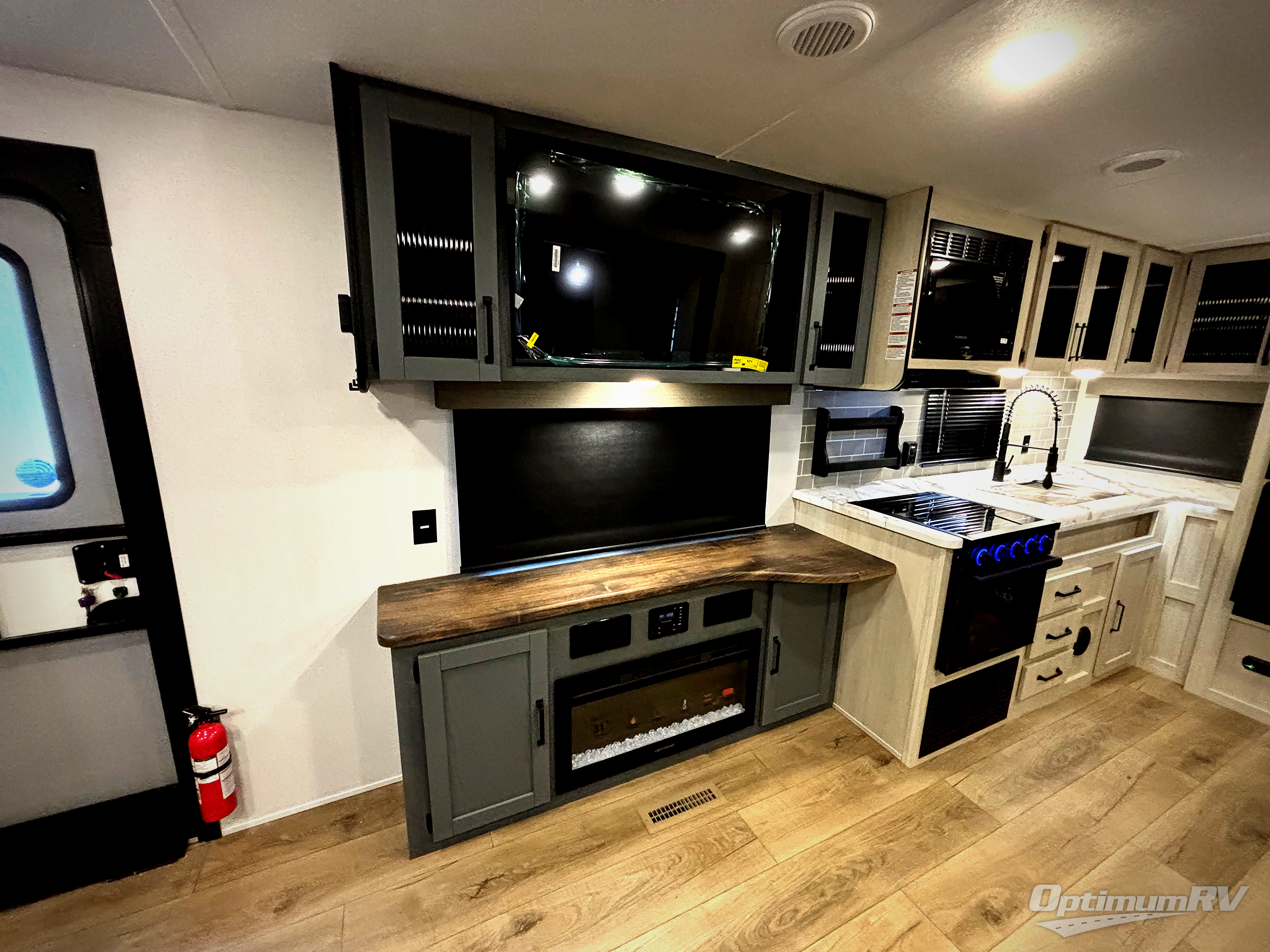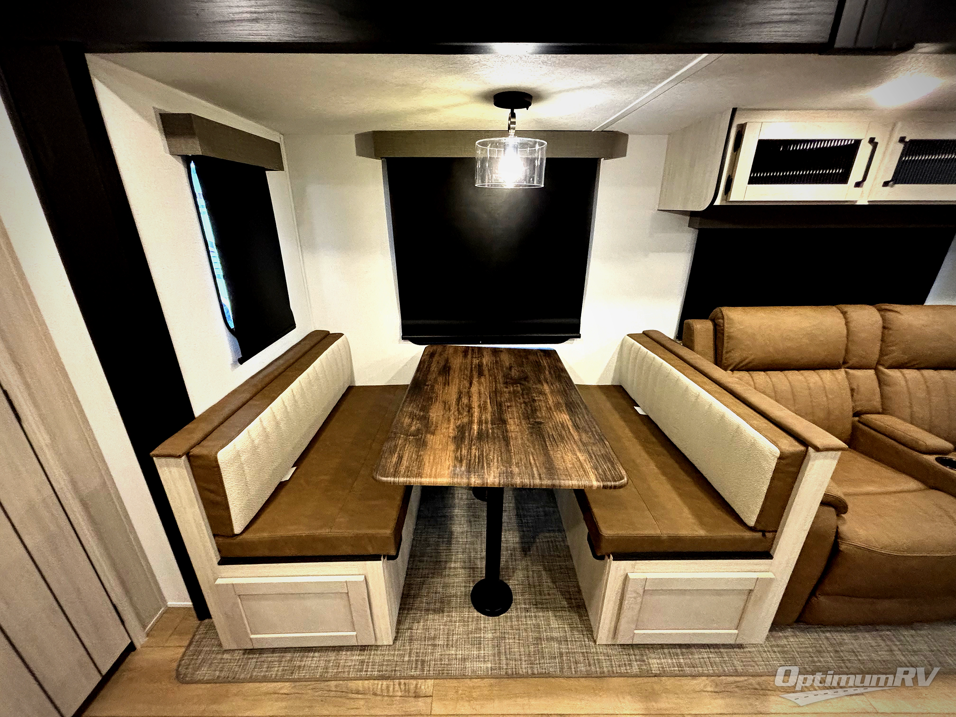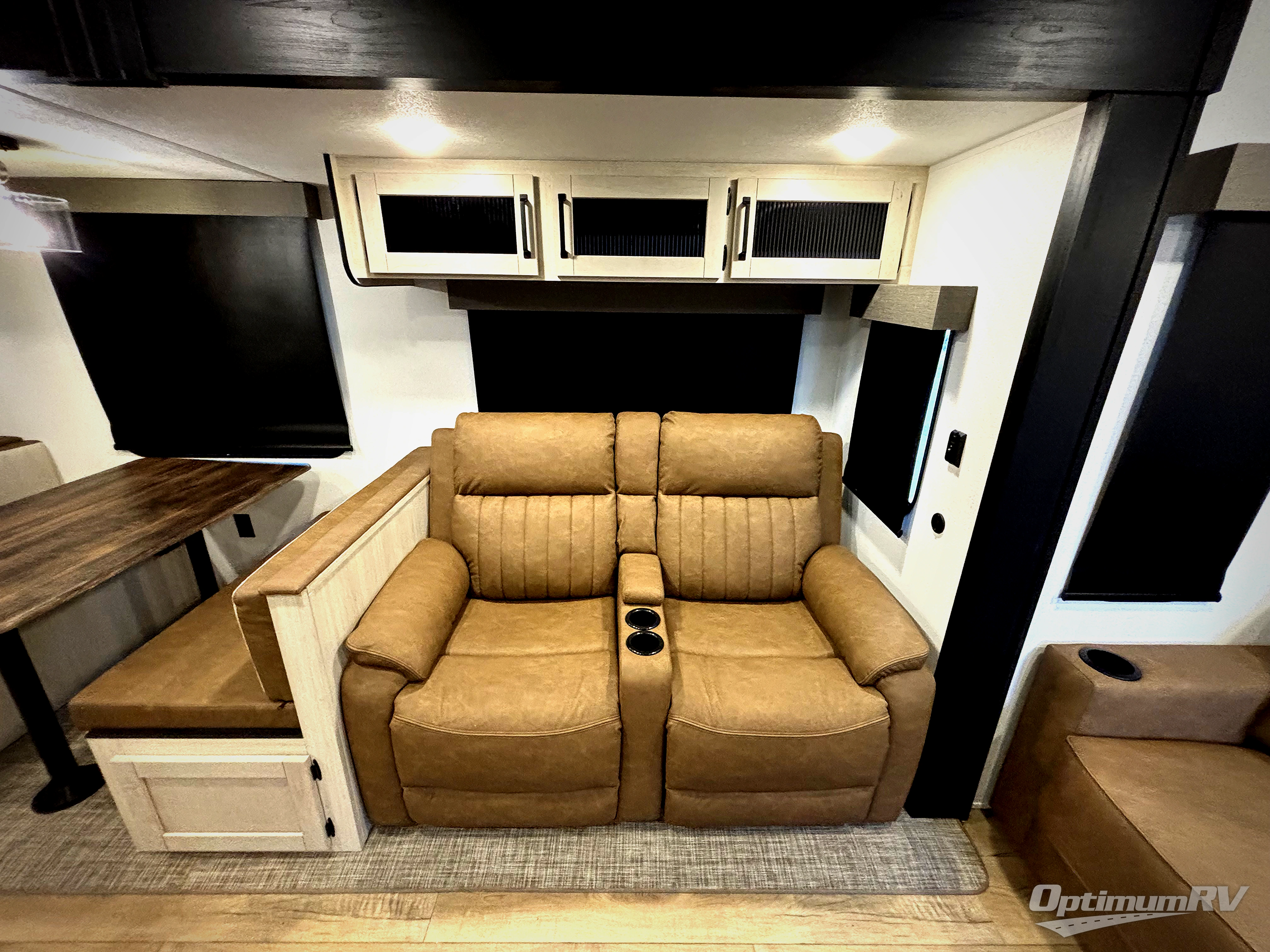 You won't want to camp any other way once you step inside this travel trailer! The rear kitchen has a stainless-steel oven and range to prepare your best meals, a 12V refrigerator to keep your perishables fresh, and a walk-in pantry for your canned goods and snacks for movie night. After a fun day at the beach, you can play a card game at the booth dinette, relax on the theater seating and sofa, or rinse the sand out of your hair in the 32" x 40" shower with a seat in the full bathroom. There is also a front private bedroom with a queen bed slide across from a dresser and a front closet with another closet with washer and dryer prep.