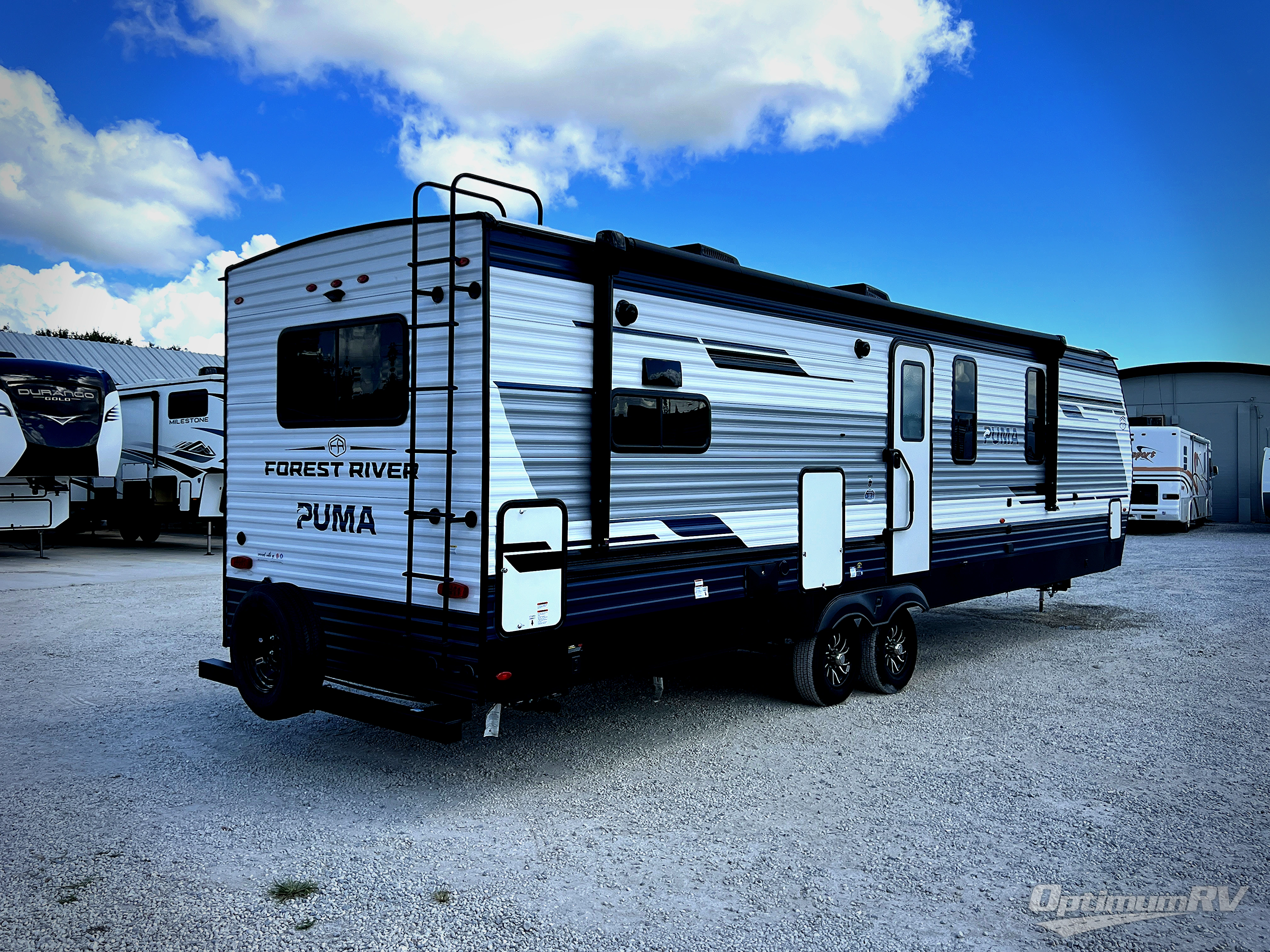 If you're looking for family-fun adventures then you need one of these Palomino Puma fifth wheels or travel trailers! They are built rugged, easy to tow, and jam packed with features. The Darco wrapped underbelly will protect your units vitals and the AlphaPly roofing membrane covers it. They also have new aluminum wheels and a powder coated steel I-beam frame. Inside, the Congoleum linoleum will be easy to keep clean, and the night roller shades will provide privacy when it's time to turn in. You'll also enjoy an electric awning with an LED light strip plus an AM/FM/Bluetooth stereo and two outside speakers to keep the party going!