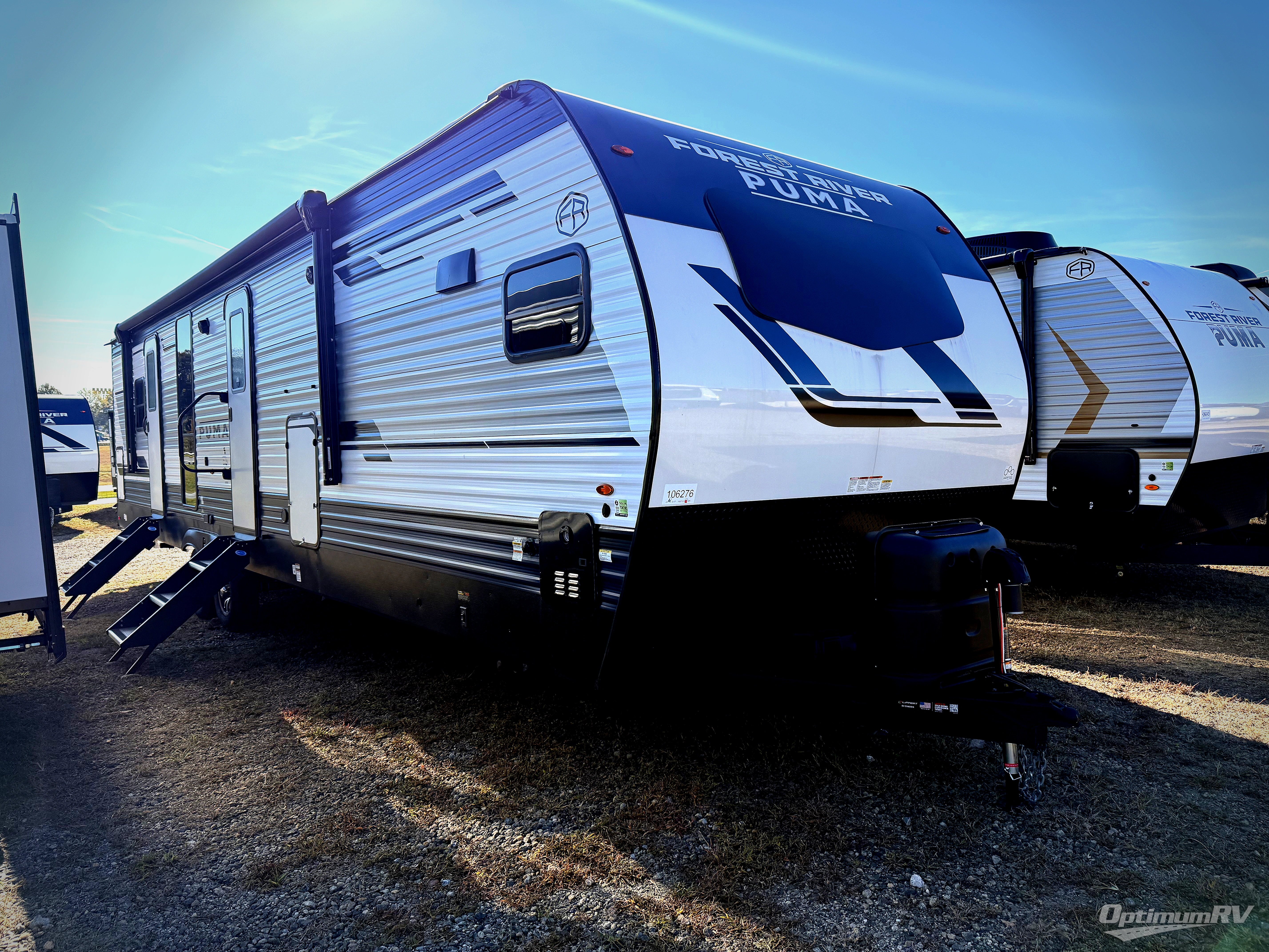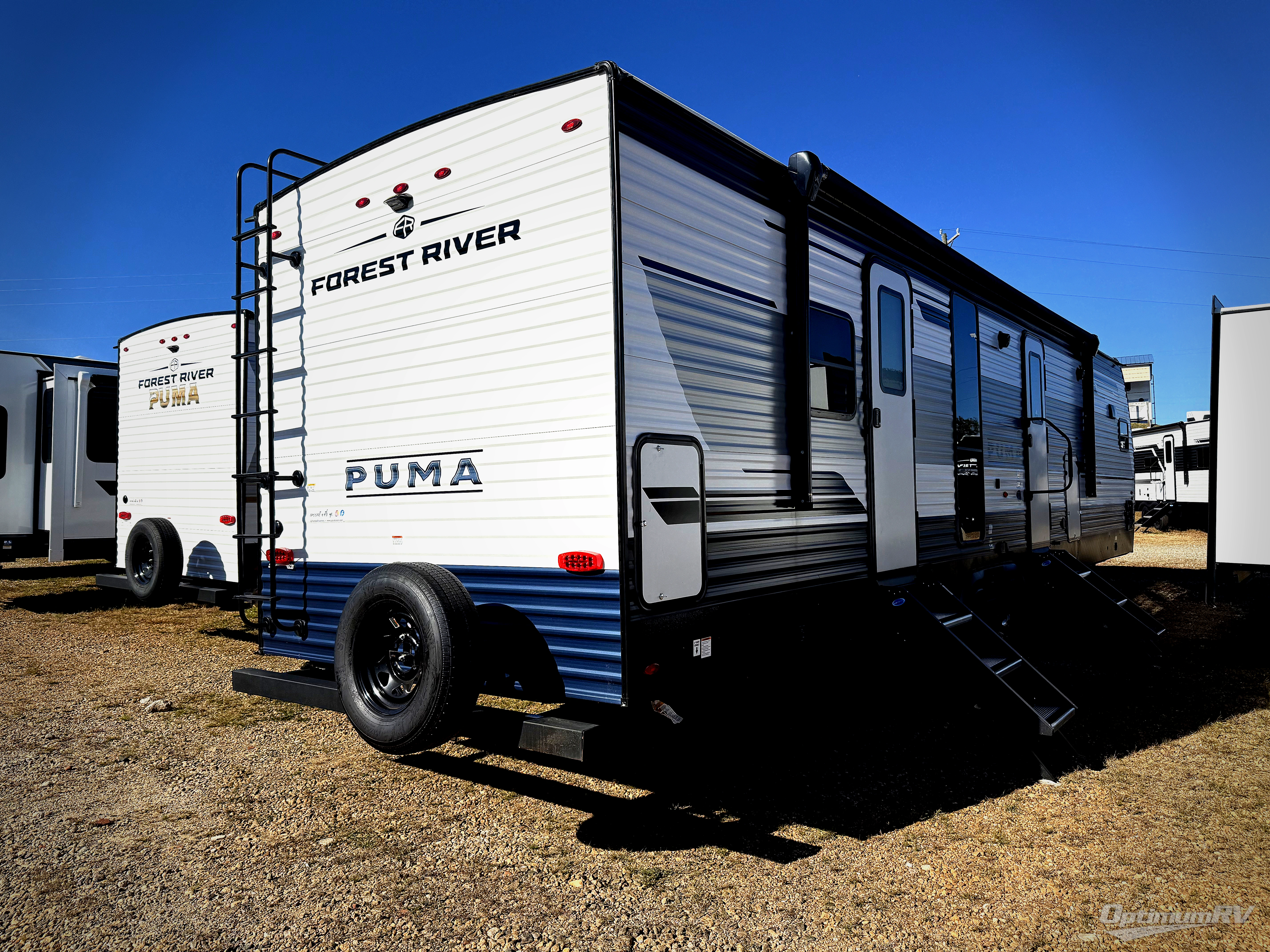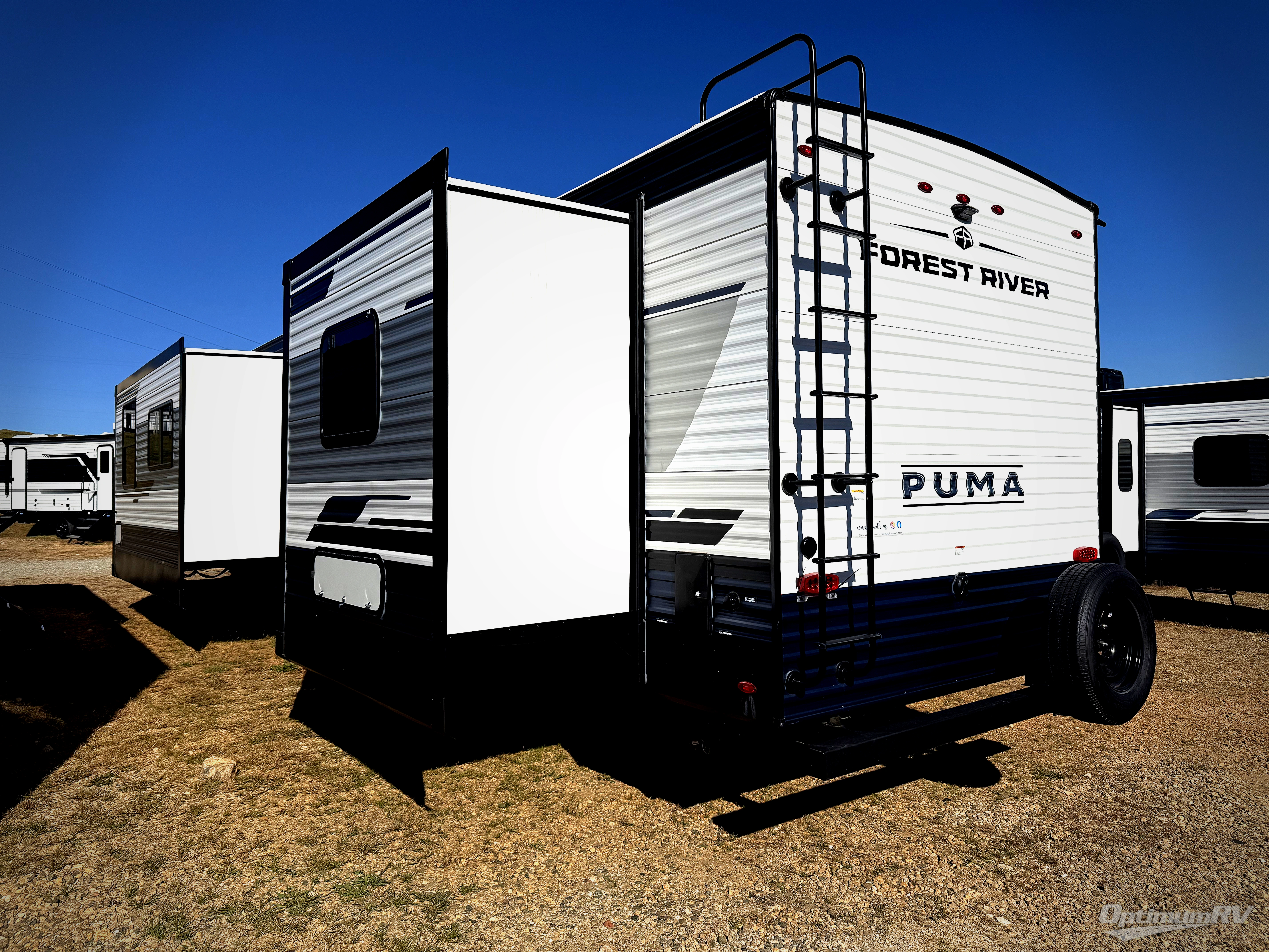 If you're looking for family-fun adventures then you need one of these Palomino Puma fifth wheels or travel trailers! They are built rugged, easy to tow, and jam packed with features. The Darco wrapped underbelly will protect your units vitals and the AlphaPly roofing membrane covers it. They also have new aluminum wheels and a powder coated steel I-beam frame. Inside, the Congoleum linoleum will be easy to keep clean, and the night roller shades will provide privacy when it's time to turn in. You'll also enjoy an electric awning with an LED light strip plus an AM/FM/Bluetooth stereo and two outside speakers to keep the party going!