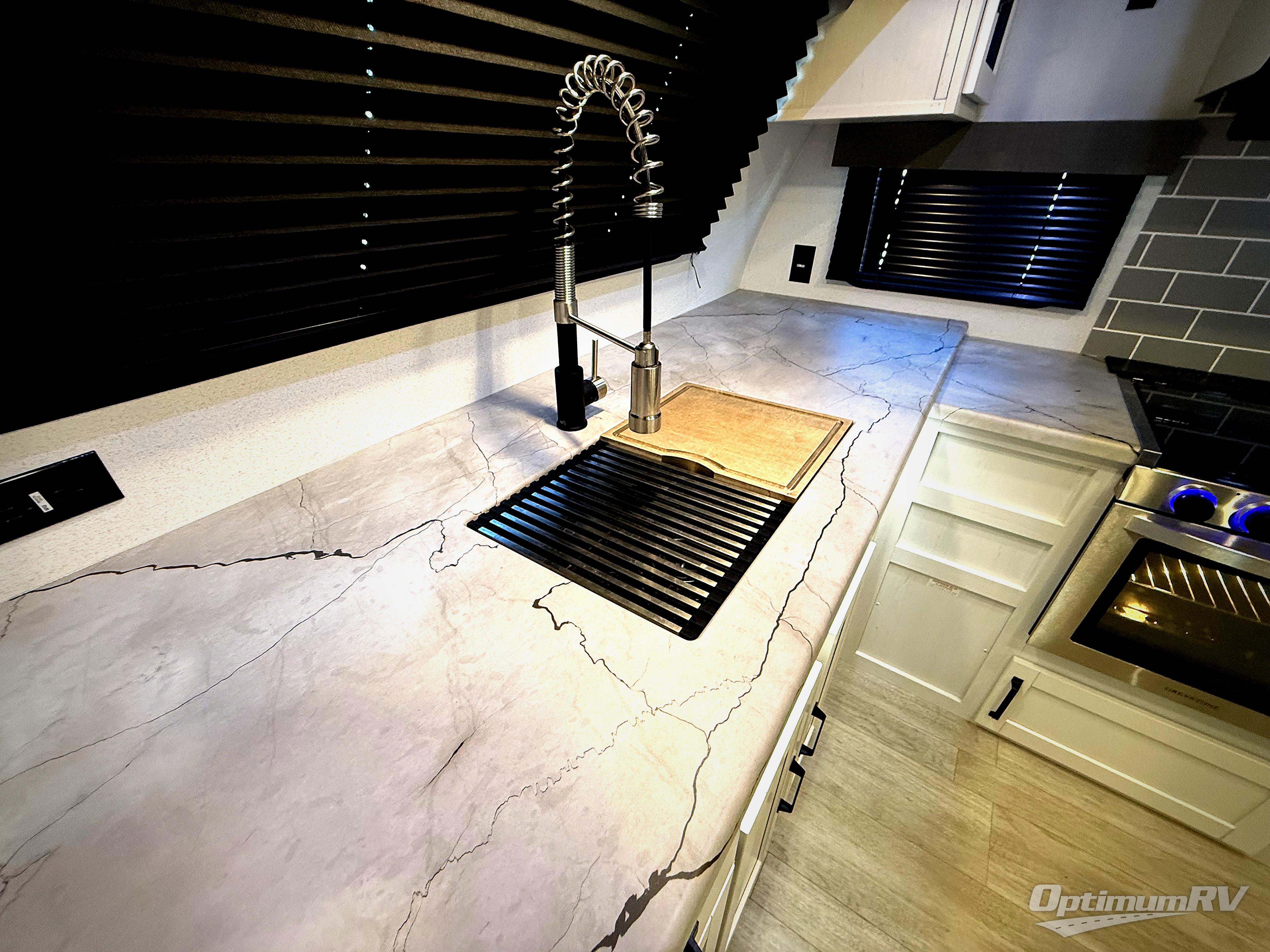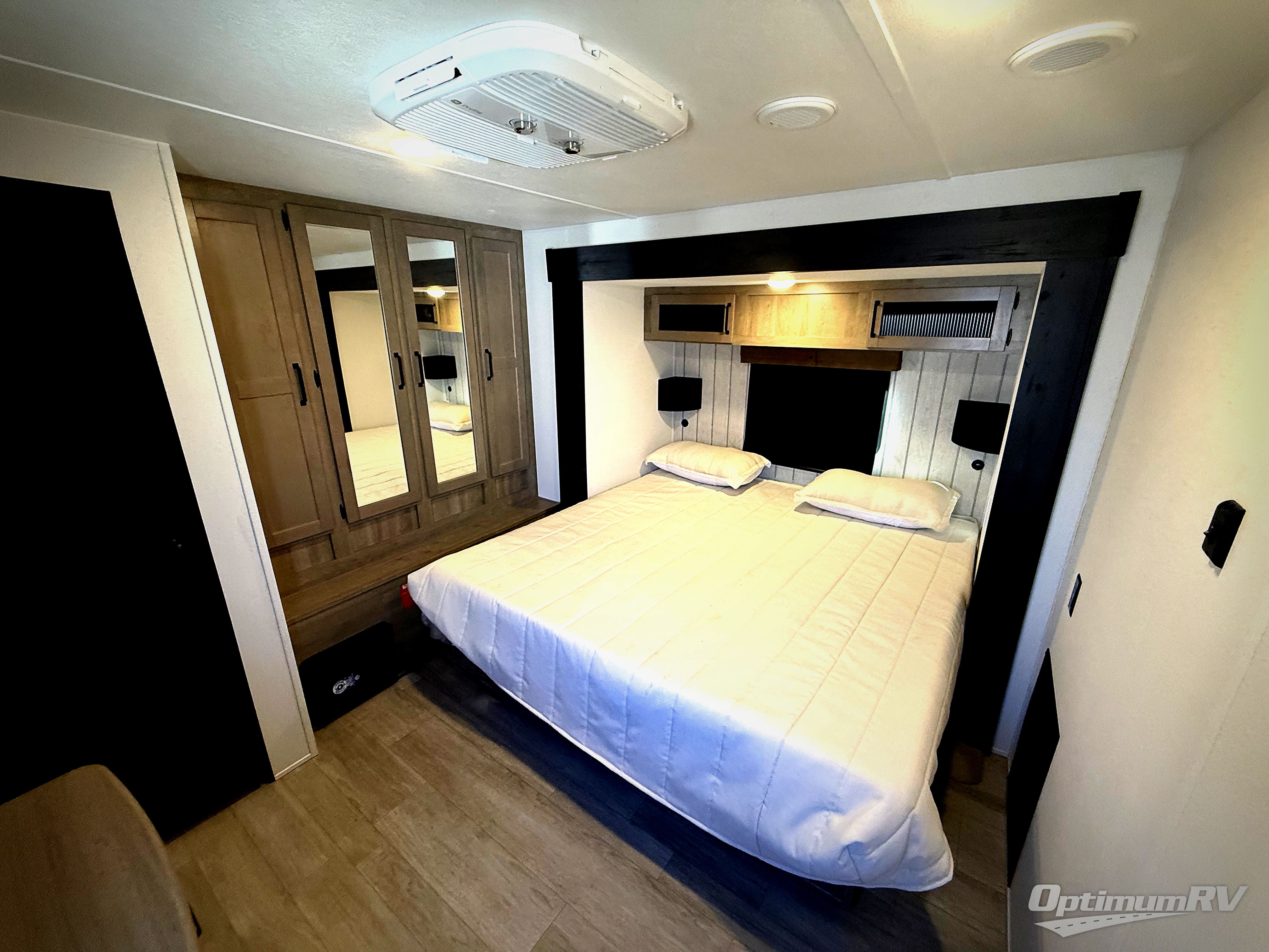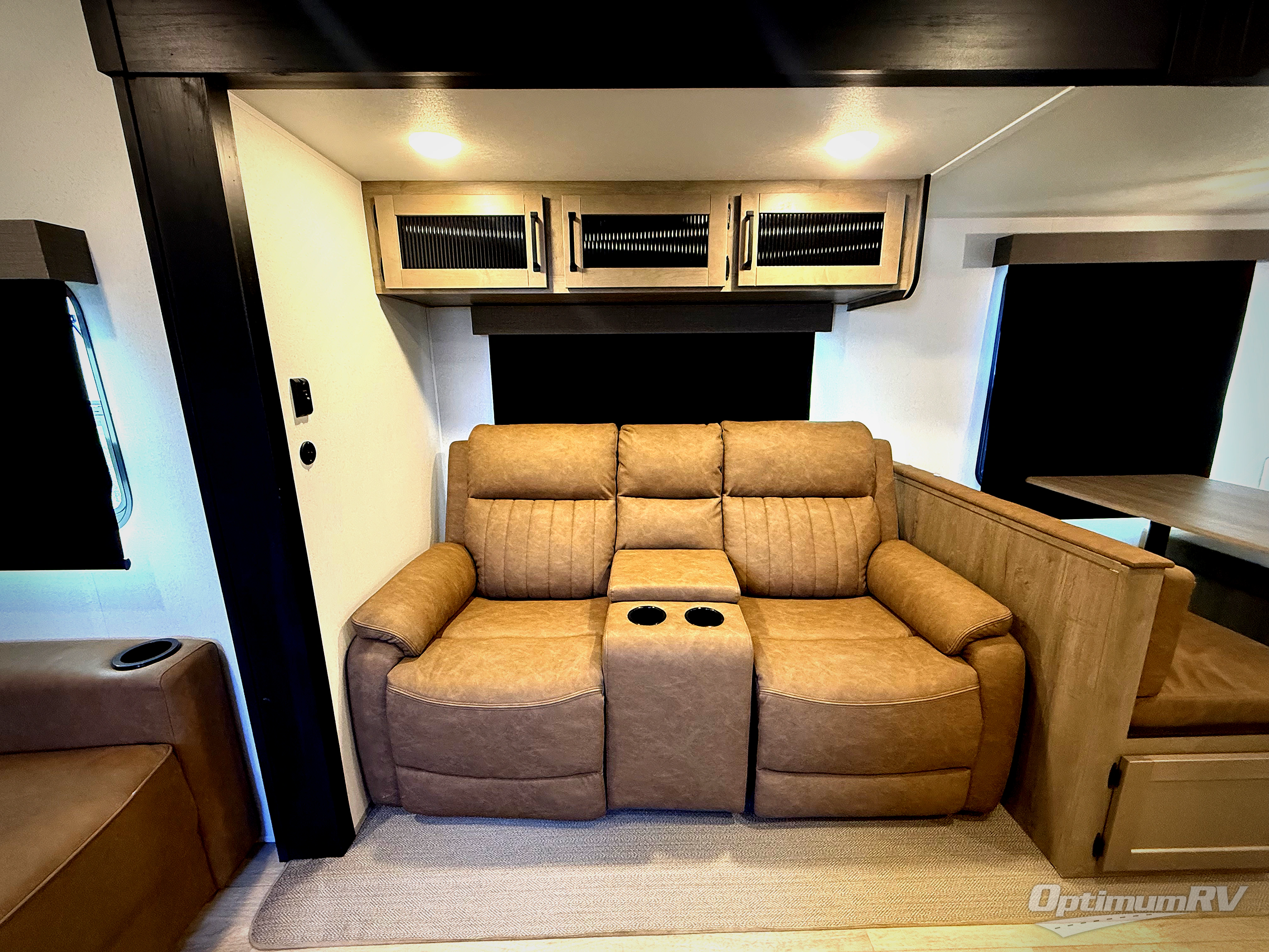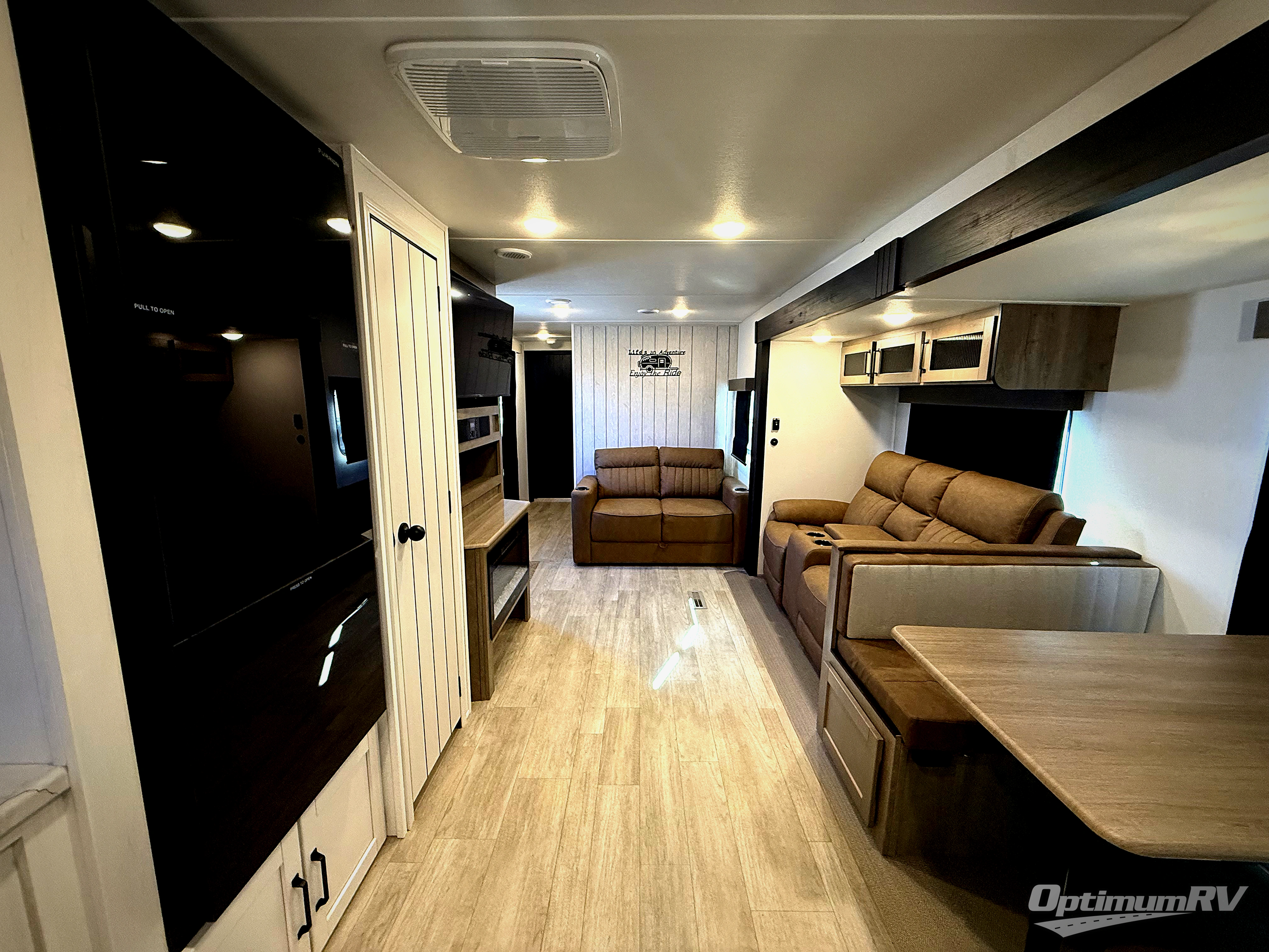 Experience a home away from home with this travel trailer! The front kitchen has everything you will need to prepare your best meals and you can enjoy them at the booth dinette. The rear private bedroom has a 72" x 80" king bed slide across from a dresser, a wardrobe, and a closet with washer and dryer prep. Freshen up in the full bathroom with the 32" x 40" shower and then enjoy a cup of coffee relaxing in one of the two recliners or on the sofa! Choose the optional outside micro kitchen with a griddle for even more convenience!