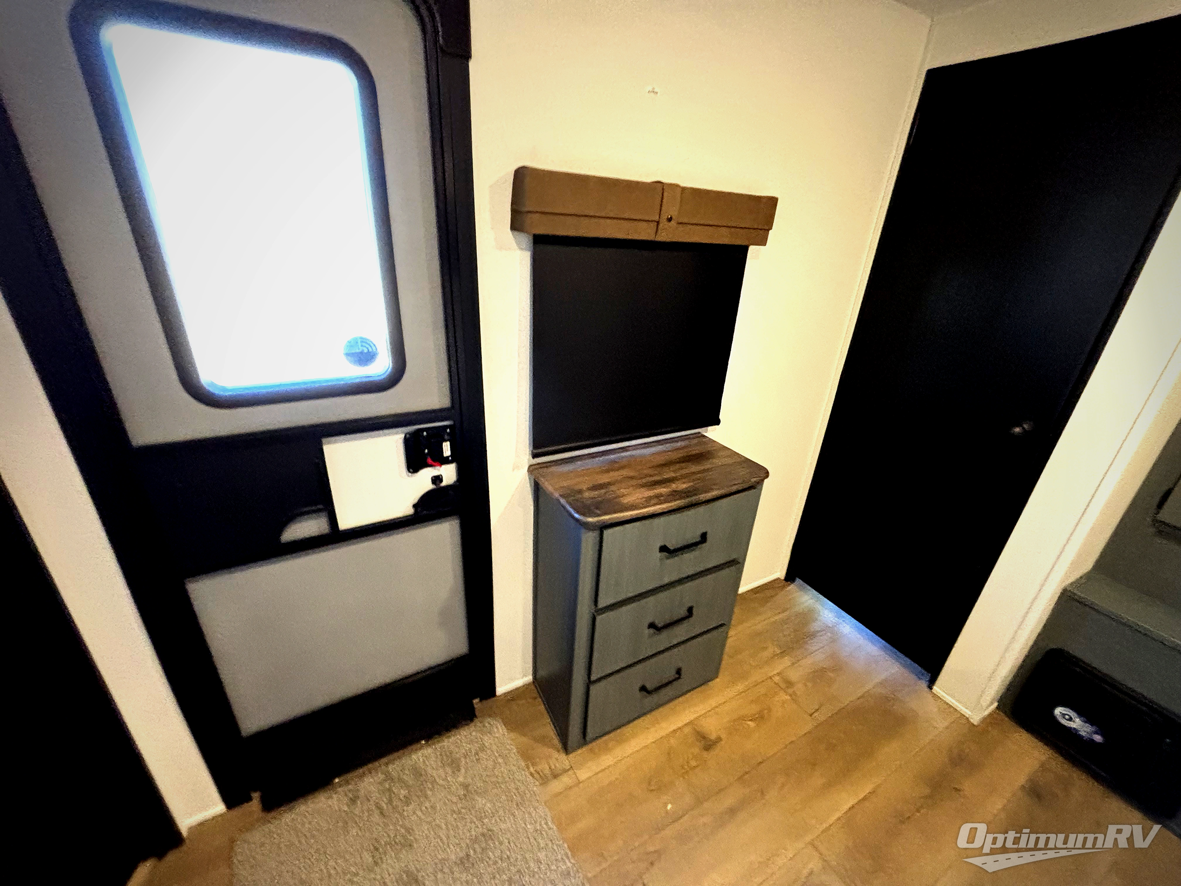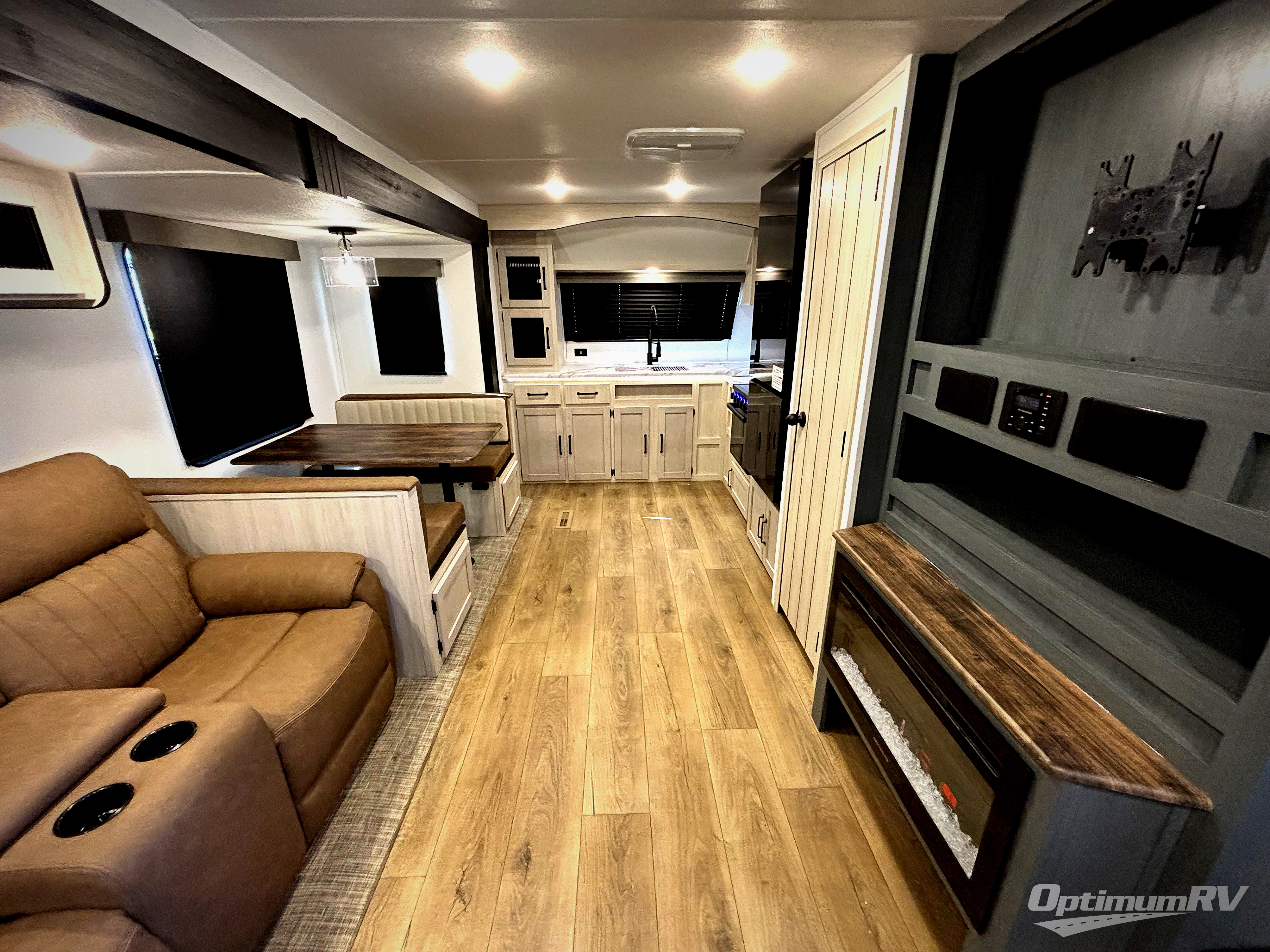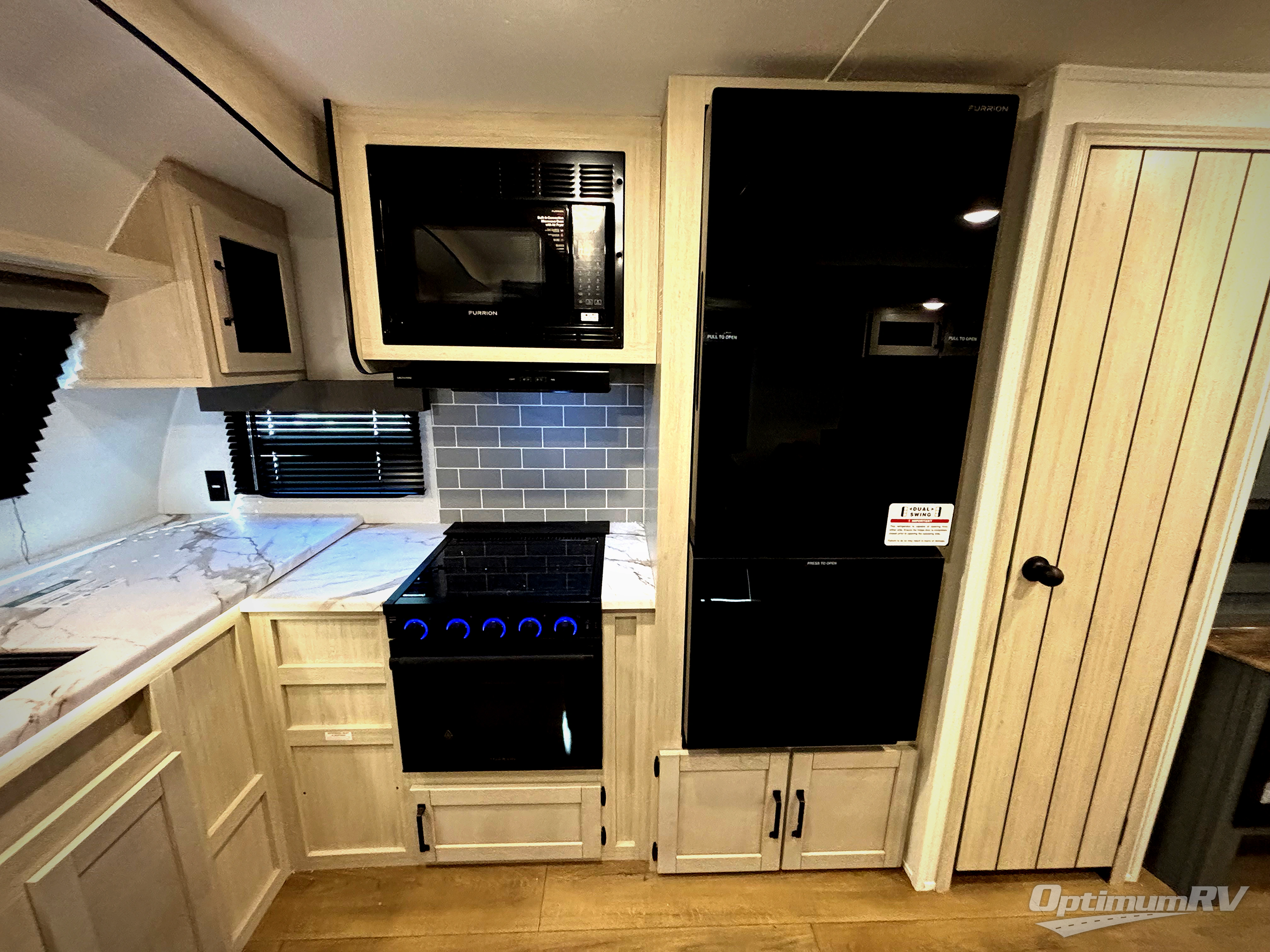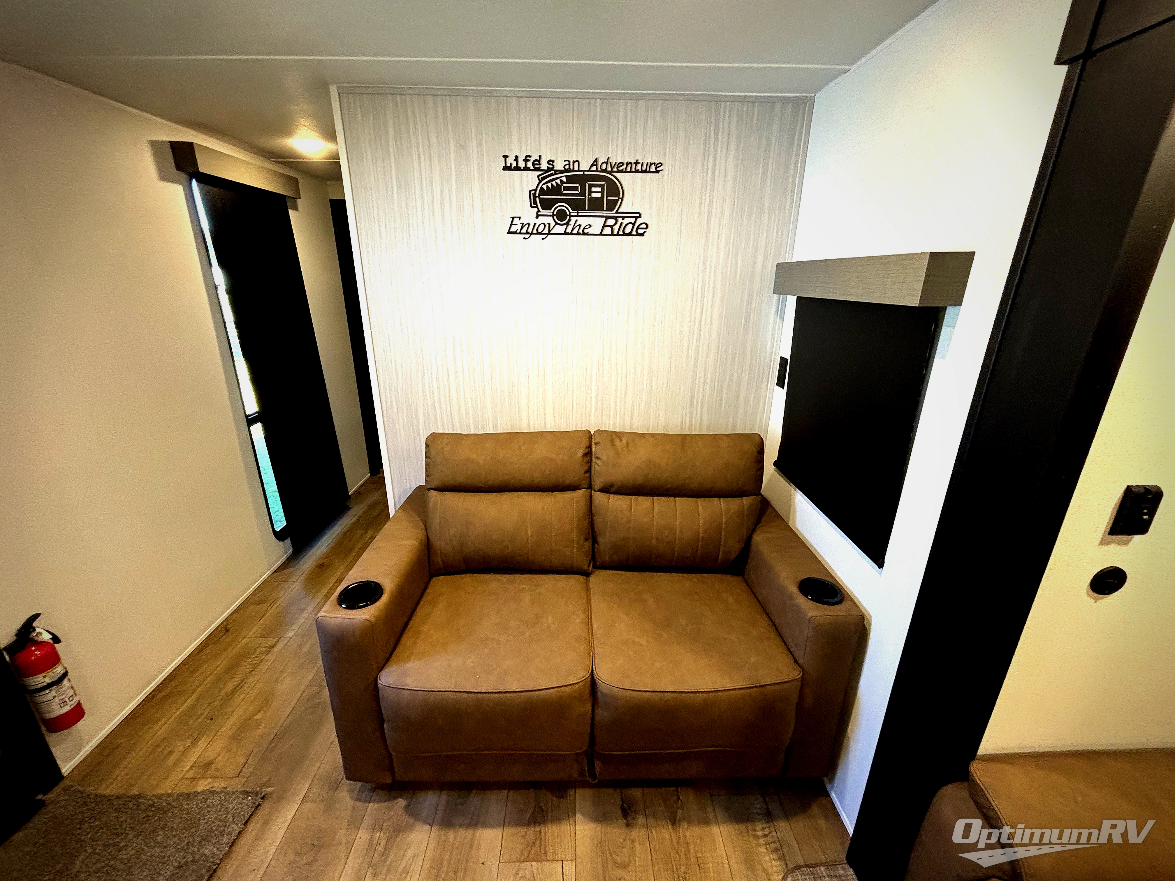 Experience a home away from home with this travel trailer! The front kitchen has everything you will need to prepare your best meals, and you can enjoy them at the booth dinette. The rear private bedroom has a 72" x 80" king bed slide across from a dresser, a wardrobe, and a closet with washer and dryer prep. Freshen up in the full bathroom with the 32" x 40" shower and then enjoy a cup of coffee relaxing on the theater seating or on the sofa! Choose the optional outside micro kitchen with a griddle for even more convenience!